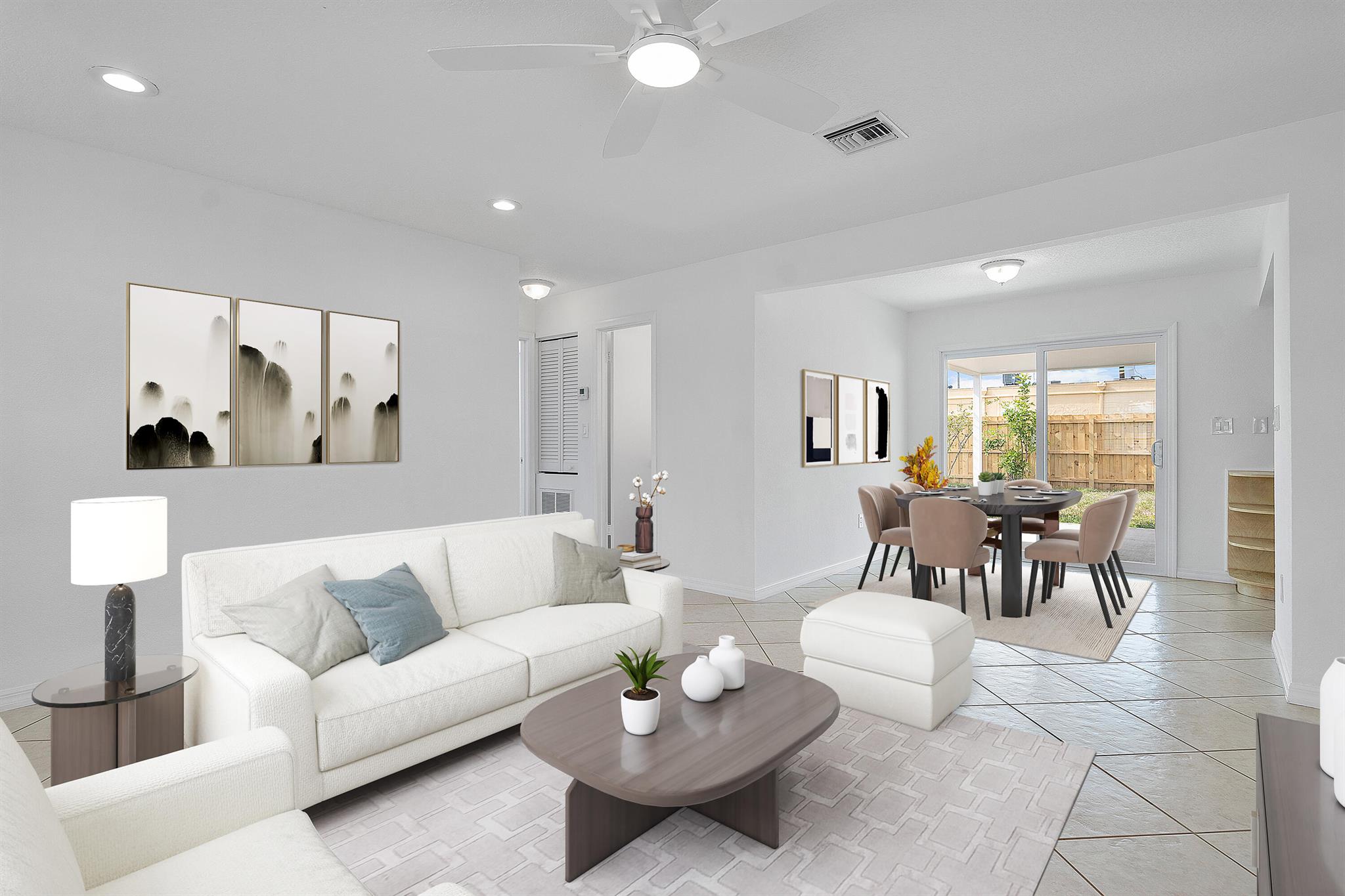 Experience fresh, modern living in this updated home, thoughtfully enhanced inside and out. A new impact-rated front door & newly insalled hurricane slider patio w/hurricane panels, provides security & energy efficiency. Exterior improvements include new seamless rain gutters, updated lighting, a new front lawn w/sprinkler system,& brand-new backyard fencing on all sides. Inside, featuring upgraded interior lighting, new ceiling fans, remodeled bathrooms featuring stylish finishes & contemporary fixtures. Enjoy the brand new carpeting, cordless window coverings, The upgraded kitchen appliances; Construction & Systems Highlights Include PVC drain lines & Copper electrical wiring. DO NOT MISS NEXT HOME.. NO HOA ALL AGES ! ”Unique opportunity/seller may hold mortgage for qualified buyer!