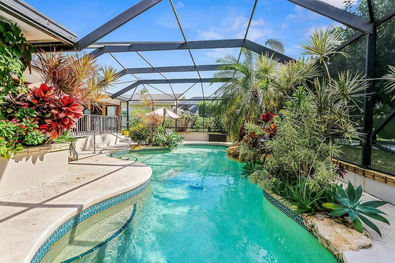 Discover paradise in this 4BR/2BA waterfront home on a peaceful canal in Juno Beach! Enjoy the ultimate Florida lifestyle with a private dock (boat clearance is approx. 4-6” based on tide) for fishing & paddle boarding right from your backyard. Just a mile to the beach and minutes to shopping, dining, and nightlife, this location blends tranquility with convenience. Inside, find spacious living areas, with open floor plan, and water views to the south. The 2-car garage offers ample storage. Outdoors, relax on the covered porch or unwind in your high-profile pool screen enclosure with a tropical free flow pool & Grato waterfall & large outdoor lanai built-in barbecue overlooking pool with gated aluminum fencing. Step down into Pool deck (which is built 2 feet below ground for privacy)