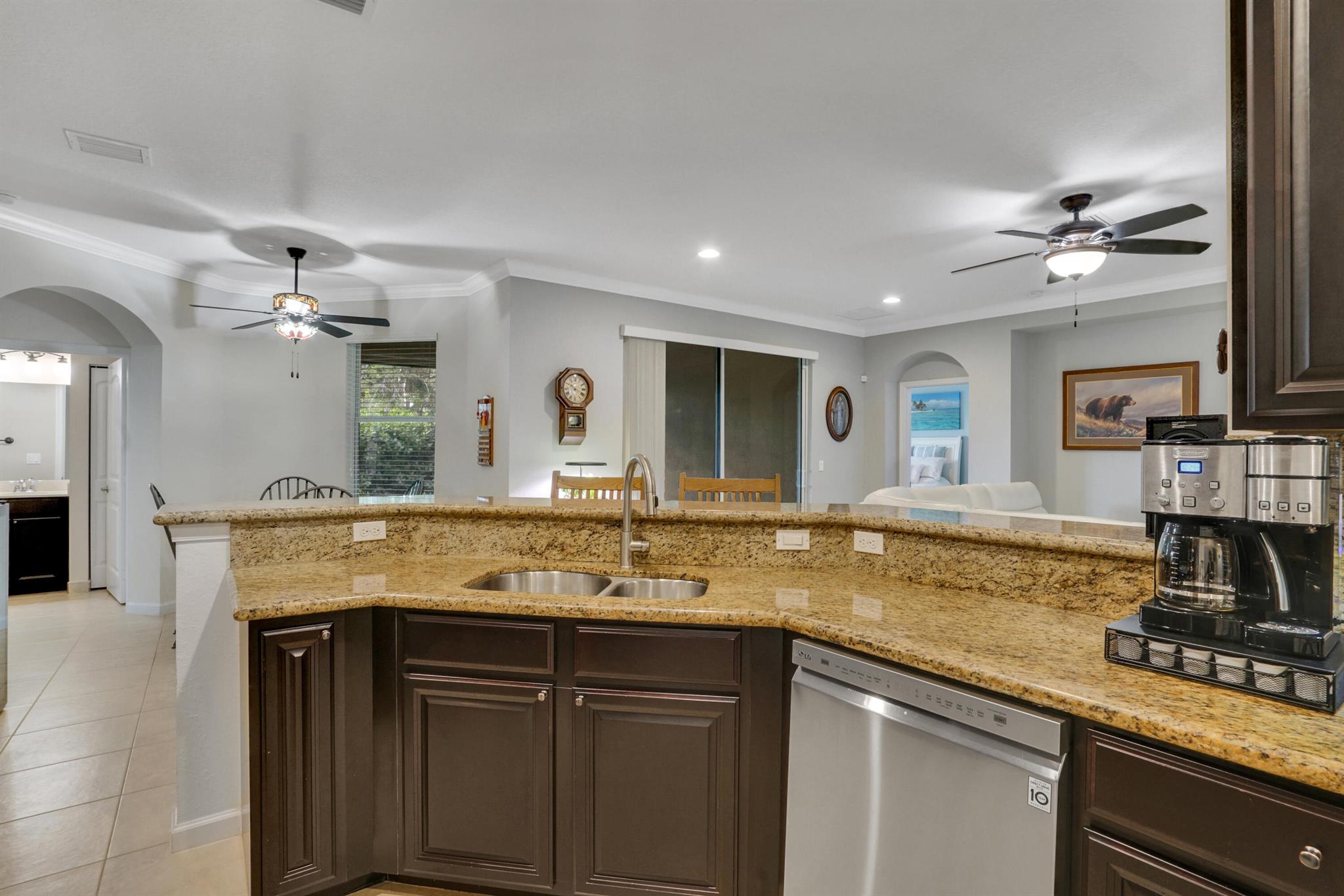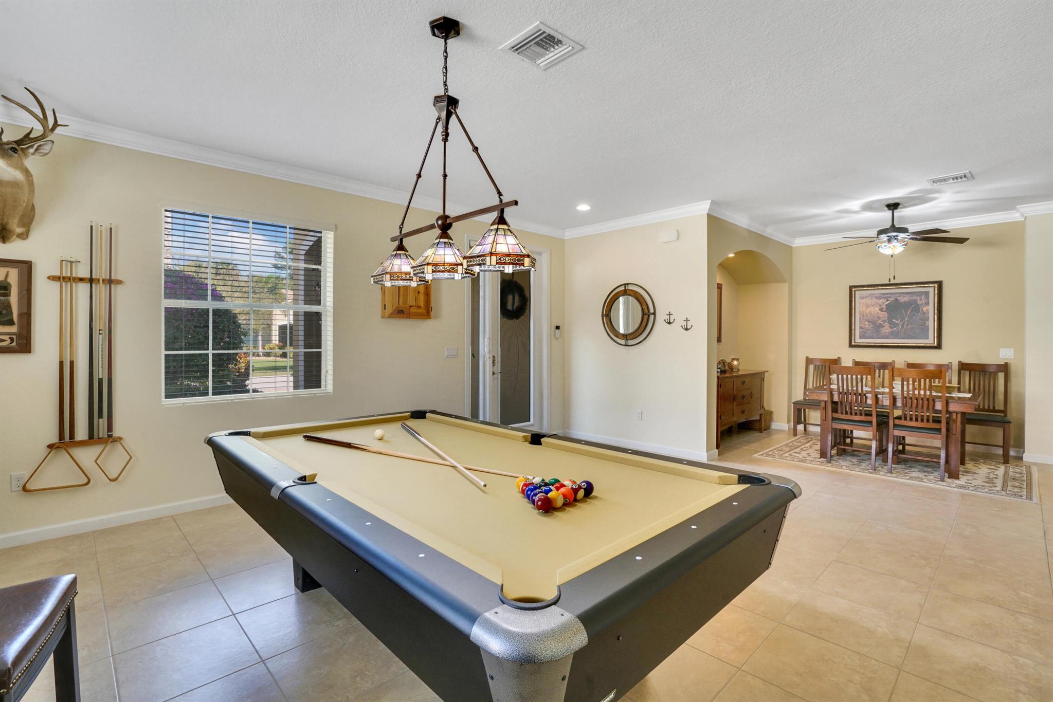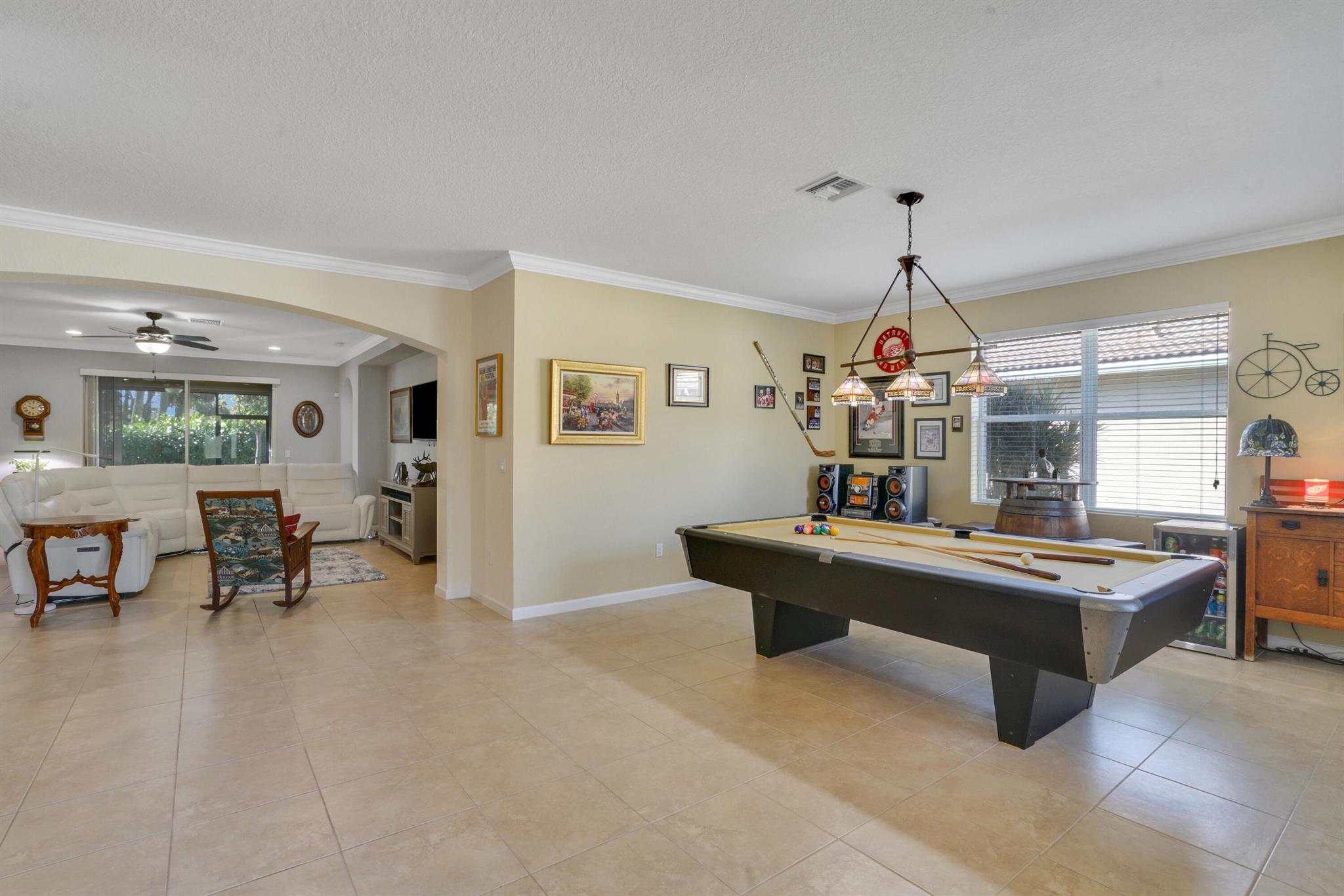 Fall is here-your perfect home awaits! Don’t miss this opportunity to own a beautiful home in a prime location, minutes from shopping, dining and the airport! Step inside to an open floor plan-perfect for entertaining, hosting game nights, or creating formal living spaces. Features include all-tile floors, crown molding, 9′ ceilings and updated lighting and ceiling fans throughout. The spacious primary suite offers an ensuite bath with a large walk-in shower & custom built in shelving in closets. One guest room even comes with a space saving hide-a-bed, and a Safe Step jetted tub/shower for ultimate relaxations after a long day. The kitchen is a chef’s dream with granite tops, 42” cabinets, and plenty of storage. Enjoy a screened -in patio & a fenced yard big enough for a pool and pets.