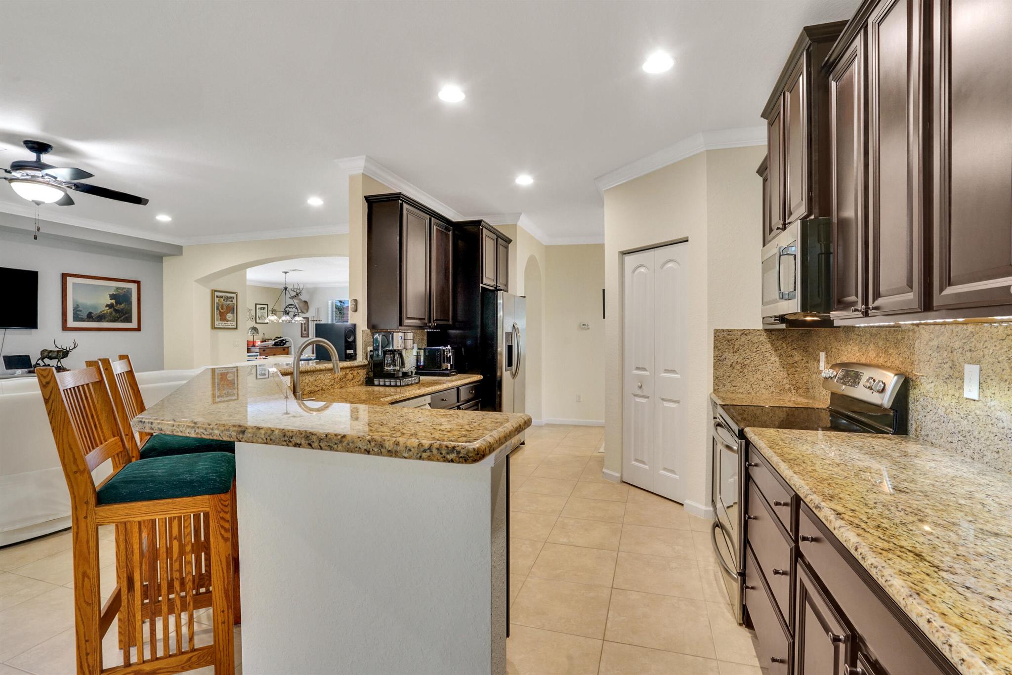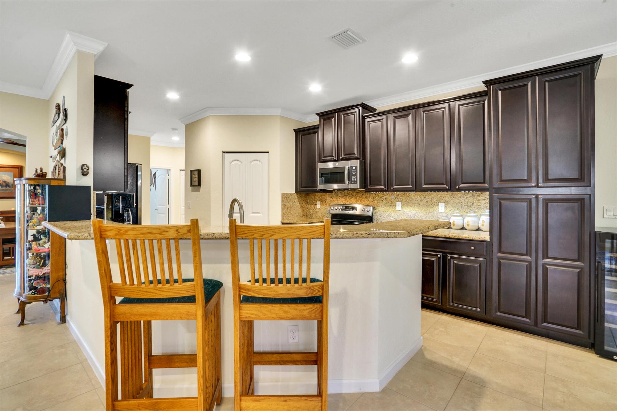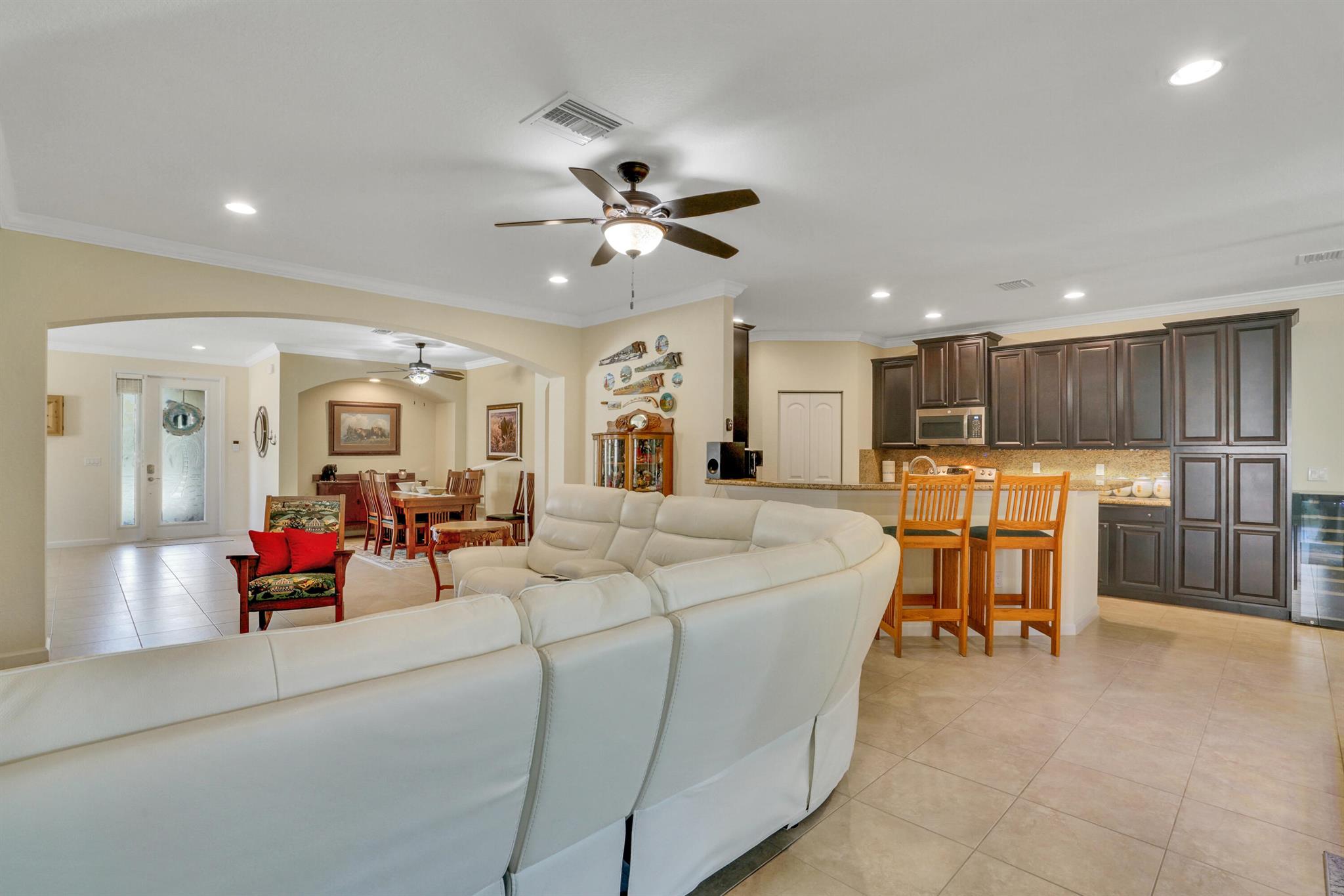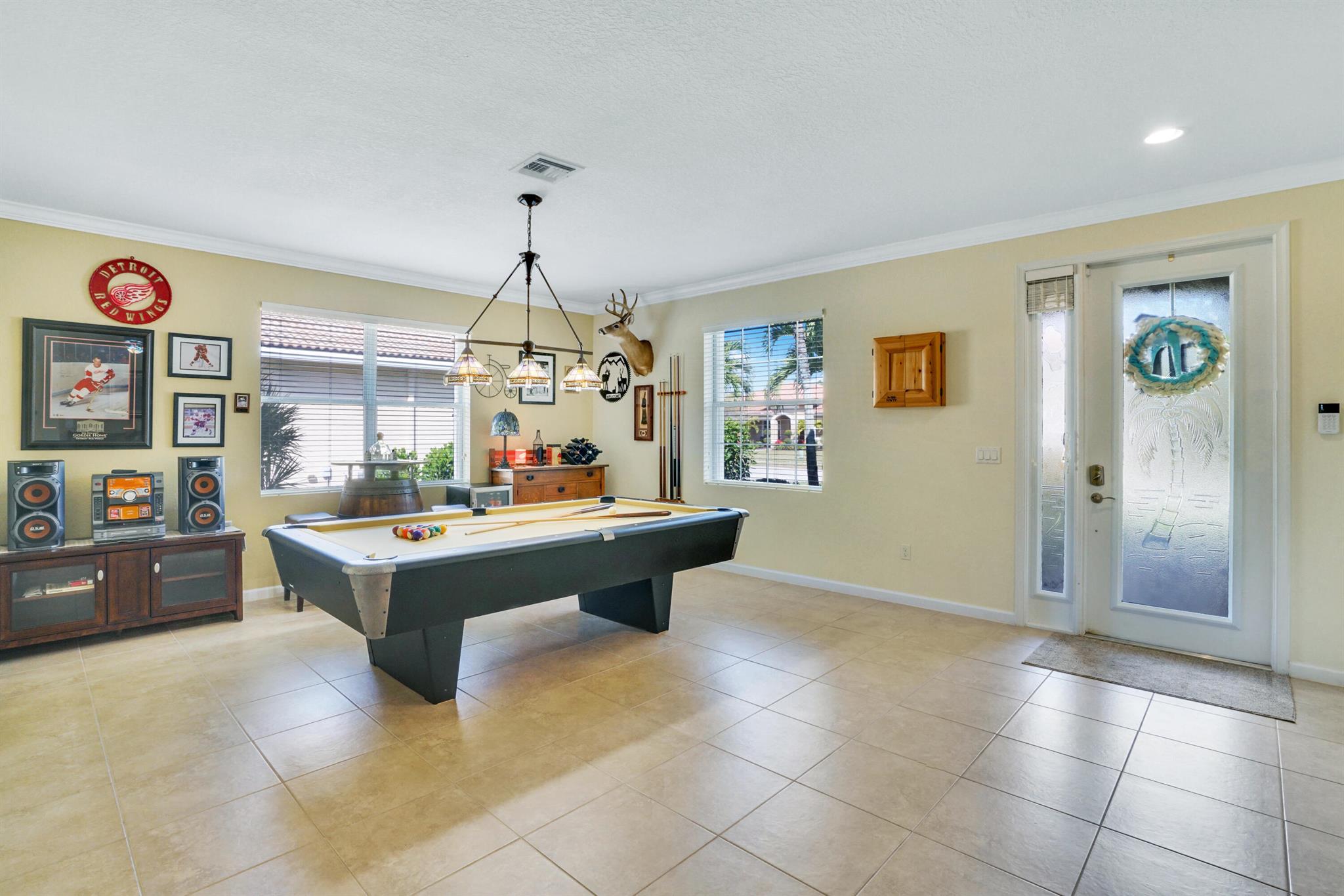 Fall is here-your perfect home awaits! Don’t miss this opportunity to own a beautiful home in a prime location, minutes from shopping, dining and the airport! Step inside to an open floor plan-perfect for entertaining, hosting game nights, or creating formal living spaces. Features include all-tile floors, crown molding, 9′ ceilings and updated lighting and ceiling fans throughout. The spacious primary suite offers an ensuite bath with a large walk-in shower & custom built in shelving in closets. One guest room even comes with a space saving hide-a-bed, and a Safe Step jetted tub/shower for ultimate relaxations after a long day. The kitchen is a chef’s dream with granite tops, 42” cabinets, and plenty of storage. Enjoy a screened -in patio & a fenced yard big enough for a pool and pets.