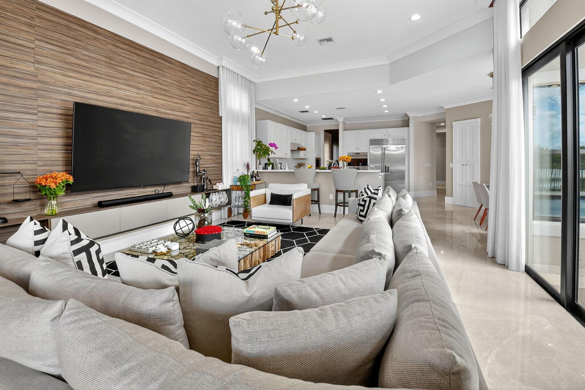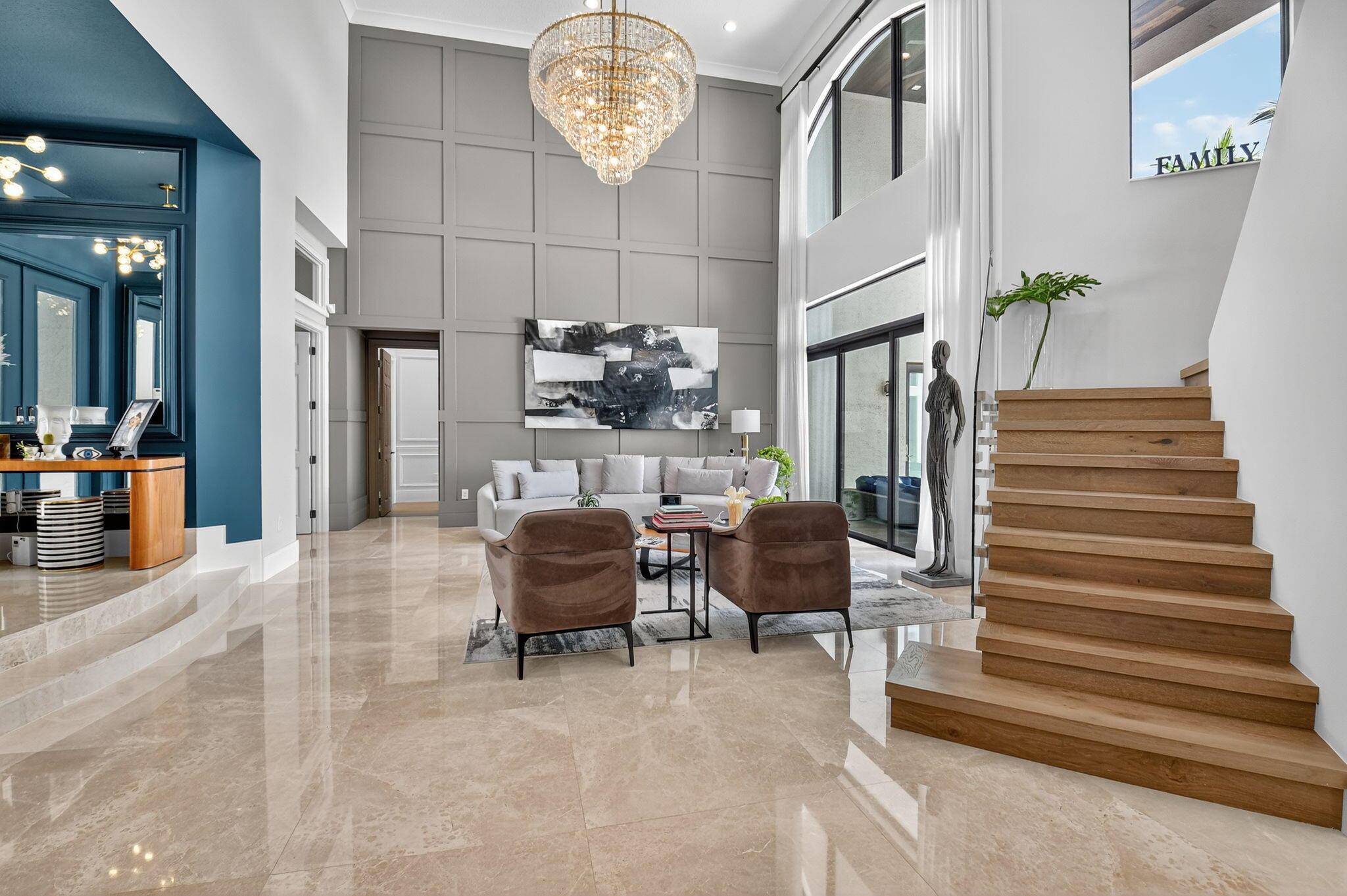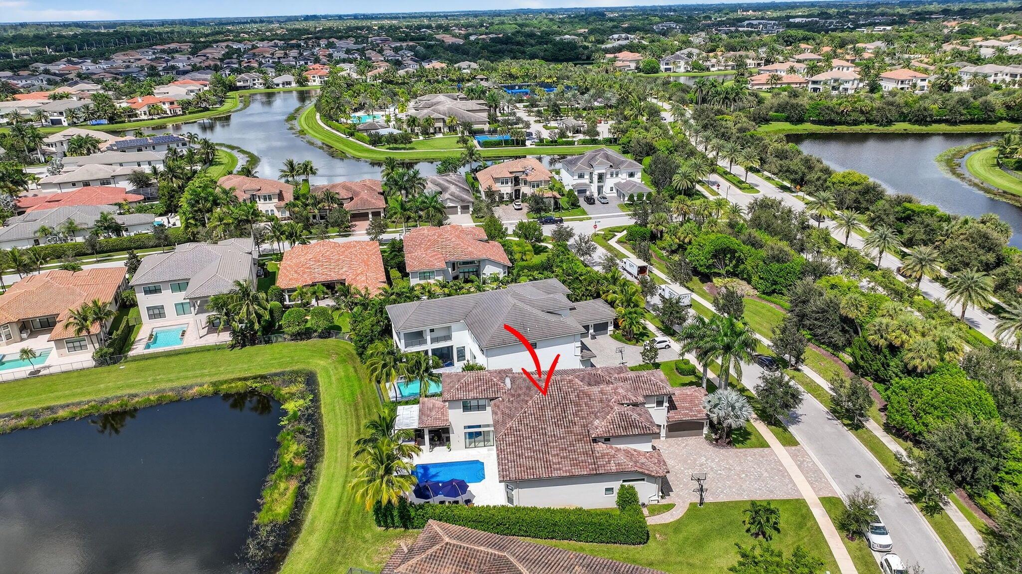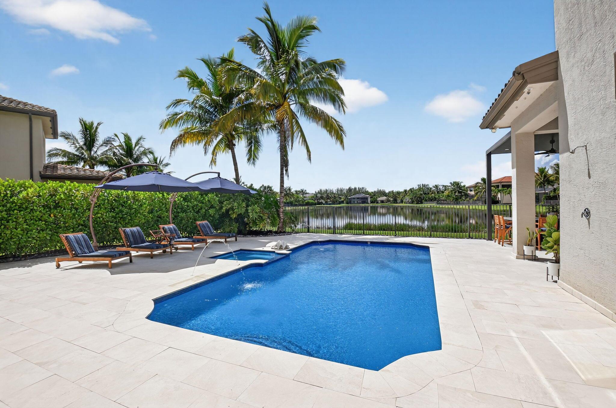 Stunning Two-Story Lakefront Estate with Pool & Luxury Upgrades. This exquisite residence features 5 bedrooms, 6 full bathrooms, 2 half baths, a private library/office, and a custom home theater. Soaring impact windows bring in natural light while keeping the home cool. The gourmet chef’s kitchen is equipped with Sub-Zero refrigeration, Wolf double ovens, gas cooktop, and premium finishes.Enjoy large marble floors, expansive patio areas for entertaining, and a driveway for up to 10 cars. Sitting on an oversized lot with breathtaking lake views, this home is packed with upgrades for the ultimate luxury lifestyle.Premium Upgrades & Features:Flooring: Marble in main living areas, kitchen & family room; wood floors in all bedrooms.Design Touches: New glass stair railing, oversized
