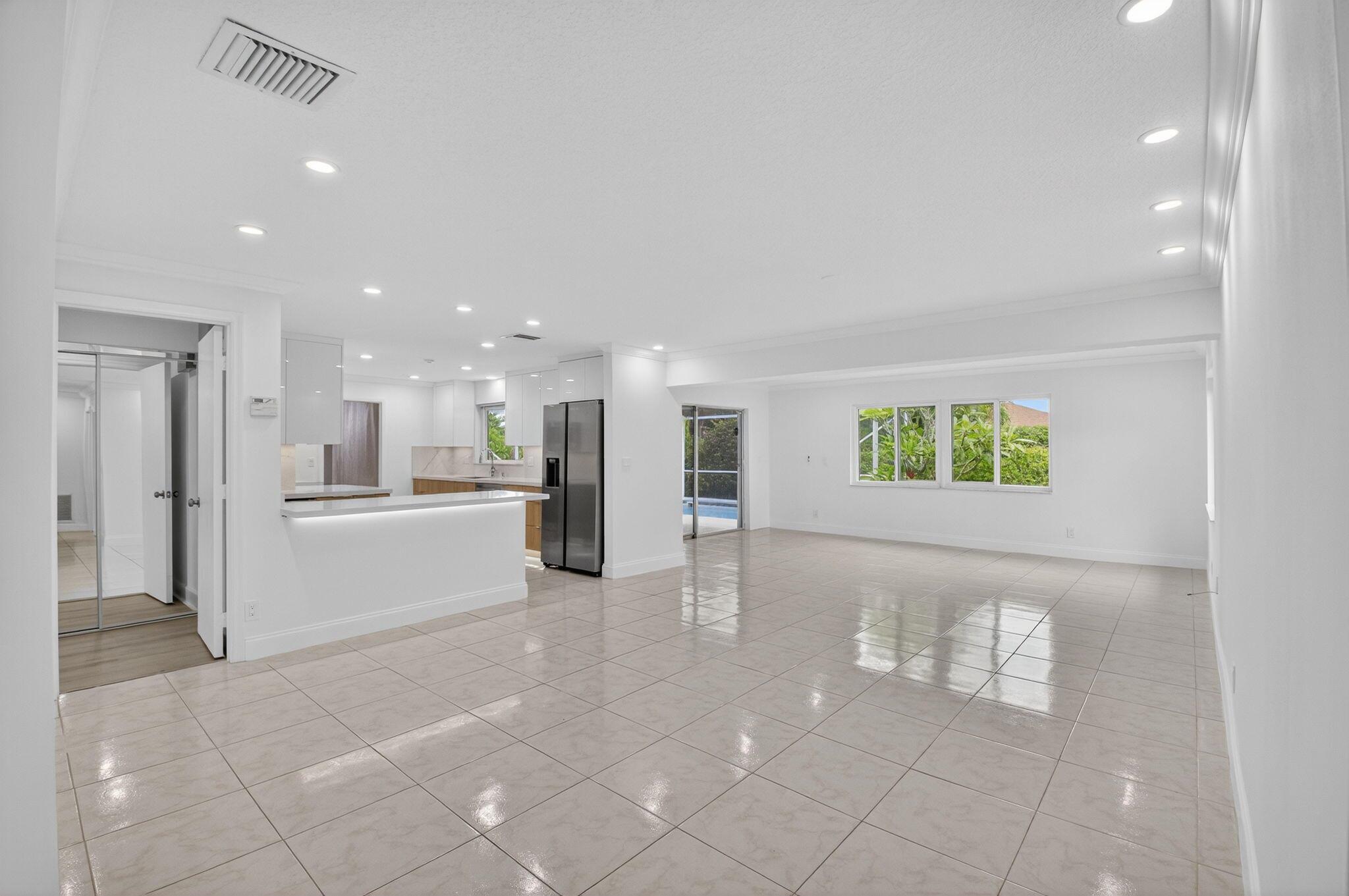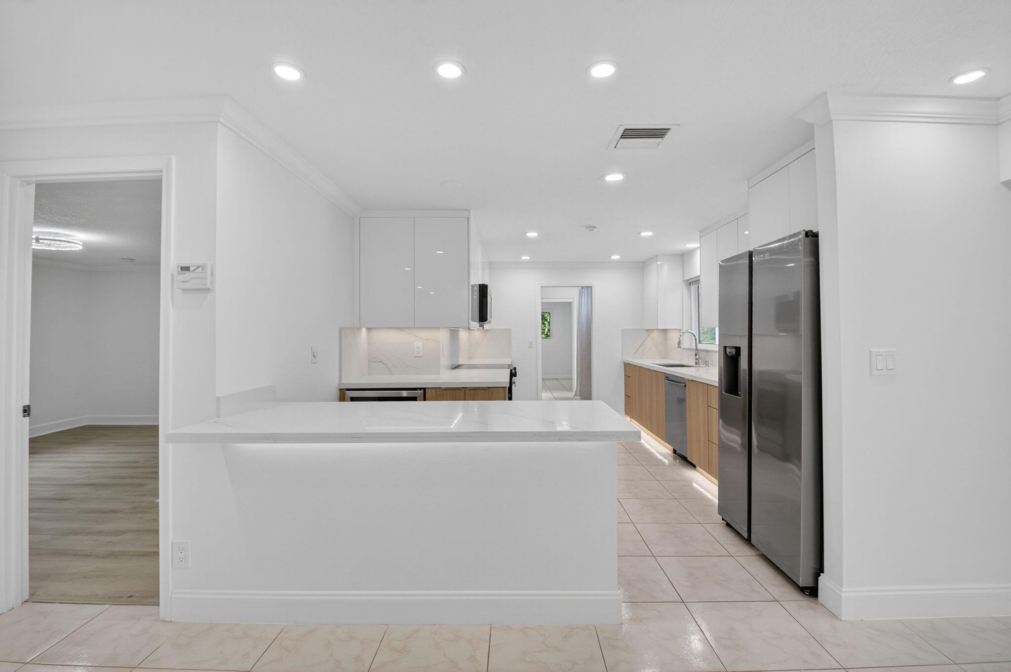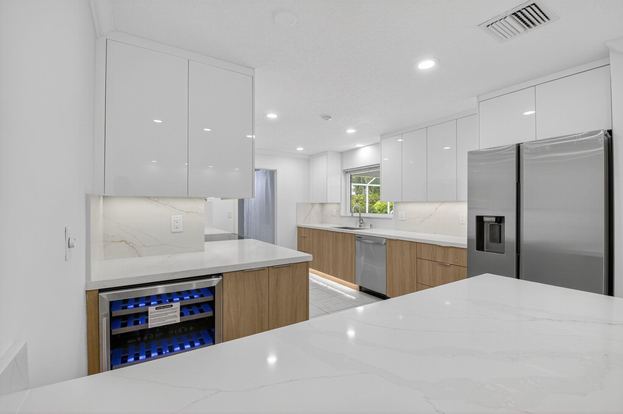 Gorgeous single family pool home in Delray Beach. Home features 4 spacious bedrooms + flex/bonus room, 2,200+ square feet under air, fully upgraded, brand new two-tone kitchen with custom cabinetry, new appliances, wine cooler and beautiful Quartz countertops. Brand new bathrooms, custom LED lighting all throughout the home, spacious walk-in closet in master bedroom w/ custom powder room. This home offers the perfect blend of luxury, convenience and privacy. 2 car garage plus oversized driveway, hurricane impact windows, big pool patio and large backyard (over 10,000 sqft LOT) with fruit trees and a garden oasis for privacy. Ideal for entertainment and summer vibes all year round! Salt water pool system, no HOA, split floor plan, abundance of natural, heated pool, well water and more!