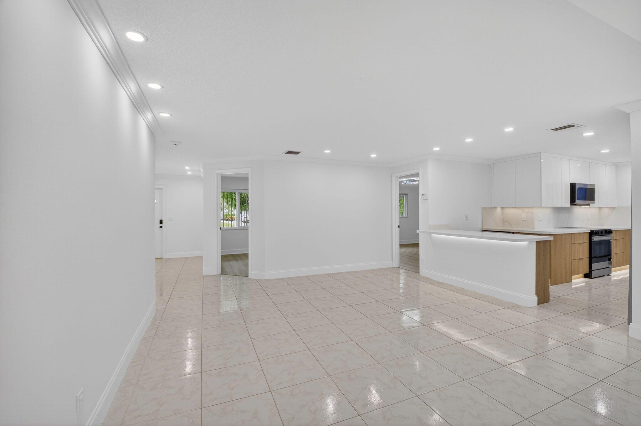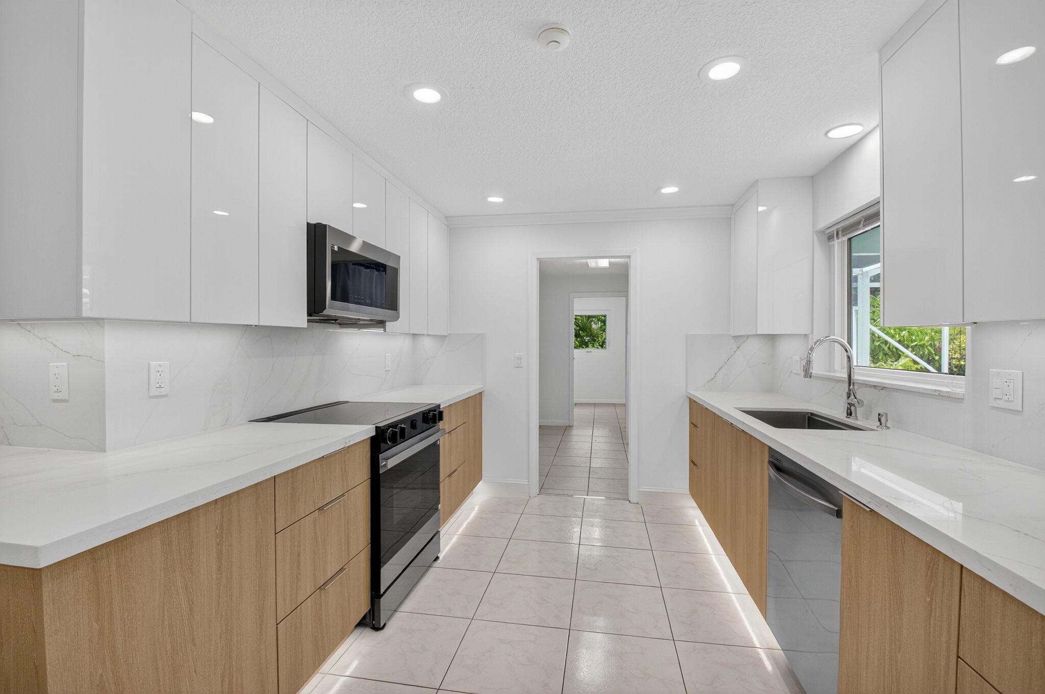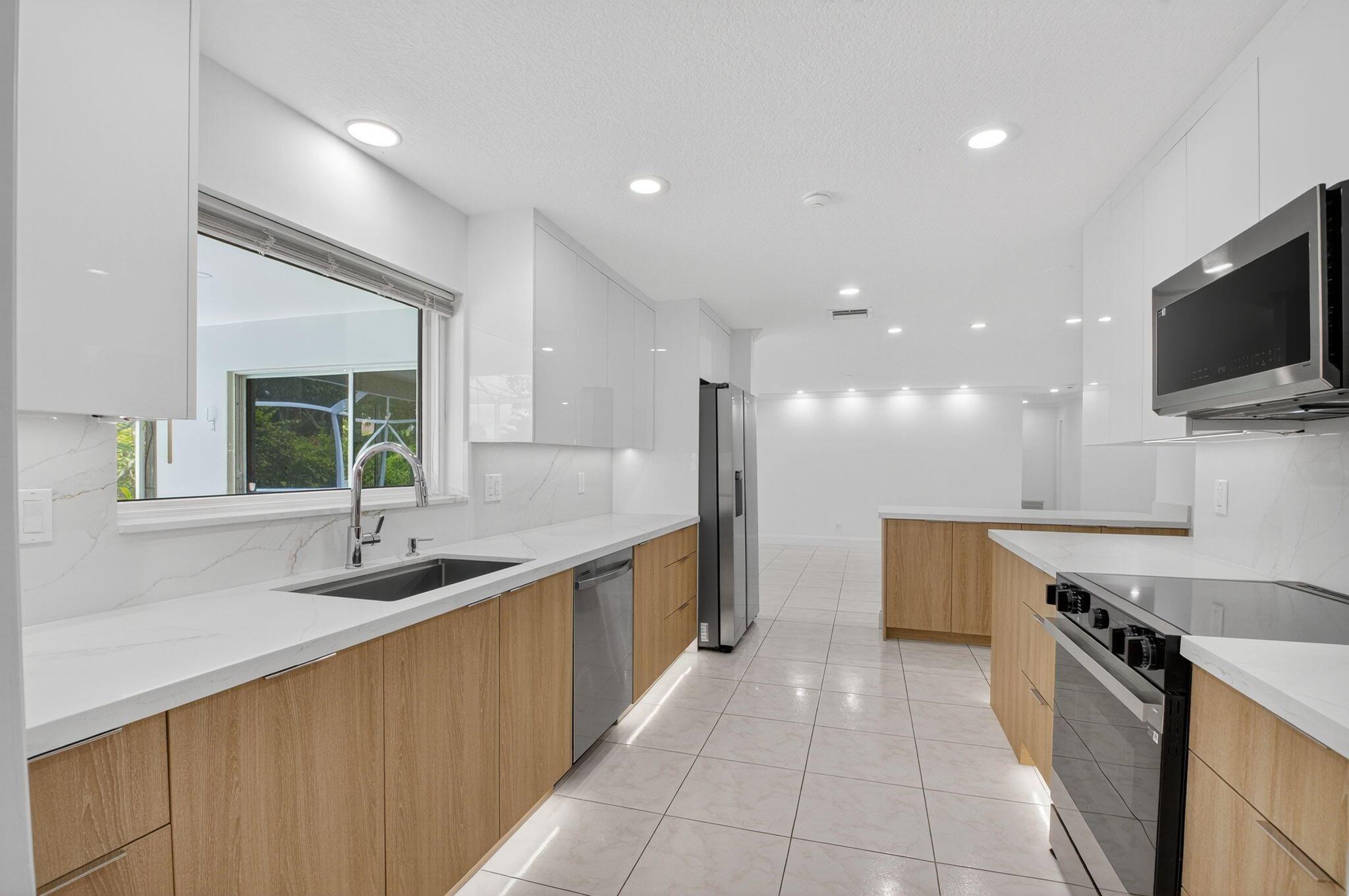 Gorgeous single family pool home in Delray Beach. Home features 4 spacious bedrooms + flex/bonus room, 2,200+ square feet under air, fully upgraded, brand new two-tone kitchen with custom cabinetry, new appliances, wine cooler and beautiful Quartz countertops. Brand new bathrooms, custom LED lighting all throughout the home, spacious walk-in closet in master bedroom w/ custom powder room. This home offers the perfect blend of luxury, convenience and privacy. 2 car garage plus oversized driveway, hurricane impact windows, big pool patio and large backyard (over 10,000 sqft LOT) with fruit trees and a garden oasis for privacy. Ideal for entertainment and summer vibes all year round! Salt water pool system, no HOA, split floor plan, abundance of natural, heated pool, well water and more!