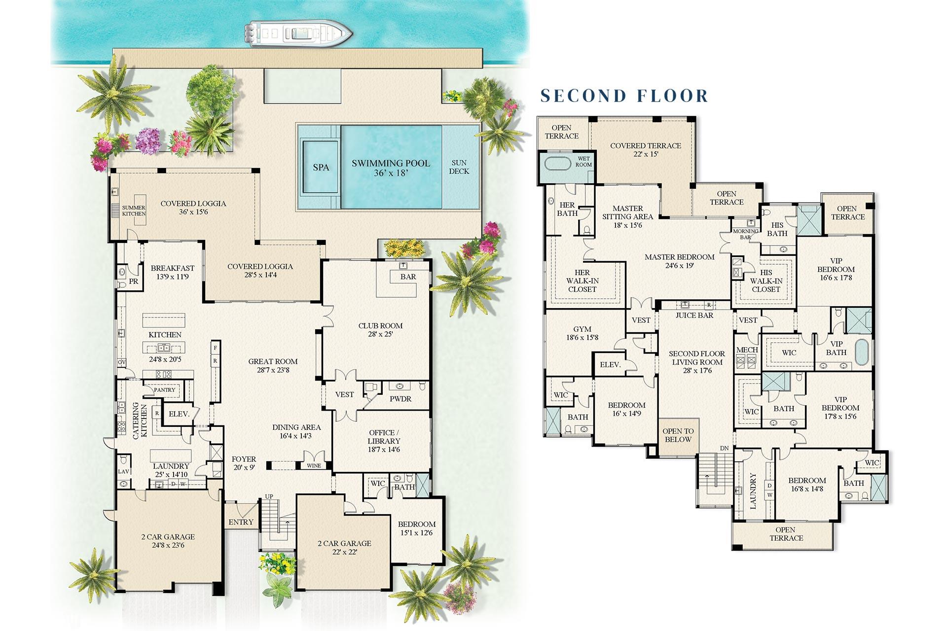 Experience unparalleled luxury in this brand-new waterfront estate in the prestigious Royal Palm Yacht & Country Club. Designed by The Benedict Bullock Group and masterfully built by Hanna Homes, this residence offers over 10,000 square feet of exquisitely crafted living space, seamlessly blending modern sophistication with timeless elegance. A grand entryway leads to expansive living areas, where walls of glass frame breathtaking water views. The gourmet kitchen, complemented by an attached service kitchen, is a chef’s dream, outfitted with top-tier appliances and custom finishes. A sophisticated club room with a full bar, a spacious office, and a state-of-the-art gym elevate the home’s lifestyle appeal.