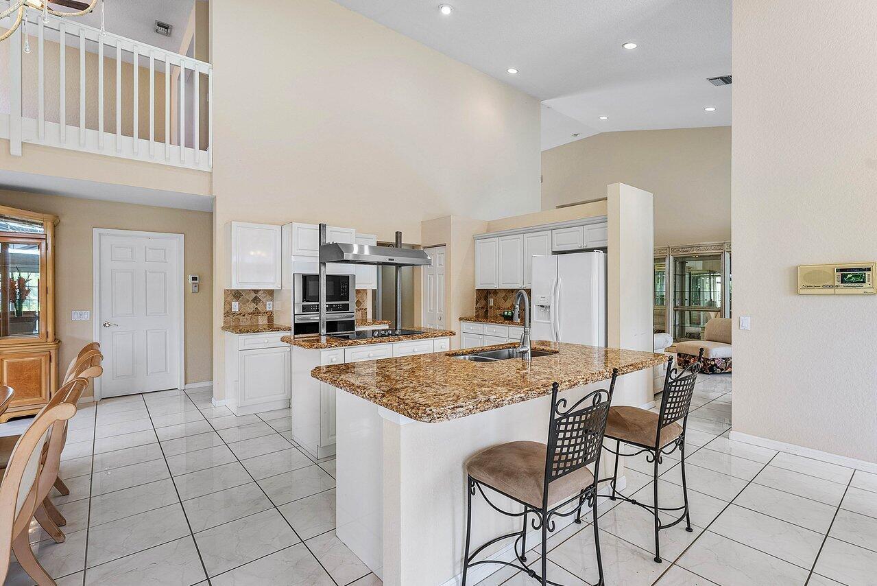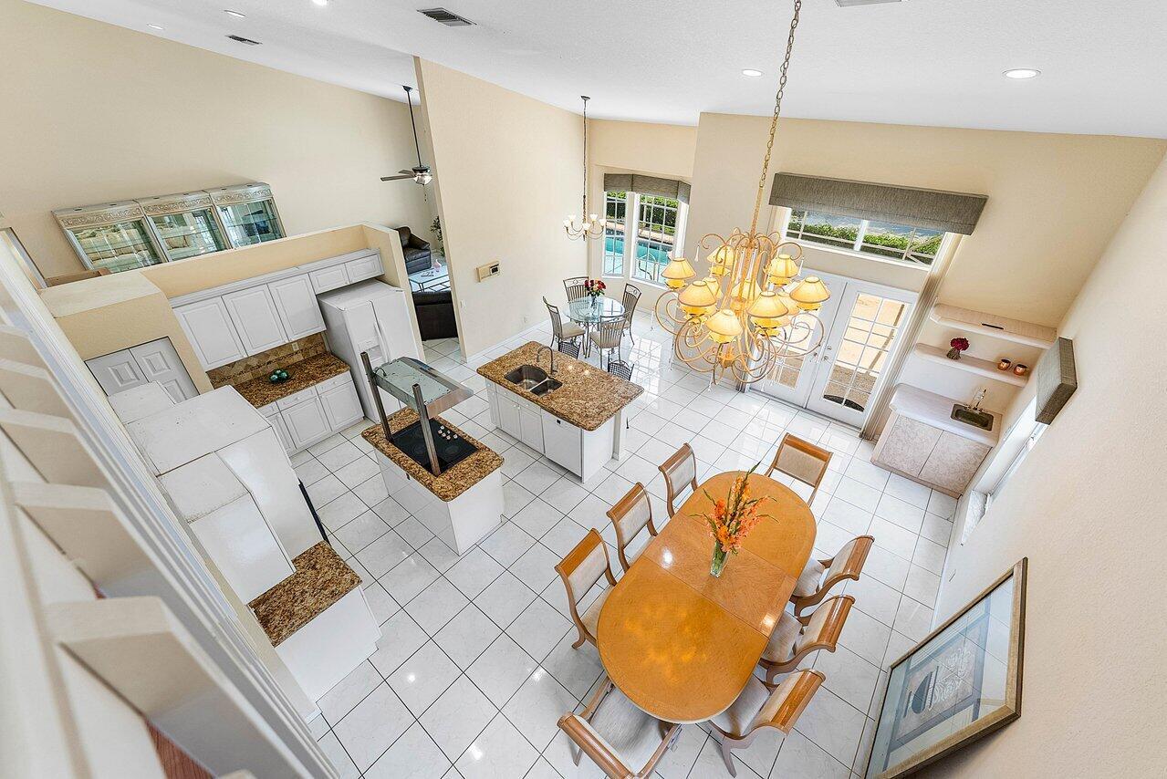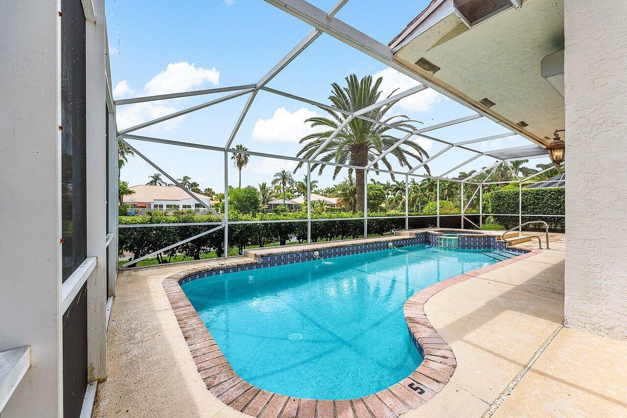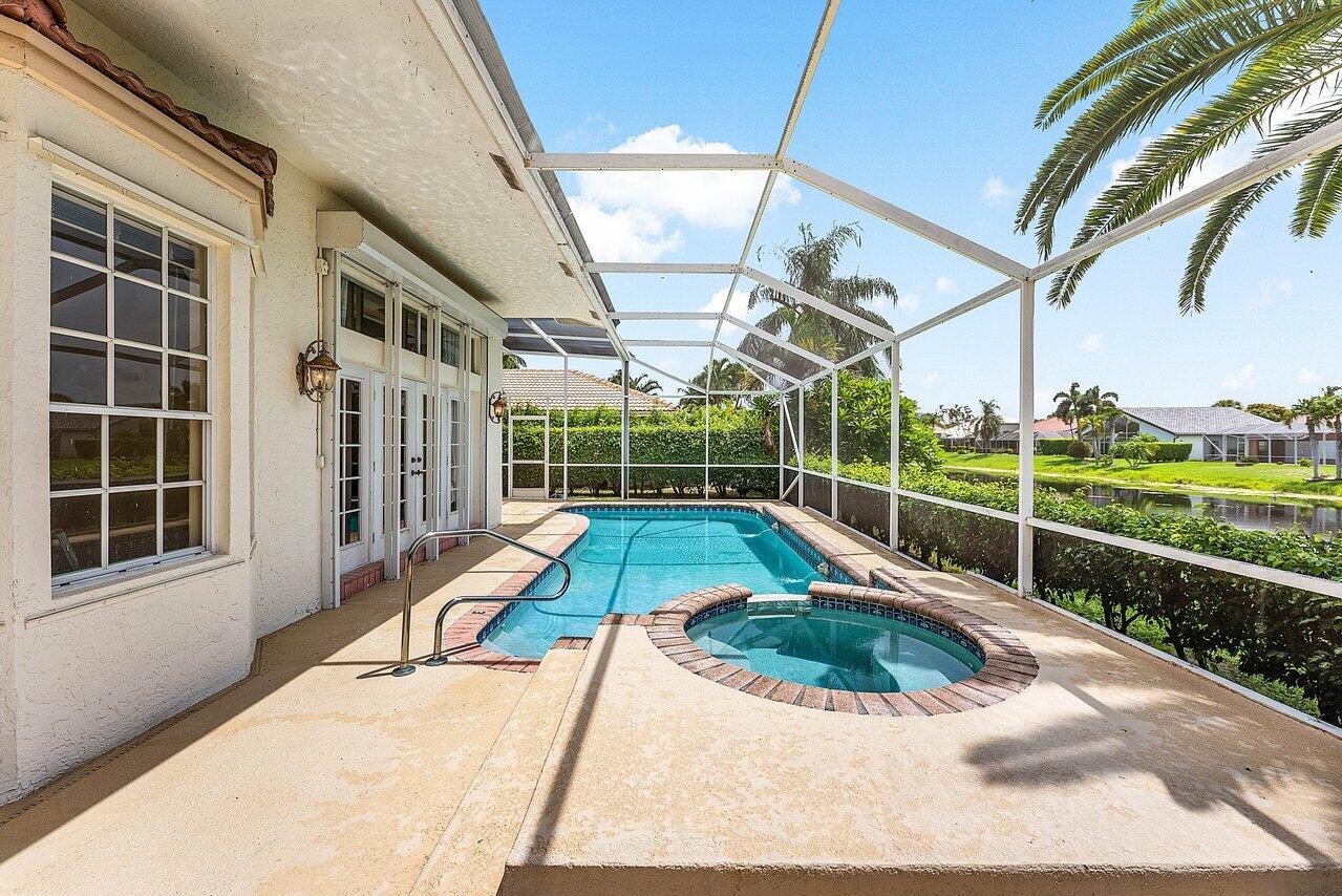 ”Spacious 4-bedroom, 3-bath lakefront pool home in a boutique gated community! This extended Flamingo model offers 4 extra feet of living space, soaring vaulted ceilings, added windows for abundant natural light, a wet bar, updated appliances, electric hurricane shutters, and a circular driveway. The 4th bedroom is currently a loft, easily convertible to a full bedroom. Serene lake views from your private pool. Price reflects the need for updates and the age of the roof–perfect opportunity to customize to your style!”