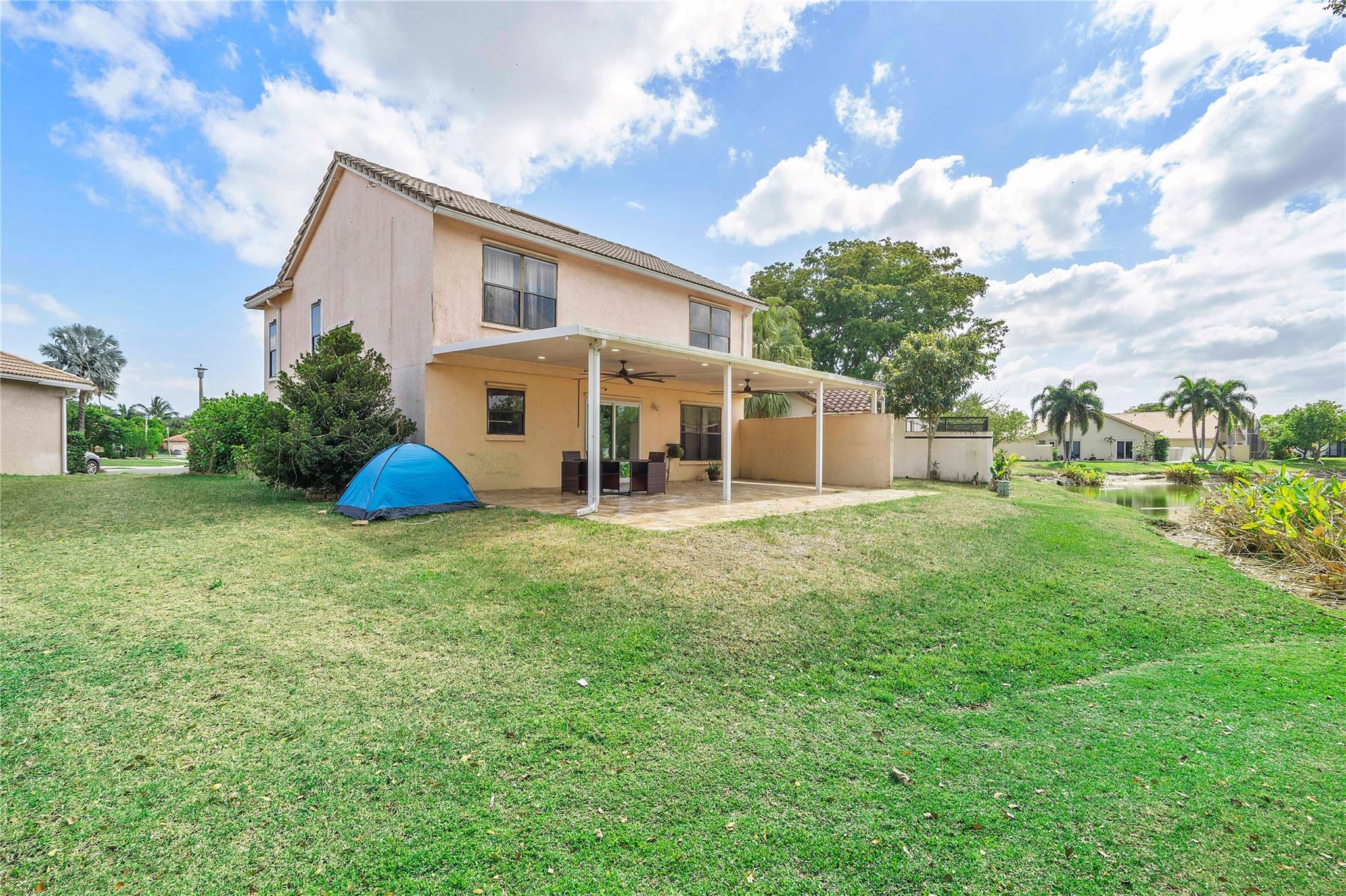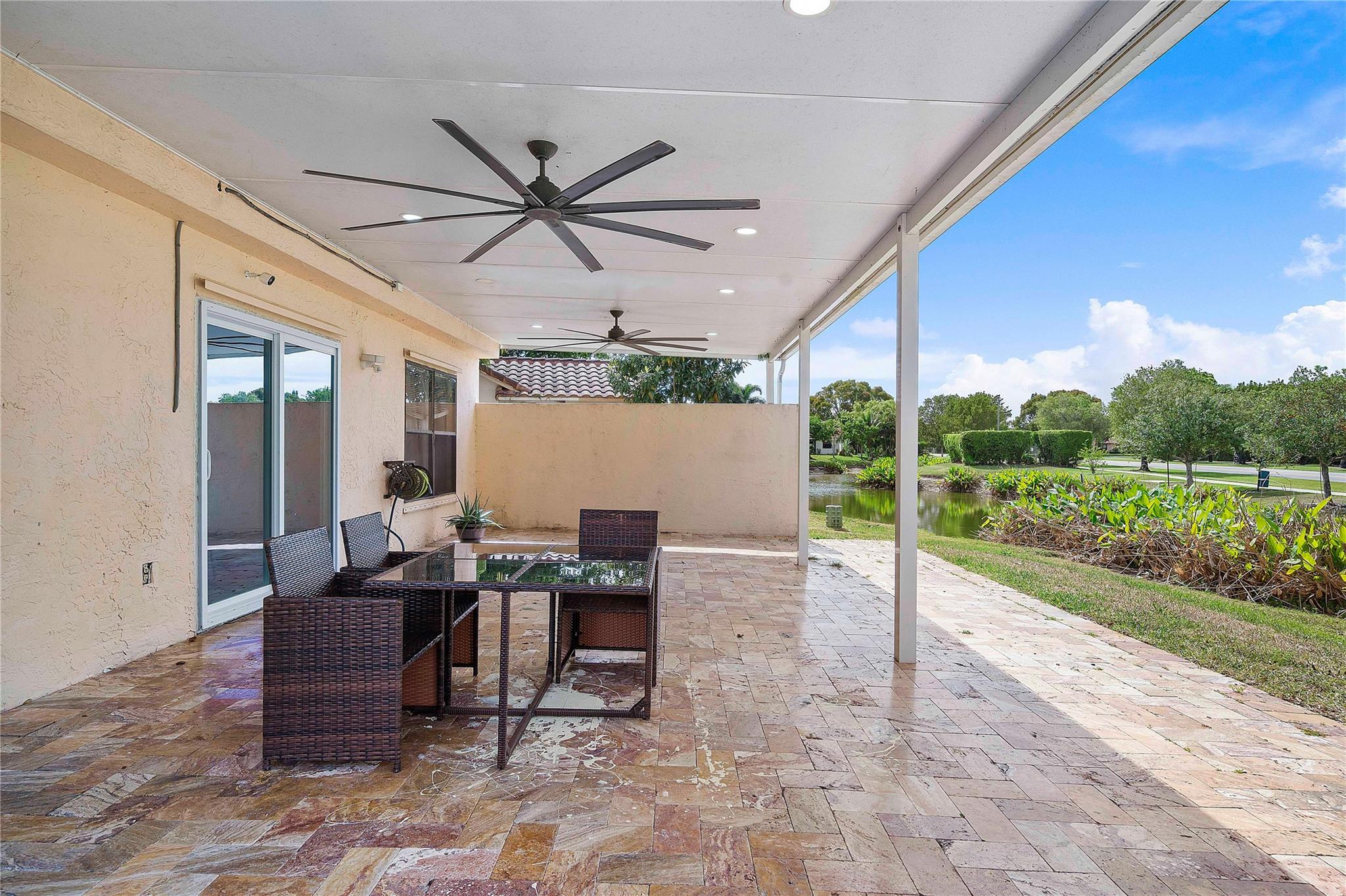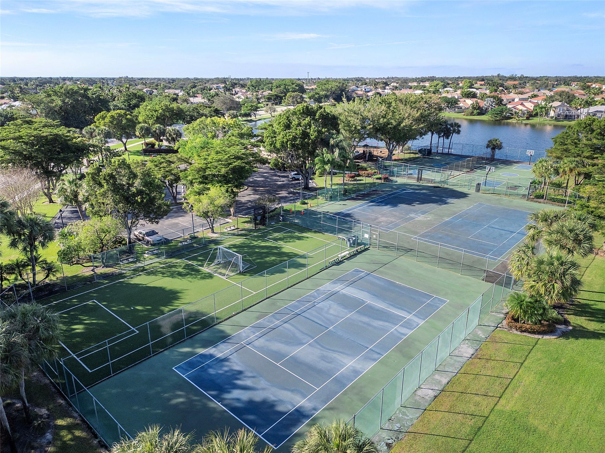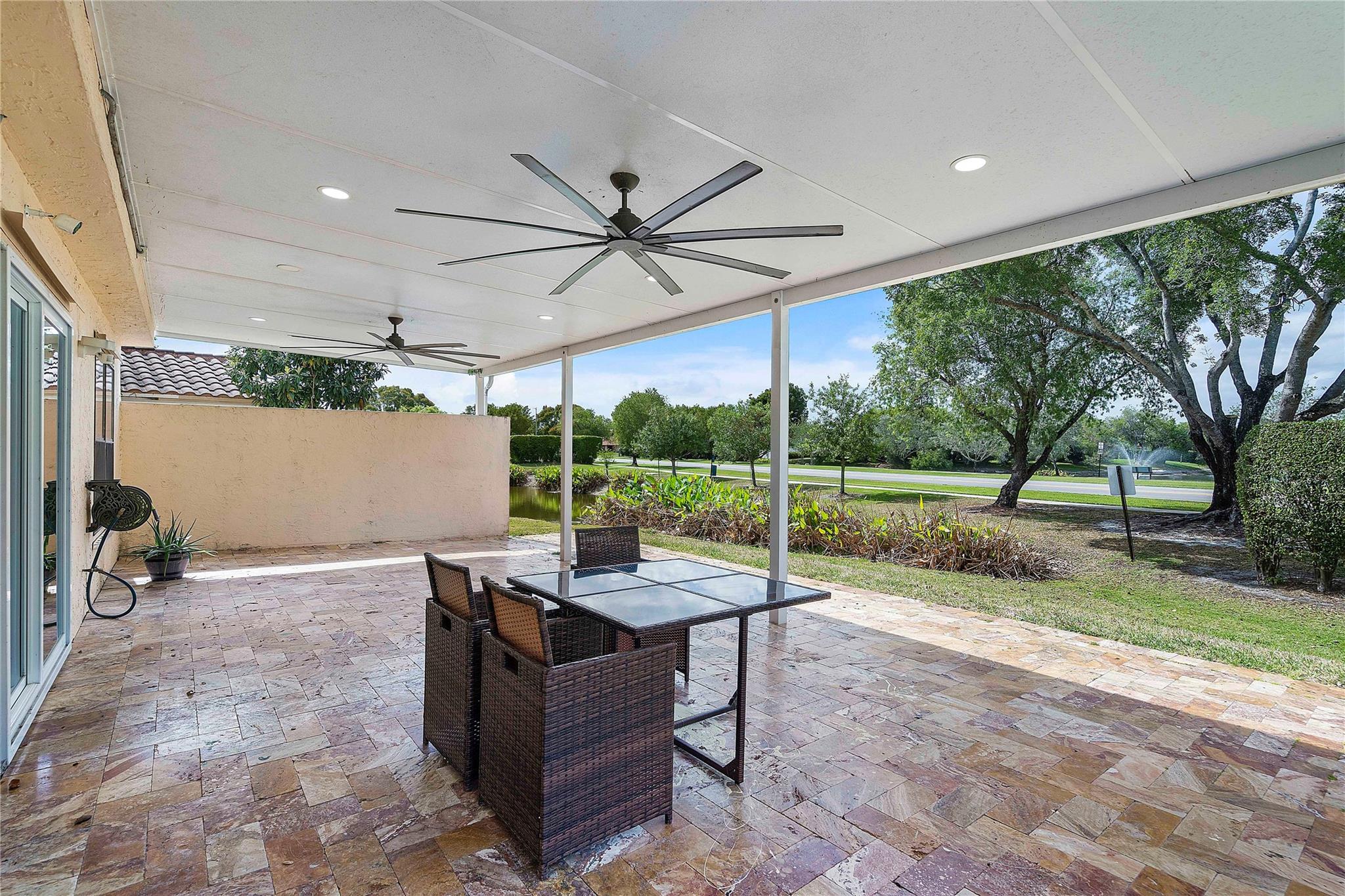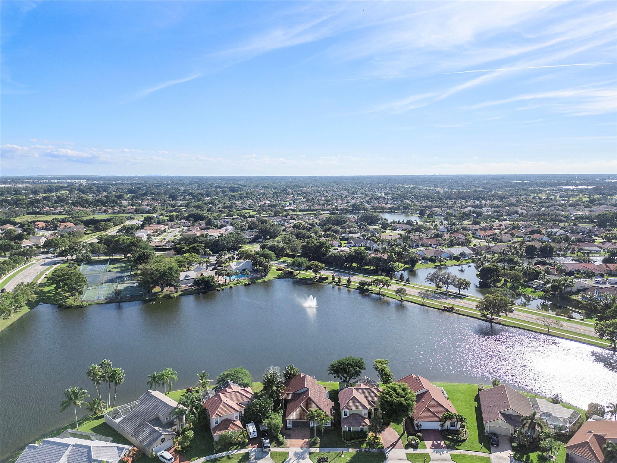 This masterpiece nestled in the prestigious Lakes at Boca Raton boasts a primary suite on the main level. Sleek Italian large format porcelain flooring & bath walls, kitchen features a stunning Brazilian onyx stone countertop & custom American maple plywood cabinetry. The bright, open floor plan is filled with natural light & enhanced by vaulted ceilings & dimmable LED lights throughout. Upgrades include: Electric Panel (2020), Tankless water heater (2020), AC (2023) with 10year warranty, stainless steel appliances(2020 with a new smart refrigerator Rain bird Wi-fi auto sprinkler system water from the lake not the city, Garage door opener (2022) & Back yard terrace with aluminum selling w/ Tumble deck travertine pavers flooring. Amenities include pool, tennis courts & gym, playground etc