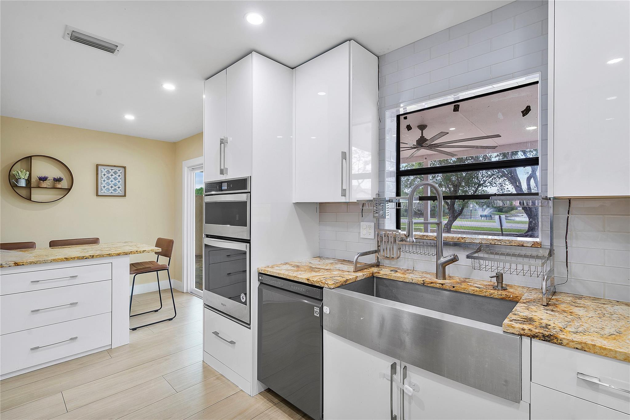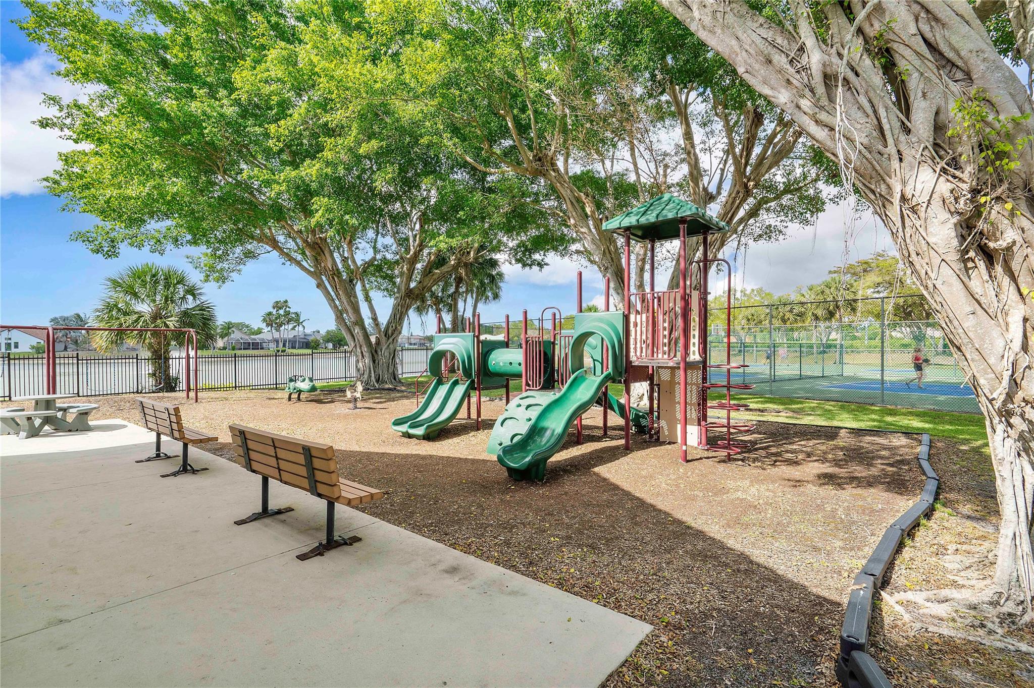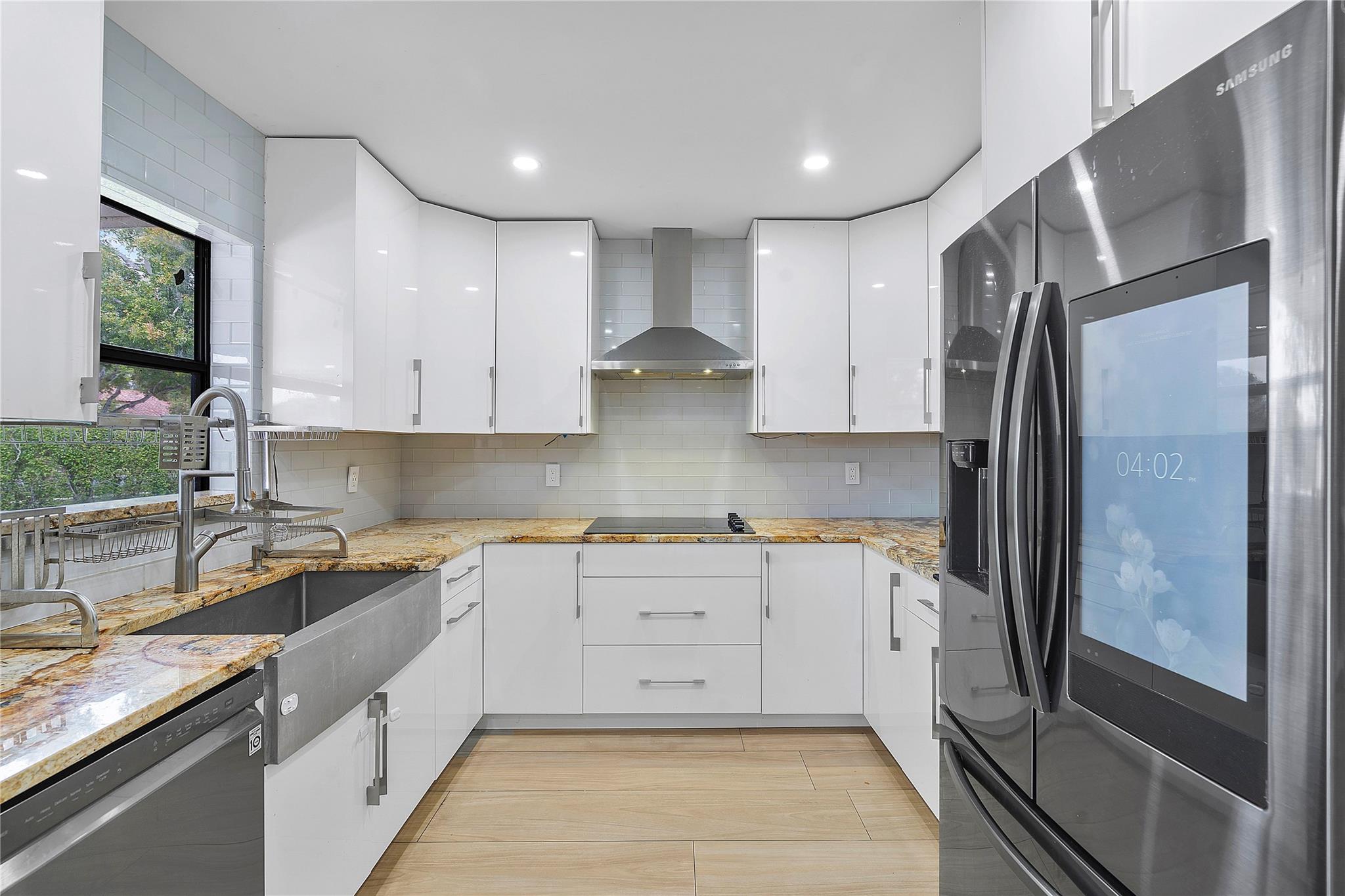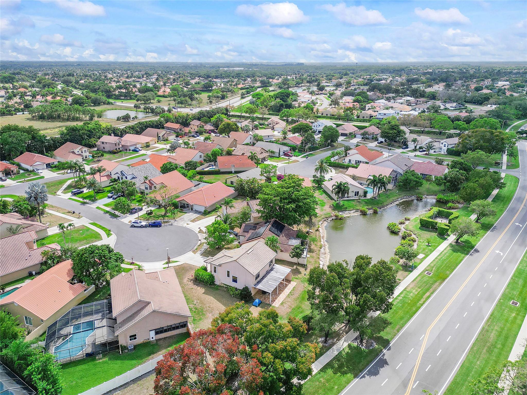 This masterpiece nestled in the prestigious Lakes at Boca Raton boasts a primary suite on the main level. Sleek Italian large format porcelain flooring & bath walls, kitchen features a stunning Brazilian onyx stone countertop & custom American maple plywood cabinetry. The bright, open floor plan is filled with natural light & enhanced by vaulted ceilings & dimmable LED lights throughout. Upgrades include: Electric Panel (2020), Tankless water heater (2020), AC (2023) with 10year warranty, stainless steel appliances(2020 with a new smart refrigerator Rain bird Wi-fi auto sprinkler system water from the lake not the city, Garage door opener (2022) & Back yard terrace with aluminum selling w/ Tumble deck travertine pavers flooring. Amenities include pool, tennis courts & gym, playground etc