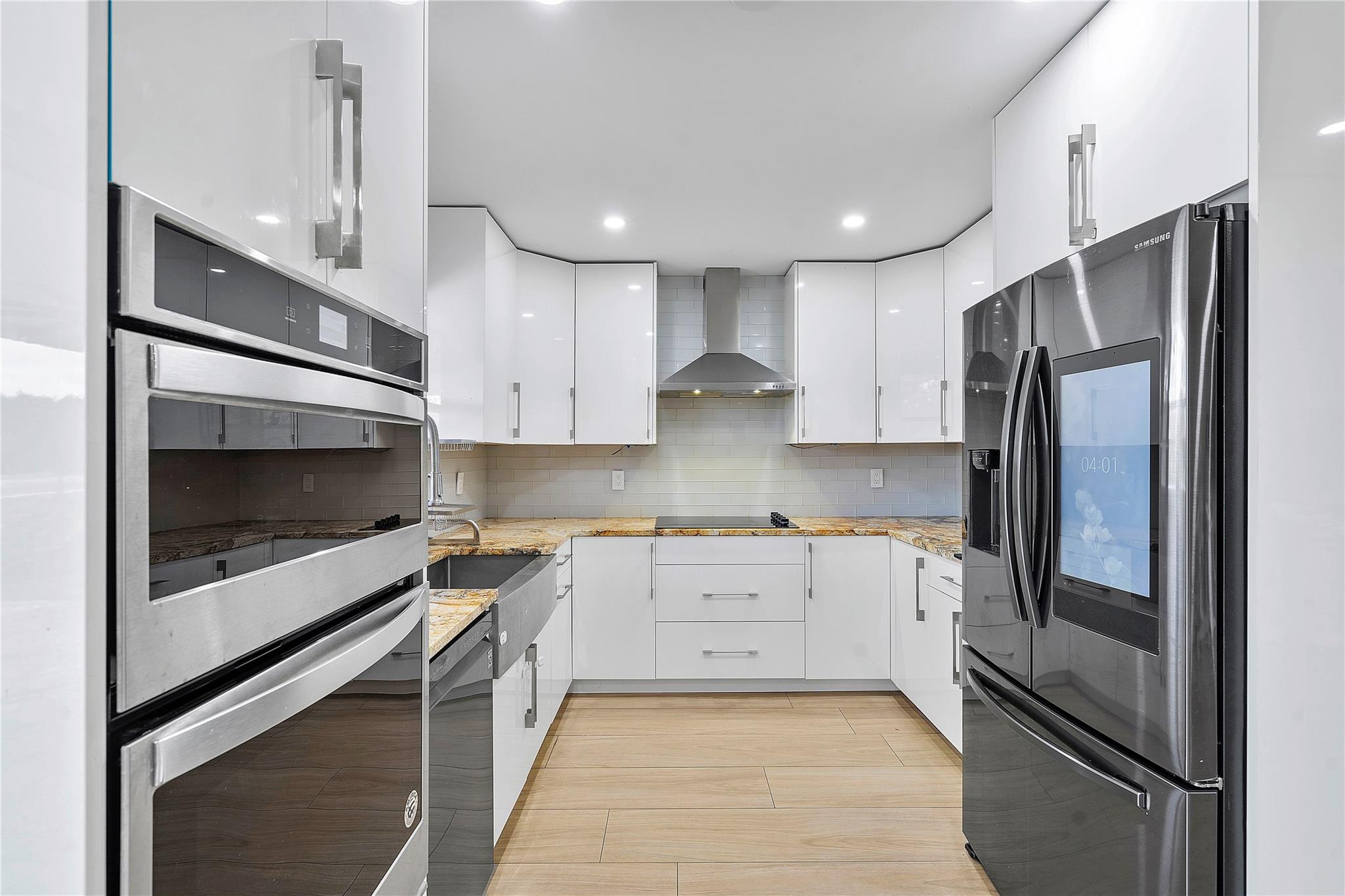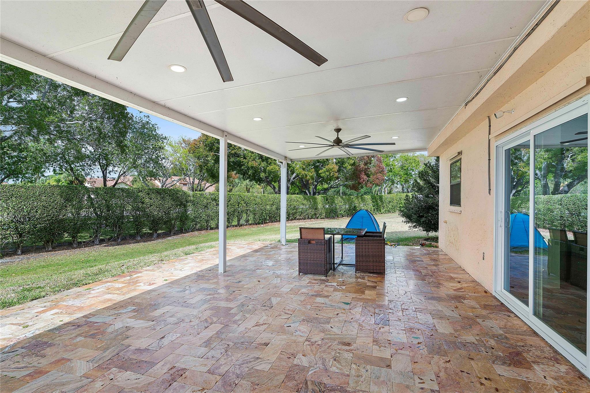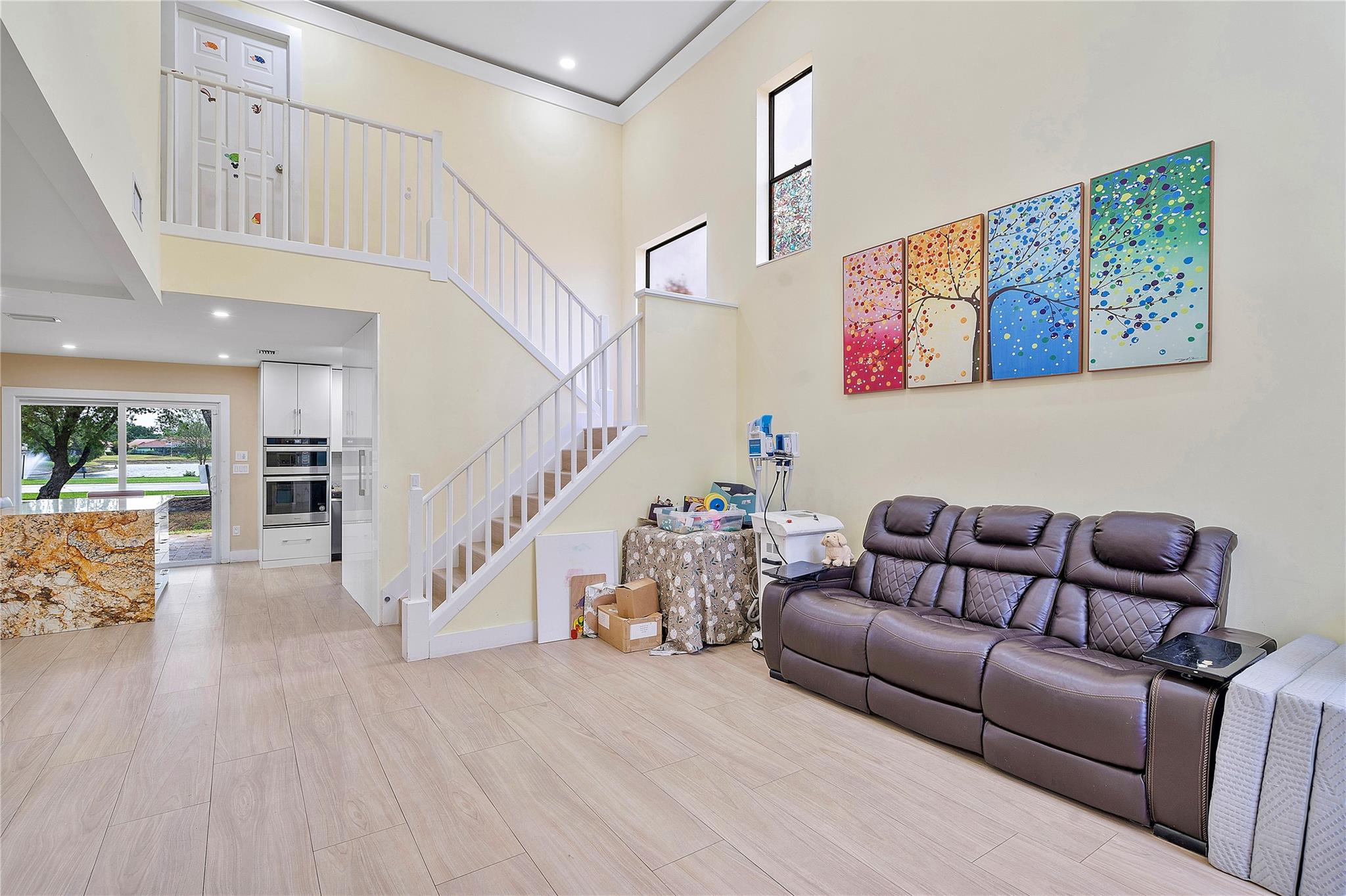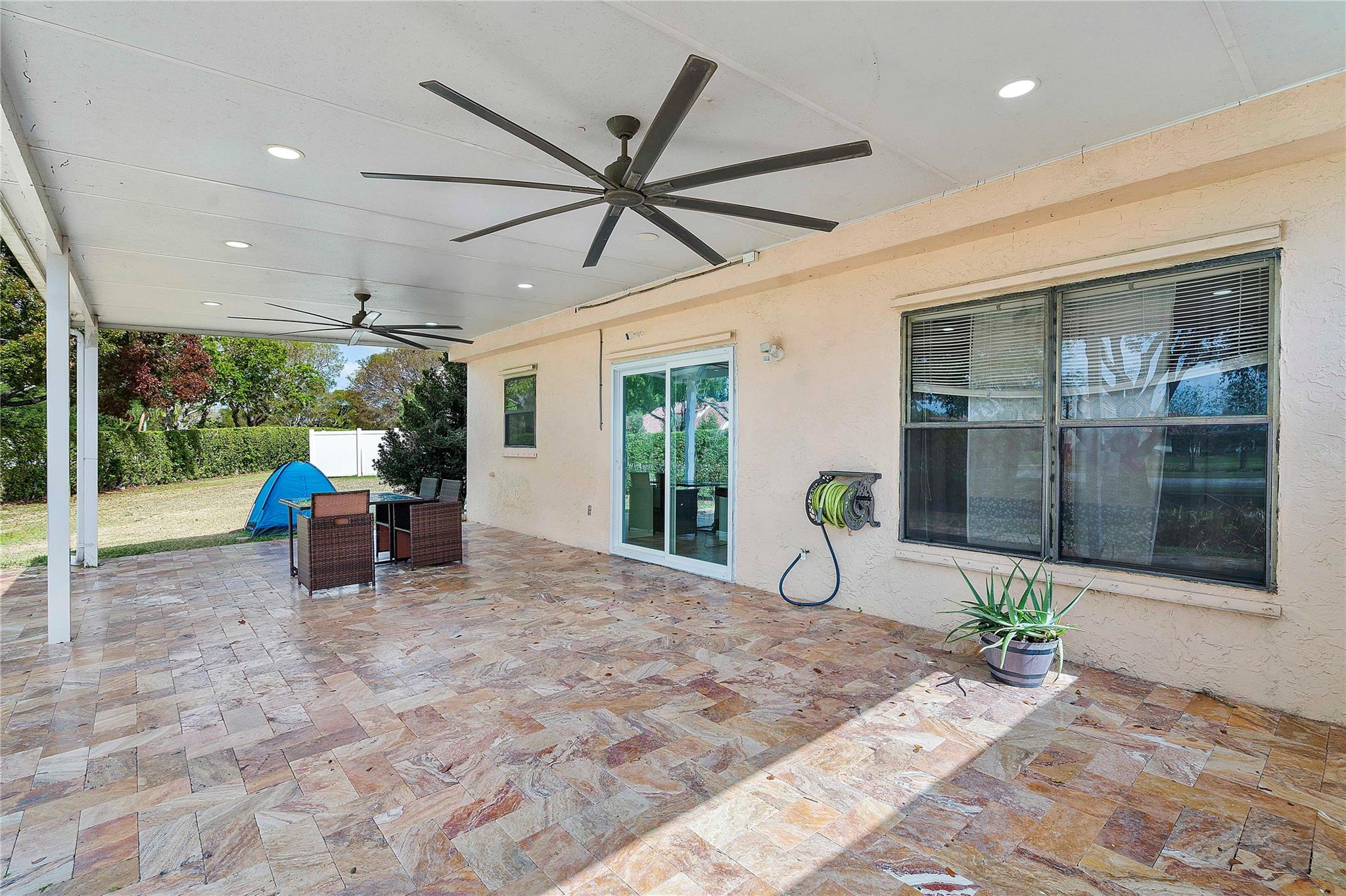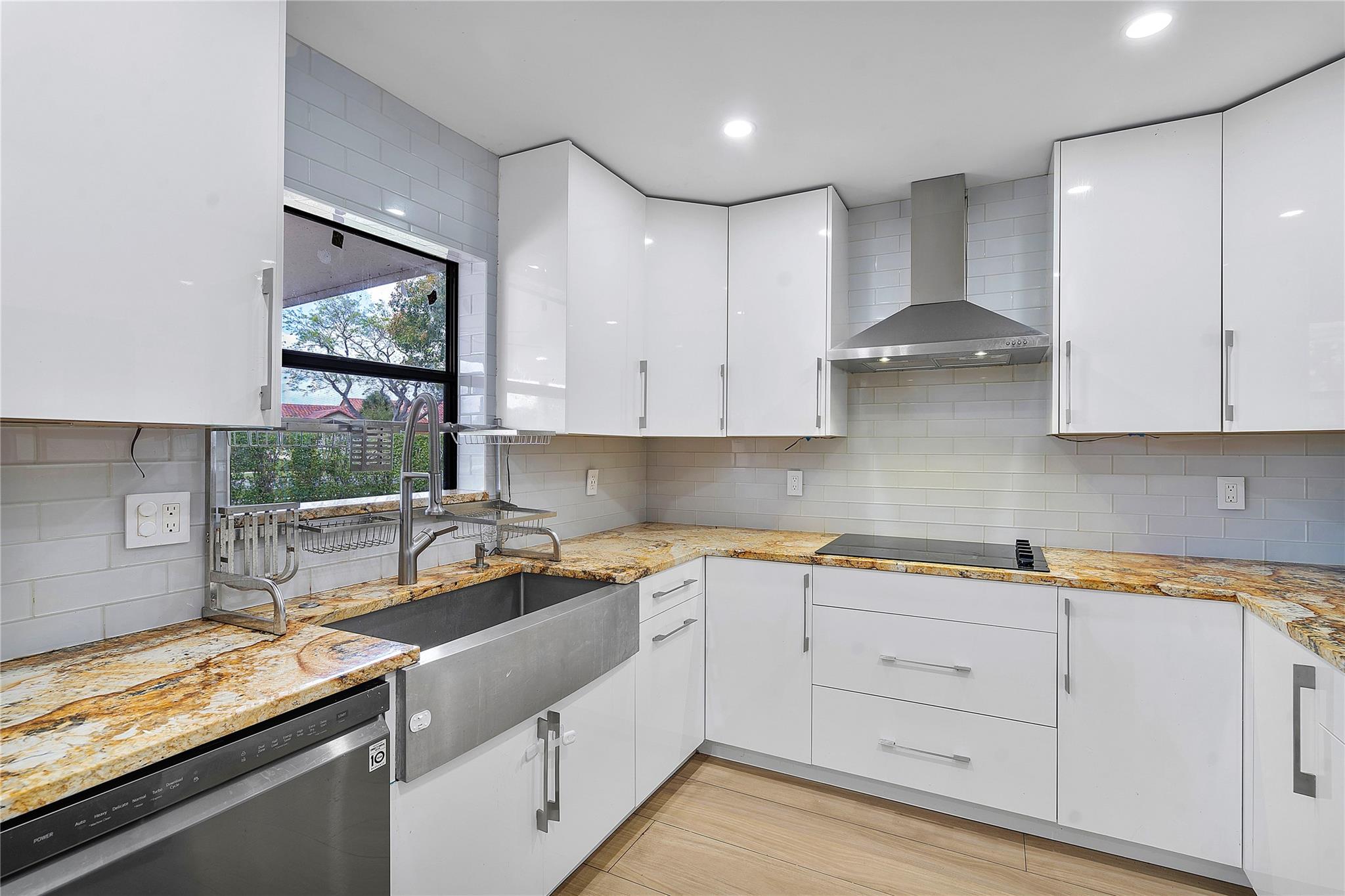 This masterpiece nestled in the prestigious Lakes at Boca Raton boasts a primary suite on the main level. Sleek Italian large format porcelain flooring & bath walls, kitchen features a stunning Brazilian onyx stone countertop & custom American maple plywood cabinetry. The bright, open floor plan is filled with natural light & enhanced by vaulted ceilings & dimmable LED lights throughout. Upgrades include: Electric Panel (2020), Tankless water heater (2020), AC (2023) with 10year warranty, stainless steel appliances(2020 with a new smart refrigerator Rain bird Wi-fi auto sprinkler system water from the lake not the city, Garage door opener (2022) & Back yard terrace with aluminum selling w/ Tumble deck travertine pavers flooring. Amenities include pool, tennis courts & gym, playground etc