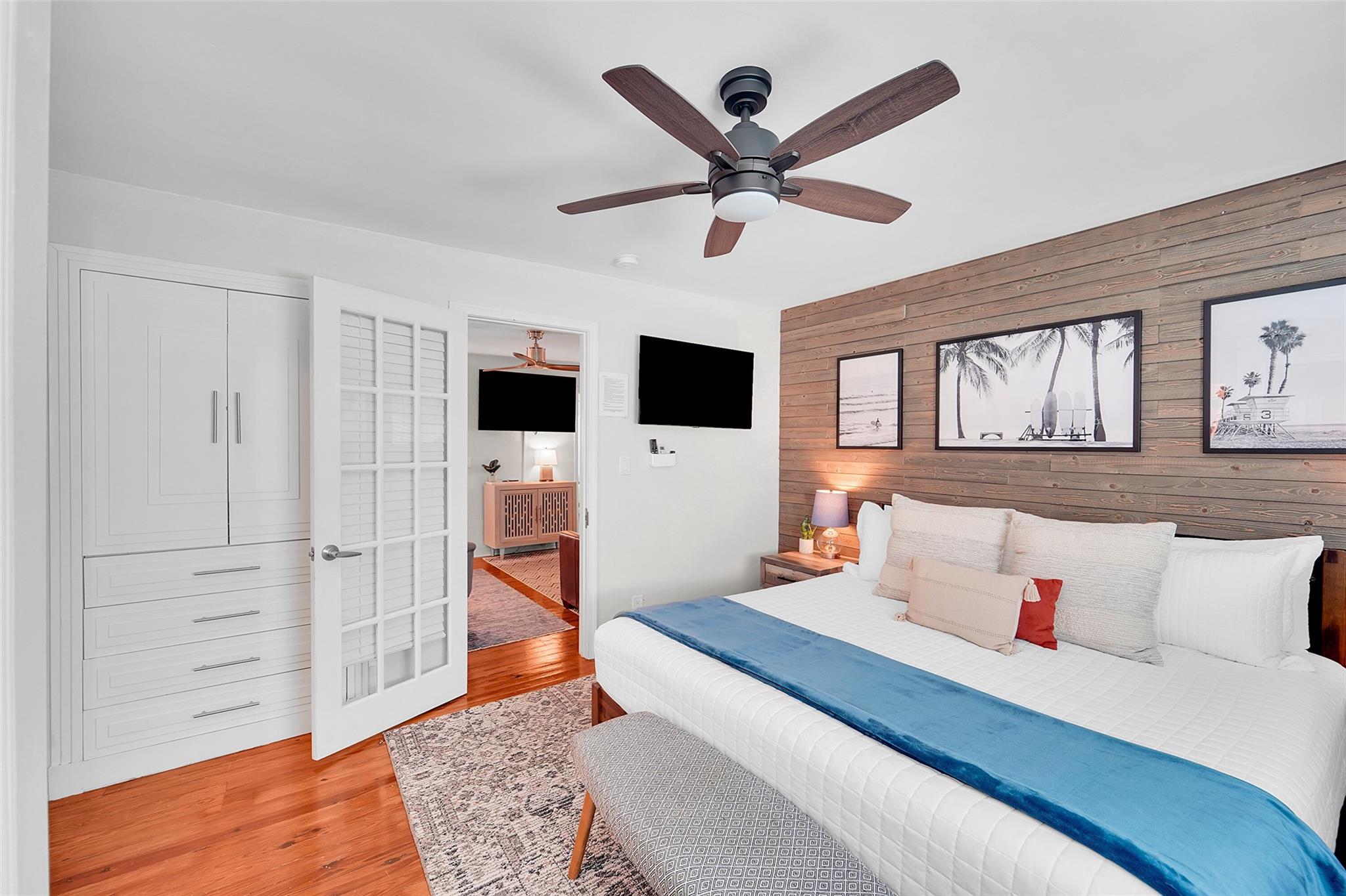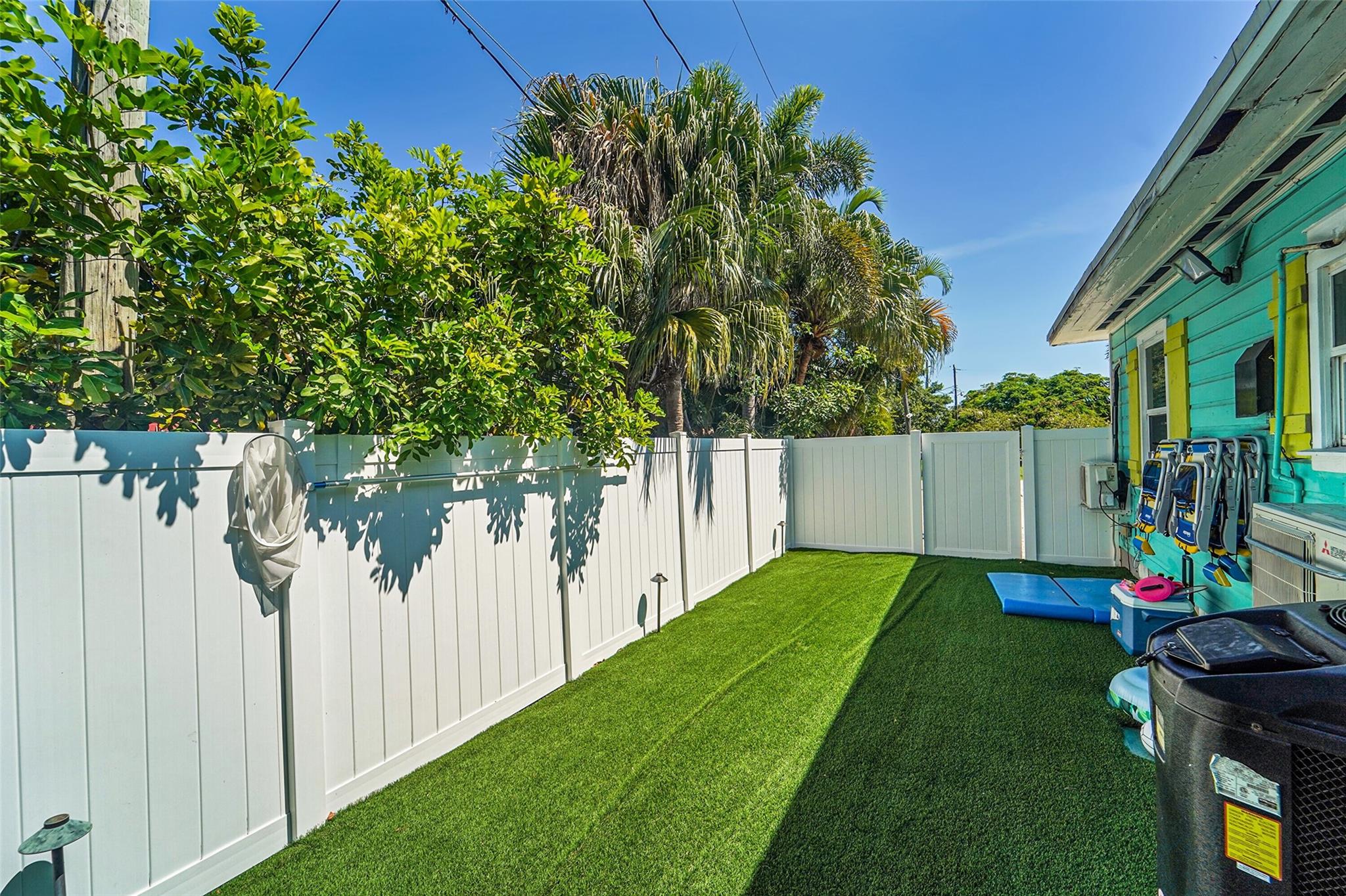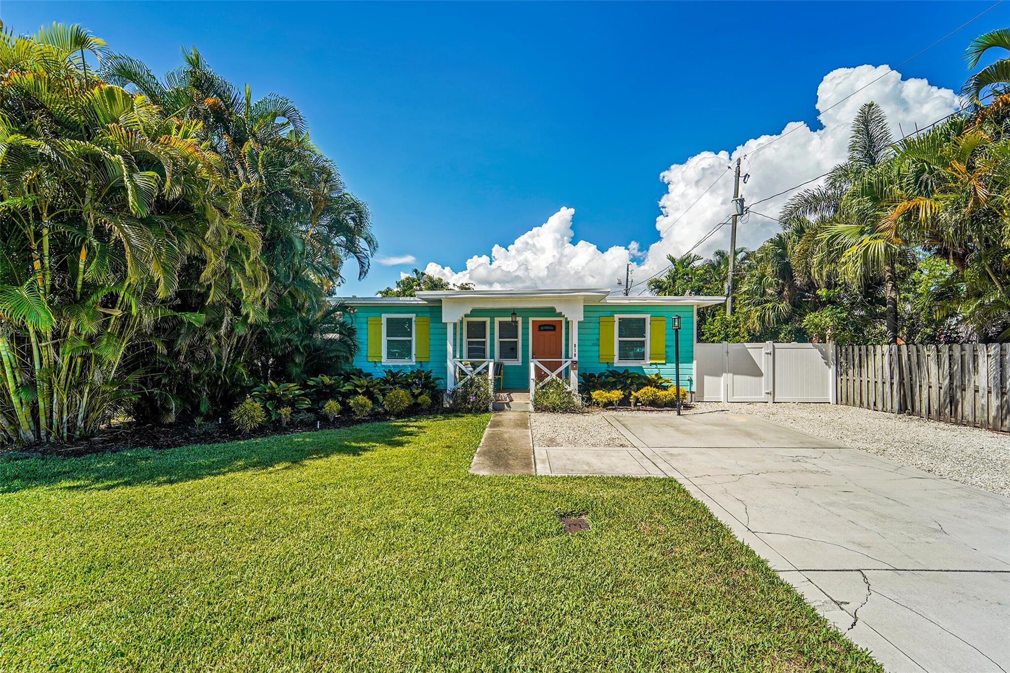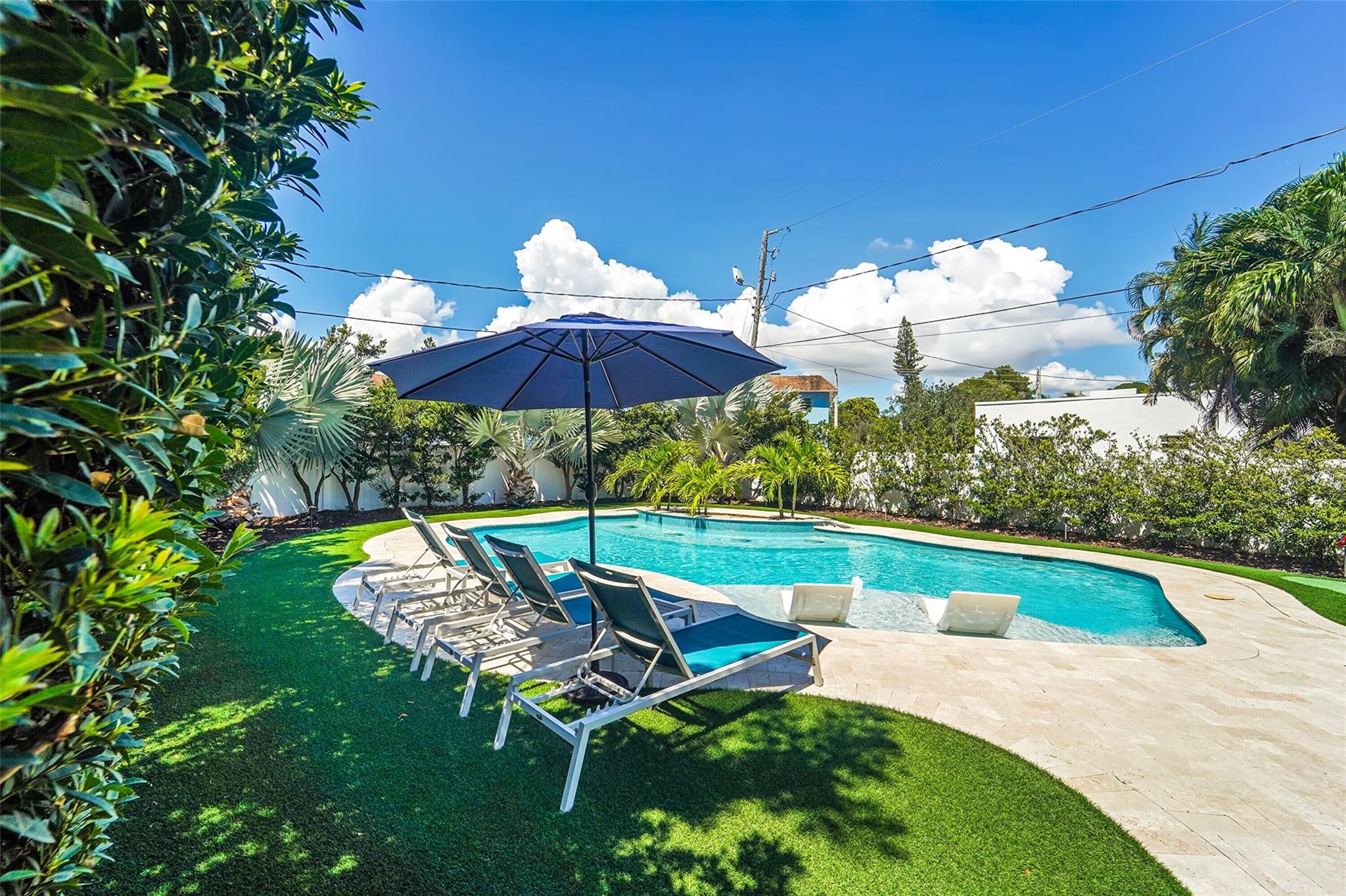 Charming, Key West style home with a large private oasis, a putting green, and a heated saltwater pool with sun shelf, and a swim-up bar for entertaining.