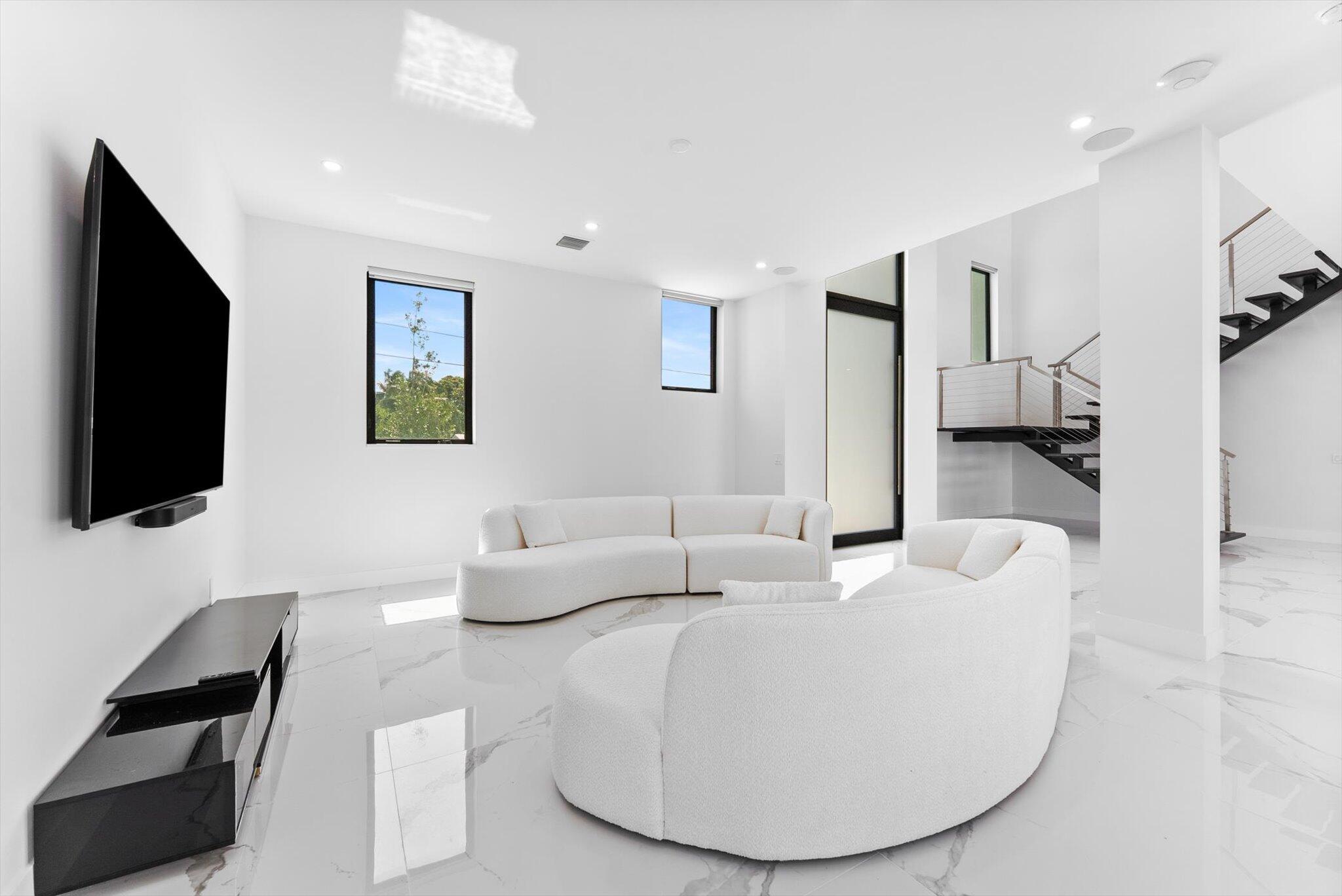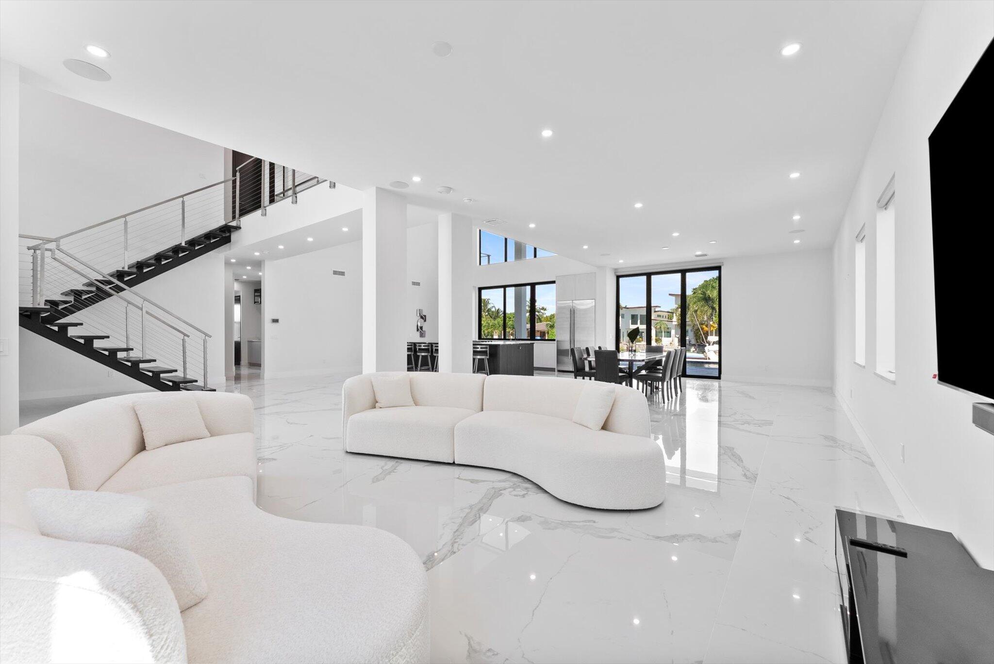 Impeccably designed and move-in ready, this sunlit two-story new construction offers elevated living with soaring ceilings, 4’x4′ designer tiles, and motorized shades on the main level. The chef’s kitchen impresses with a dramatic black double-slab island, gas cooktop, and top-tier appliances. Upstairs, rich hardwood floors lead to a luxurious primary suite featuring a private sitting room, spa-inspired bath, oversized walk-in closet, and a covered balcony. All bedrooms are ensuite with walk-in closets; one includes its own balcony with tranquil water views. Outdoor features include a covered patio, resort-style pool/spa, hookups for a summer kitchen, and an 80′ deepwater dock with full electric–no fixed bridges. Full impact glass & generator-ready. The epitome of waterfront luxury living