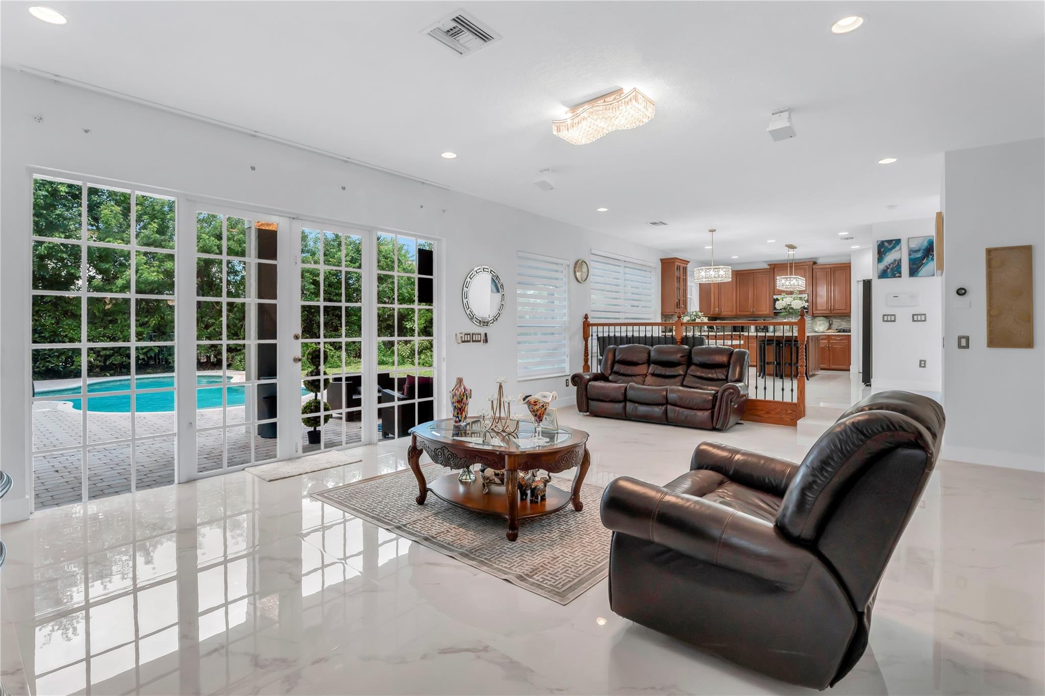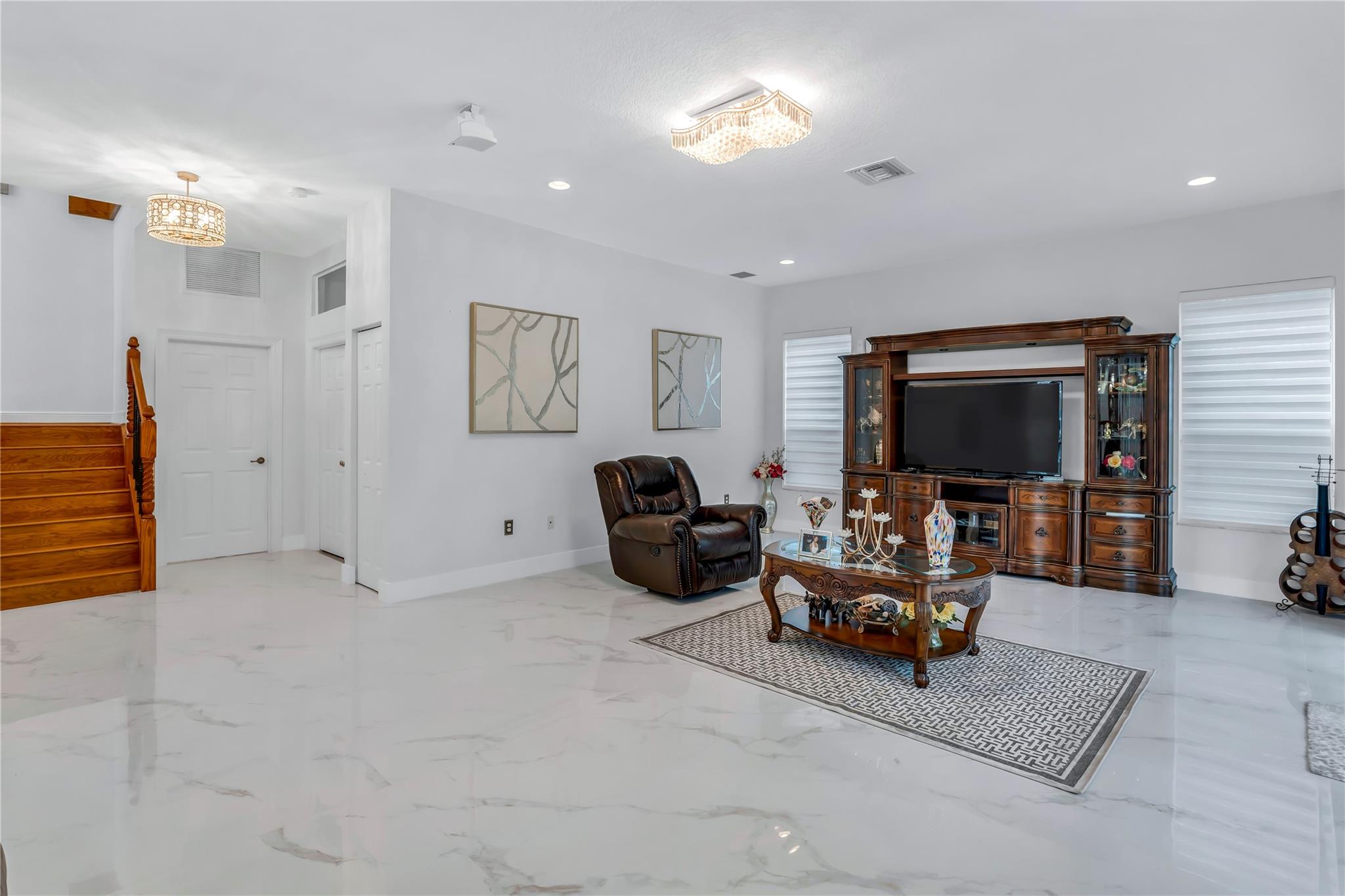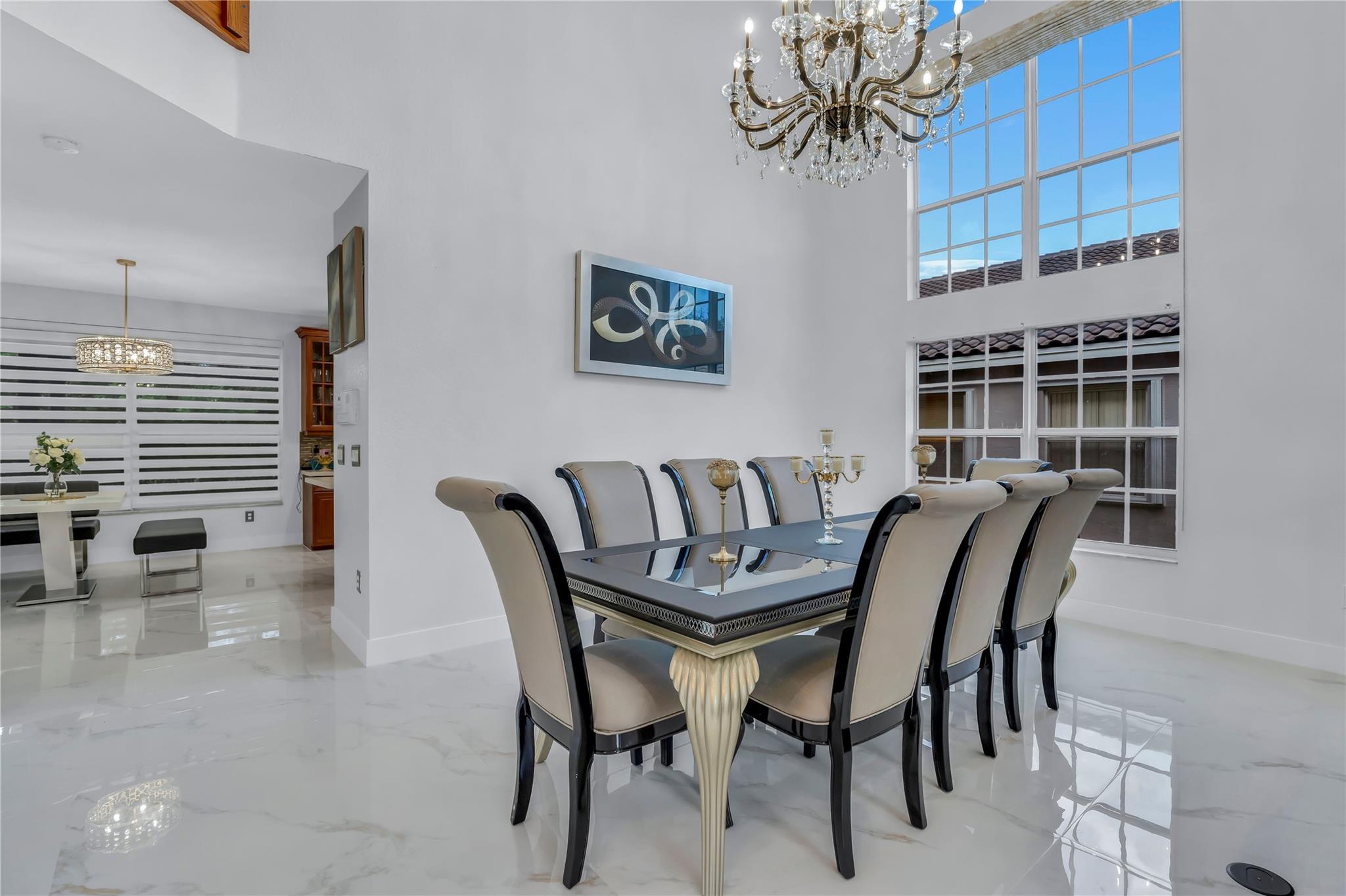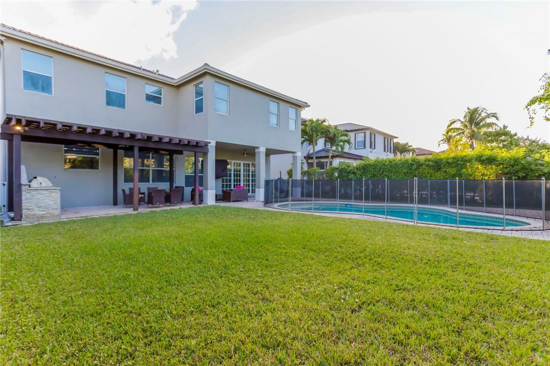 Experience luxury living in this beautifully updated 6-bedroom, 4-bathroom home in the prestigious, resort-style community of Sunset Lakes. This spacious residence features soaring ceilings, an oversized quartz island, and brand-new refrigerator, dishwasher, and microwave. Enjoy renovated bathrooms, 48×48 porcelain tile flooring downstairs, new plumbing & a new water heater. A full bedroom and bathroom on the first floor are perfect for guests or multigenerational living. Step outside to your private backyard oasis with a pool, pergola, and fully equipped outdoor kitchen. The community offers 24/7 guard-gated security & resort-style amenities, including a clubhouse, gym, pool, and tennis, basketball, and volleyball courts. The chandelier in the dining area is not included in the sale.