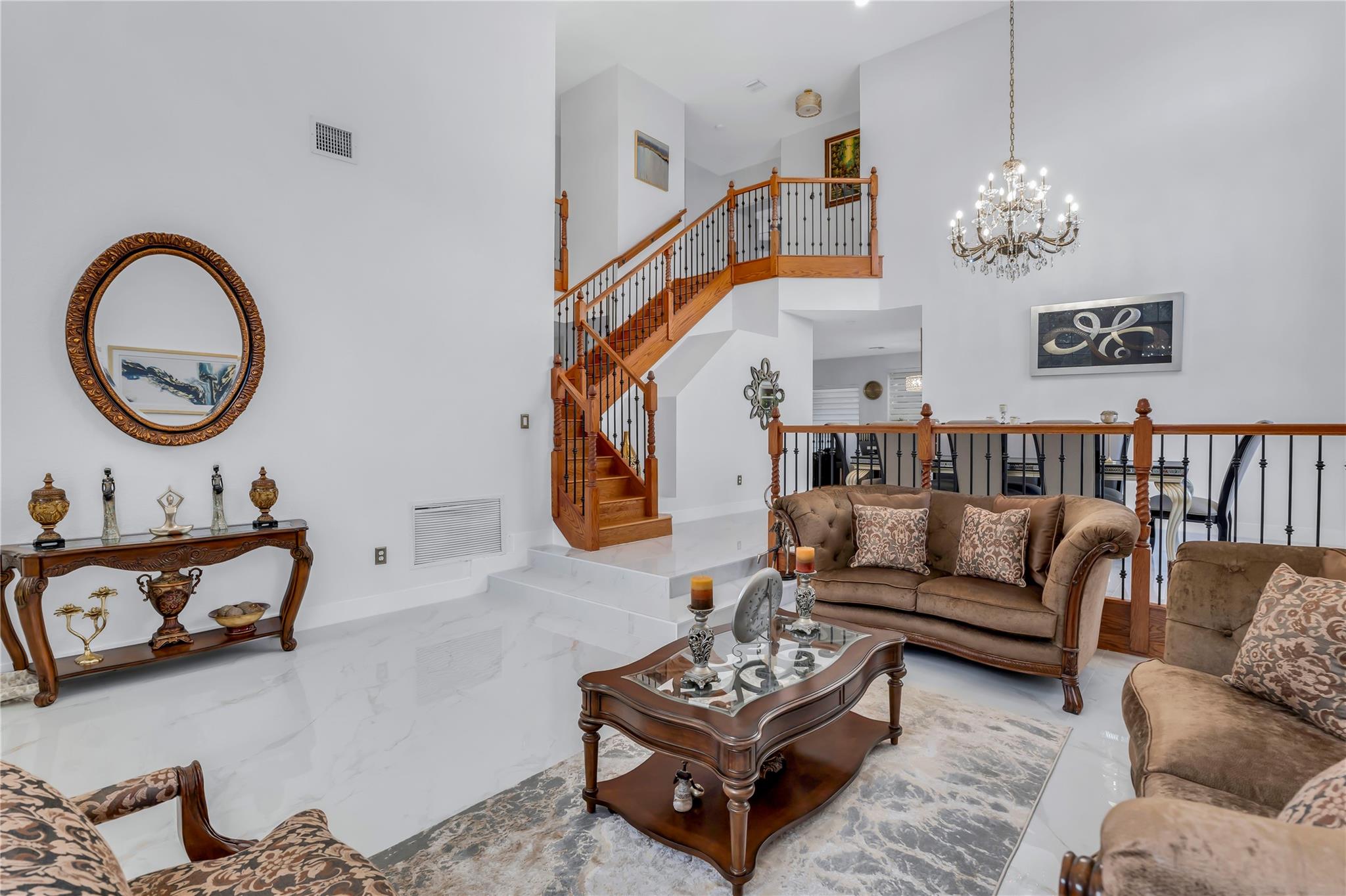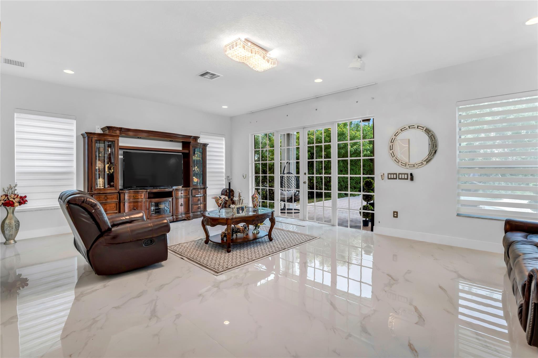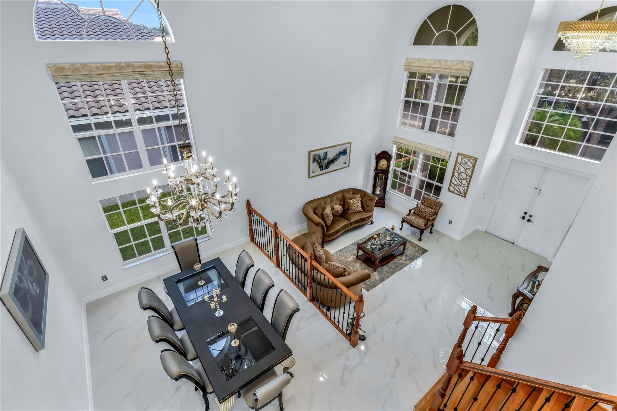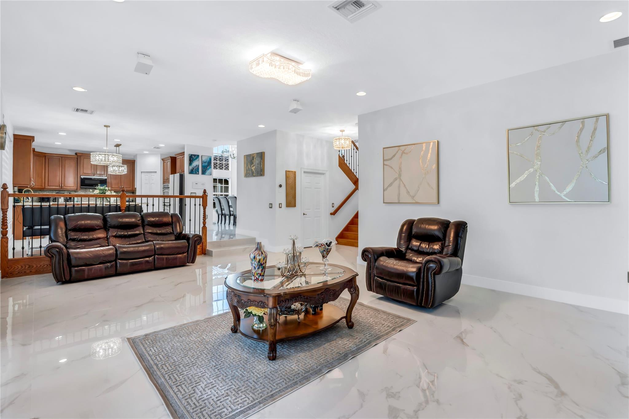 Experience luxury living in this beautifully updated 6-bedroom, 4-bathroom home in the prestigious, resort-style community of Sunset Lakes. This spacious residence features soaring ceilings, an oversized quartz island, and brand-new refrigerator, dishwasher, and microwave. Enjoy renovated bathrooms, 48×48 porcelain tile flooring downstairs, new plumbing & a new water heater. A full bedroom and bathroom on the first floor are perfect for guests or multigenerational living. Step outside to your private backyard oasis with a pool, pergola, and fully equipped outdoor kitchen. The community offers 24/7 guard-gated security & resort-style amenities, including a clubhouse, gym, pool, and tennis, basketball, and volleyball courts. The chandelier in the dining area is not included in the sale.