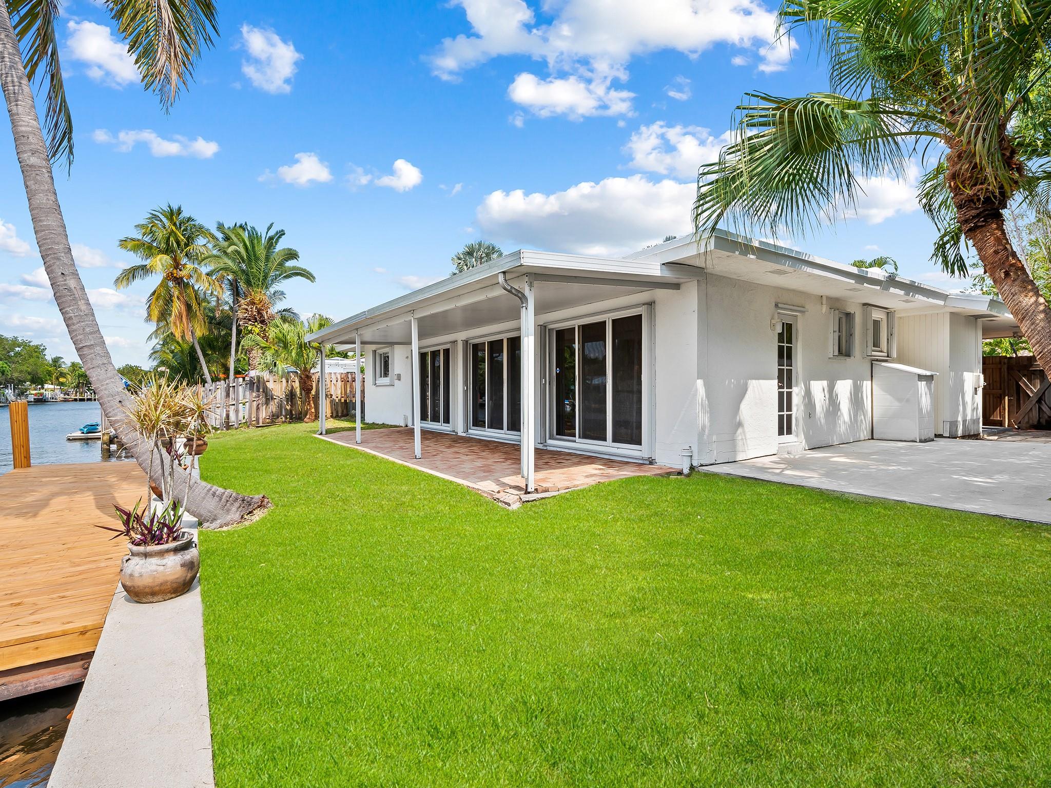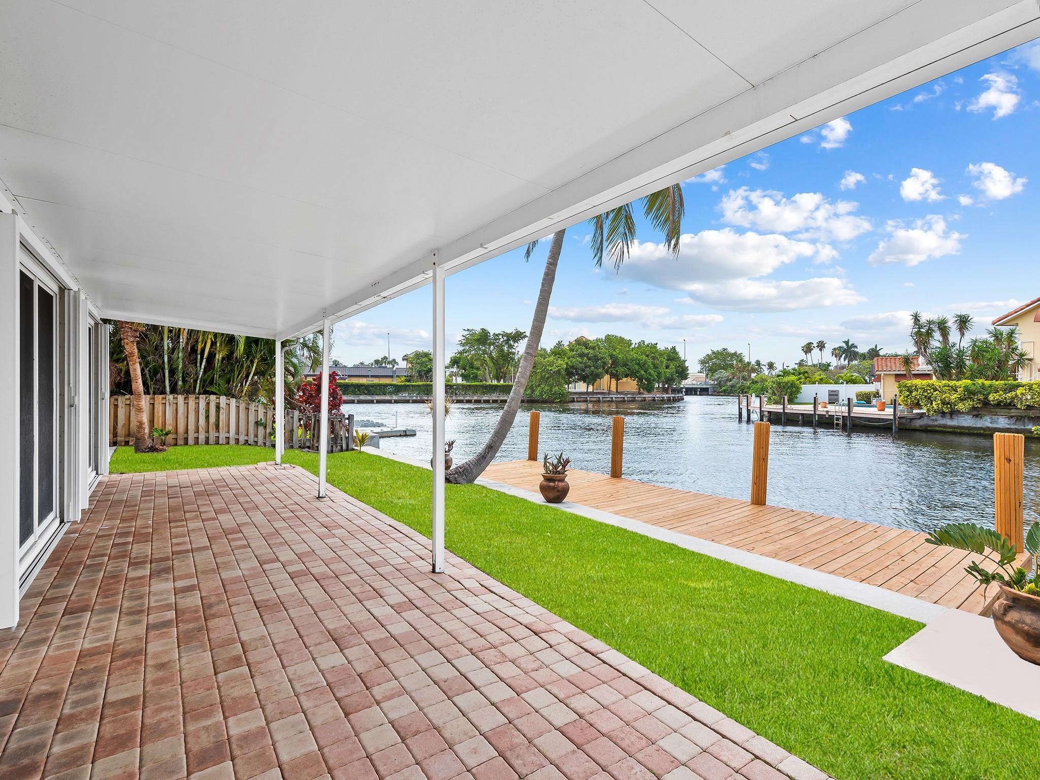 WATERFRONT WITH OCEAN ACCESS, this 3 bedroom, 2.5 bath East Wilton Manors home has stunning views of the middle river. Situated one home from the point lot and only two bridges to the intracoastal, this is a boater’s paradise! Open floor plan. Large living room and dining room flow into the huge family room with a wall of triple sliding glass doors that lead to a covered lanai and endless water views. Kitchen has solid surface counter tops with a separate pantry and laundry room. Brand new flat roof, and new upgraded electric service panels. With 82 feet on the water and a 30 foot dock, this comfortable home is perfect for entertaining, it’s a short distance to many upscale restaurants and stores and is also close to the beach. Needs to be viewed to be fully appreciated.