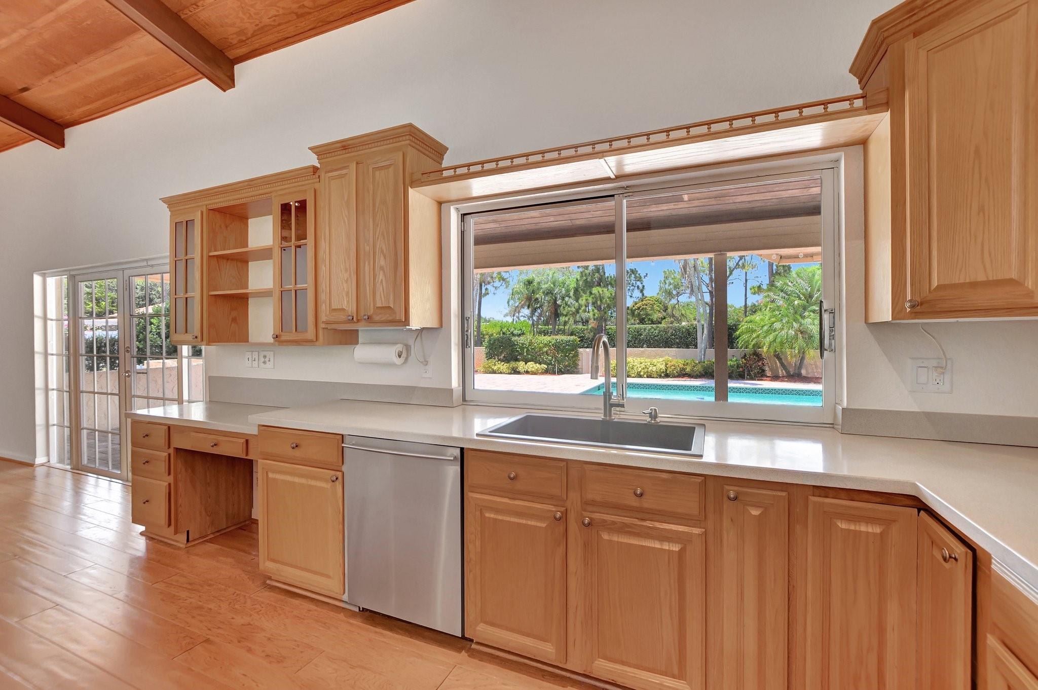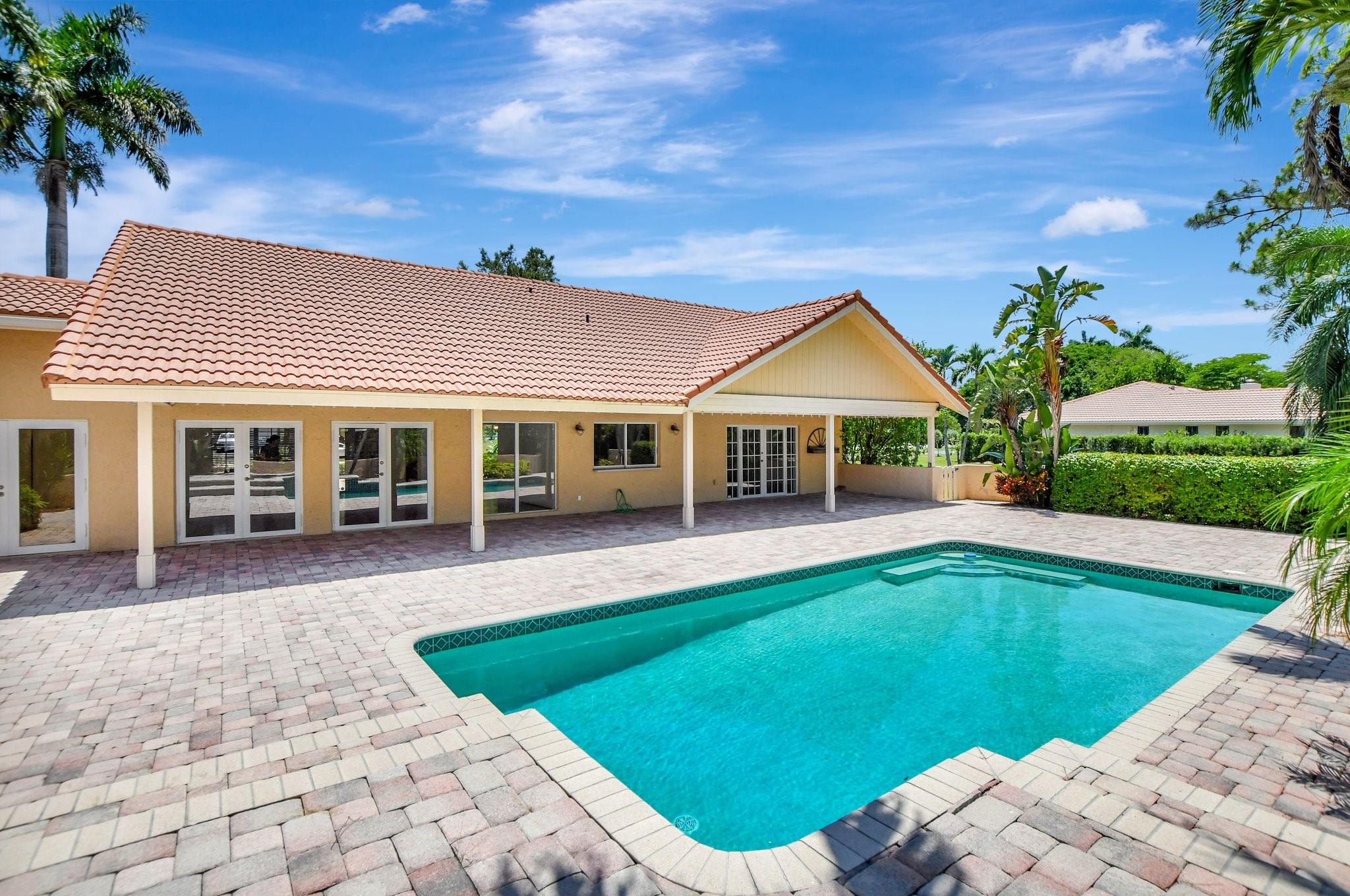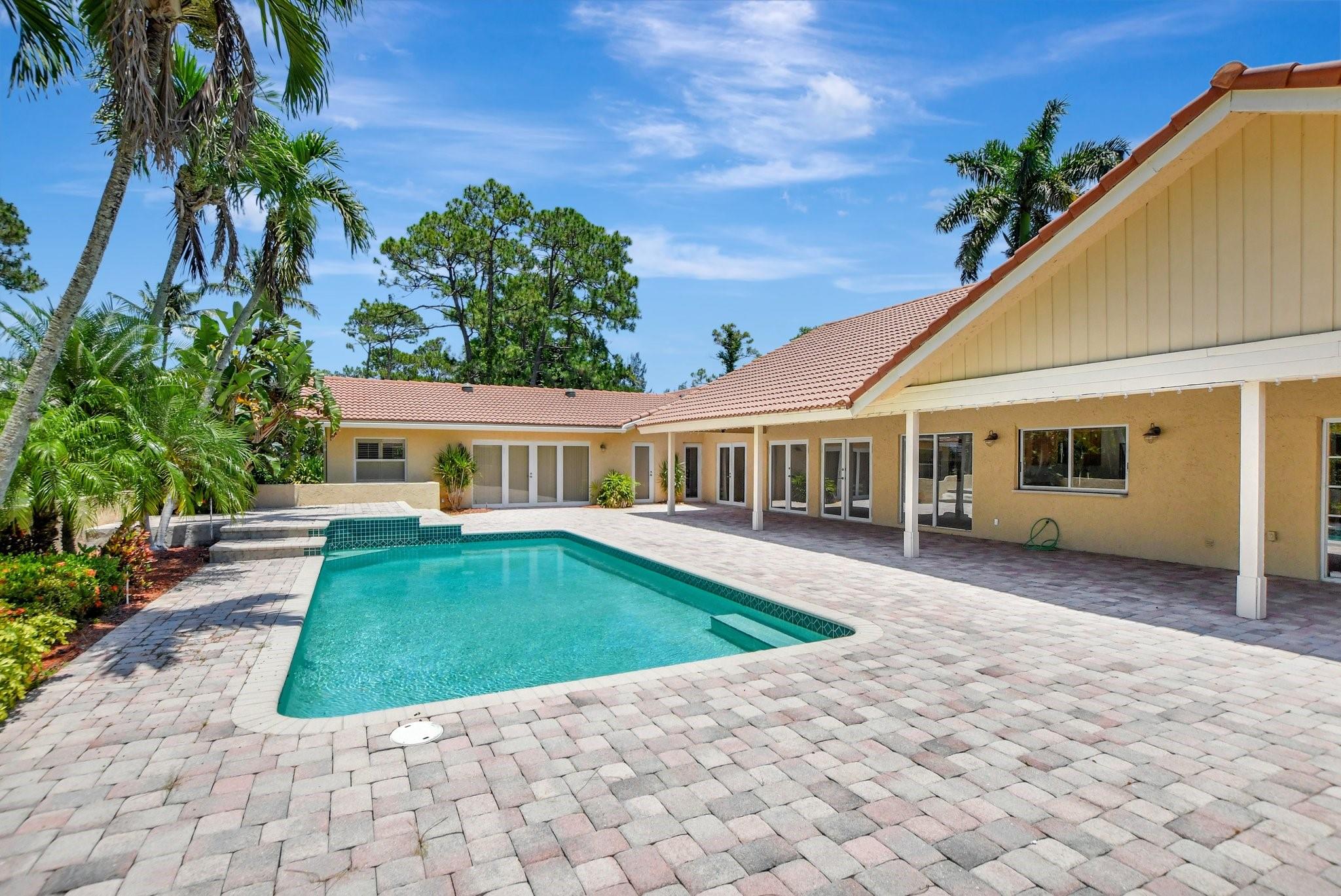 THE PERFECT ESCAPE ! Beautiful and spacious pool home which sits on an acre of land in a culdesac. Hardwood floors and ceramic tile throughout the living areas. Bright, open, vaulted ceilings, French doors that give this elegant home its character. Open kitchen island, wood cabinets, newer SS appliances, pantry overlooking the family room and pool. Living Room w/French Doors out to pool/patio. A separate laundry room, LG washer & dryer + plenty of counter space & cabinets. Master Suite has French doors that open out to pool, customized walk-in closet, adjacent sitting room, luxurious bathroom w/double vanity, jetted tub & separate shower. Oversized pool & paver patio. New AC, upgraded fixtures and pool pump. Walking distance to houses of worship, shops, restaurants, playgrounds, A+ schools