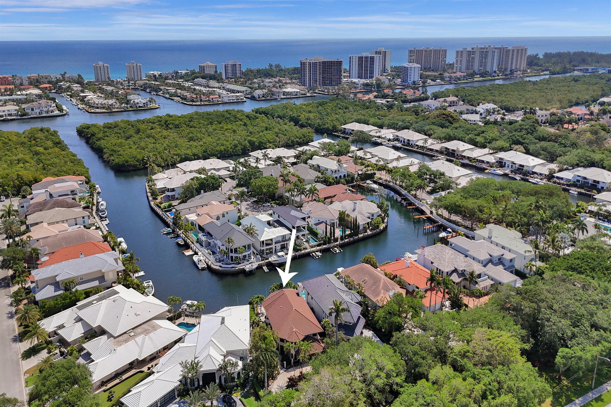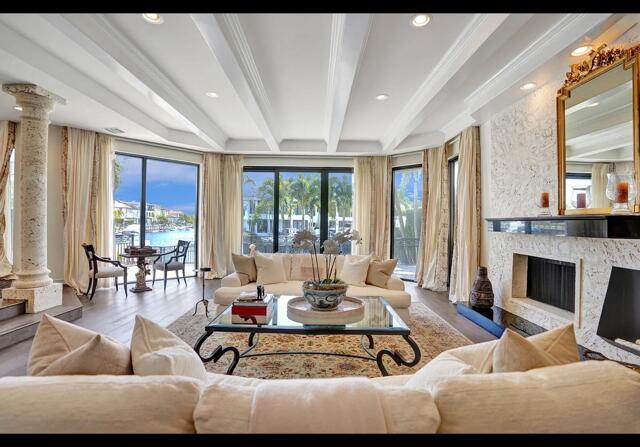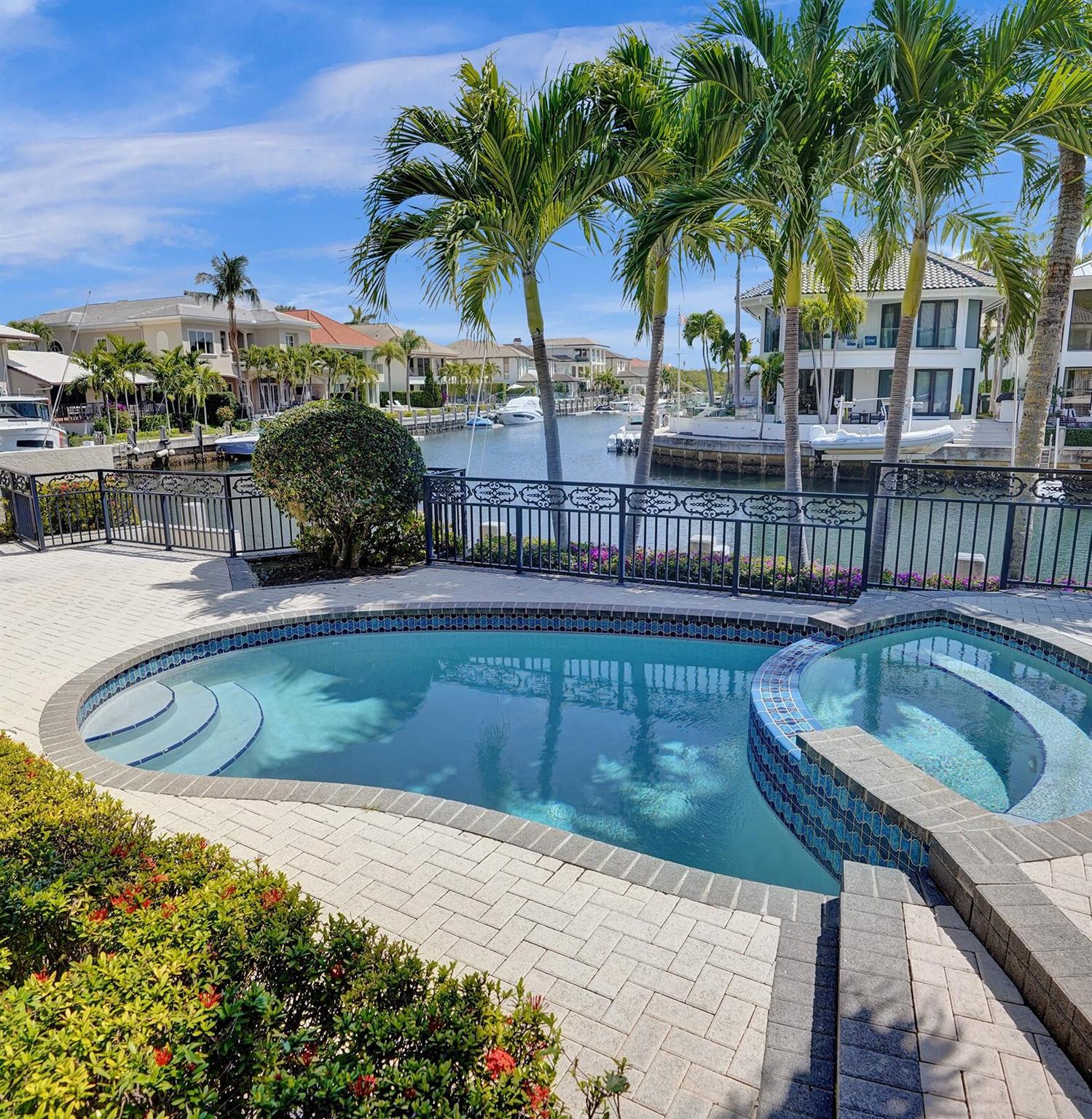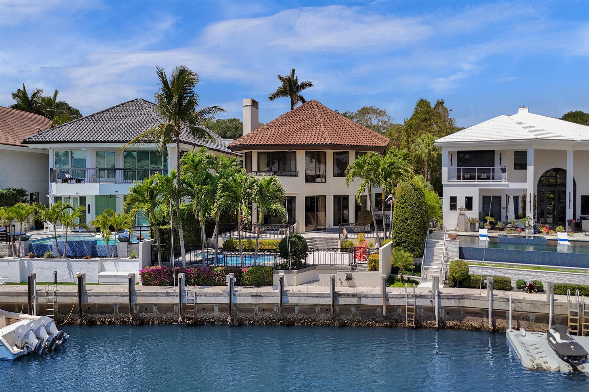 Located in the prestigious Boca Marina Yacht Club community, this exquisite 5,200 SF, east-exposure waterfront estate offers panoramic long water views and direct ocean access for boating. The community’s homes each enjoy a private dock, though few offer the straight East view from interior rooms, the patio and the pool deck that 5312 provides.Designed for seamless indoor-outdoor living, the home features sliding glass doors from the Breakfast Room, Dining Room and Living Room that open to the wrap-around patio which is perfect for day-time Florida sunshine, or enjoying evening alfresco dining. The open-concept kitchen is ideal for engaging with family and guests while cooking.