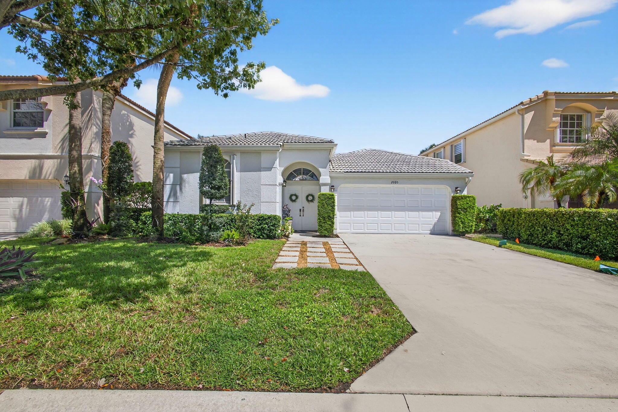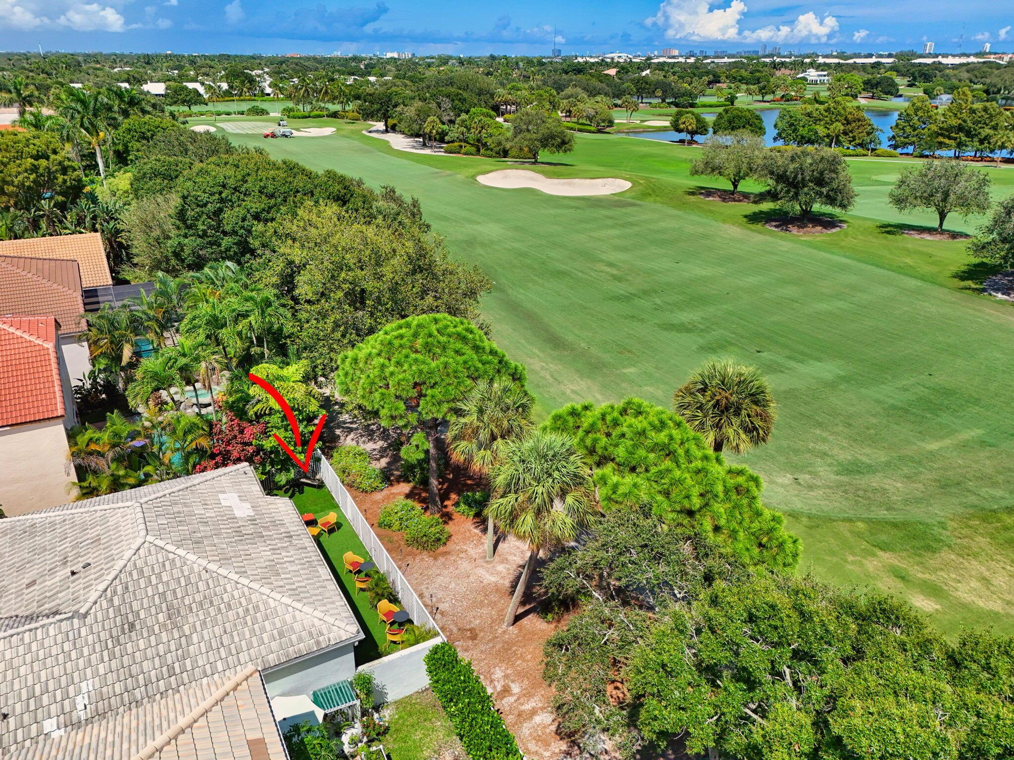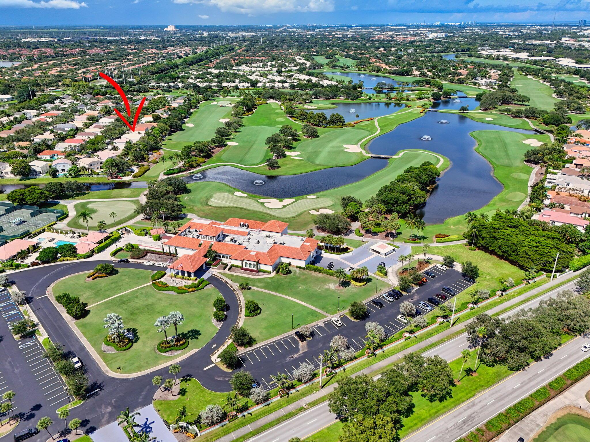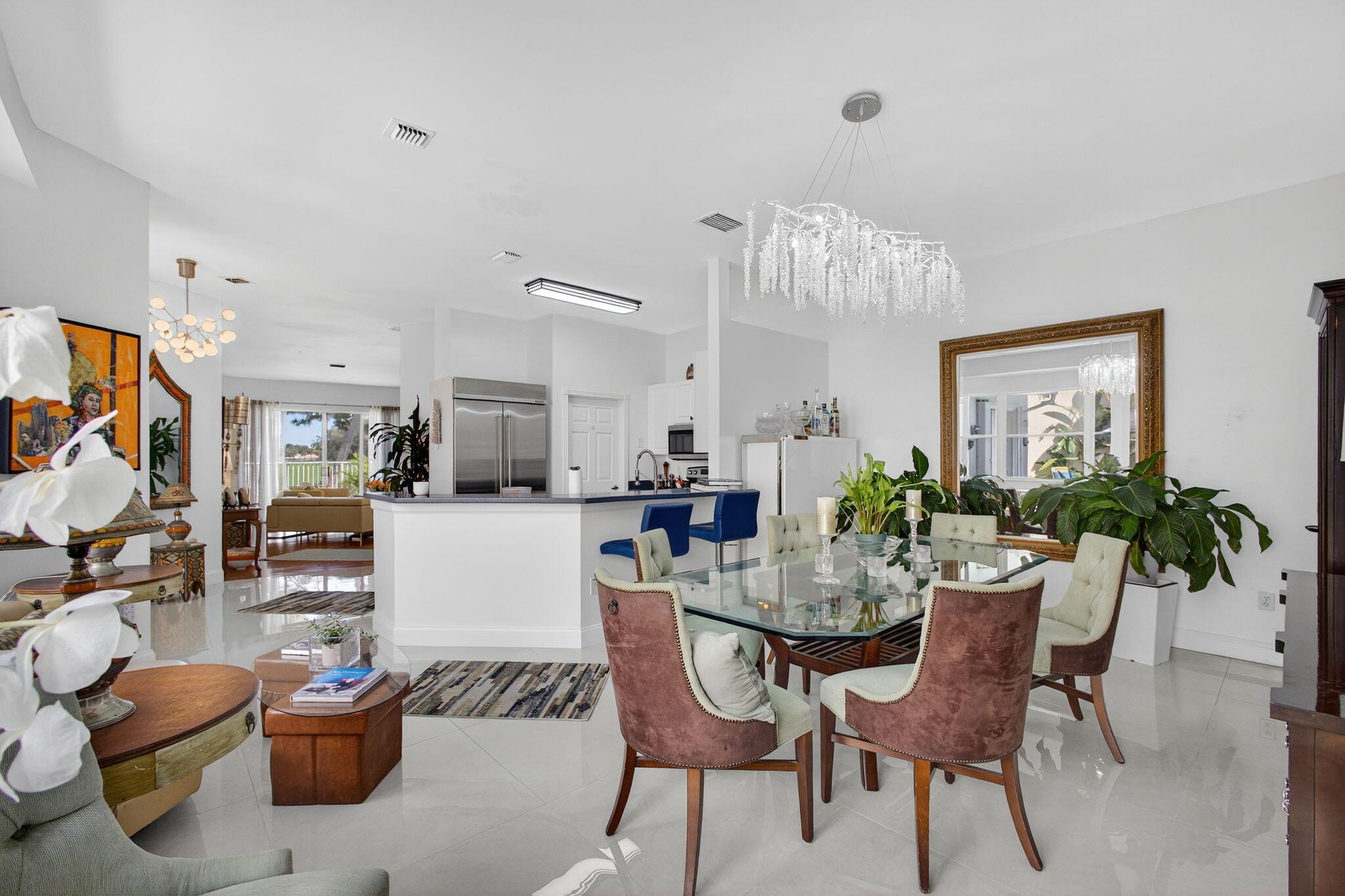Rarely available single-story courtyard home perfectly situated on a private golf course lot! Experience the best of South Florida living with this distinctive floor plan, where the heart of the home opens to a private courtyard and sparkling pool surrounded by lush tropical landscaping. Start your mornings with coffee overlooking the tranquil fairways or unwind poolside in total privacy. The main residence boasts 2 bedrooms and 2 bathrooms, filled with natural light and highlighted by wood and tile flooring (no carpet!) The open airy design seamlessly blends indoor comfort with picturesque golf course views, creating a home that in both inviting and unique.The kitchen has been tastefully updated with plenty of cabinetry, Corian countertops, and an oversized stainless steel Kitchen Aid