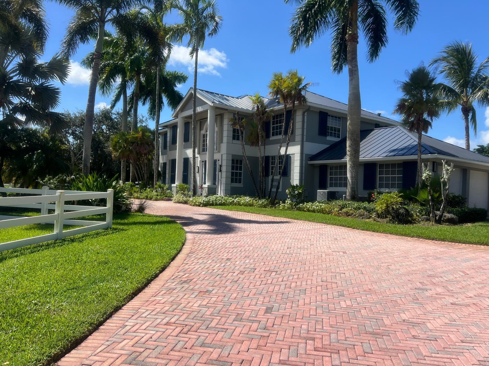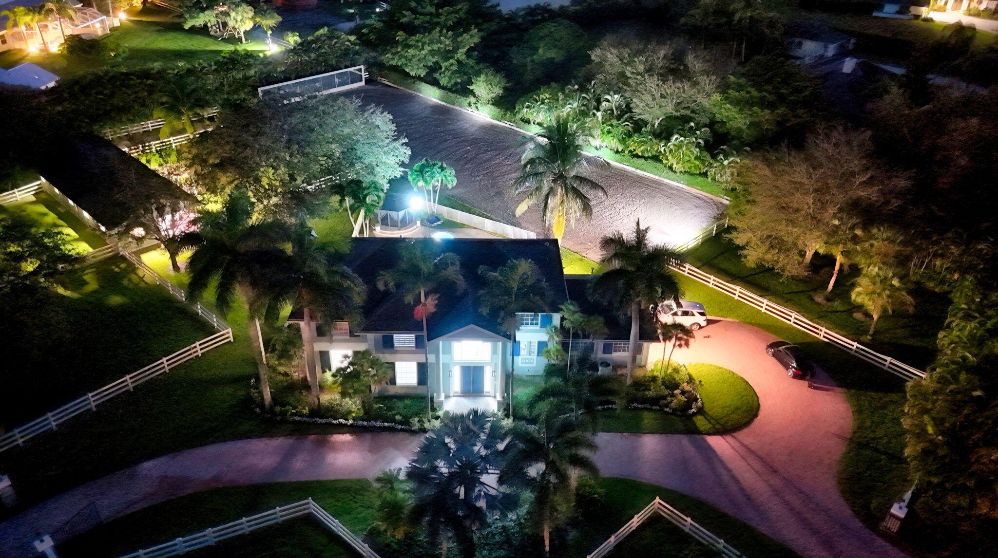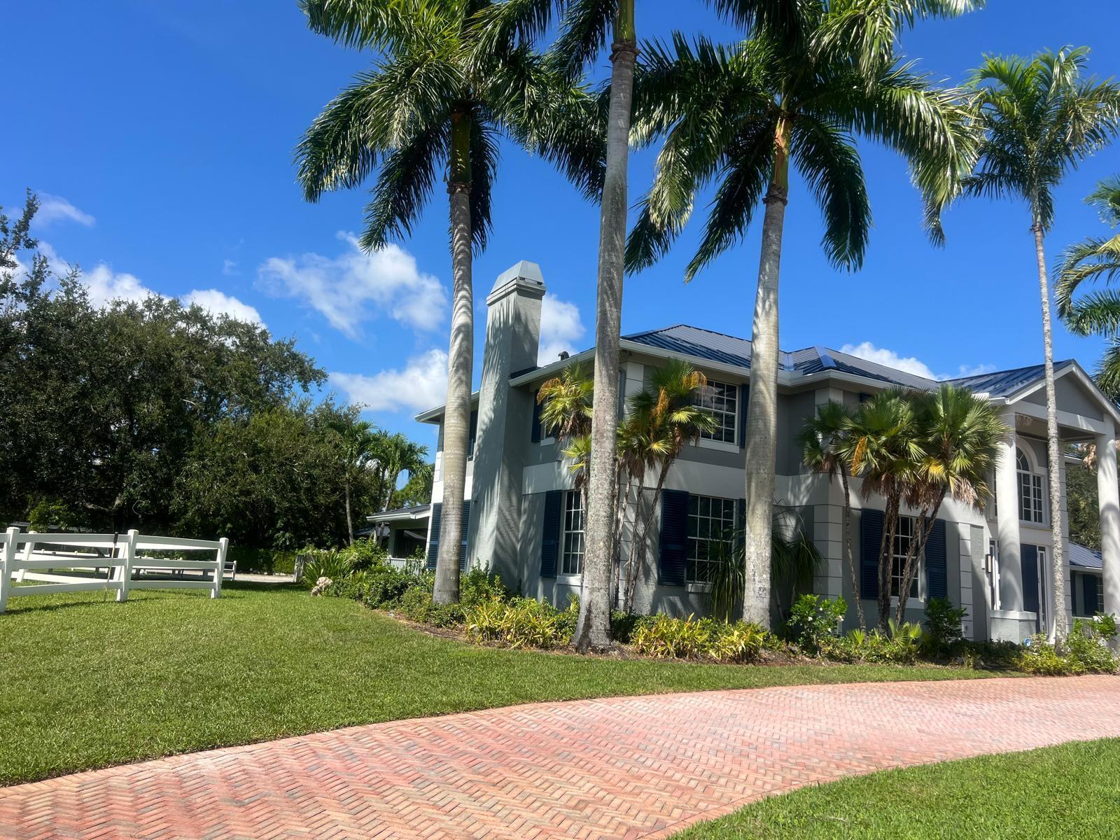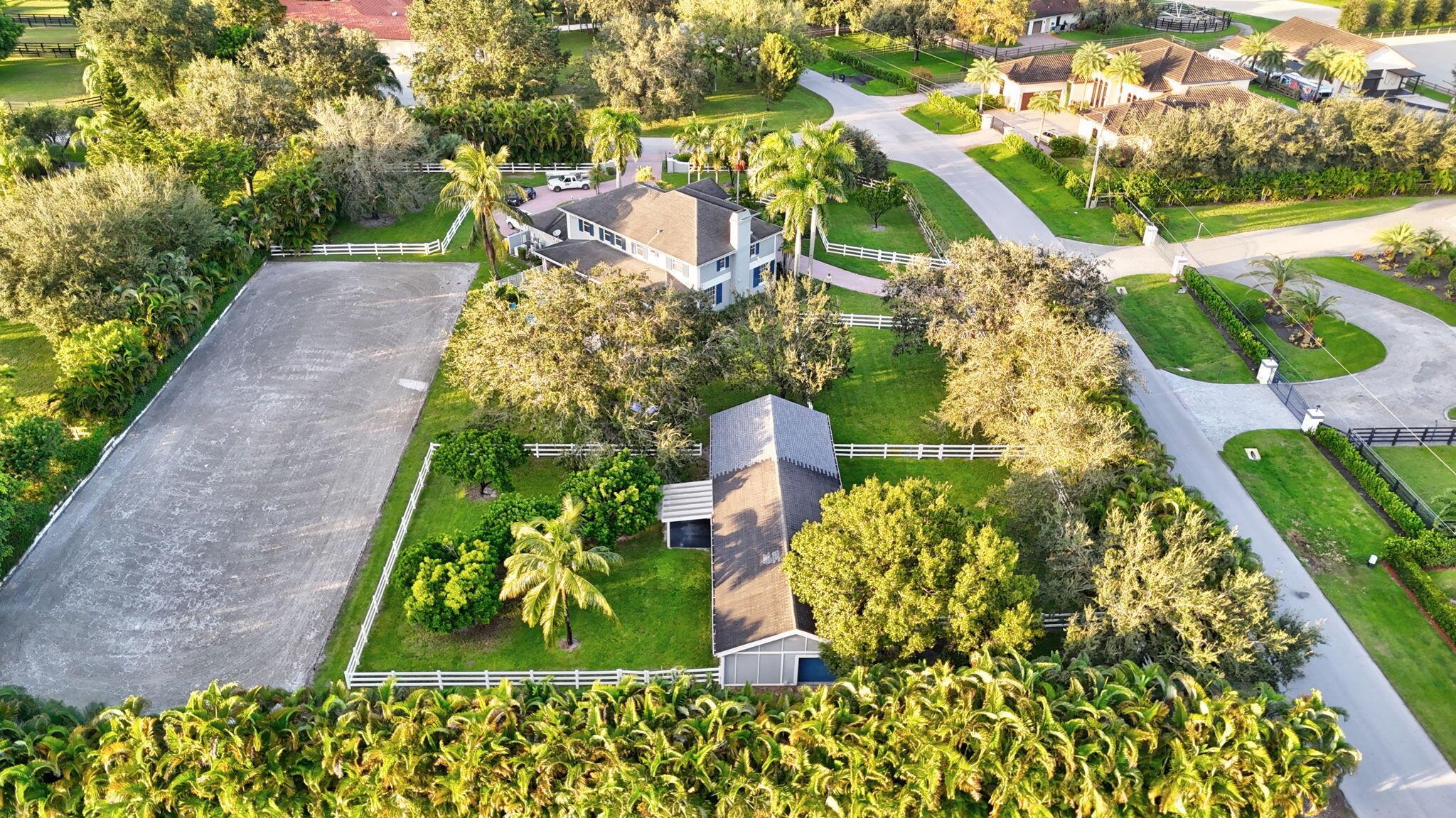 New metal roof. Contemporary renovation just completed on this well located private estate on almost 2 acres . Just a short golf cart ride to all 3 of the major local equestrian venues. The property includes a 4,200 sq home with open concept design with 7 beds, 5 baths and a living room to match! Two master bedroom suites on each level of house consist of a large bedroom, two walk-in closets, and an exciting large master bathroom with soaking tub, dual vanities, large frameless glass walk-in shower. Elegant design from entering the house and walking to the second floor on a staircase with glass railings. Expensive flat European ceilings on the first floor and Italian chandeliers give a stylish look to the house. Marble wall and matching kitchen tables give the house distinctive design
