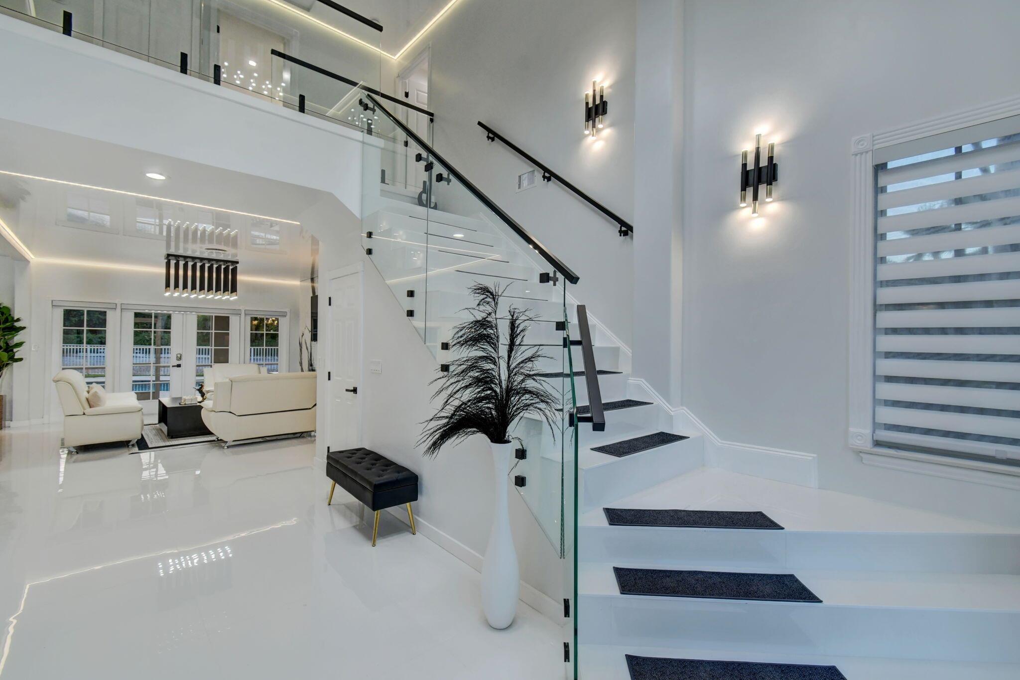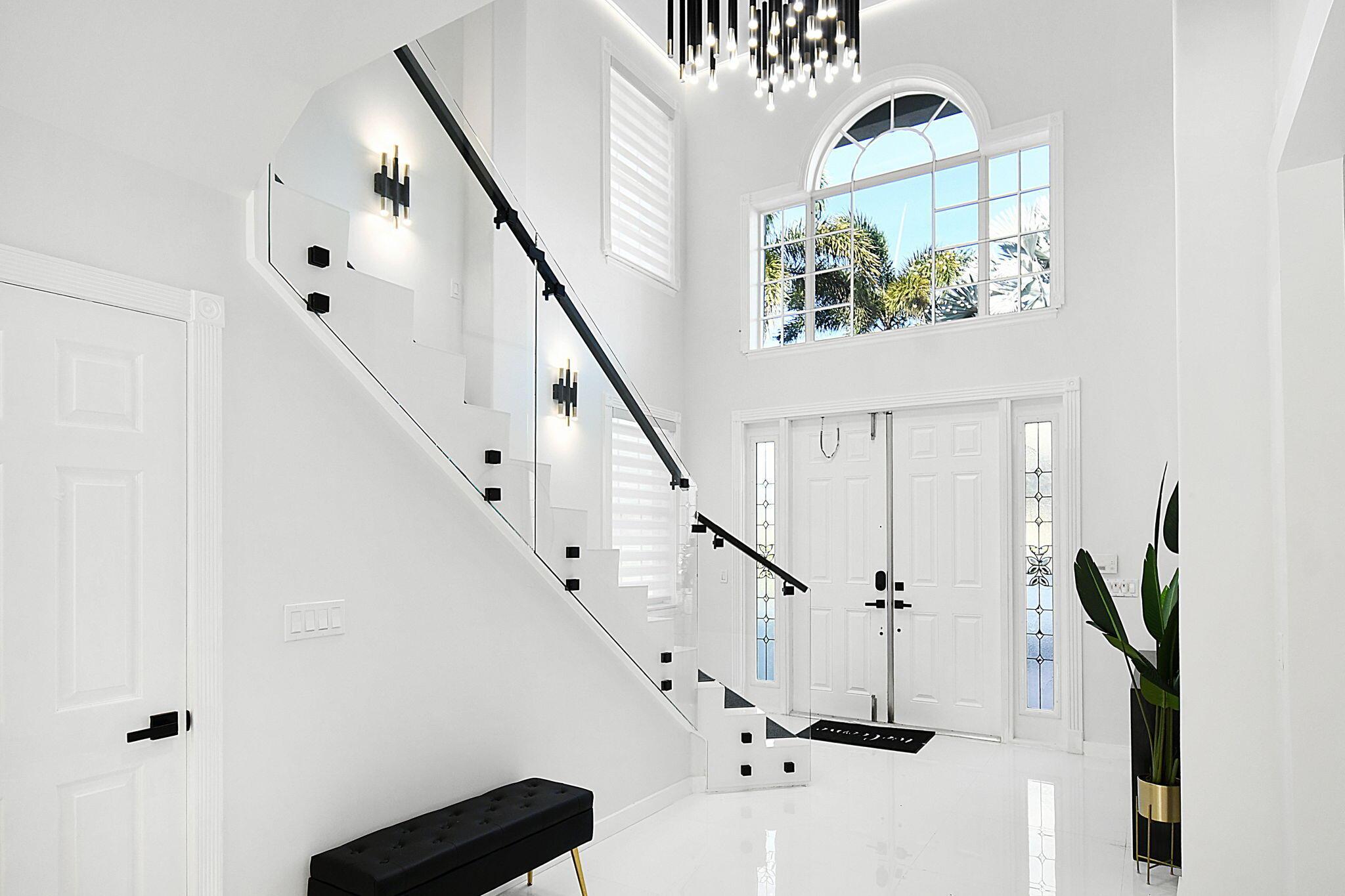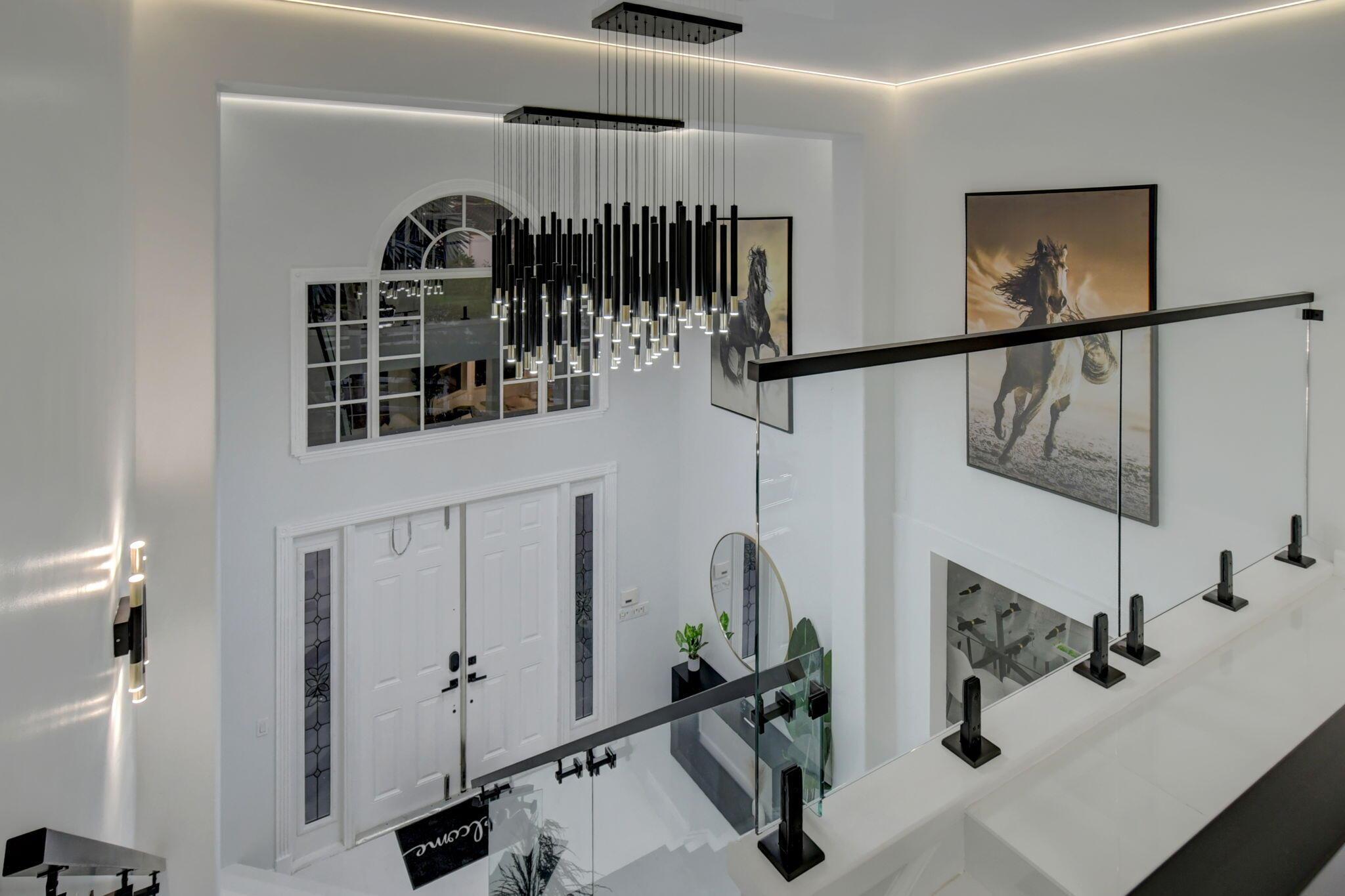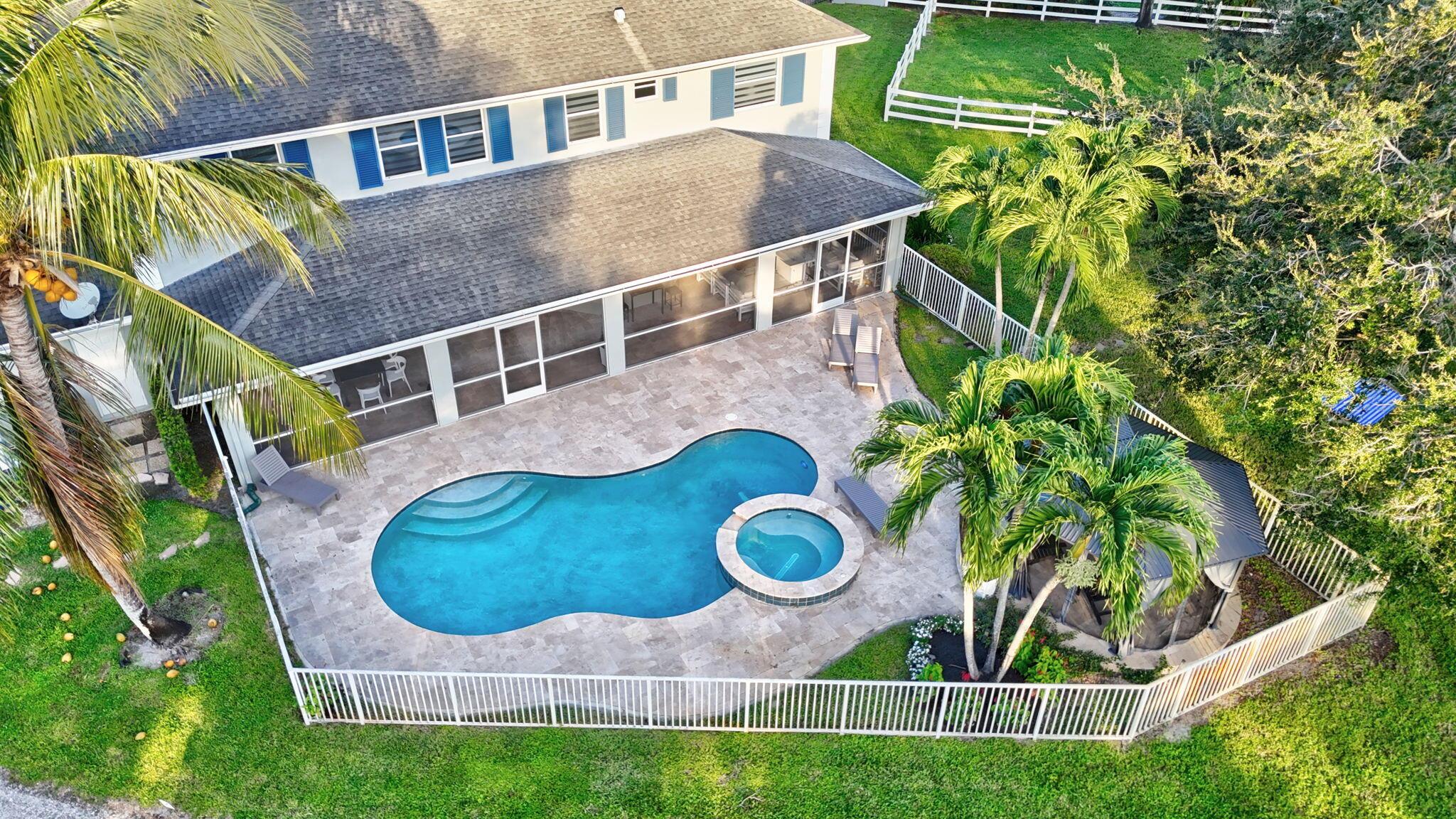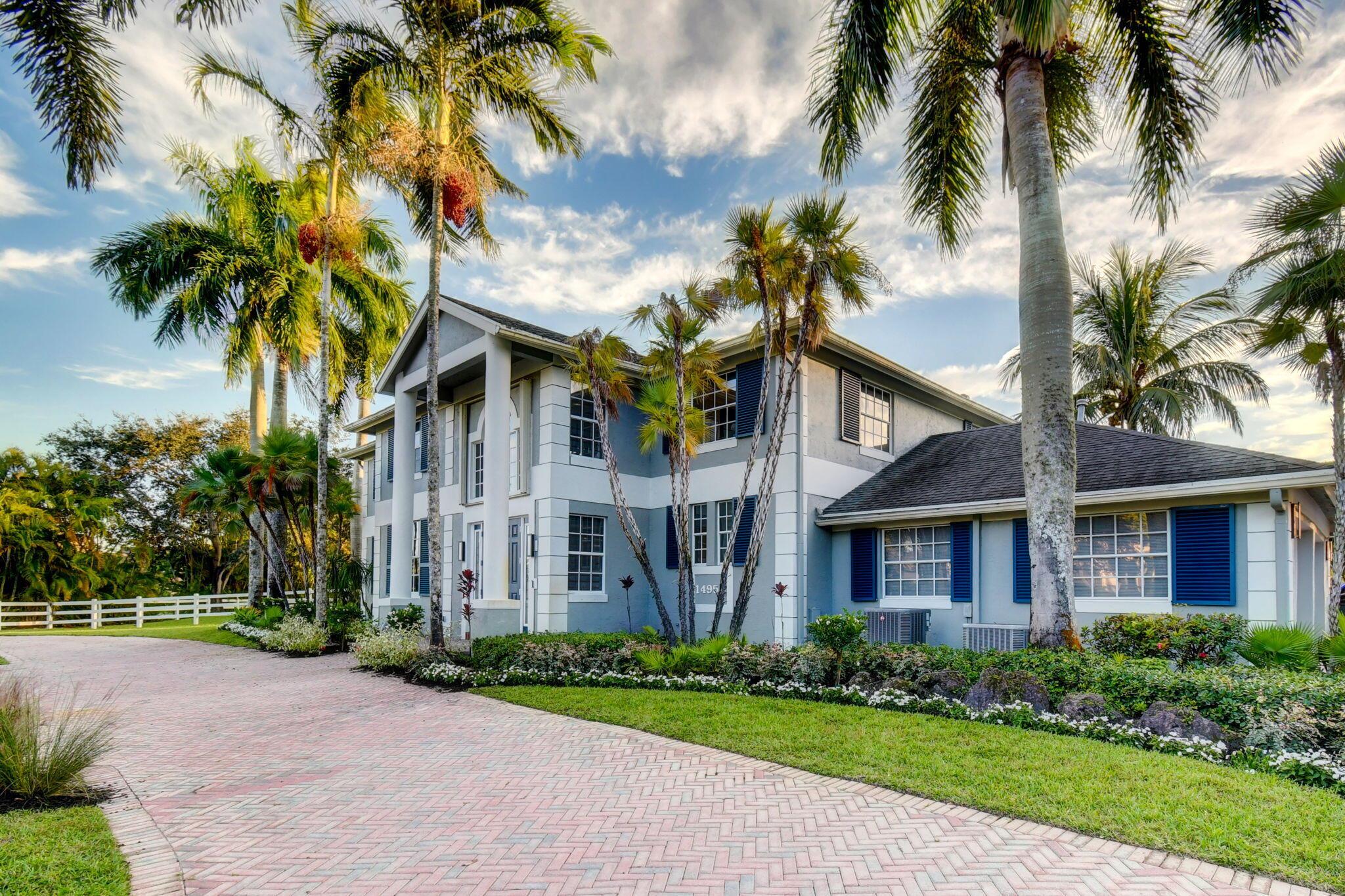 New metal roof. Contemporary renovation just completed on this well located private estate on almost 2 acres . Just a short golf cart ride to all 3 of the major local equestrian venues. The property includes a 4,200 sq home with open concept design with 7 beds, 5 baths and a living room to match! Two master bedroom suites on each level of house consist of a large bedroom, two walk-in closets, and an exciting large master bathroom with soaking tub, dual vanities, large frameless glass walk-in shower. Elegant design from entering the house and walking to the second floor on a staircase with glass railings. Expensive flat European ceilings on the first floor and Italian chandeliers give a stylish look to the house. Marble wall and matching kitchen tables give the house distinctive design