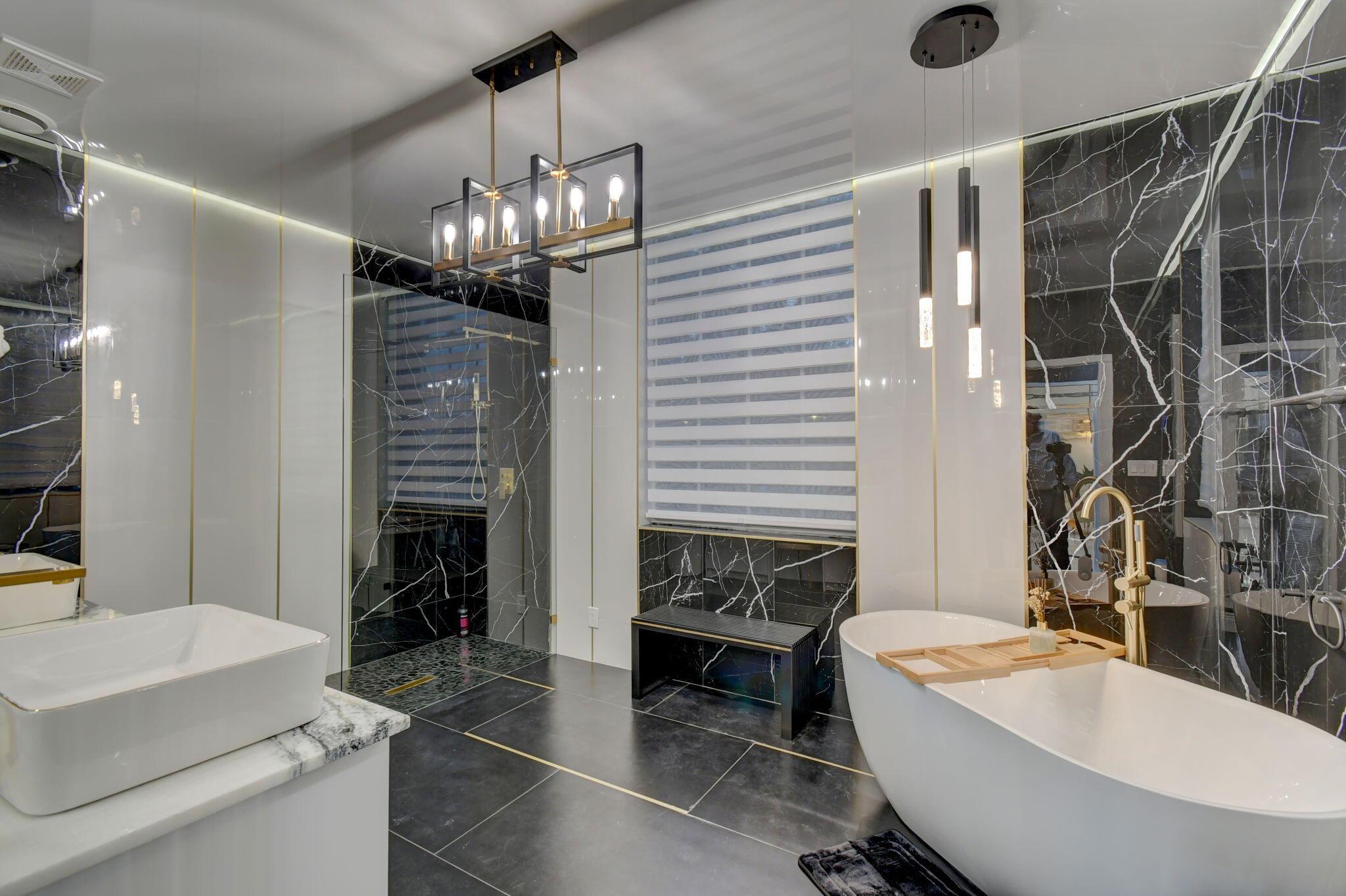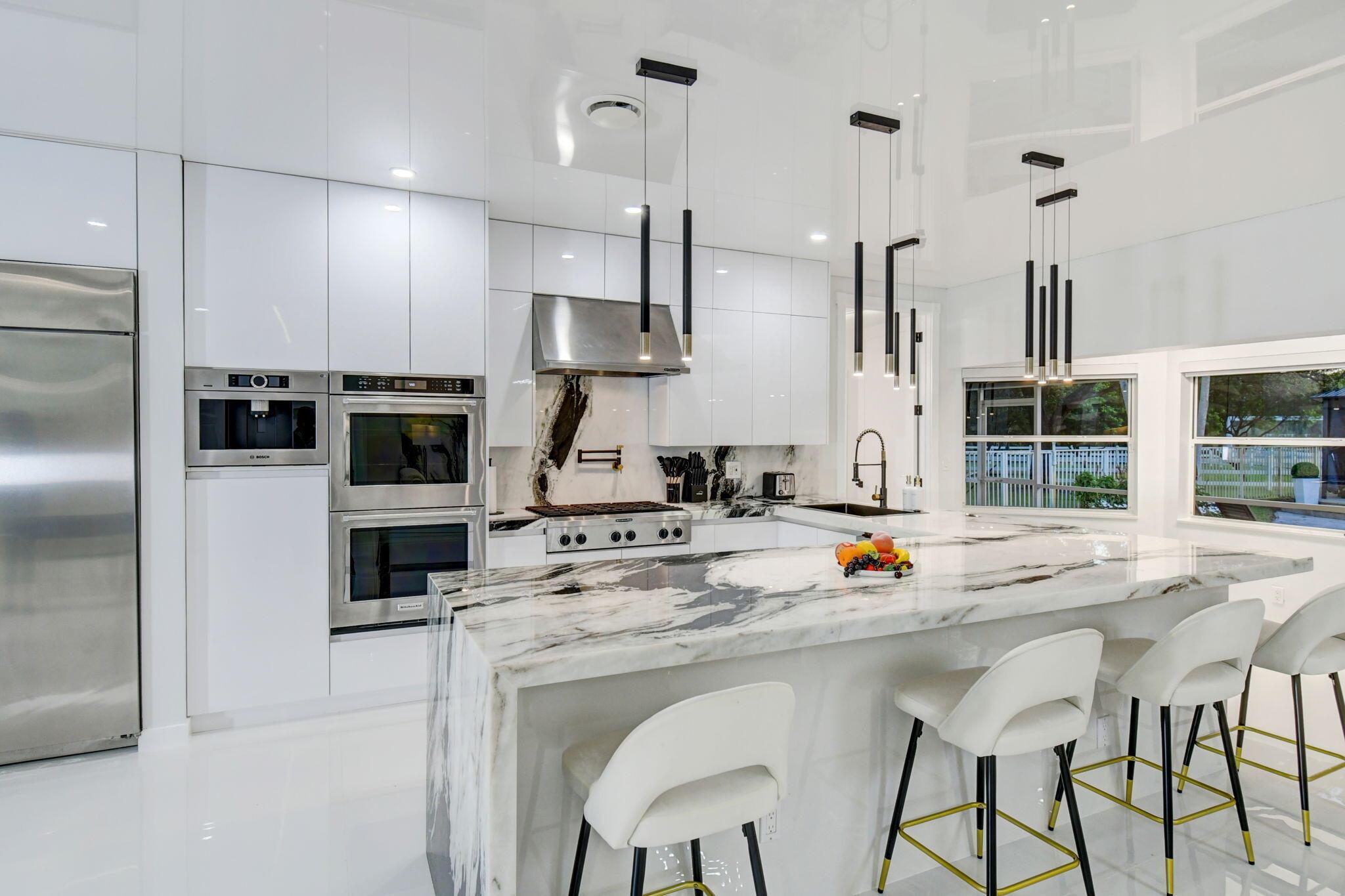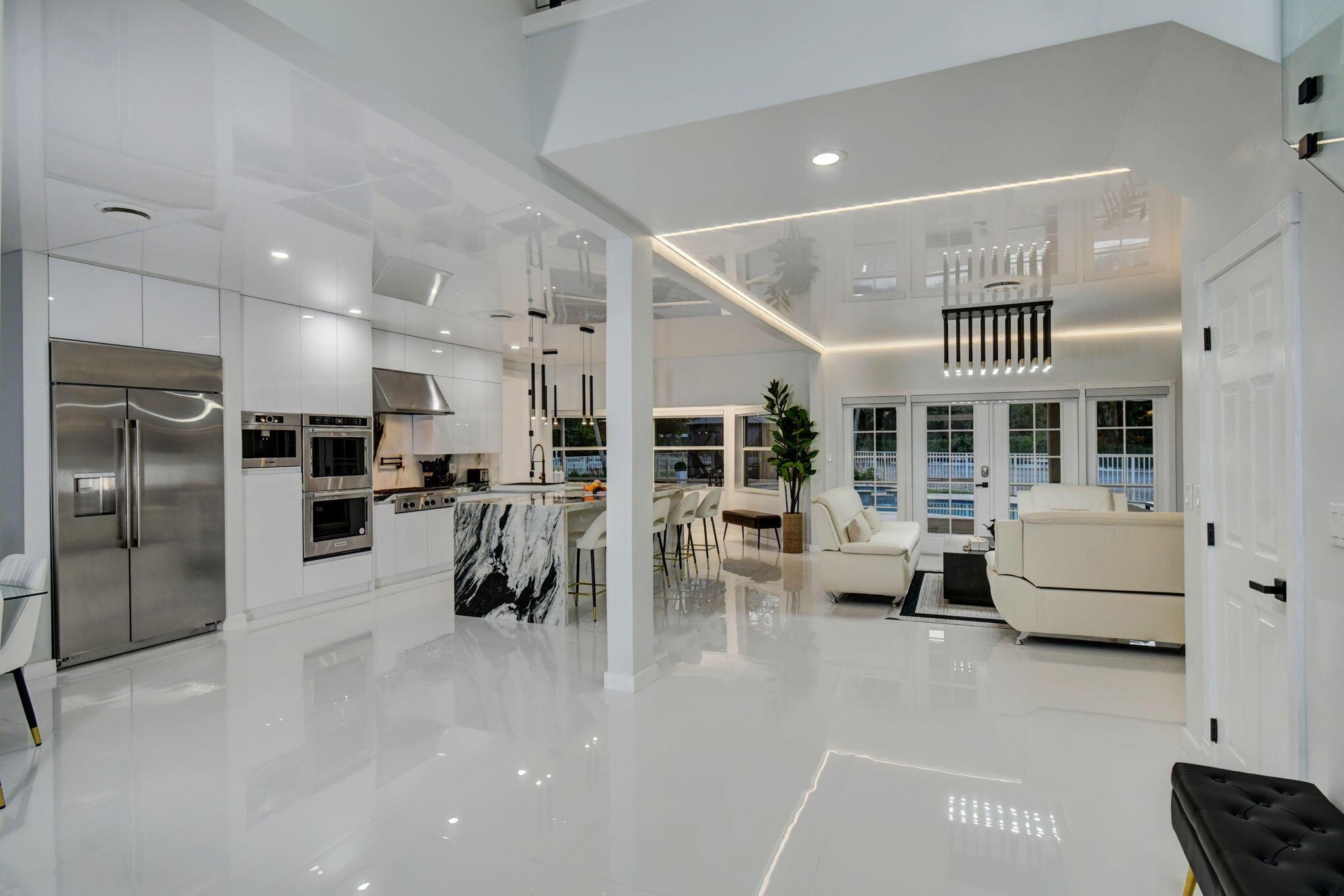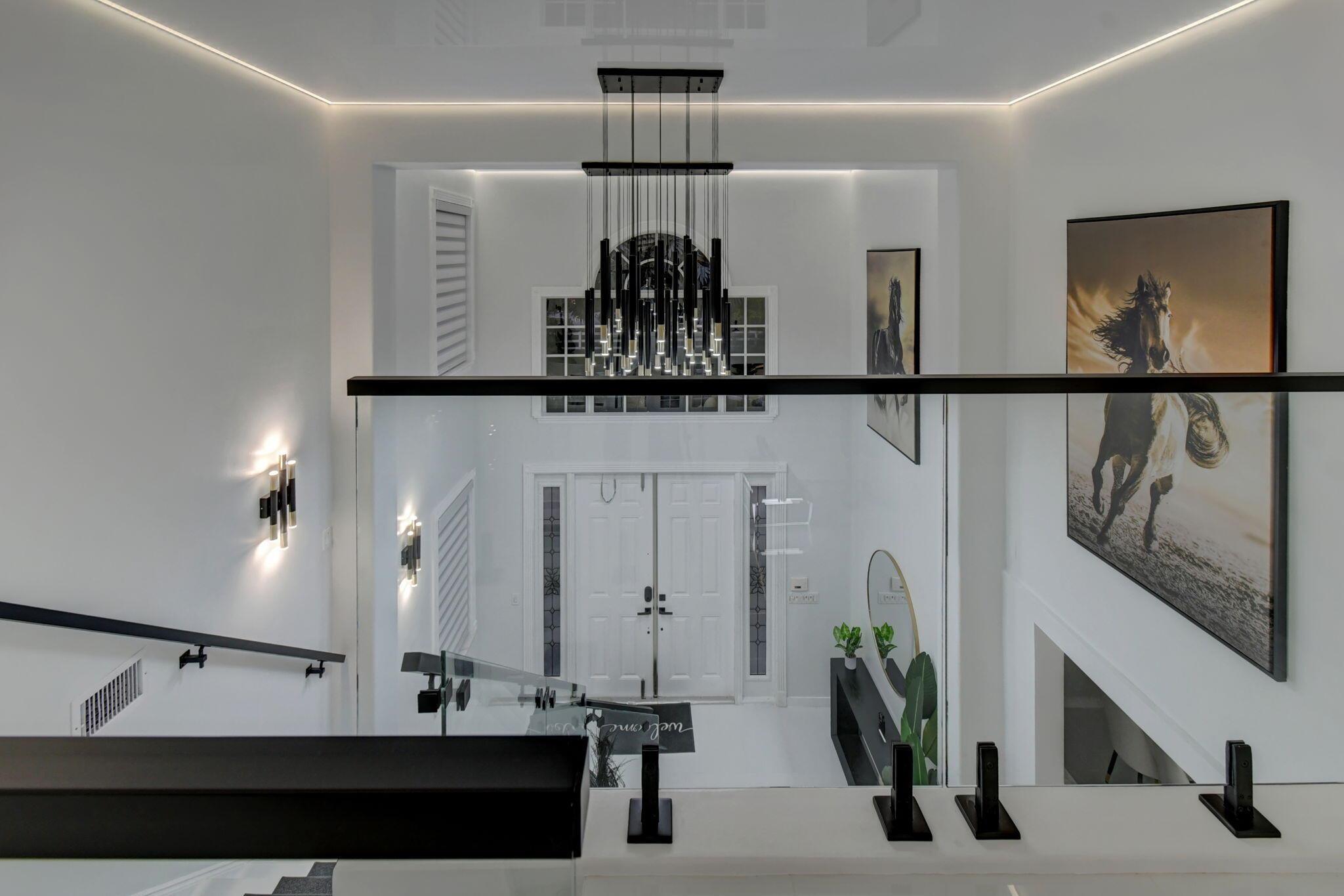 New metal roof. Contemporary renovation just completed on this well located private estate on almost 2 acres . Just a short golf cart ride to all 3 of the major local equestrian venues. The property includes a 4,200 sq home with open concept design with 7 beds, 5 baths and a living room to match! Two master bedroom suites on each level of house consist of a large bedroom, two walk-in closets, and an exciting large master bathroom with soaking tub, dual vanities, large frameless glass walk-in shower. Elegant design from entering the house and walking to the second floor on a staircase with glass railings. Expensive flat European ceilings on the first floor and Italian chandeliers give a stylish look to the house. Marble wall and matching kitchen tables give the house distinctive design