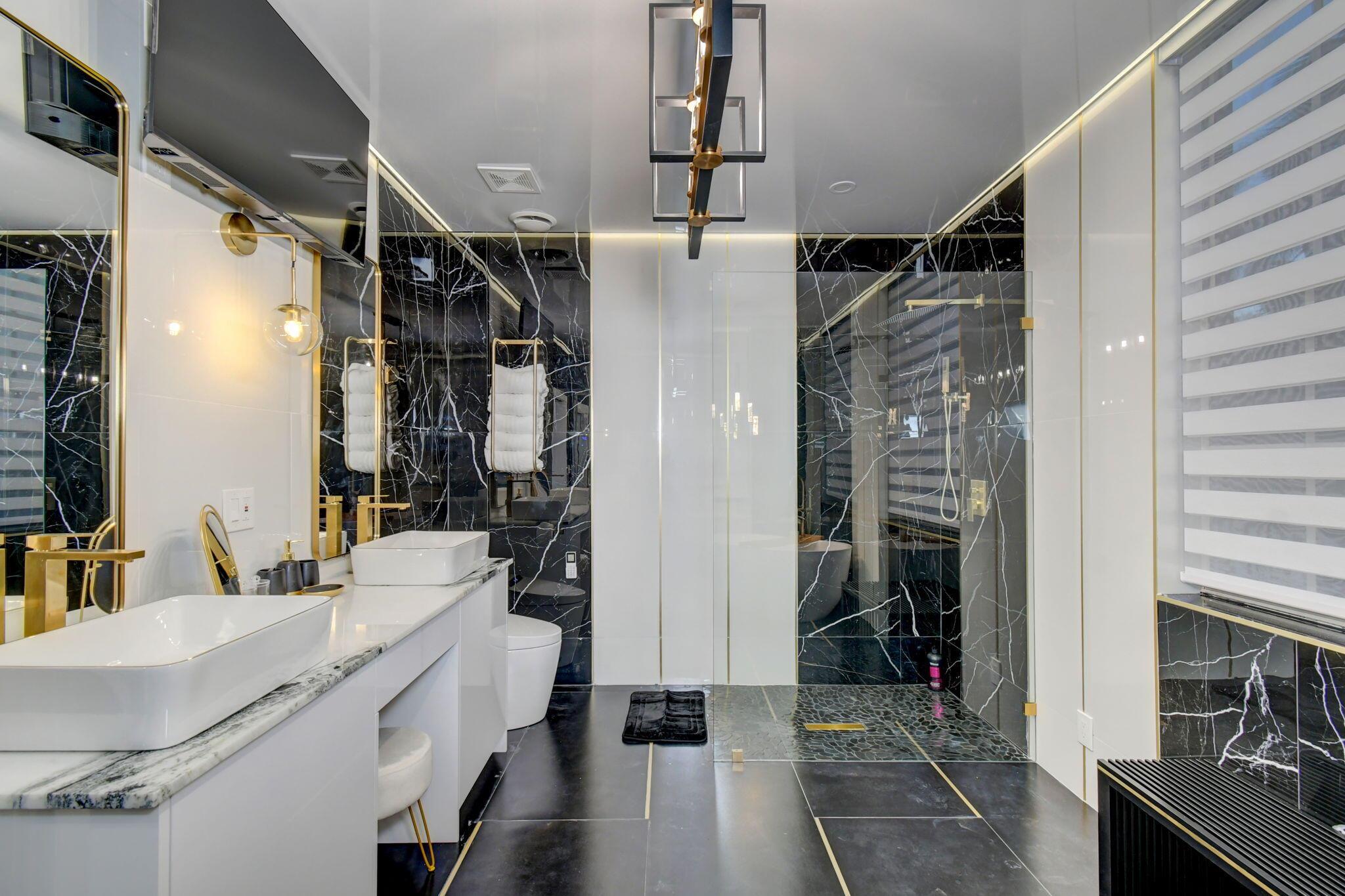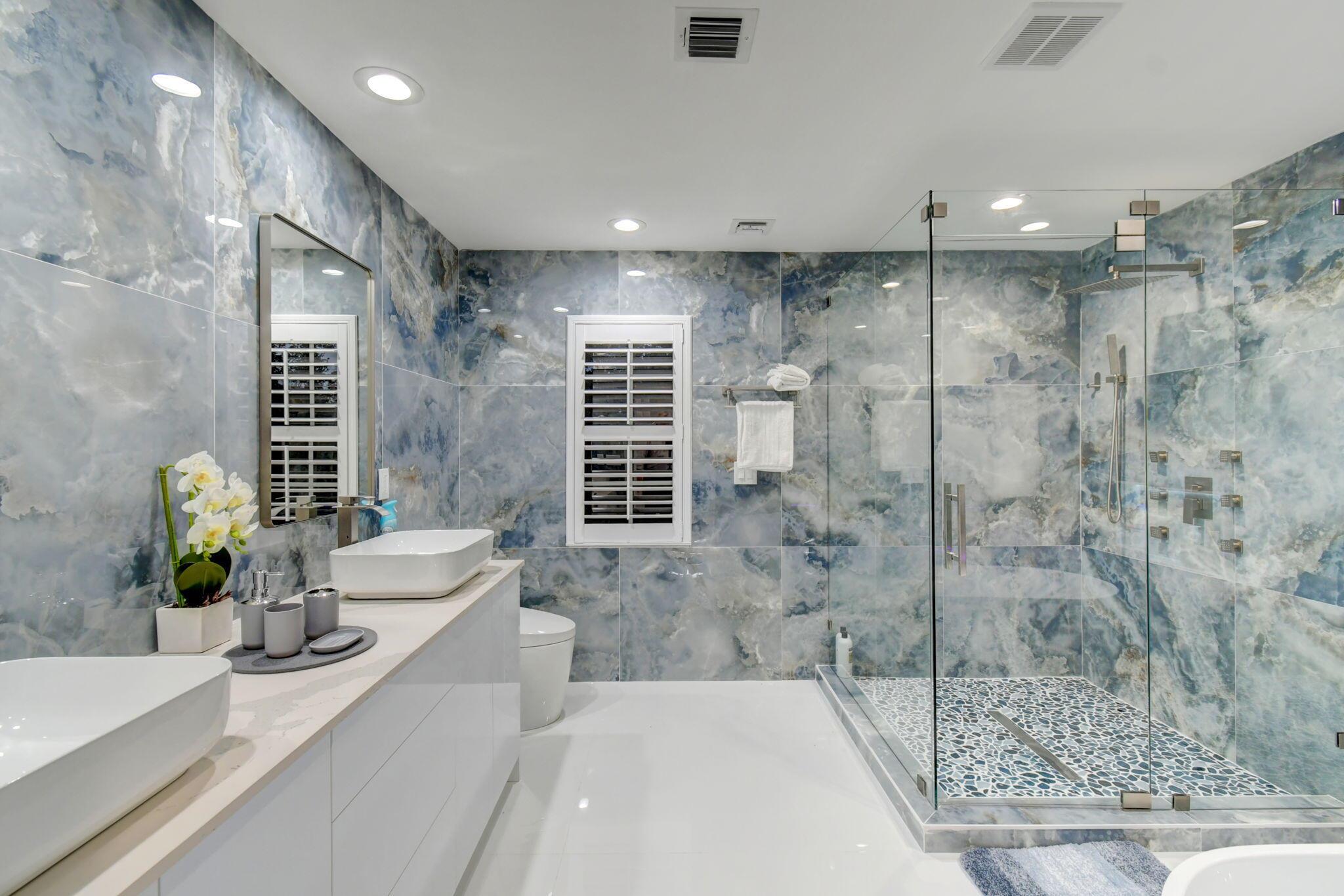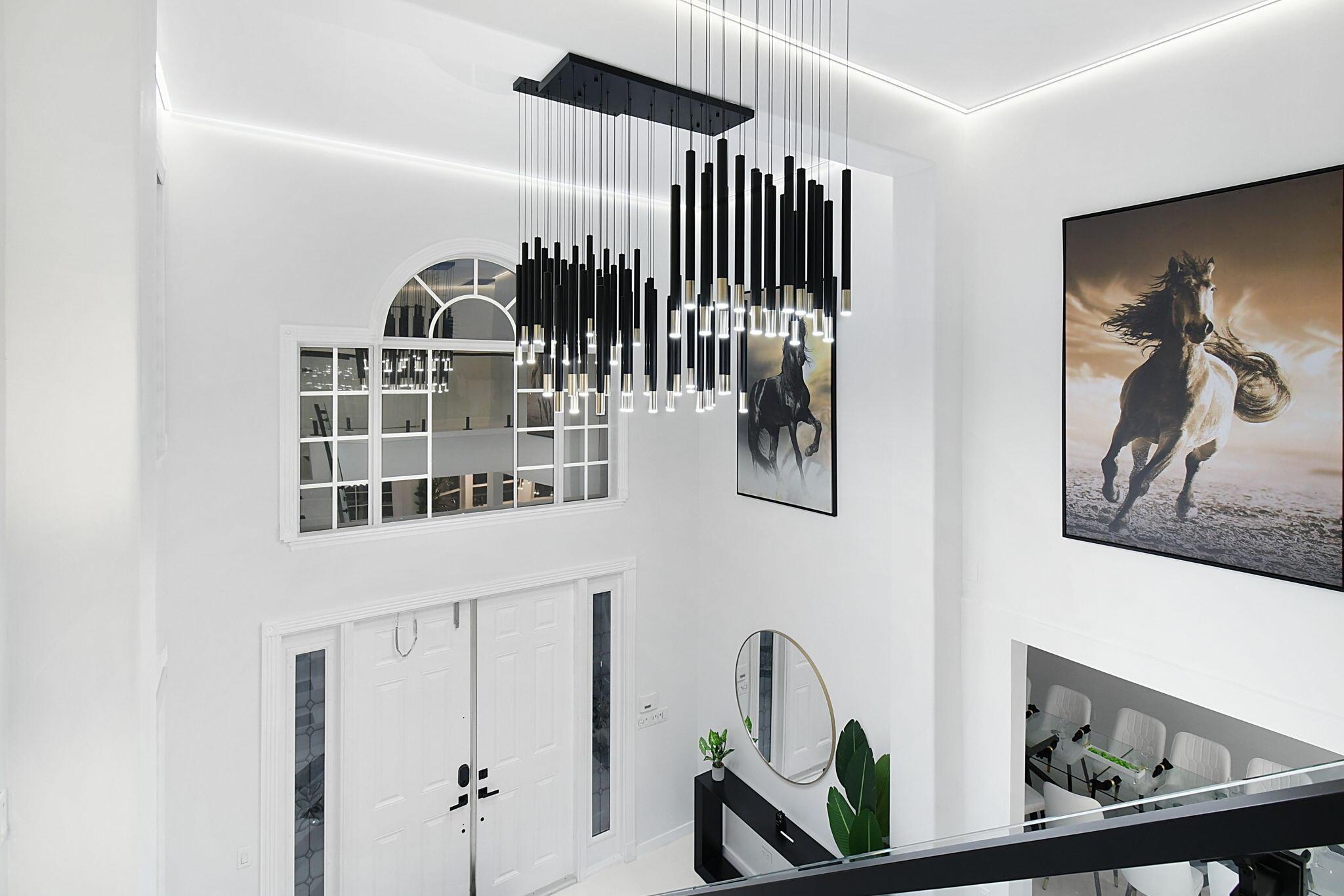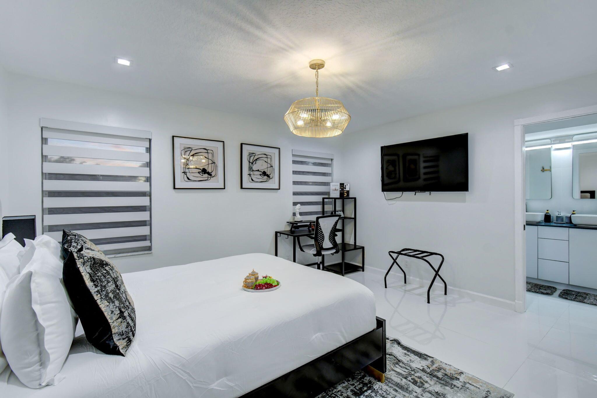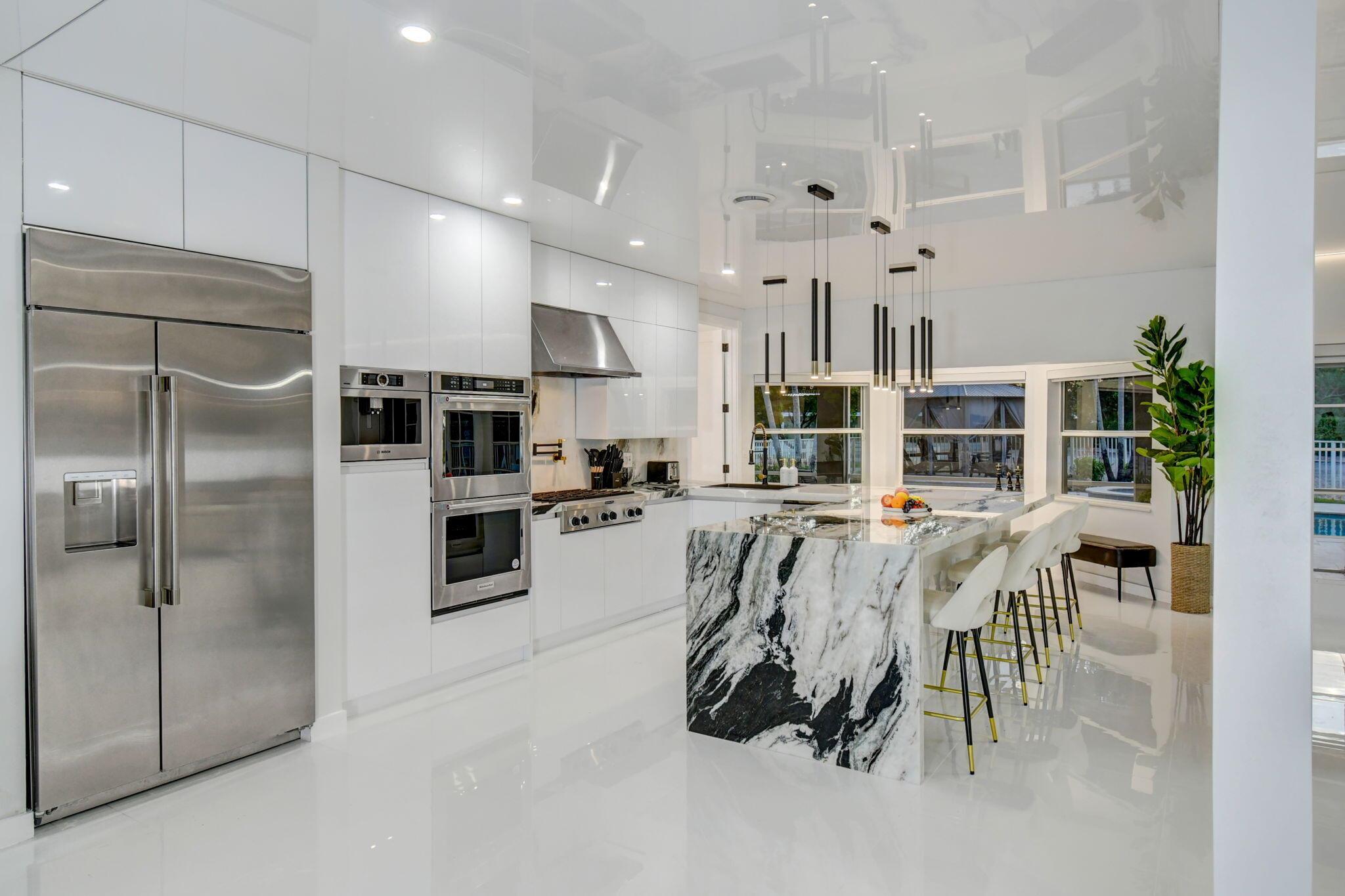New metal roof. Contemporary renovation just completed on this well located private estate on almost 2 acres . Just a short golf cart ride to all 3 of the major local equestrian venues. The property includes a 4,200 sq home with open concept design with 7 beds, 5 baths and a living room to match! Two master bedroom suites on each level of house consist of a large bedroom, two walk-in closets, and an exciting large master bathroom with soaking tub, dual vanities, large frameless glass walk-in shower. Elegant design from entering the house and walking to the second floor on a staircase with glass railings. Expensive flat European ceilings on the first floor and Italian chandeliers give a stylish look to the house. Marble wall and matching kitchen tables give the house distinctive design