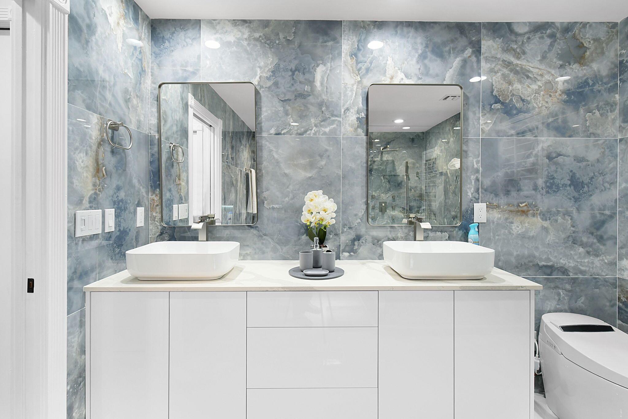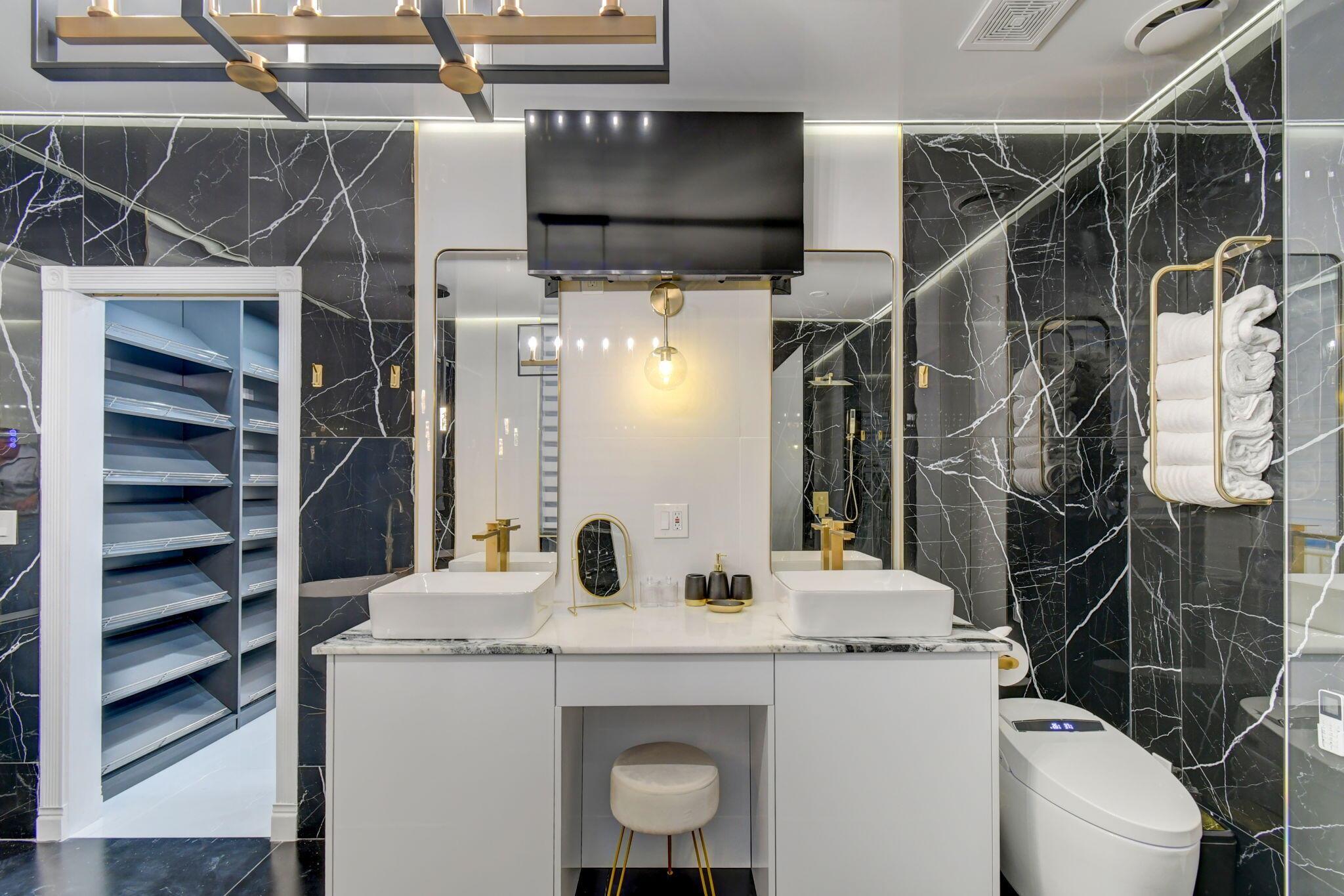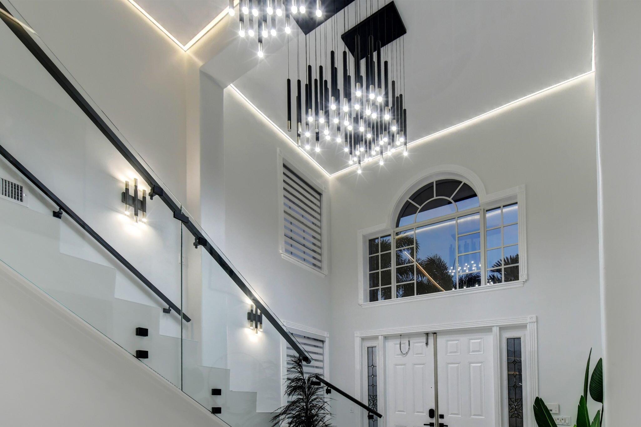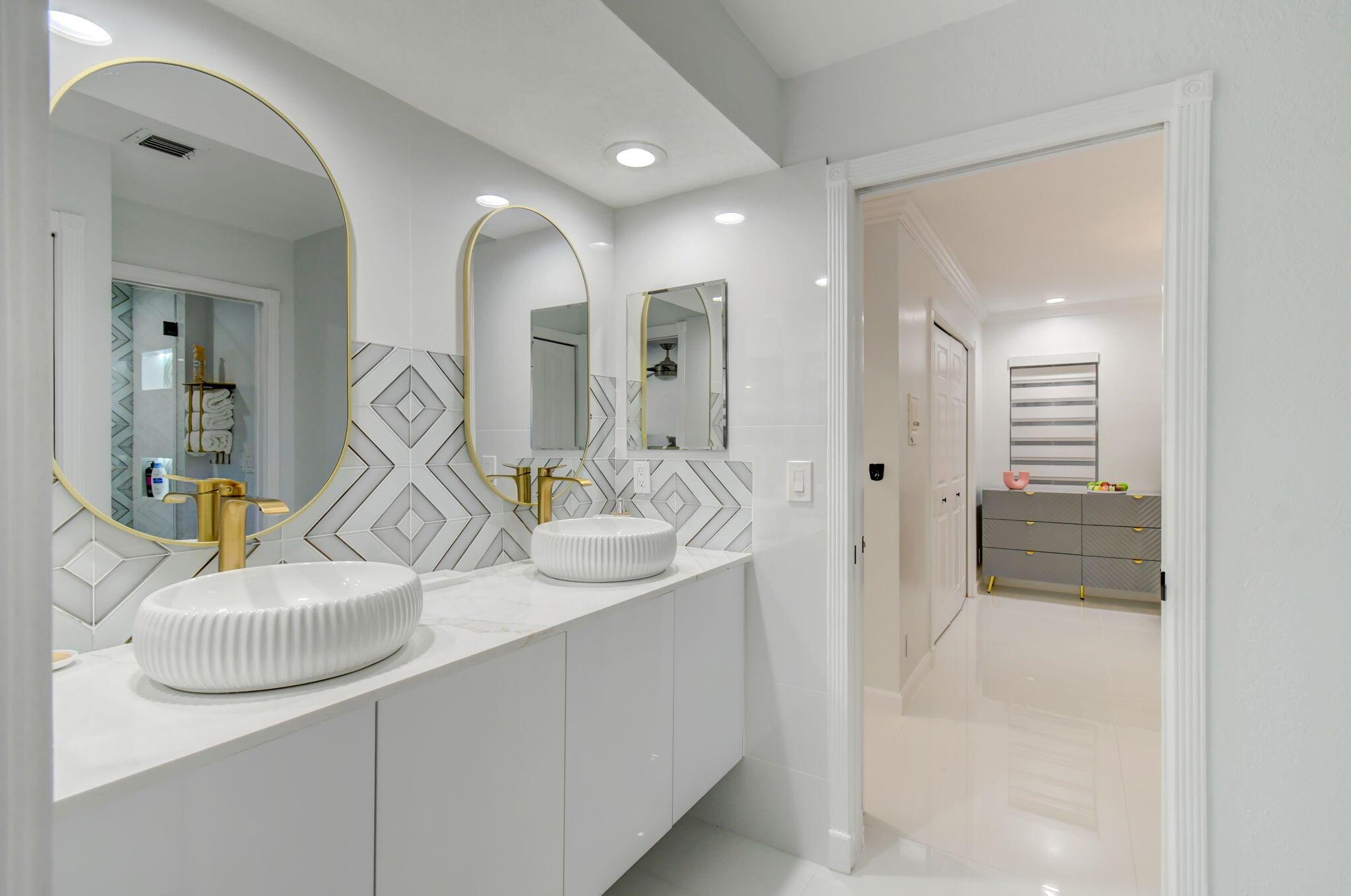 New metal roof. Contemporary renovation just completed on this well located private estate on almost 2 acres . Just a short golf cart ride to all 3 of the major local equestrian venues. The property includes a 4,200 sq home with open concept design with 7 beds, 5 baths and a living room to match! Two master bedroom suites on each level of house consist of a large bedroom, two walk-in closets, and an exciting large master bathroom with soaking tub, dual vanities, large frameless glass walk-in shower. Elegant design from entering the house and walking to the second floor on a staircase with glass railings. Expensive flat European ceilings on the first floor and Italian chandeliers give a stylish look to the house. Marble wall and matching kitchen tables give the house distinctive design
