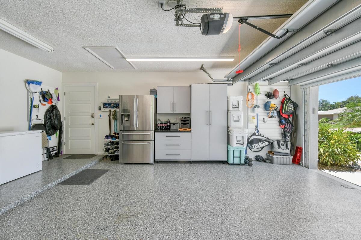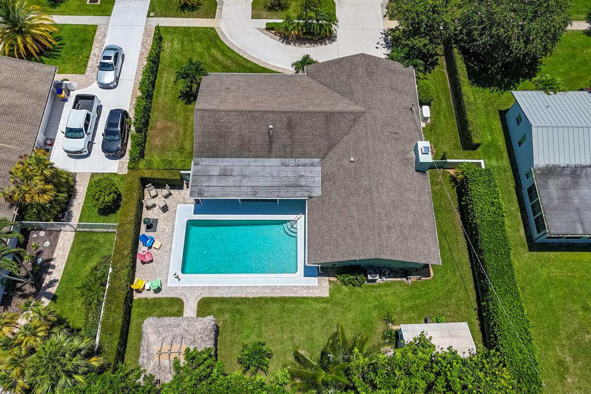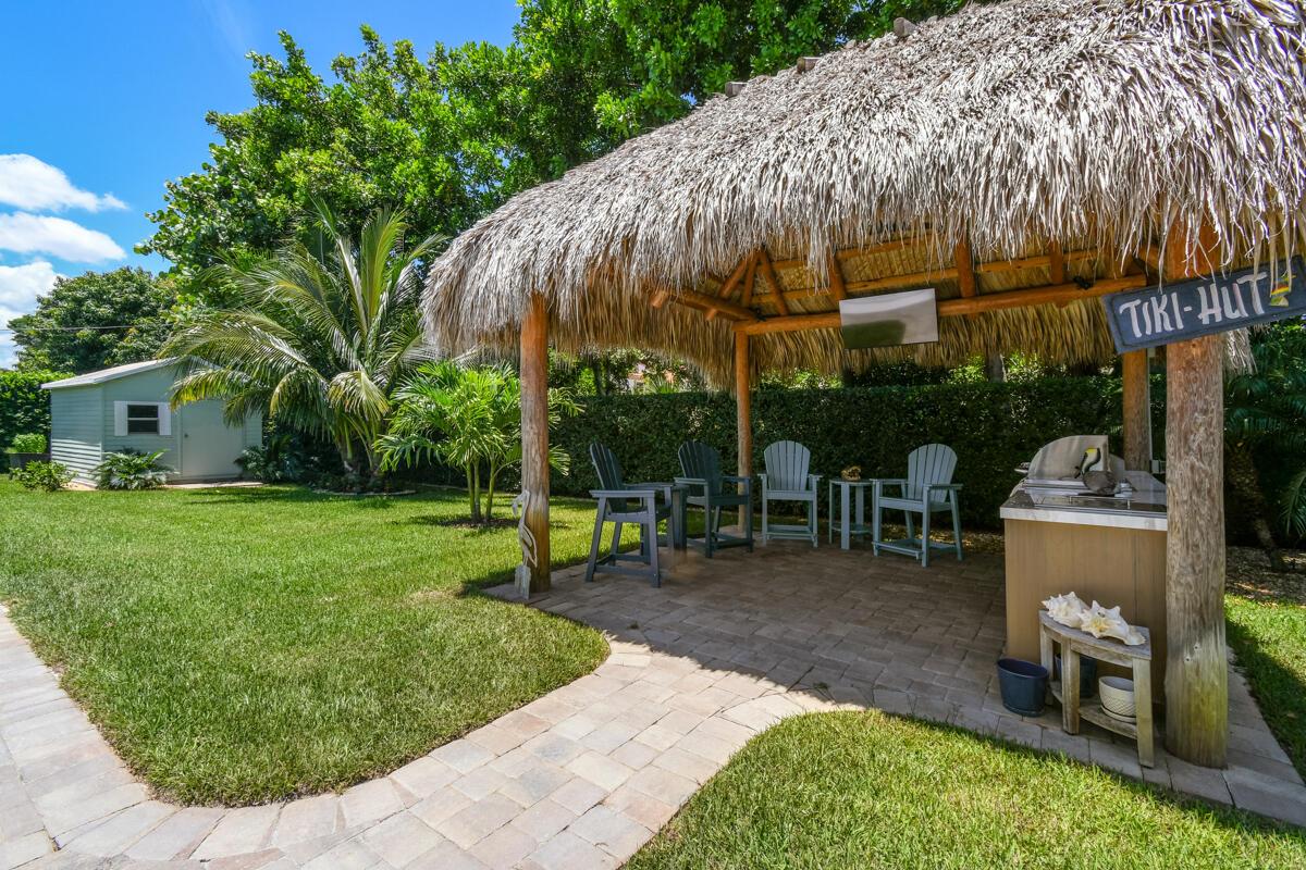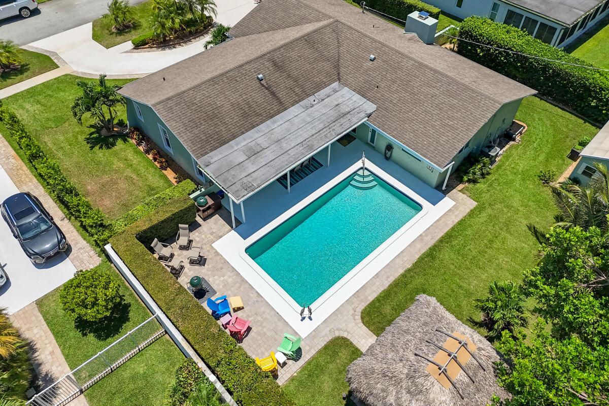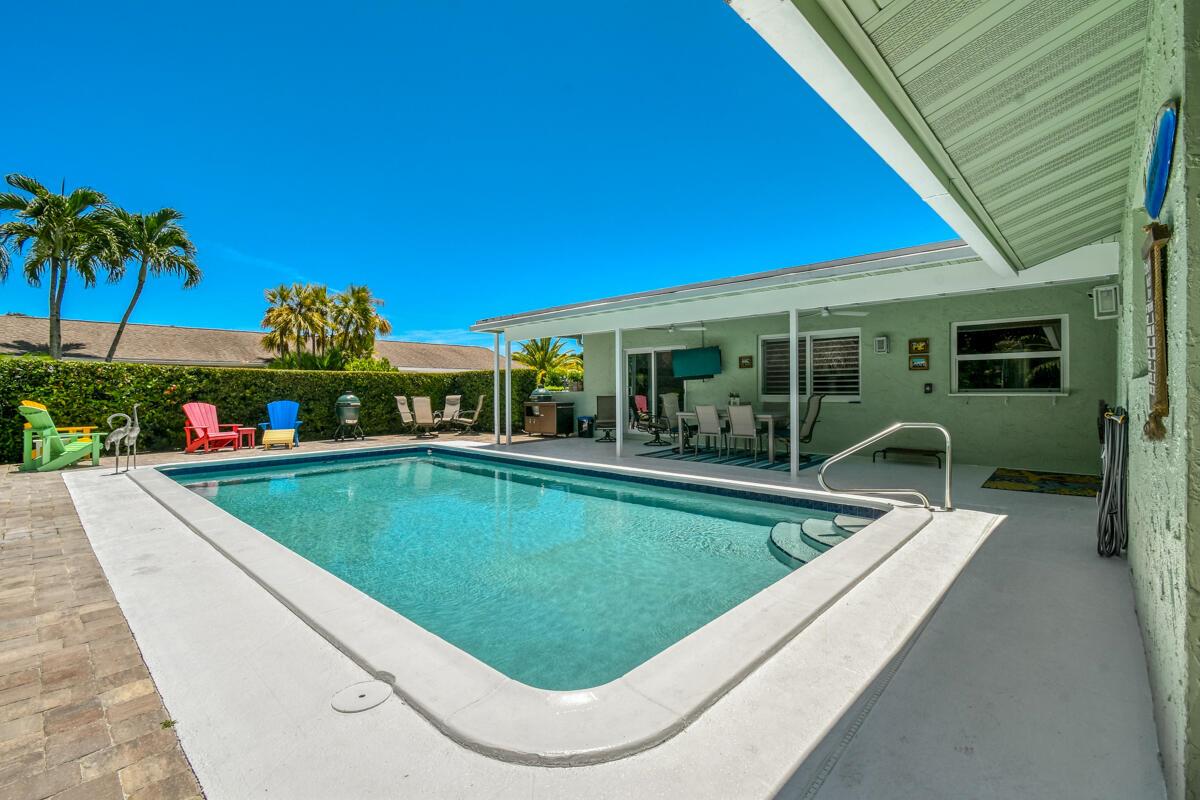Live the Florida lifestyle in this classic 3-bedroom, 2-bath CBS home, beautifully upgraded for modern living! Nestled on a spacious 1/3-acre lot along the highly coveted Prosperity Farms corridor and just 2 miles from the beach, this property offers the perfect blend of comfort, style, and convenience.Step outside to your private oasis featuring a sparkling pool, Tiki Hut, and fully equipped outdoor kitchen–ideal for entertaining or relaxing year-round. Inside, the remodeled kitchen boasts quartz countertops and pull-out cabinet shelving, while both bathrooms have been tastefully updated.Additional highlights include:Storm-ready with whole-house generator + impact windows/doorsEpoxy garage floors with built-in cabinetryNew AC (2024)Plantation shutters and flush-mount LED