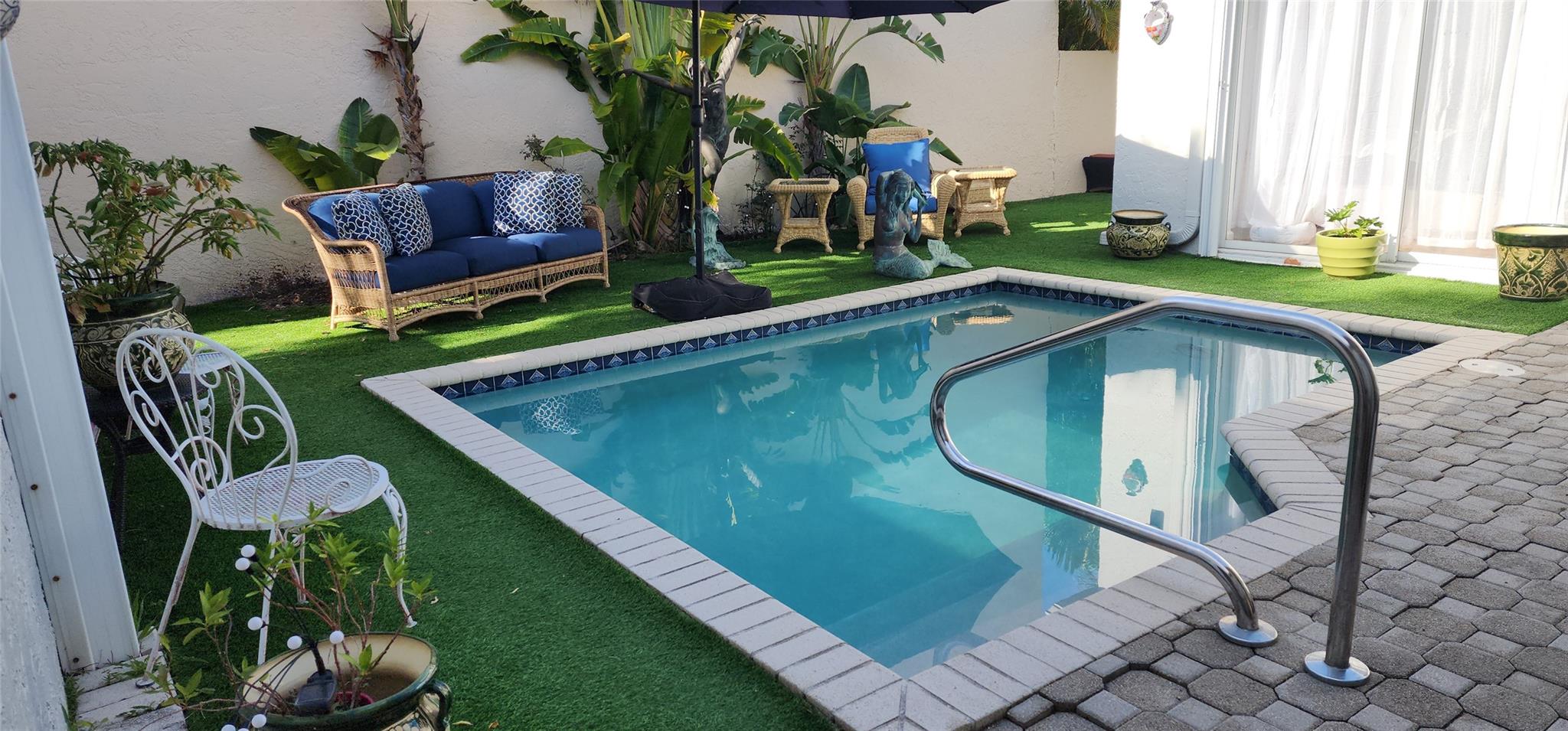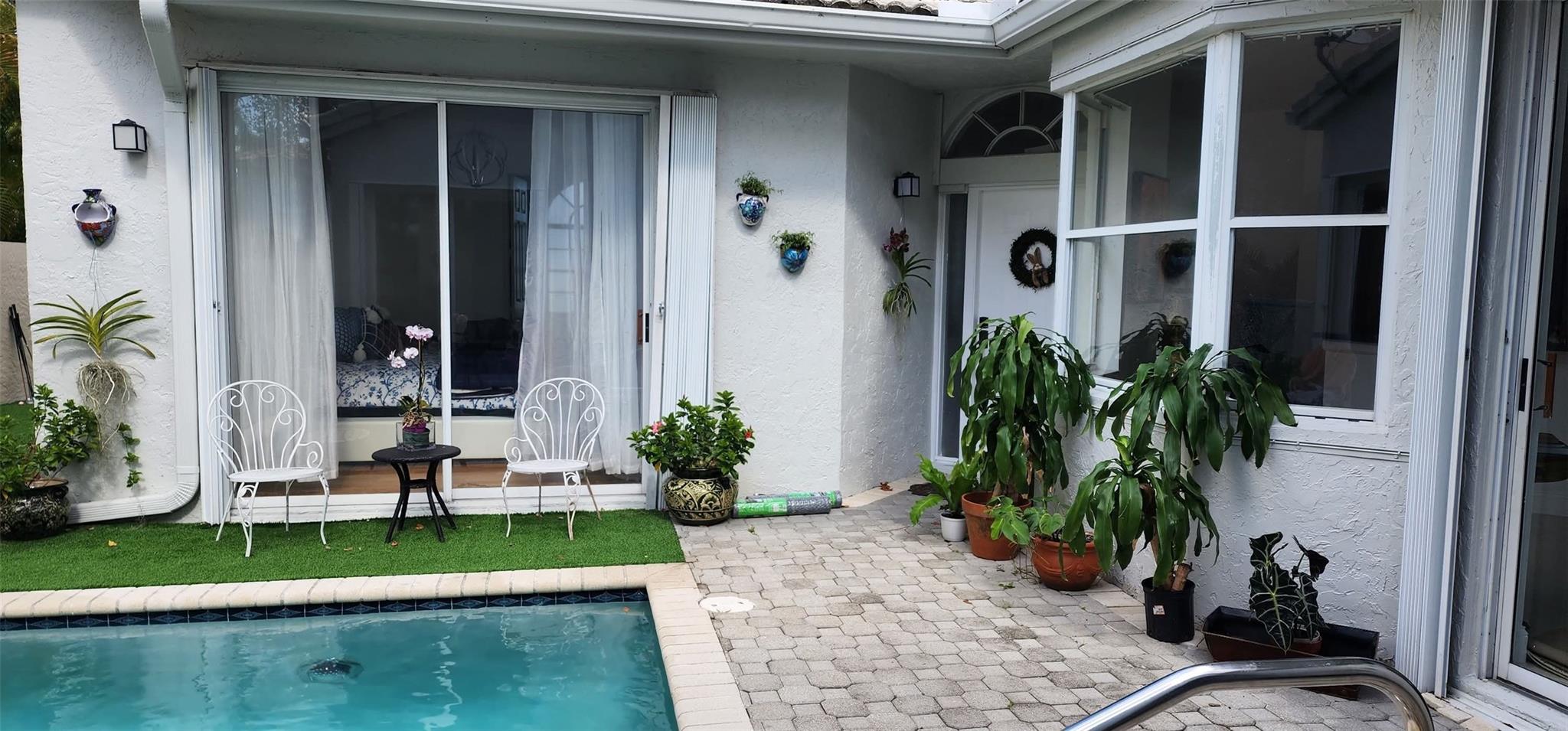 Home with a view!! Beautiful detached single story home with pool over looking golf course. This home offers a courtyard entry with a separate bedroom/bath with sliders to the pool. Can be used as an office, in-law suite, man cave etc. The main house offers two more bedrooms and two full bath, living room, dinning and open kitchen. Plenty of closets. Two car garage. The living room has a magnificent view of the golf course. Located in a gated community with low HOA. Quiet and safe neighborhood. Conveniently located near schools, synagogue, churches, shops and restaurants. Minutes to I-95, Palm Beach Outlet Mall. 15 minutes to the beach and downtown West Palm Beach. Minutes to Palm Beach International Airport. There is a community pool and Tennis courts as well.