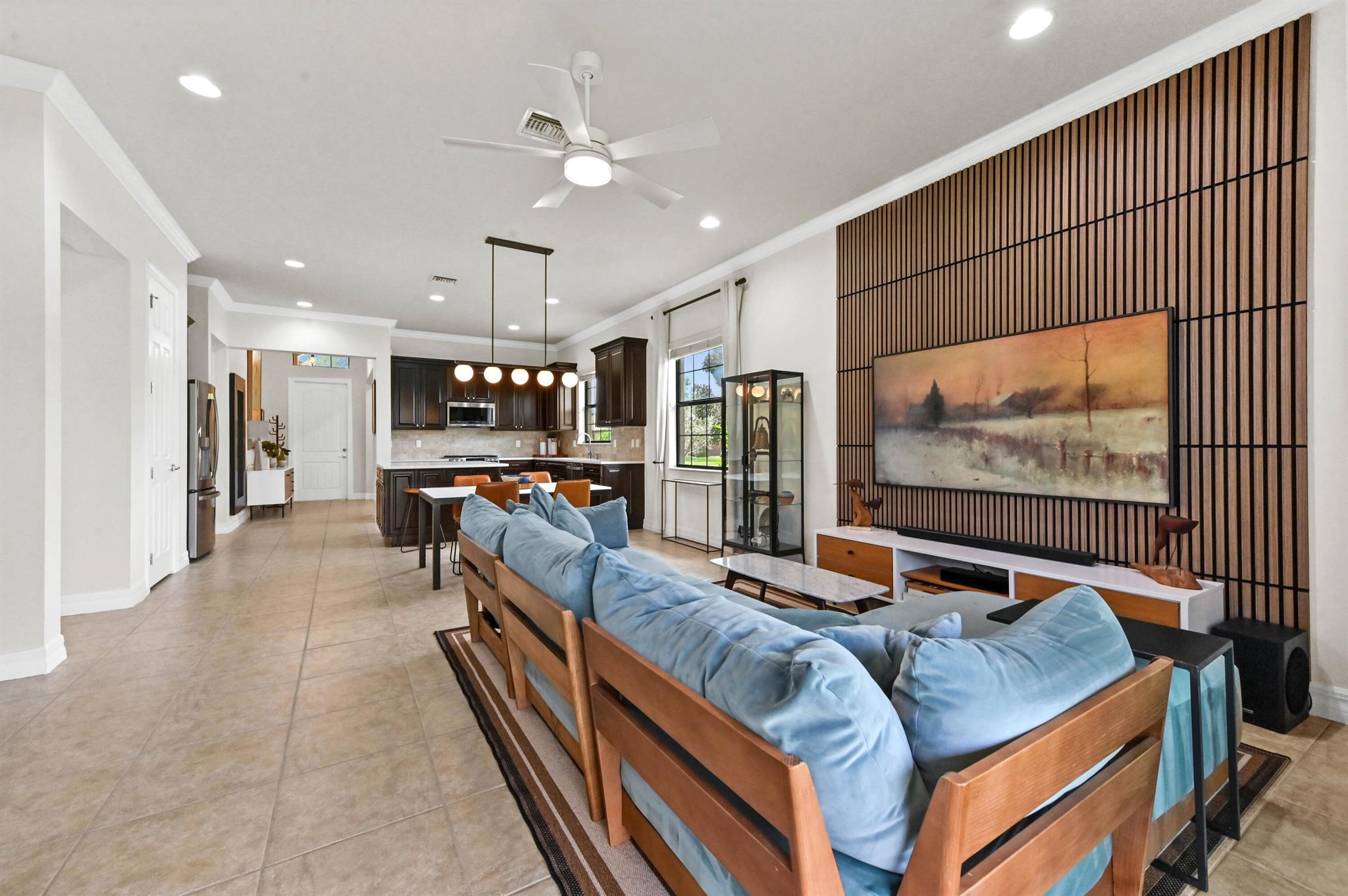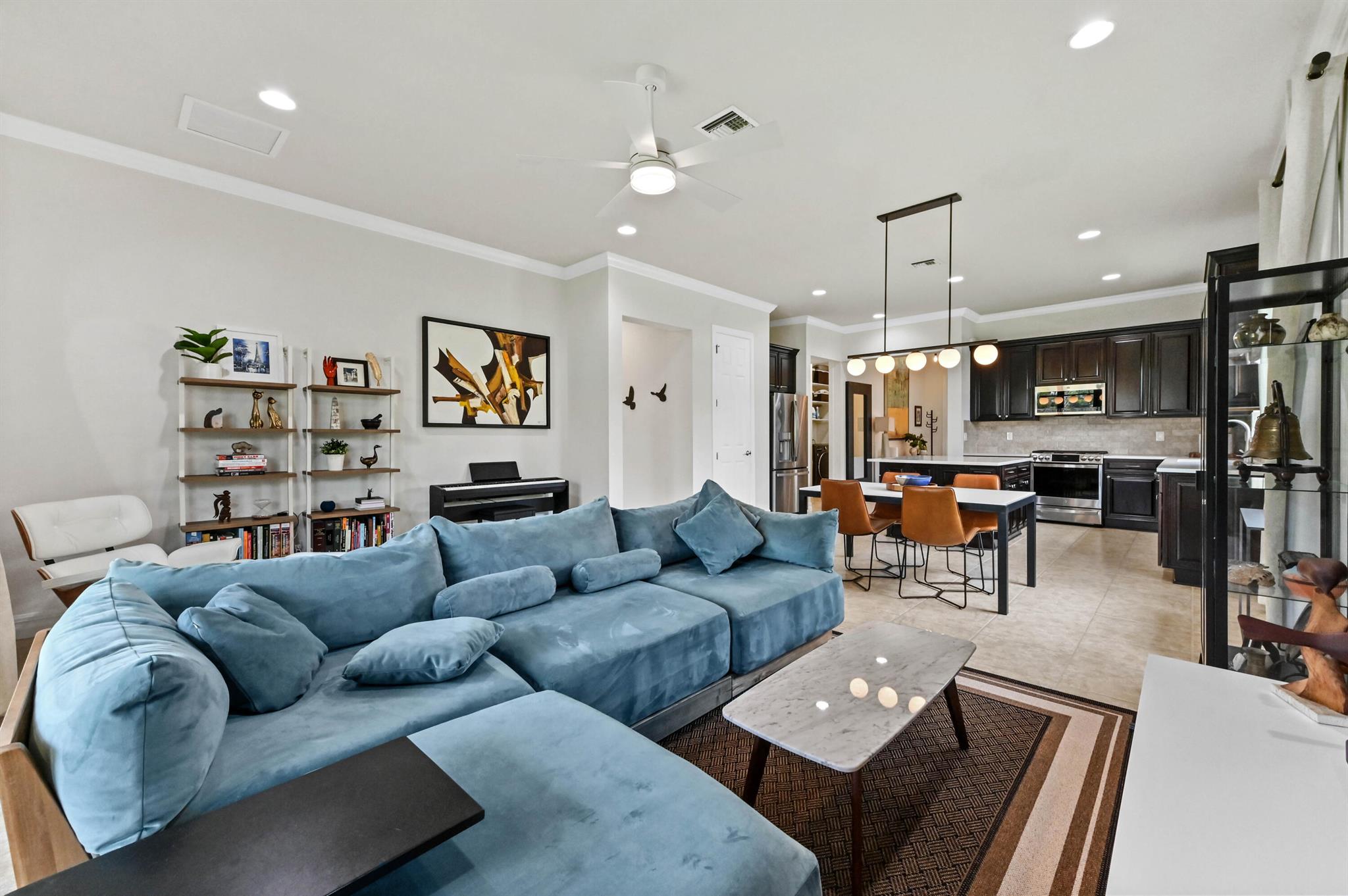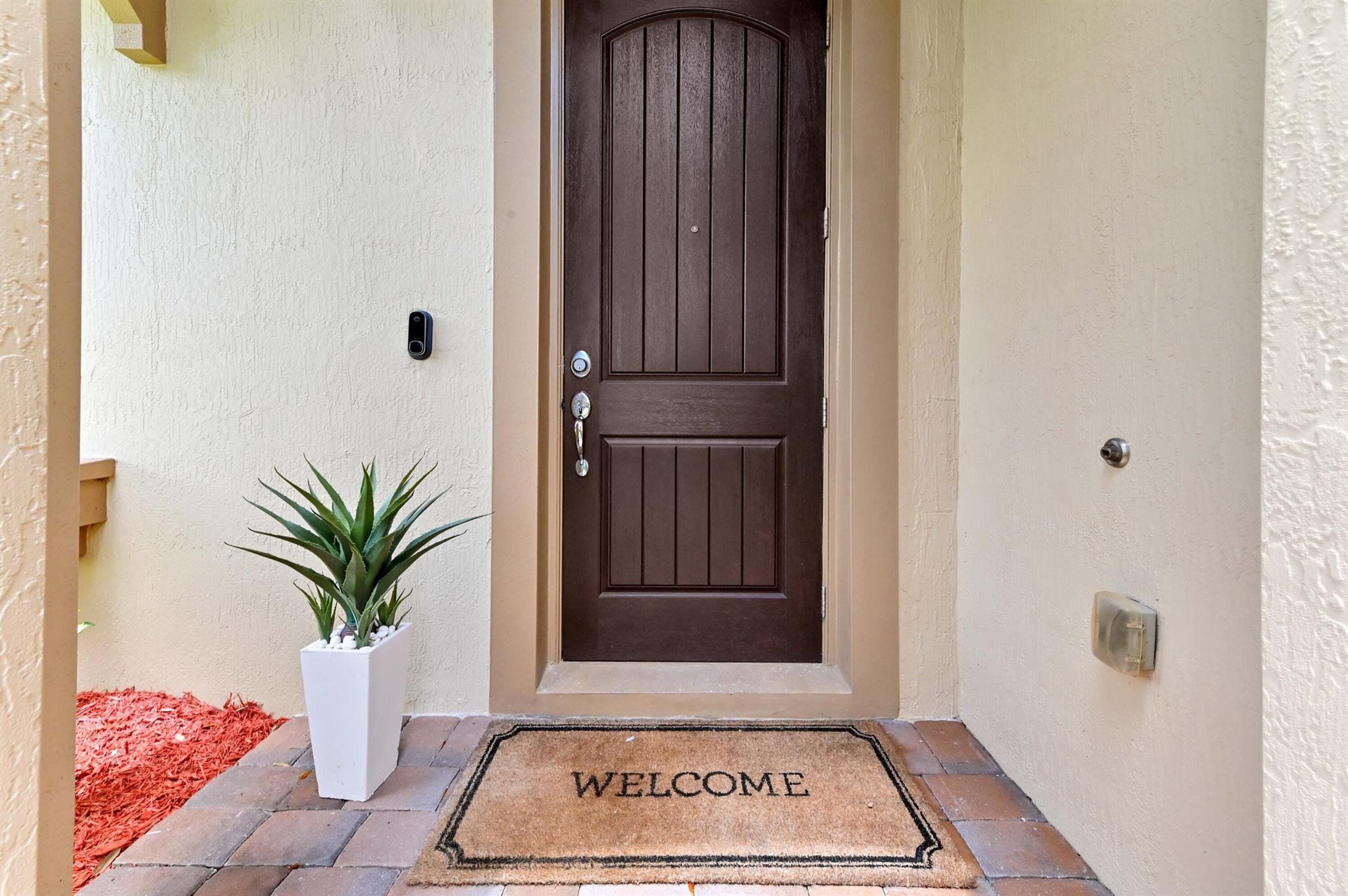 Welcome to this beautifully maintained, light-filled 3-bedroom, 2-bathroom home located on a large corner lot just steps from the clubhouse and pool. This smart home also features a two-car garage, plenty of room for a pool and hurricane impact windows and doors for extra safety and peace of mind.Inside, you’ll find quartz countertops, tile flooring throughout, and an upgraded screened-in patio with a large ceiling fan–a great space to relax or entertain. The home is low-maintenance, with front and backyard lawn care covered by the HOA.