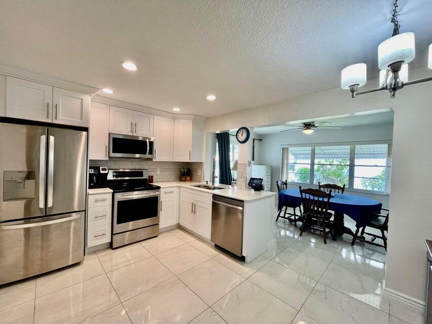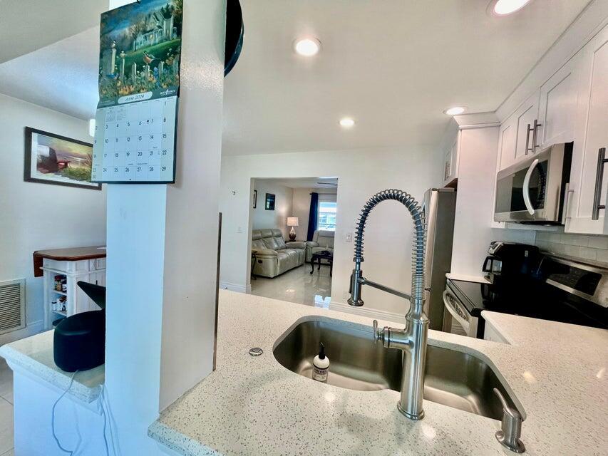 This move in ready 2/1/1 home is picture perfect. Home has been beautifully updated and been lovingly maintained. Roof was replaced in 2019 by AAM Roofing with additional straps & 3rd nail for insurance credits, AC replaced 2019, hot water heater replaced, popcorn ceilings have been removed, beautiful white cabinets, quartz countertops, & gorgeous SS appliances. Electrical panel has been updated inside and out, hurricane garage door, pull down stairs in garage, gorgeous 24×24” Crema Porcelain Tile throughout, bath updated with walk in shower and this lovely home is situated on a lovely lot and quiet street that sits between R2 & R3 clubhouse. This beauty is ready for the season. Don’t wait.