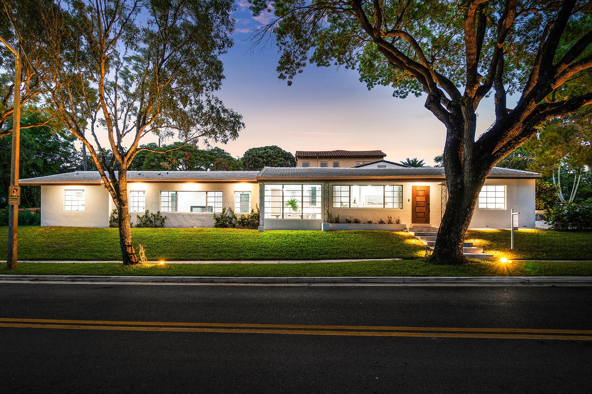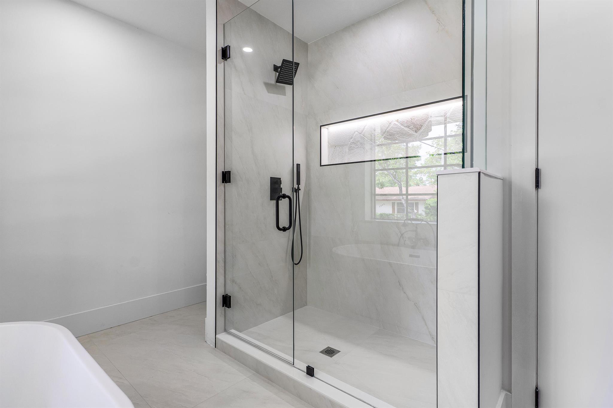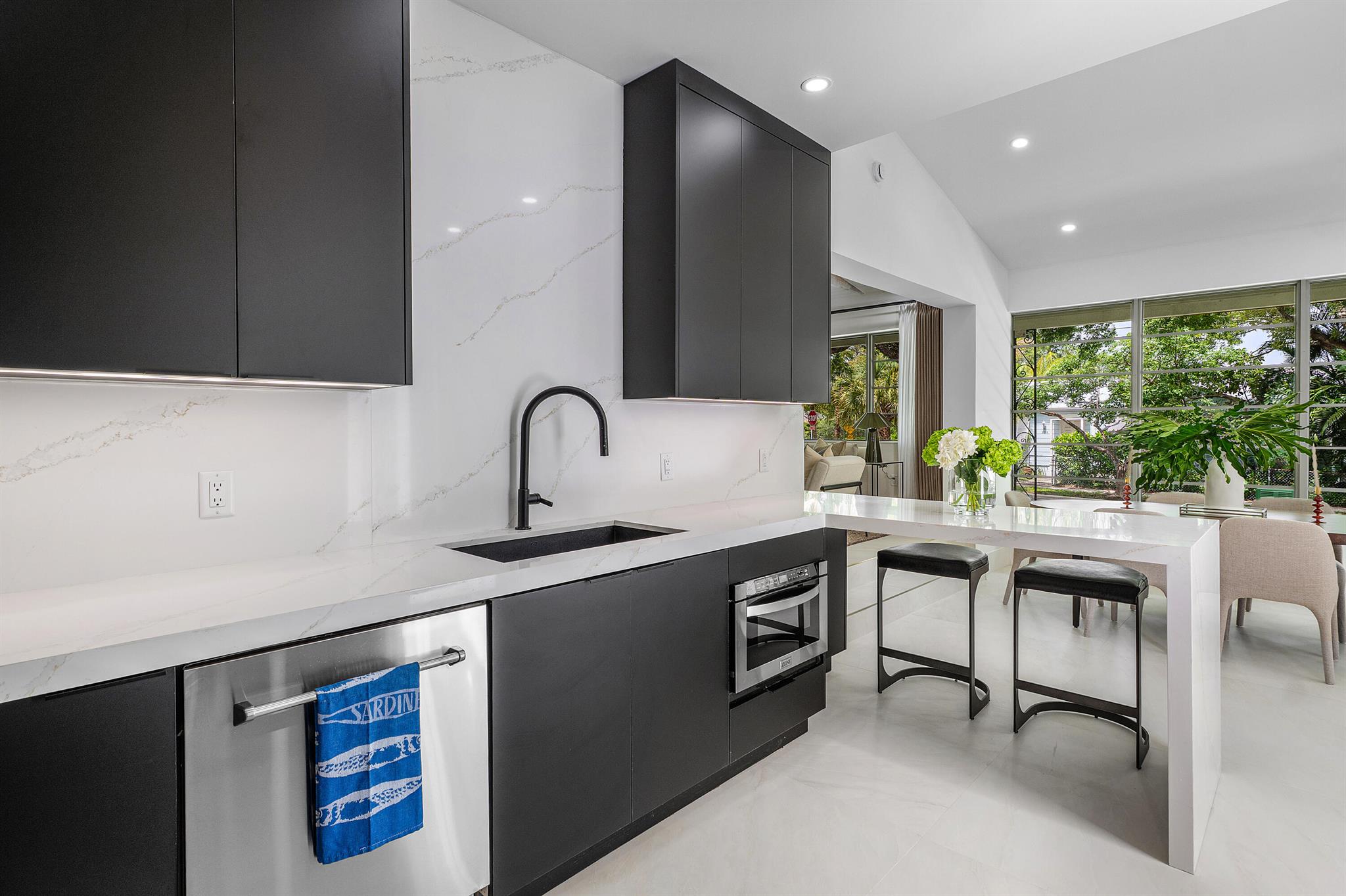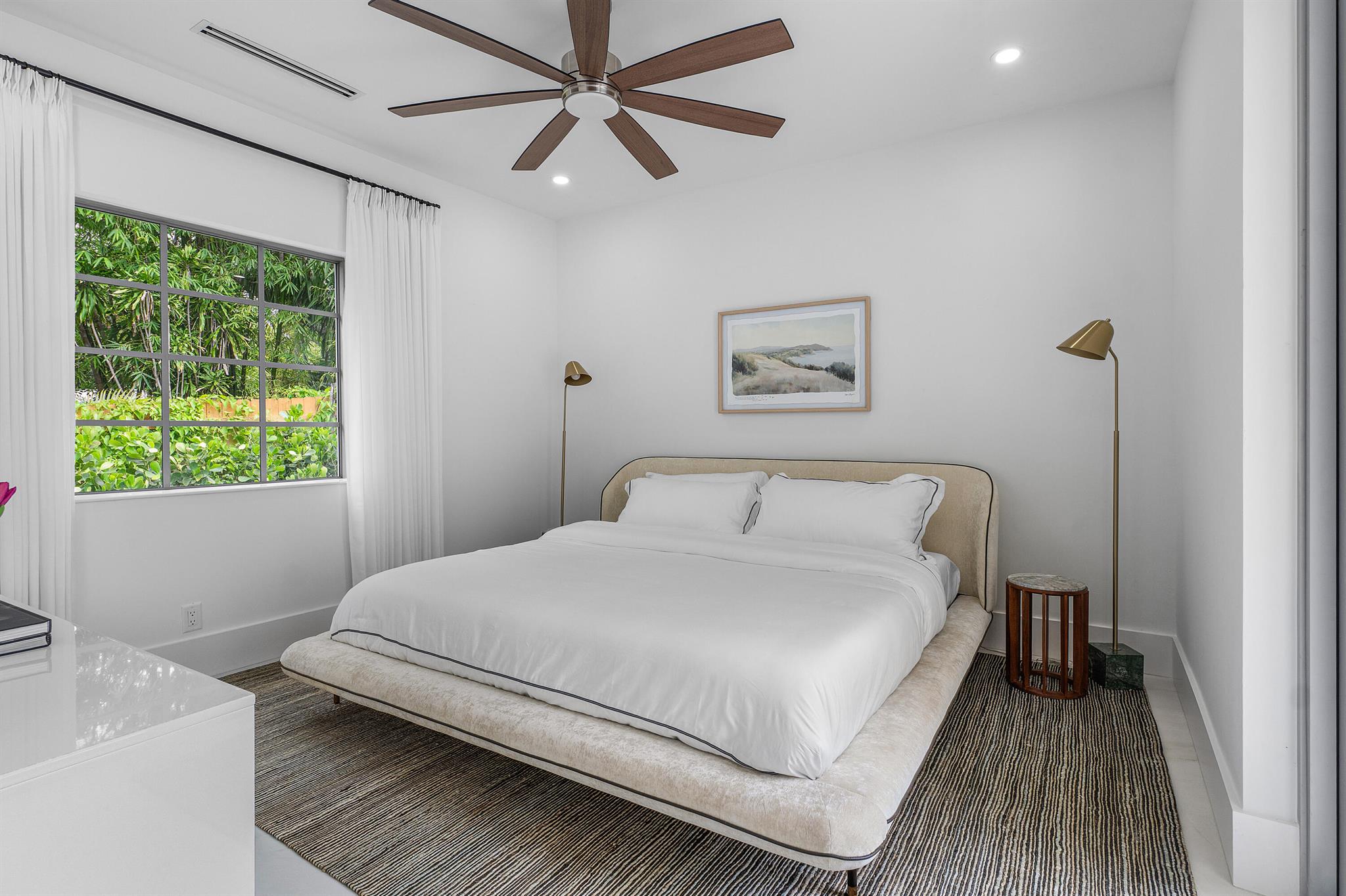 2330 Lake Avenue is a true showpiece–reimagined in 2025 by award-winning Flamingo Park Development and thoughtfully crafted to stand apart in one of West Palm Beach’s most beloved historic neighborhoods.Behind its timeless facade lies a fully transformed single-story home offering 4 bedrooms, 3.5 bathrooms, a brand-new addition and pool, and design-forward interior–all within minutes from Downtown West Palm Beach and Palm Beach Island.This home blends historic character with a modern edge. Oversized 4′ x 4′ porcelain tile flooring sets the tone for the custom interior, where exposed ceiling beams, solid core wood doors, and clean-lined trim elevate the space.At the heart of the home is a dramatic dual-sided electric fireplace clad in quartz flagstone mosaic, accompanied