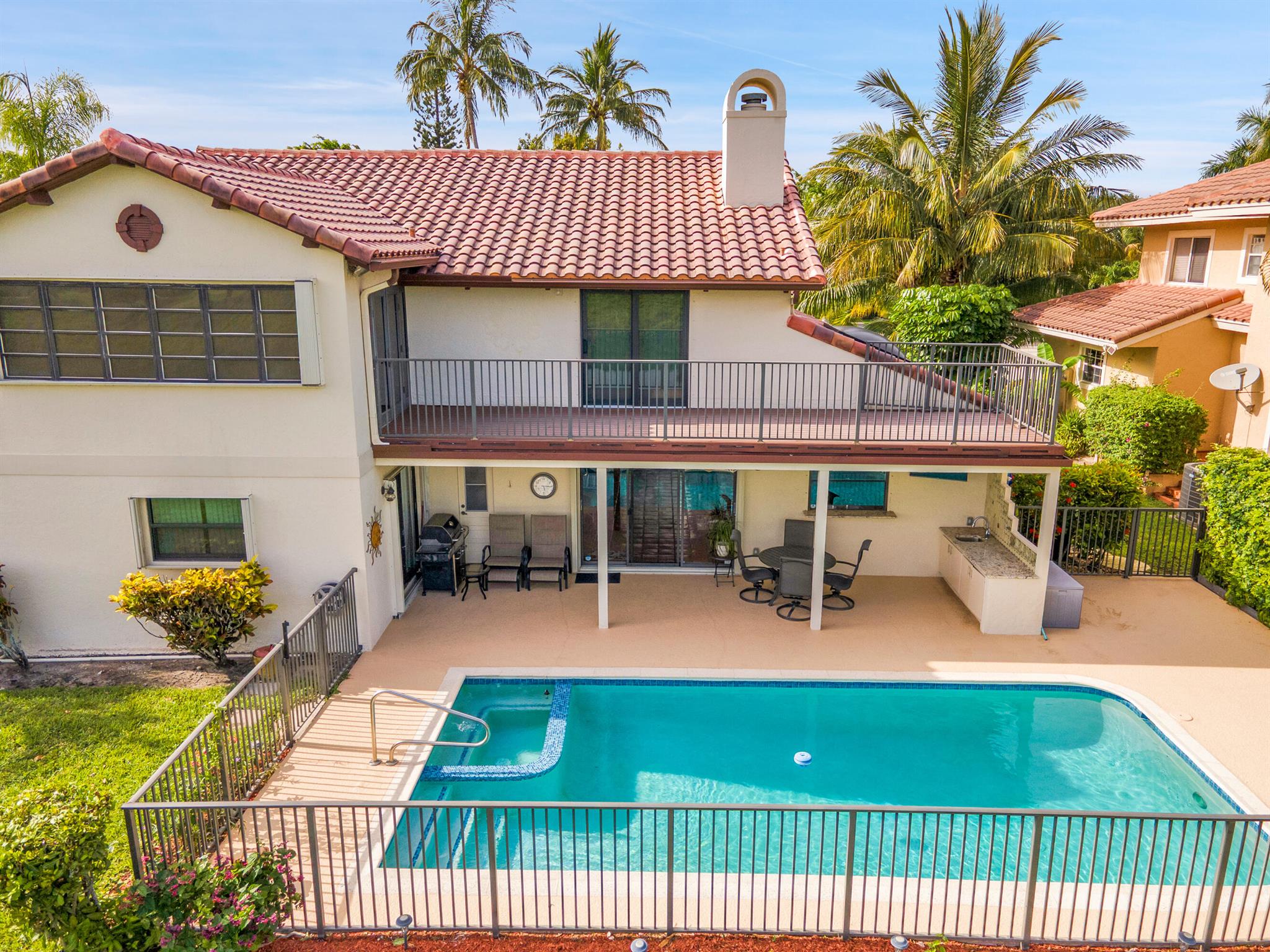Step inside this hidden East Boca Raton gem where soaring cedar ceilings and striking architecture make a bold first impression. Enjoy peaceful water and golf course views from your private oasis. A cozy fireplace adds warmth, while the airy loft creates a sense of space and charm. Relax by the sparkling pool or work from home in the fourth bedroom, currently used as an office just off the master suite. This rare find is tucked in a superb location close to top schools and the best shopping, style, comfort, and convenience all in one.