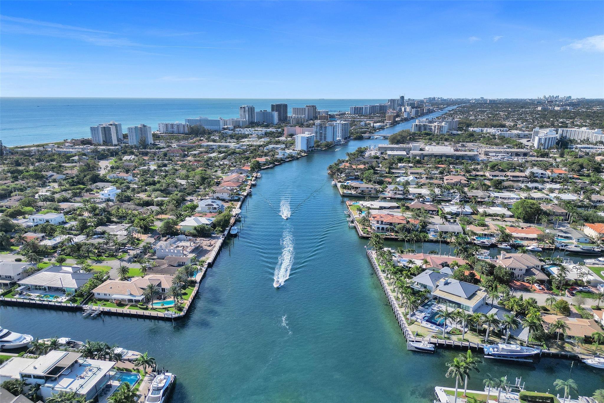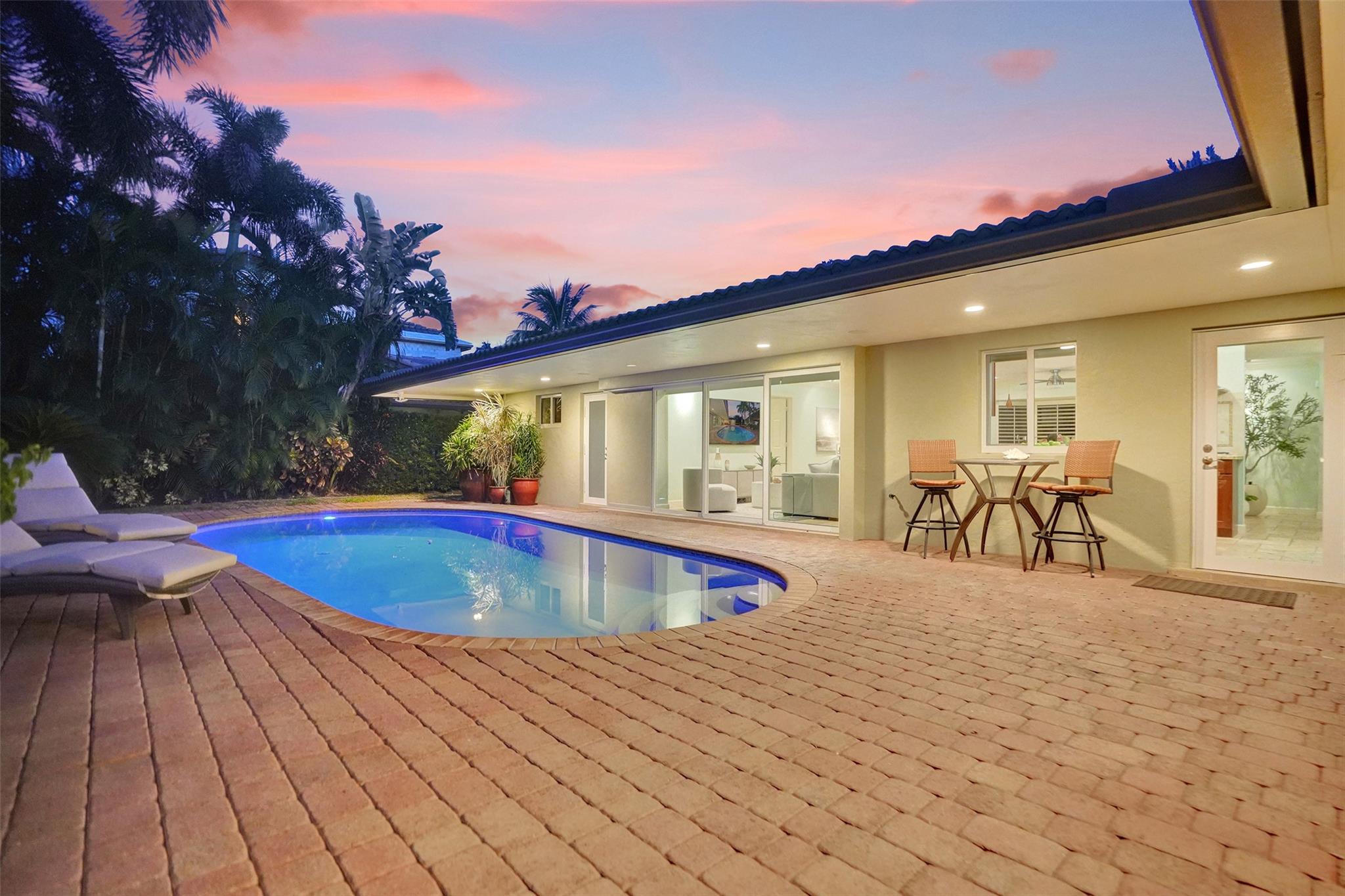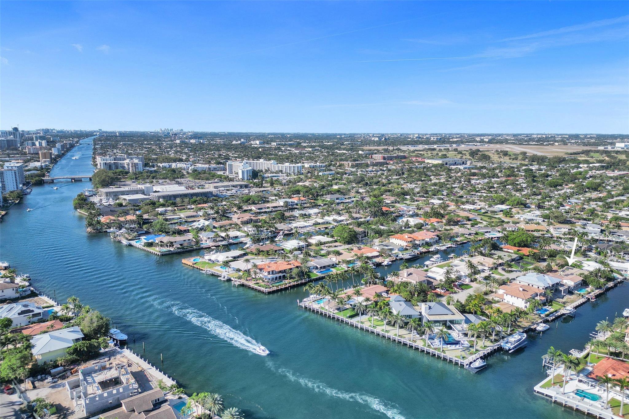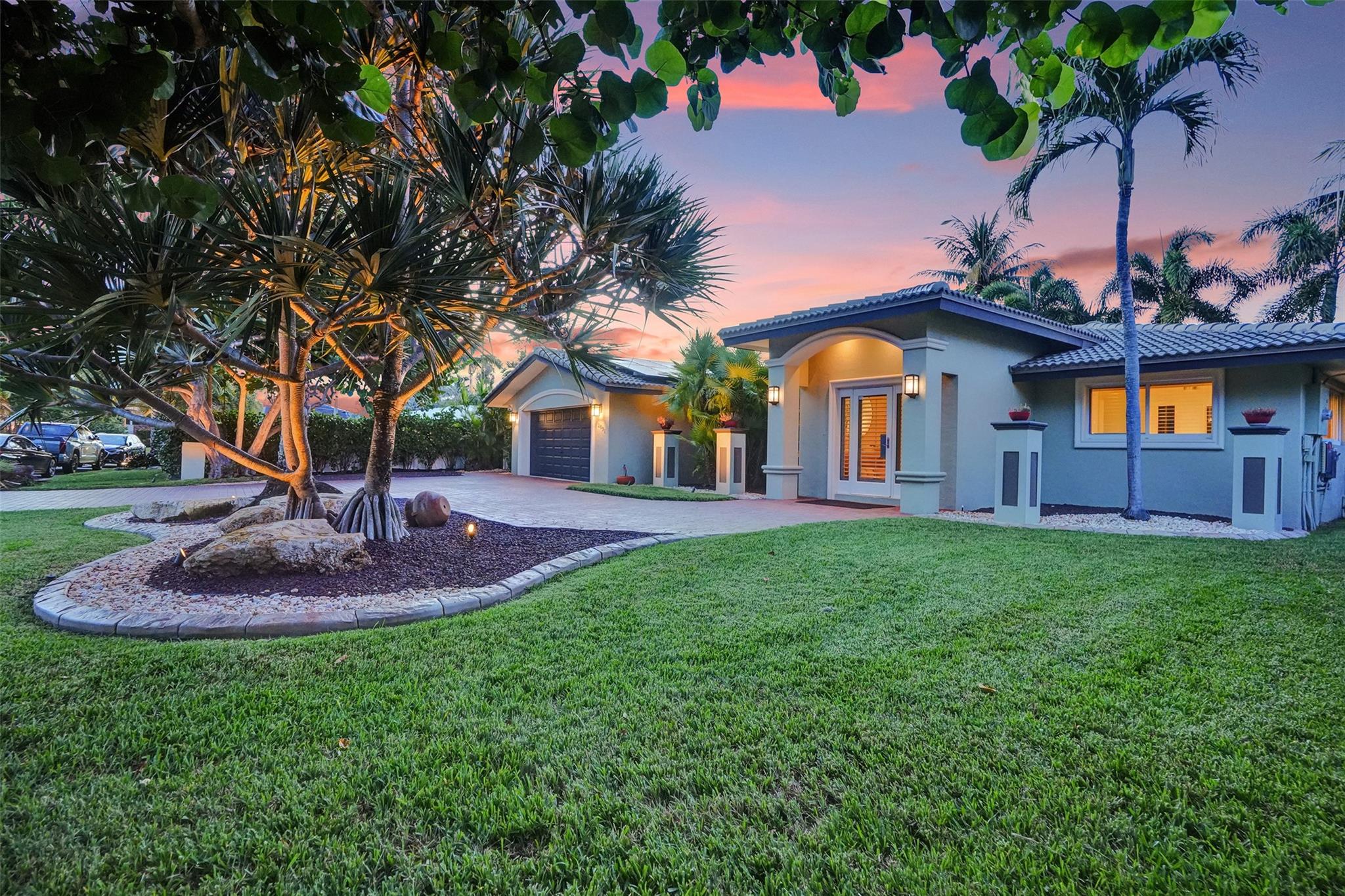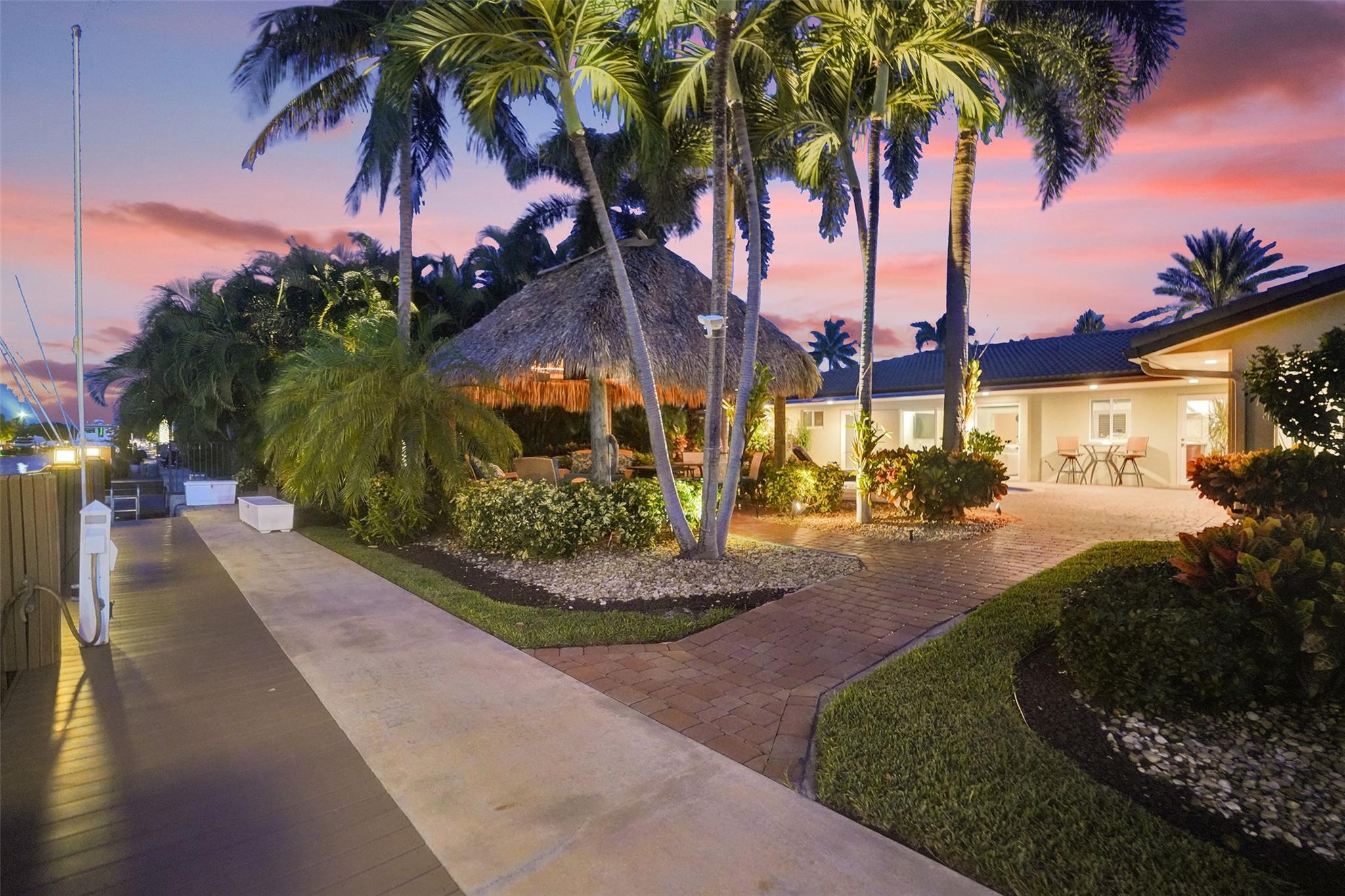 This stunning 2-bed 2-bath w/ office, fully rebuilt in 2008, home on a cul-de-sac offers 80 ft of waterfront & 60 ft of dock, no fixed bridges, & direct access to Intracoastal & ocean—just 6 houses in from the Intracoastal & minutes to the Hillsboro Inlet! Nestled on a spacious 9,600 sq ft lot, this home features a heated pool, an outdoor shower, & a tiki hut—perfect for evening entertaining. Enjoy the added benefits of solar panels & peace of mind w/hurricane impact windows & doors. The property includes a 2-car garage, w/plenty of storage & parking. Boating enthusiasts will appreciate the updated seawall/dock with view of the lighthouse! Income producing dock. A split floor plan provides privacy, & the kitchen boasts Bosch appliances w/ a gas range. Natural Travertine Floors thru out.