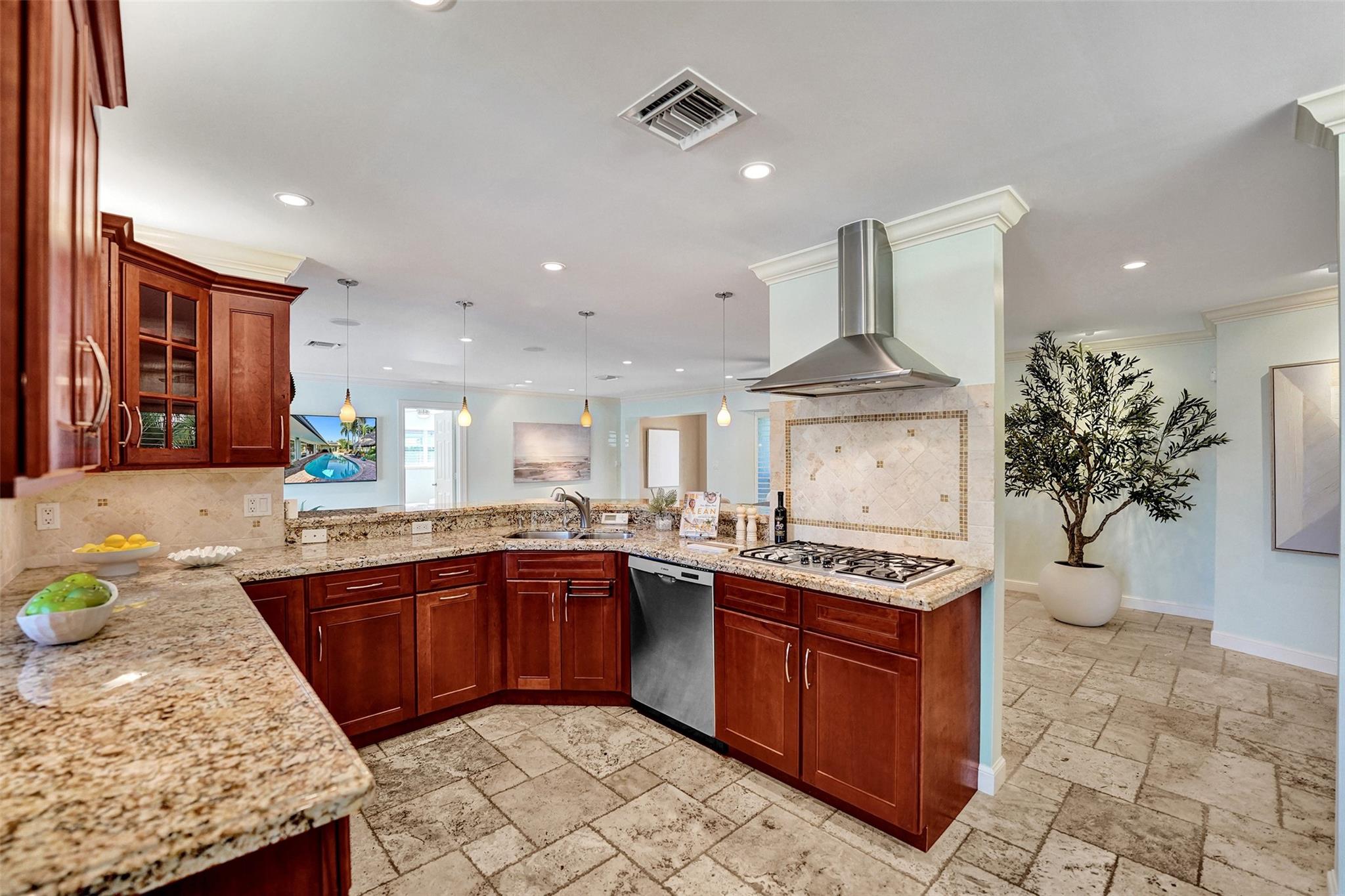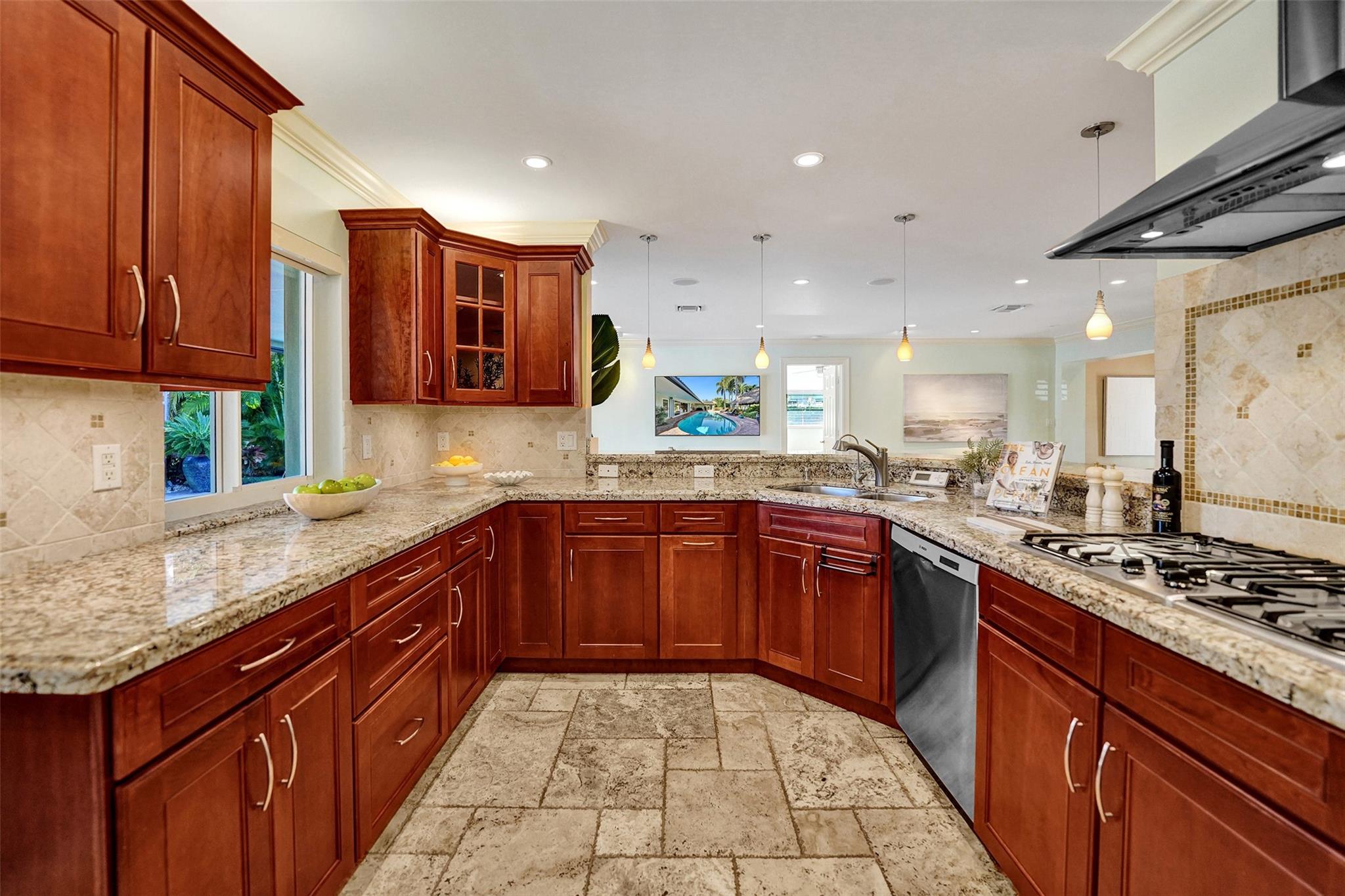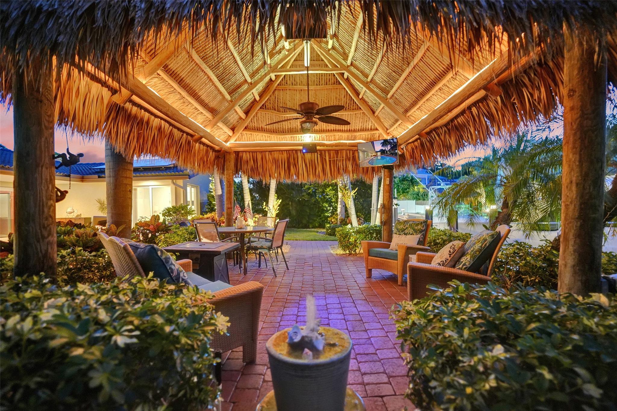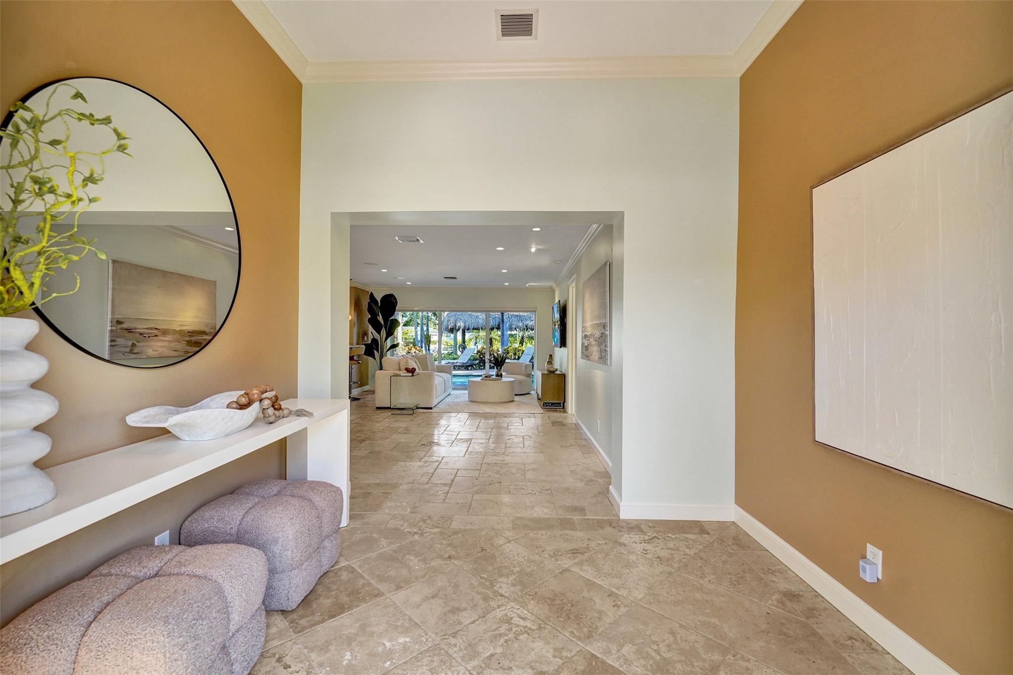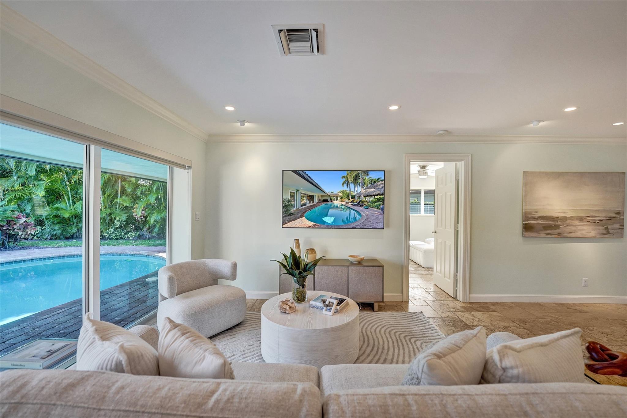 This stunning 2-bed 2-bath w/ office, fully rebuilt in 2008, home on a cul-de-sac offers 80 ft of waterfront & 60 ft of dock, no fixed bridges, & direct access to Intracoastal & ocean—just 6 houses in from the Intracoastal & minutes to the Hillsboro Inlet! Nestled on a spacious 9,600 sq ft lot, this home features a heated pool, an outdoor shower, & a tiki hut—perfect for evening entertaining. Enjoy the added benefits of solar panels & peace of mind w/hurricane impact windows & doors. The property includes a 2-car garage, w/plenty of storage & parking. Boating enthusiasts will appreciate the updated seawall/dock with view of the lighthouse! Income producing dock. A split floor plan provides privacy, & the kitchen boasts Bosch appliances w/ a gas range. Natural Travertine Floors thru out.