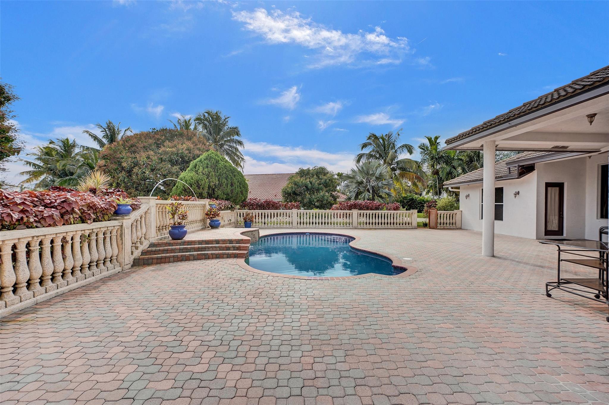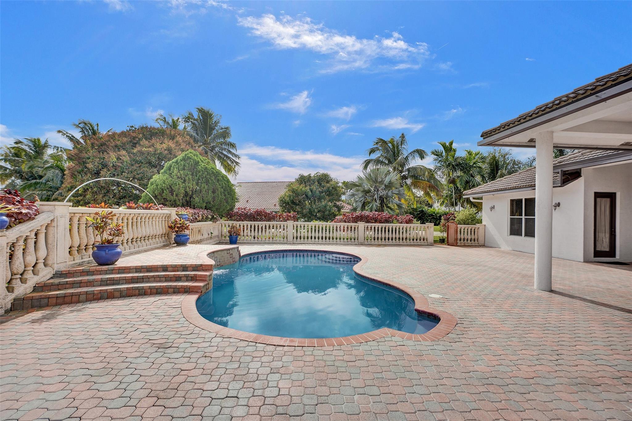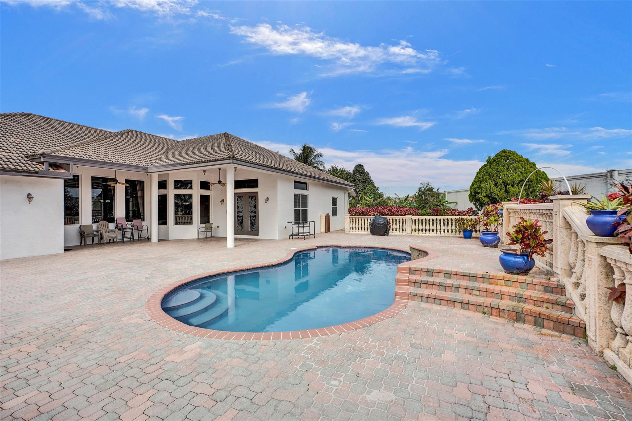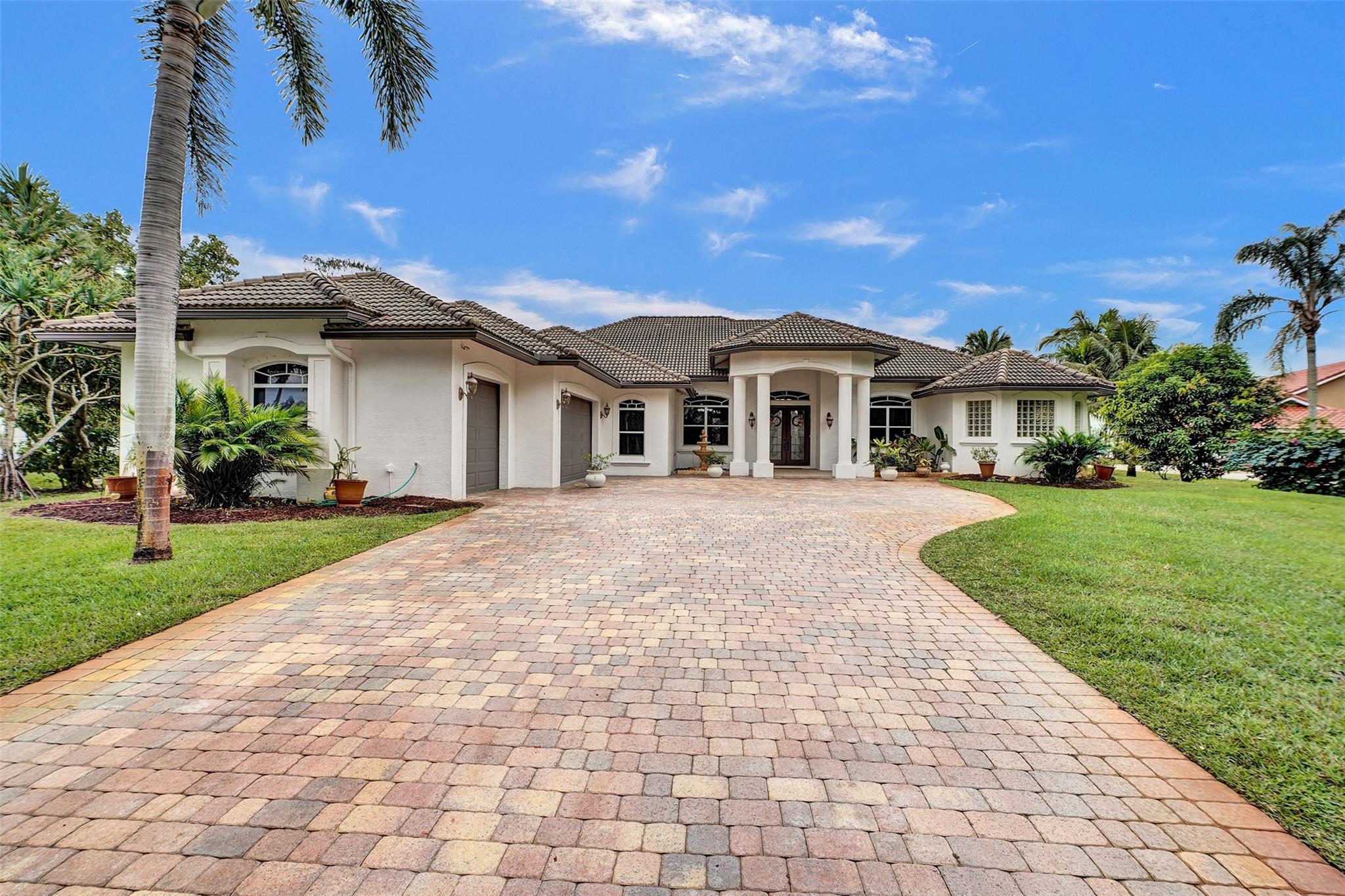 Experience unparalleled grandeur in this estate on over an acre in the prestigious Delray Lake Estates. Boasting 5 bedrooms, 4.5 baths, and an open-concept split floor plan, this home features soaring 12-foot ceilings, crown molding, and elegant tray ceilings. The master suite offers patio access, a Jacuzzi tub, walk-in shower, and bidet, while all bedrooms include custom closets, with two showcasing bay windows. The chef’s kitchen shines with a large island, new appliances, and a breakfast nook overlooking the pool and patio. Additional luxuries include a media room, home theater, library, and custom office/study. Outside, enjoy a tropical oasis with exotic fruit trees. Located near the turnpike for convenience, this estate is a rare blend of luxury and privacy. Same Day showings!