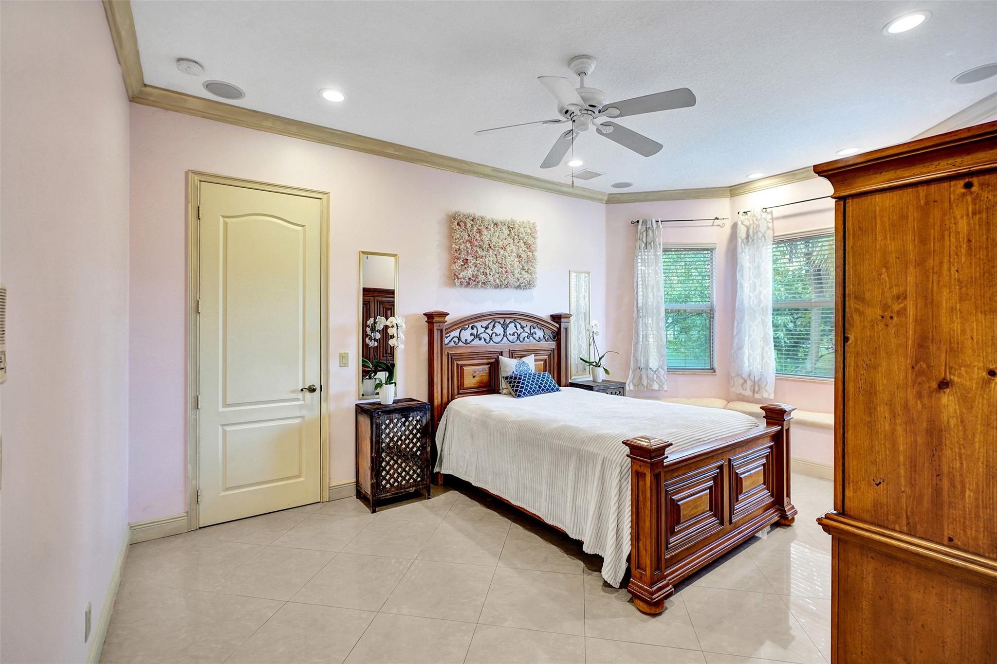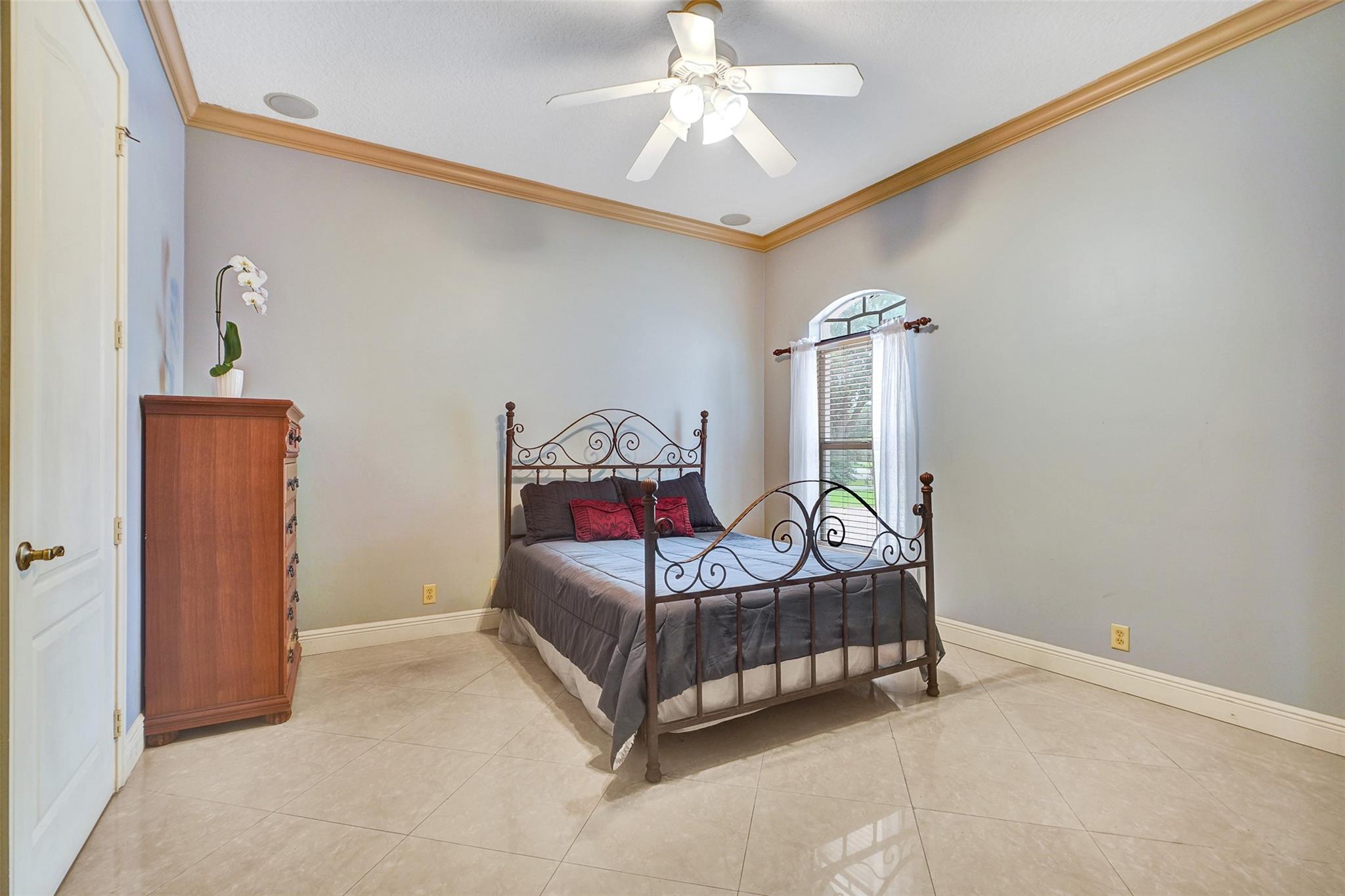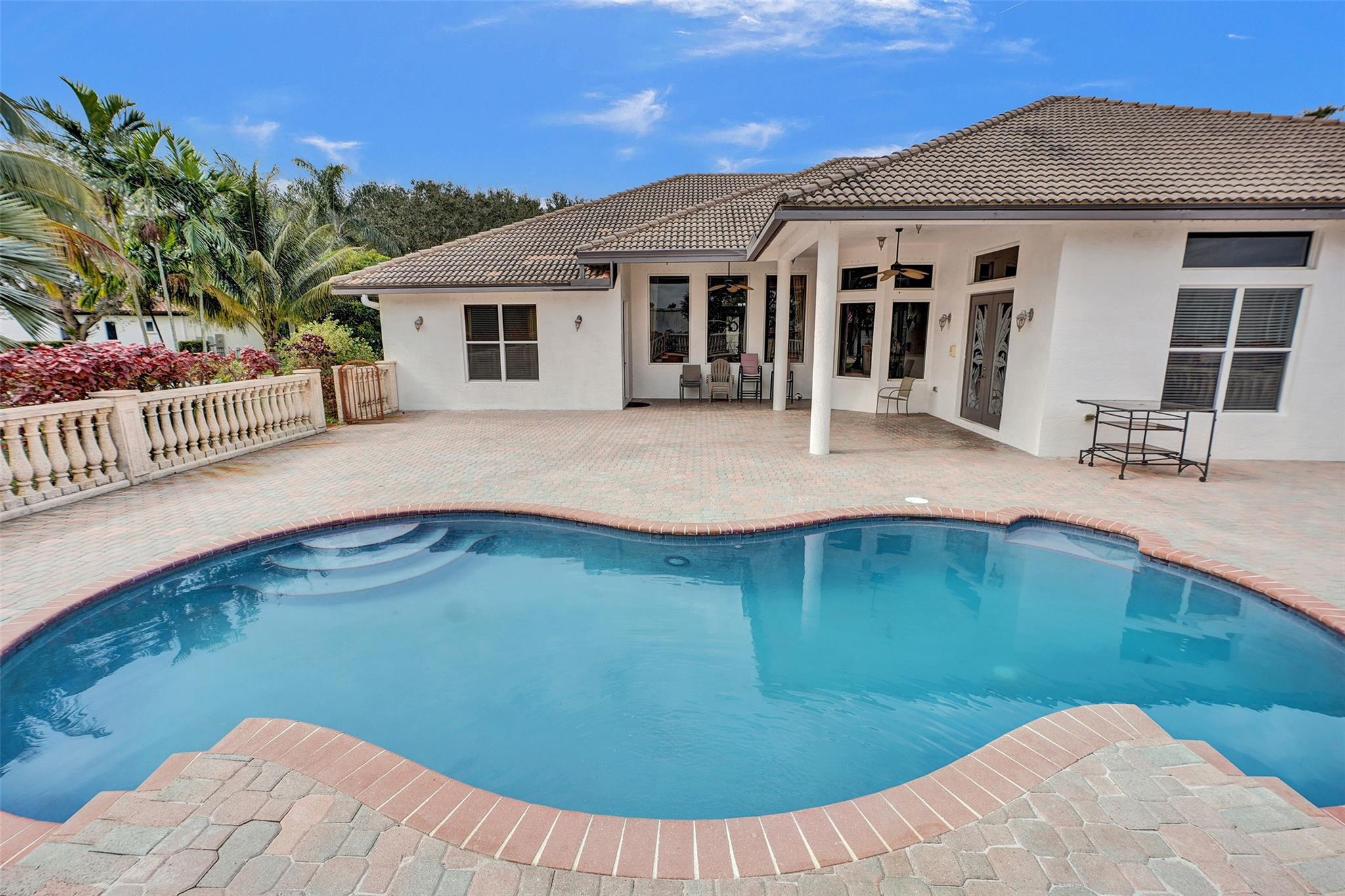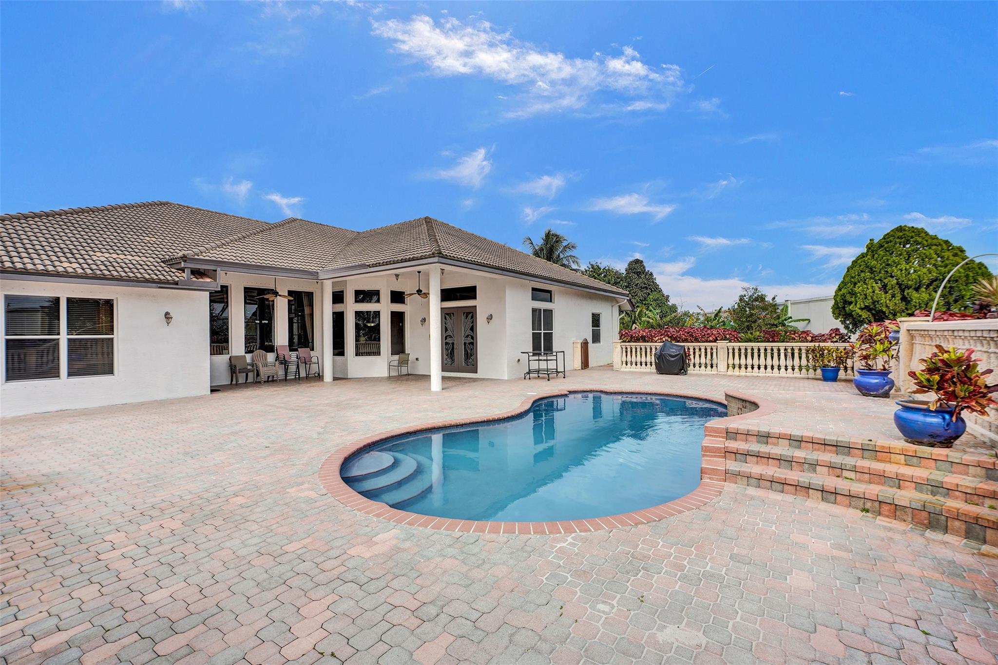 Experience unparalleled grandeur in this estate on over an acre in the prestigious Delray Lake Estates. Boasting 5 bedrooms, 4.5 baths, and an open-concept split floor plan, this home features soaring 12-foot ceilings, crown molding, and elegant tray ceilings. The master suite offers patio access, a Jacuzzi tub, walk-in shower, and bidet, while all bedrooms include custom closets, with two showcasing bay windows. The chef’s kitchen shines with a large island, new appliances, and a breakfast nook overlooking the pool and patio. Additional luxuries include a media room, home theater, library, and custom office/study. Outside, enjoy a tropical oasis with exotic fruit trees. Located near the turnpike for convenience, this estate is a rare blend of luxury and privacy. Same Day showings!