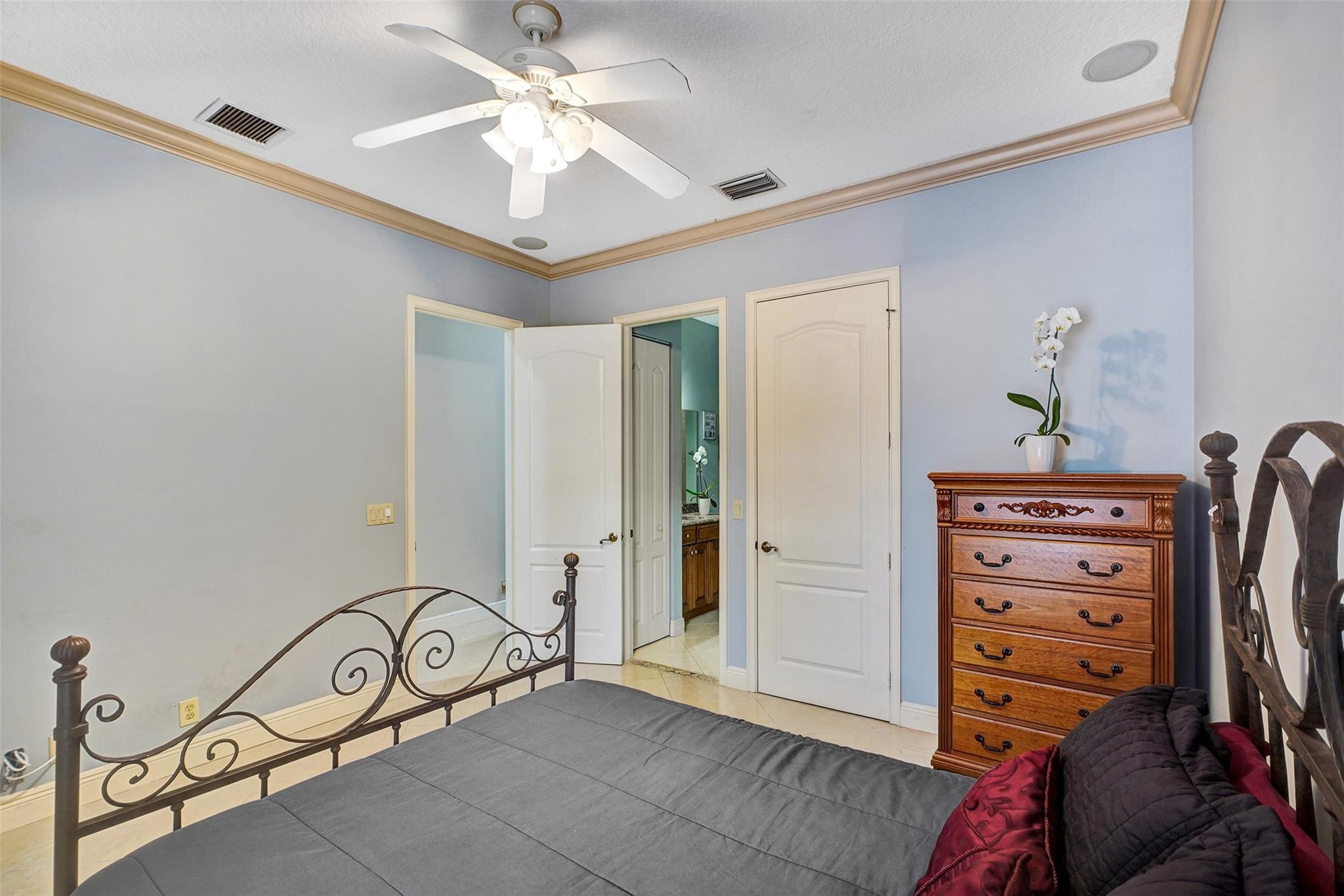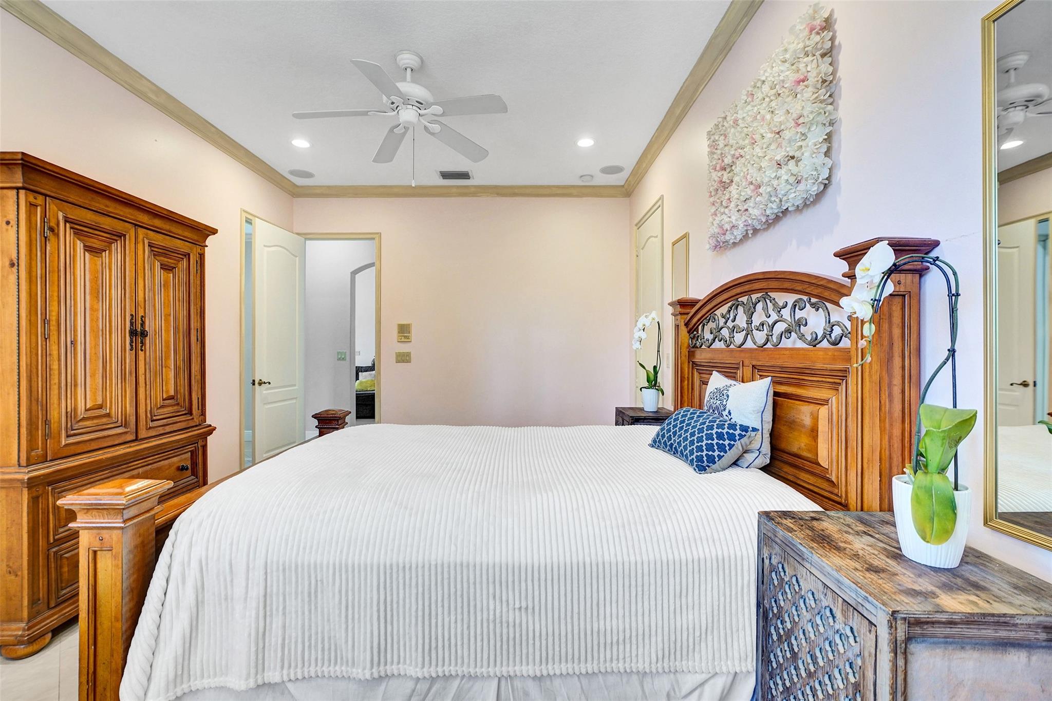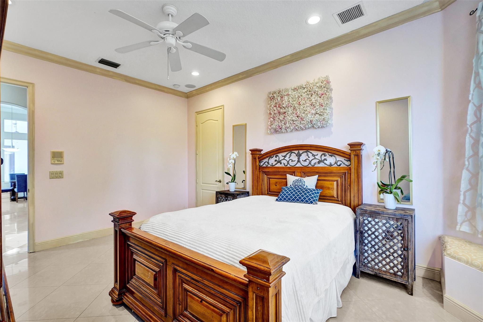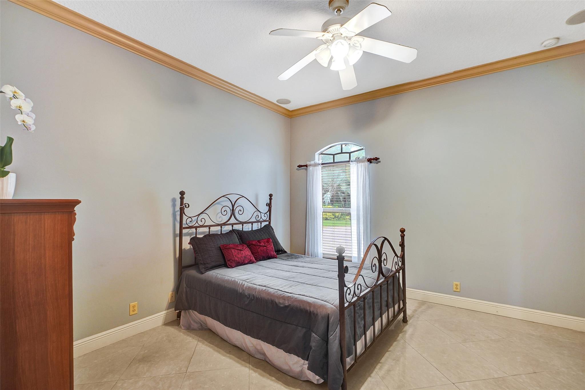 Experience unparalleled grandeur in this estate on over an acre in the prestigious Delray Lake Estates. Boasting 5 bedrooms, 4.5 baths, and an open-concept split floor plan, this home features soaring 12-foot ceilings, crown molding, and elegant tray ceilings. The master suite offers patio access, a Jacuzzi tub, walk-in shower, and bidet, while all bedrooms include custom closets, with two showcasing bay windows. The chef’s kitchen shines with a large island, new appliances, and a breakfast nook overlooking the pool and patio. Additional luxuries include a media room, home theater, library, and custom office/study. Outside, enjoy a tropical oasis with exotic fruit trees. Located near the turnpike for convenience, this estate is a rare blend of luxury and privacy. Same Day showings!