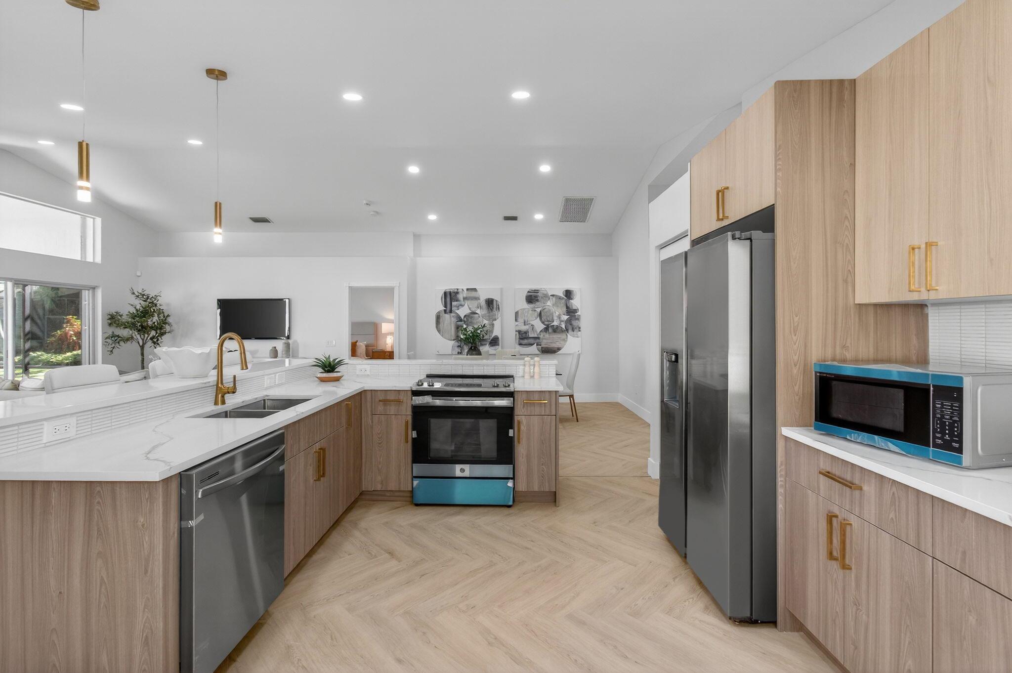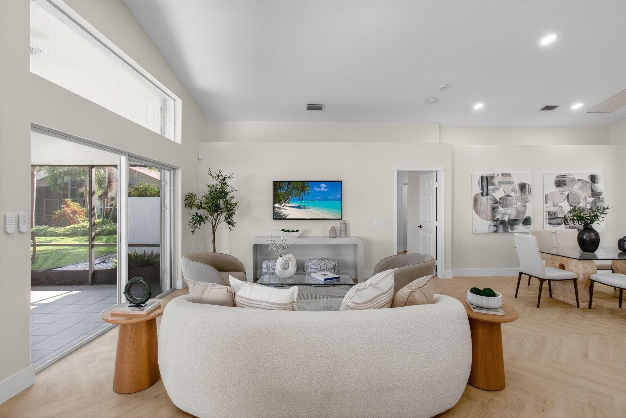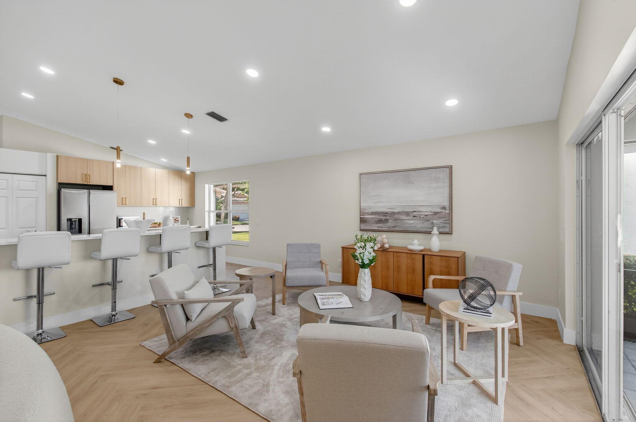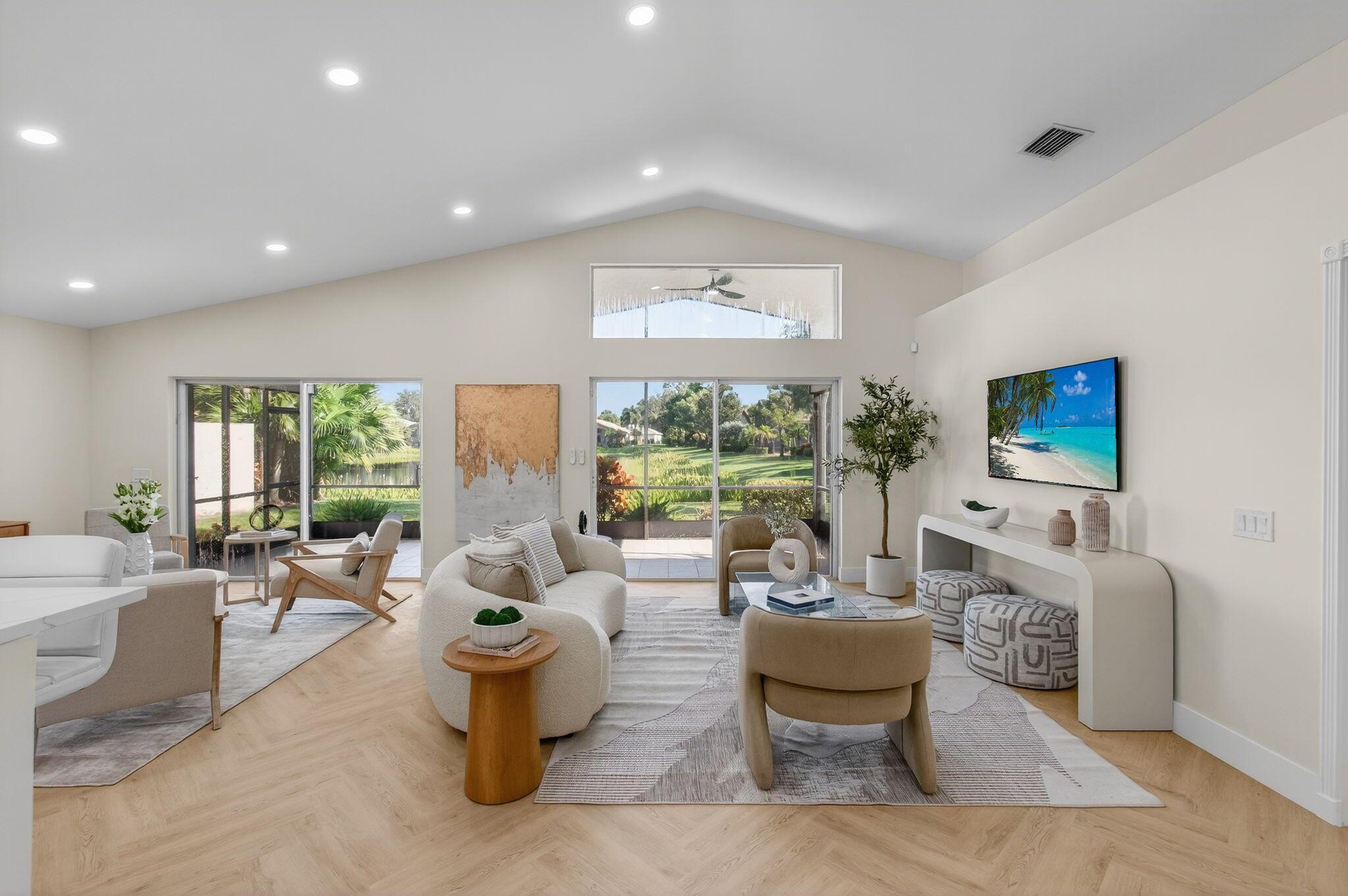 Experience the best of lakefront living in this fully REMODELED 3-bedroom,2-bath home in the sought-after Valencia Isles community.A BRAND-NEW ROOF is being installed,complementing the modern upgrades throughout. Inside,you’ll find new flooring, recessed lighting, and smooth ceilings with the popcorn removed for a fresh, contemporary feel.The spa-like primary suite features a soaking tub,walk-in shower, and spacious walk-in closets.The chef’s kitchen boasts two-tone soft-close cabinetry, quartz countertops,all-new appliances, and convenient under-bar seating.Enjoy breathtaking water views from the huge tiled covered patio,perfect for entertaining.Additional highlights include a 2023 AC system and accordion shutters for peace of mind. Valencia Isles offers beautifully landscaped and resort