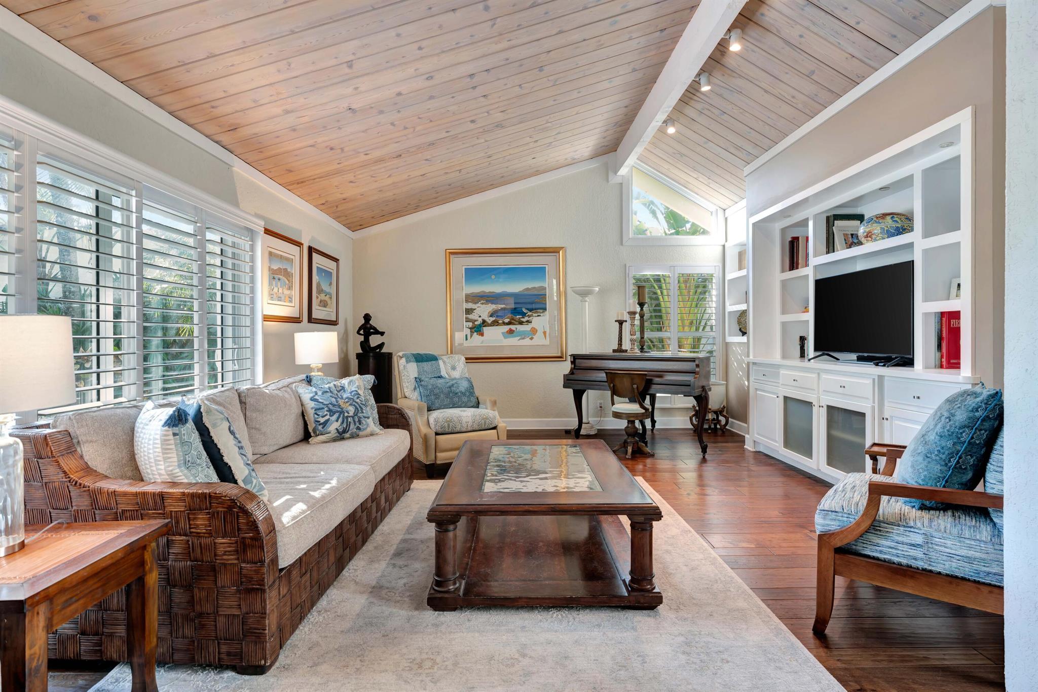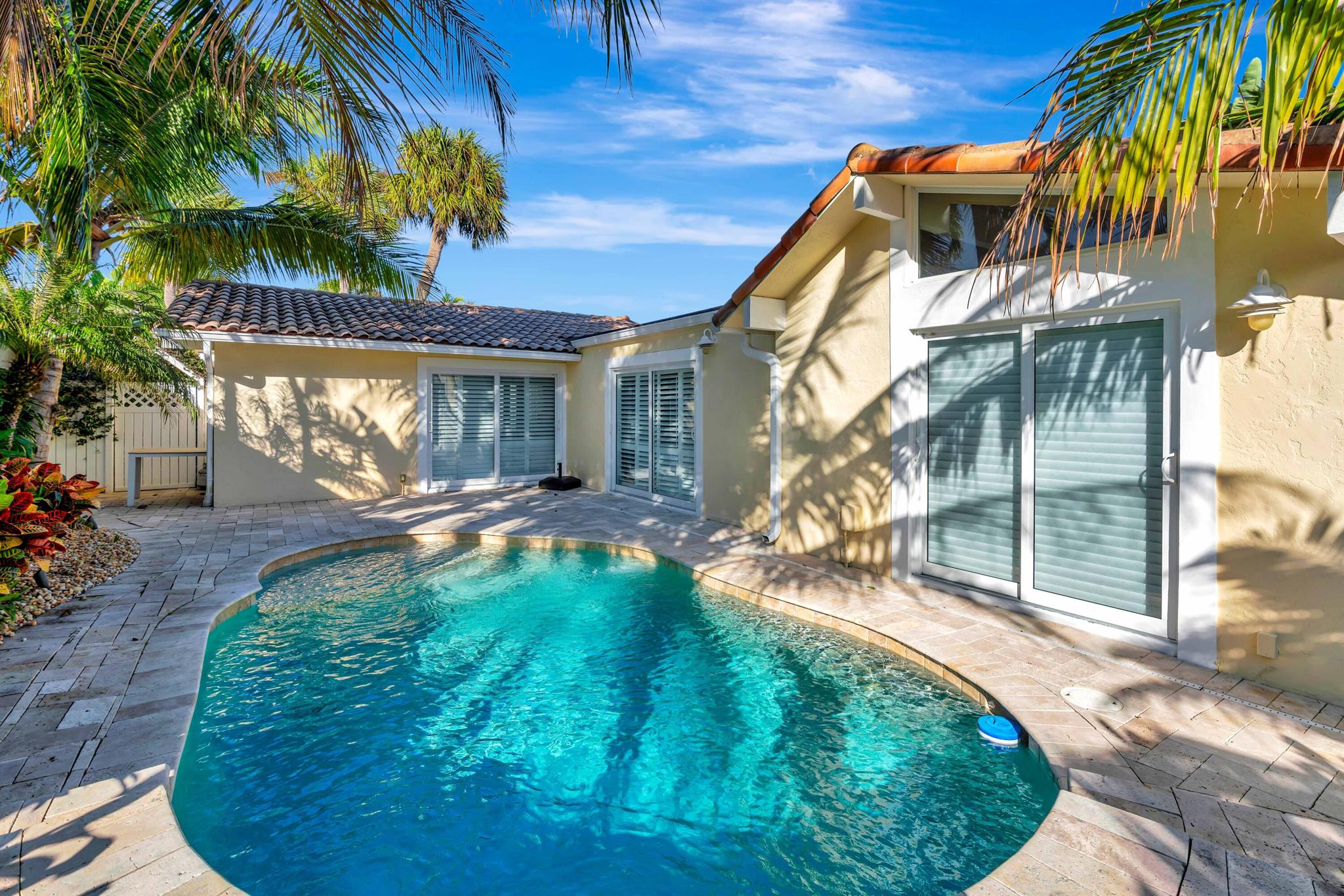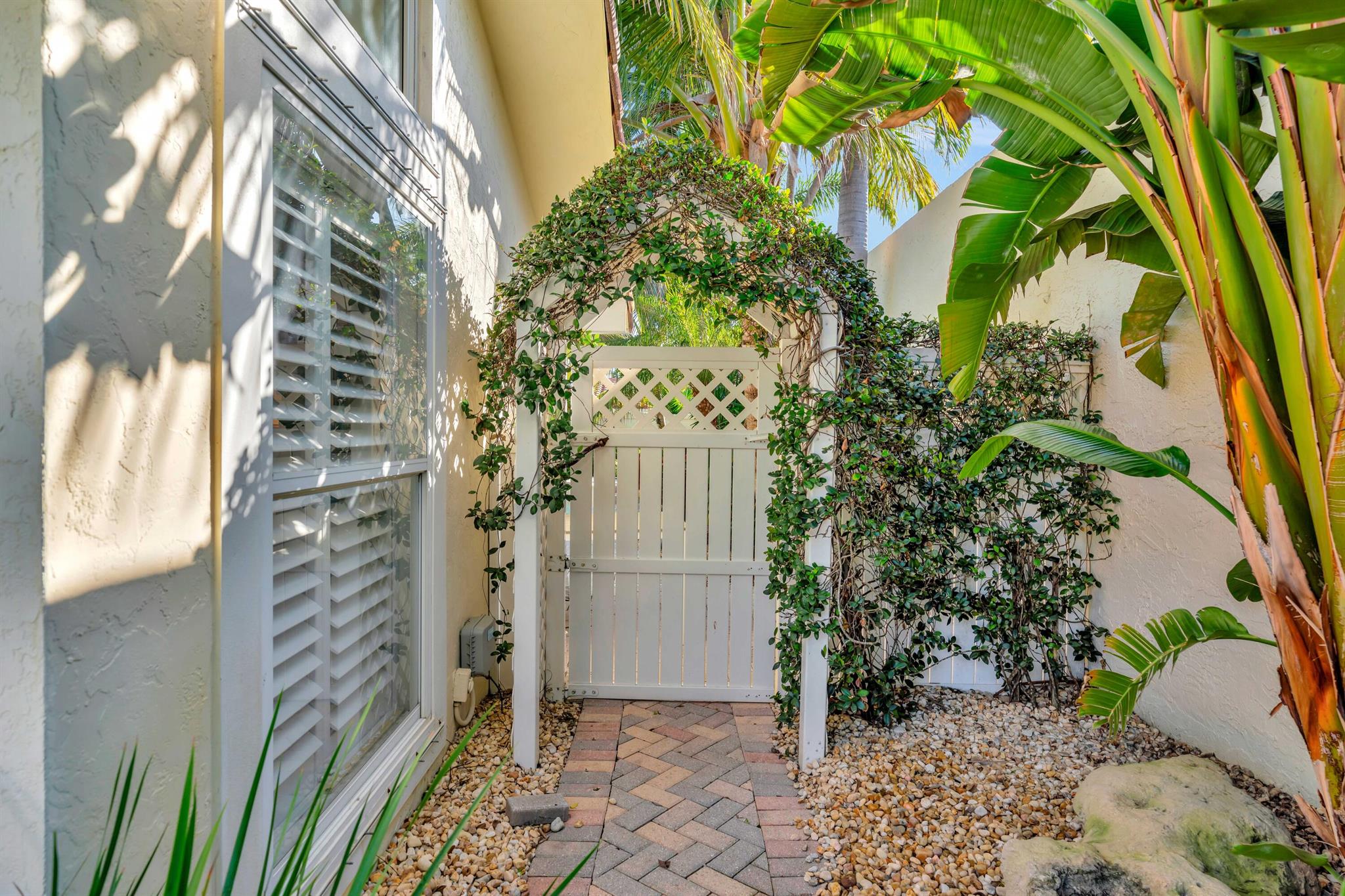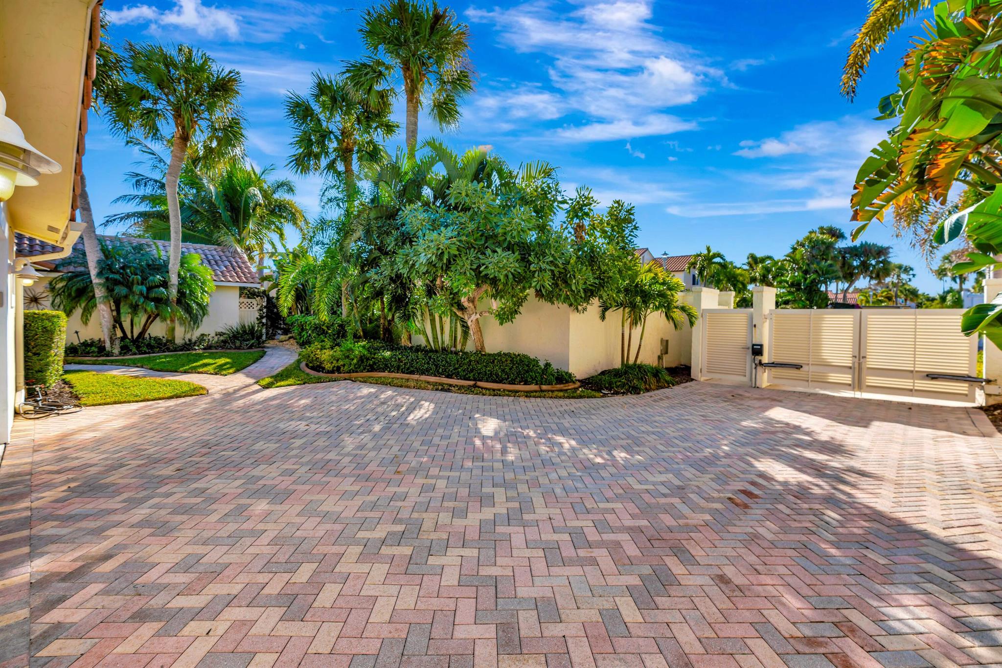 Beautiful, gated community across from the Beach. Private oasis with your own electric gate to your private compound. Beautiful wood floors, and updated Baths and Kitchen. Impact windows, sliders and doors with the exception of 3 windows. 2 Main bedrooms with attached baths. A powder room and spacious office or den. Walk to restaurants, River Walk, the Beach and shopping. Let this beautiful Jupiter home become your dream Beach retreat.