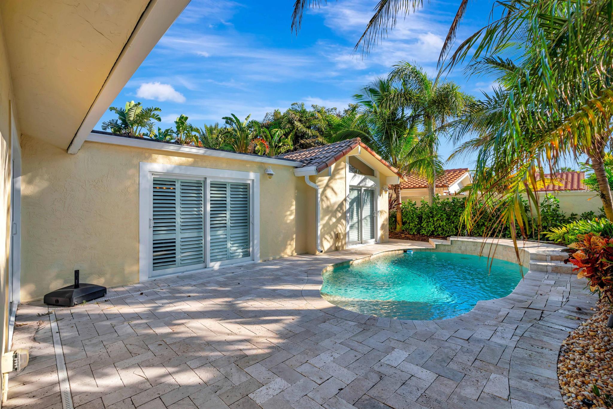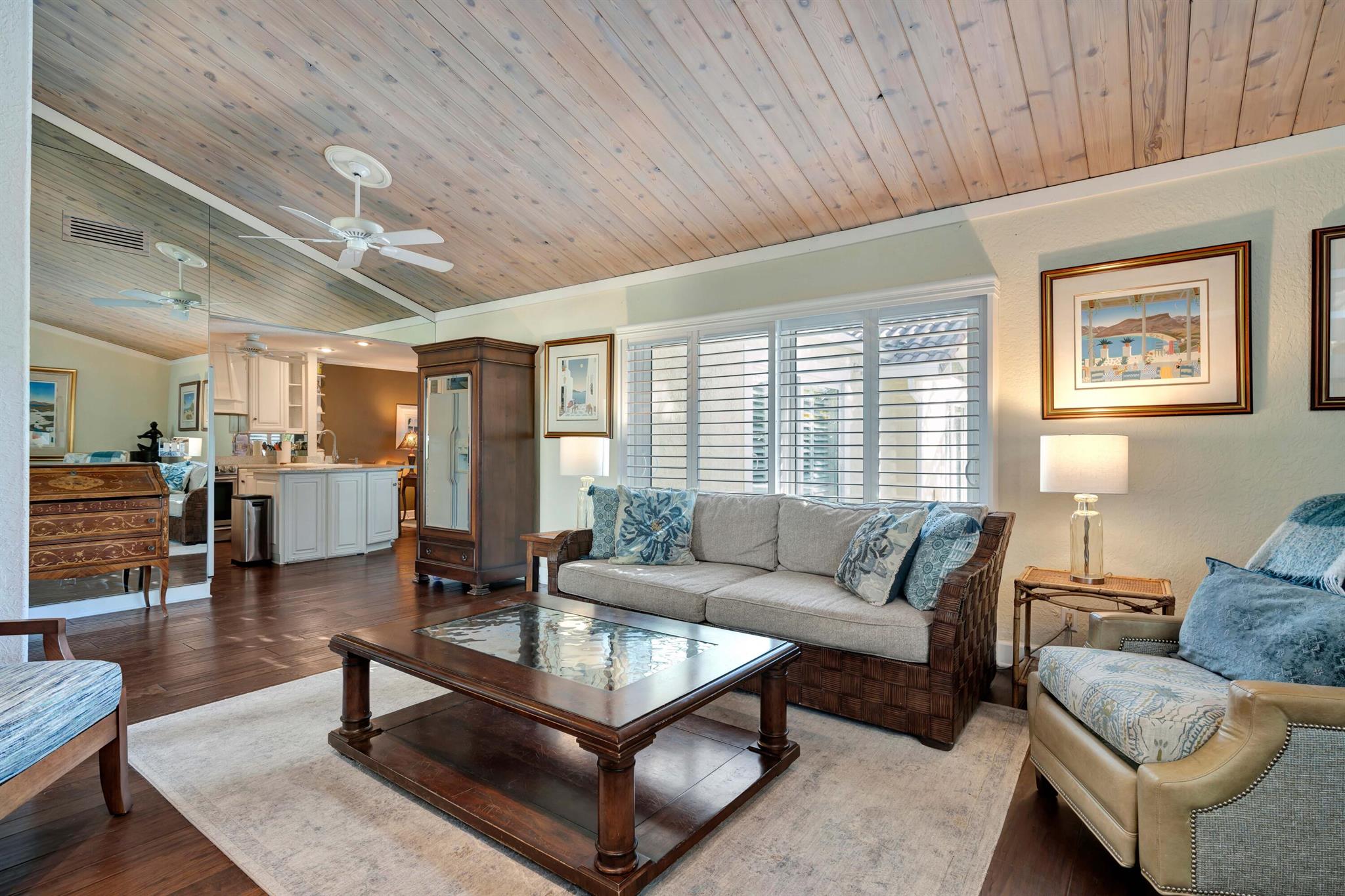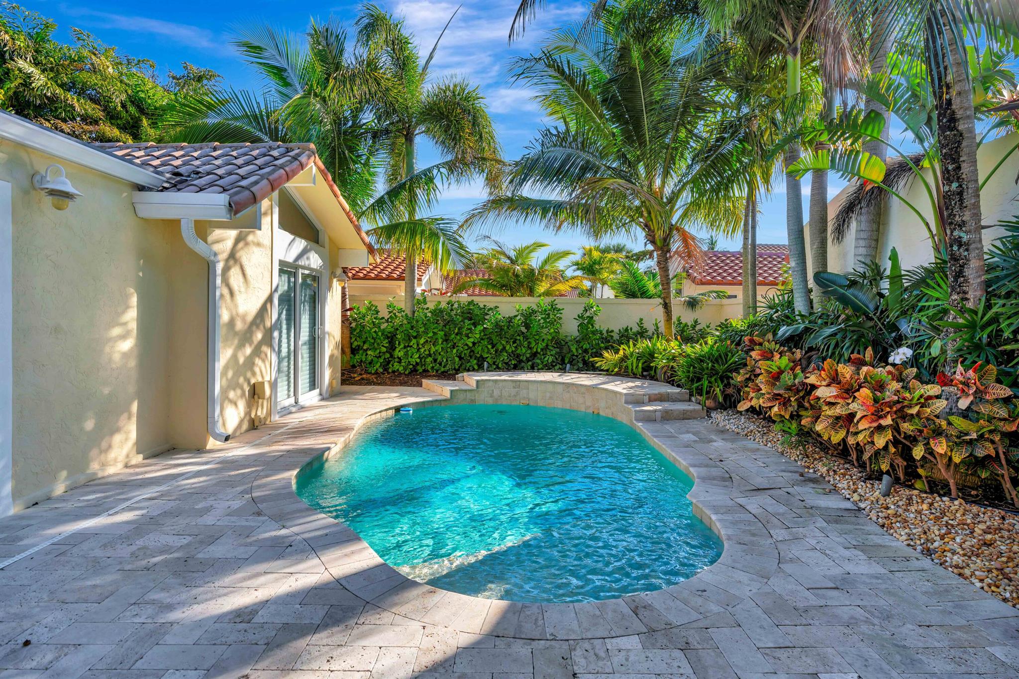 Beautiful, gated community across from the Beach. Private oasis with your own electric gate to your private compound. Beautiful wood floors, and updated Baths and Kitchen. Impact windows, sliders and doors with the exception of 3 windows. 2 Main bedrooms with attached baths. A powder room and spacious office or den. Walk to restaurants, River Walk, the Beach and shopping. Let this beautiful Jupiter home become your dream Beach retreat.