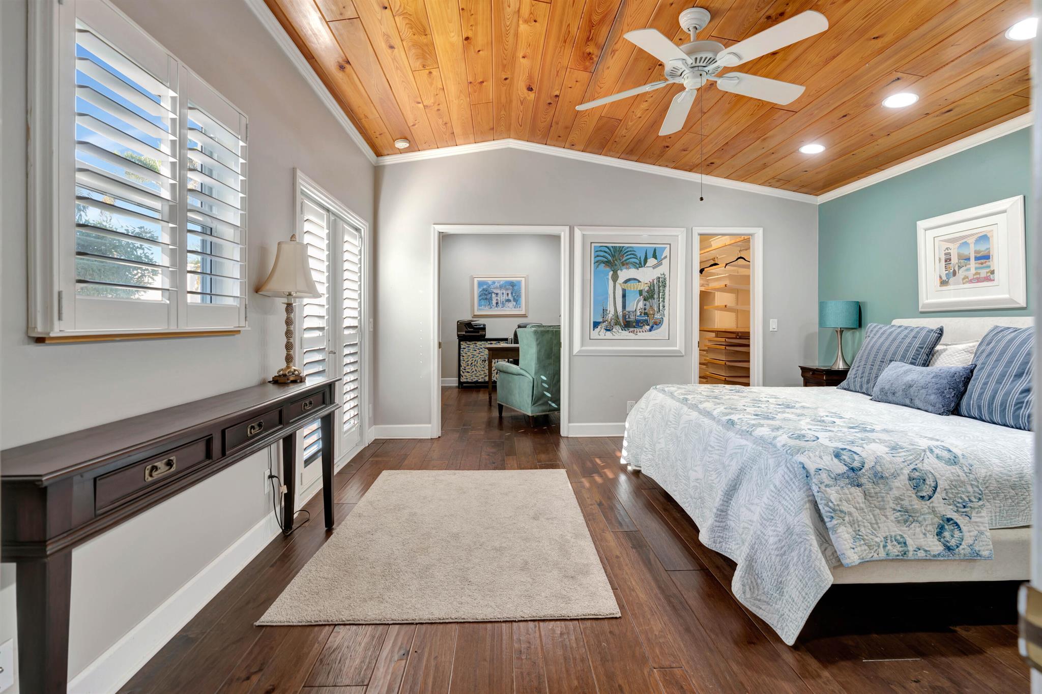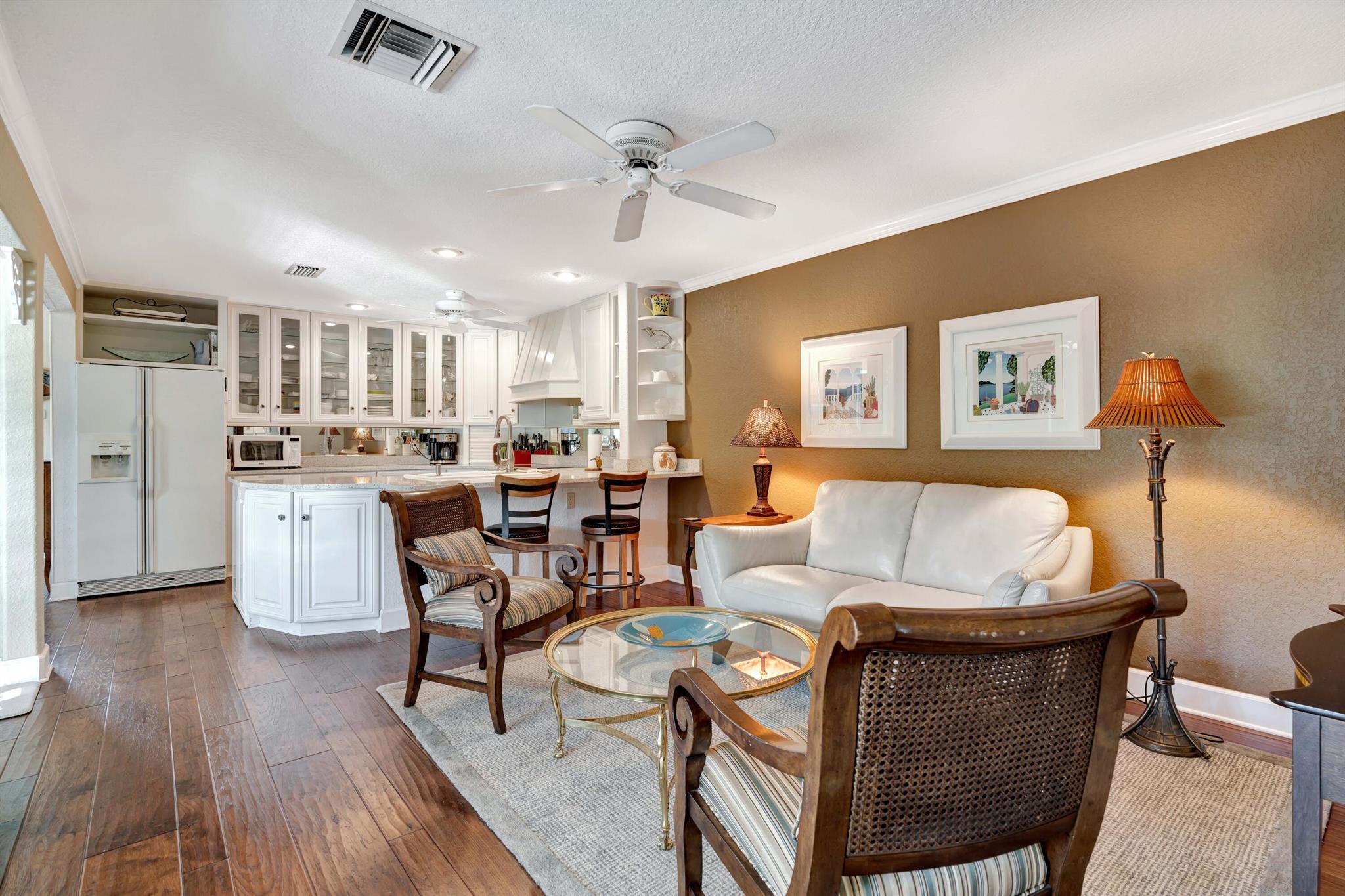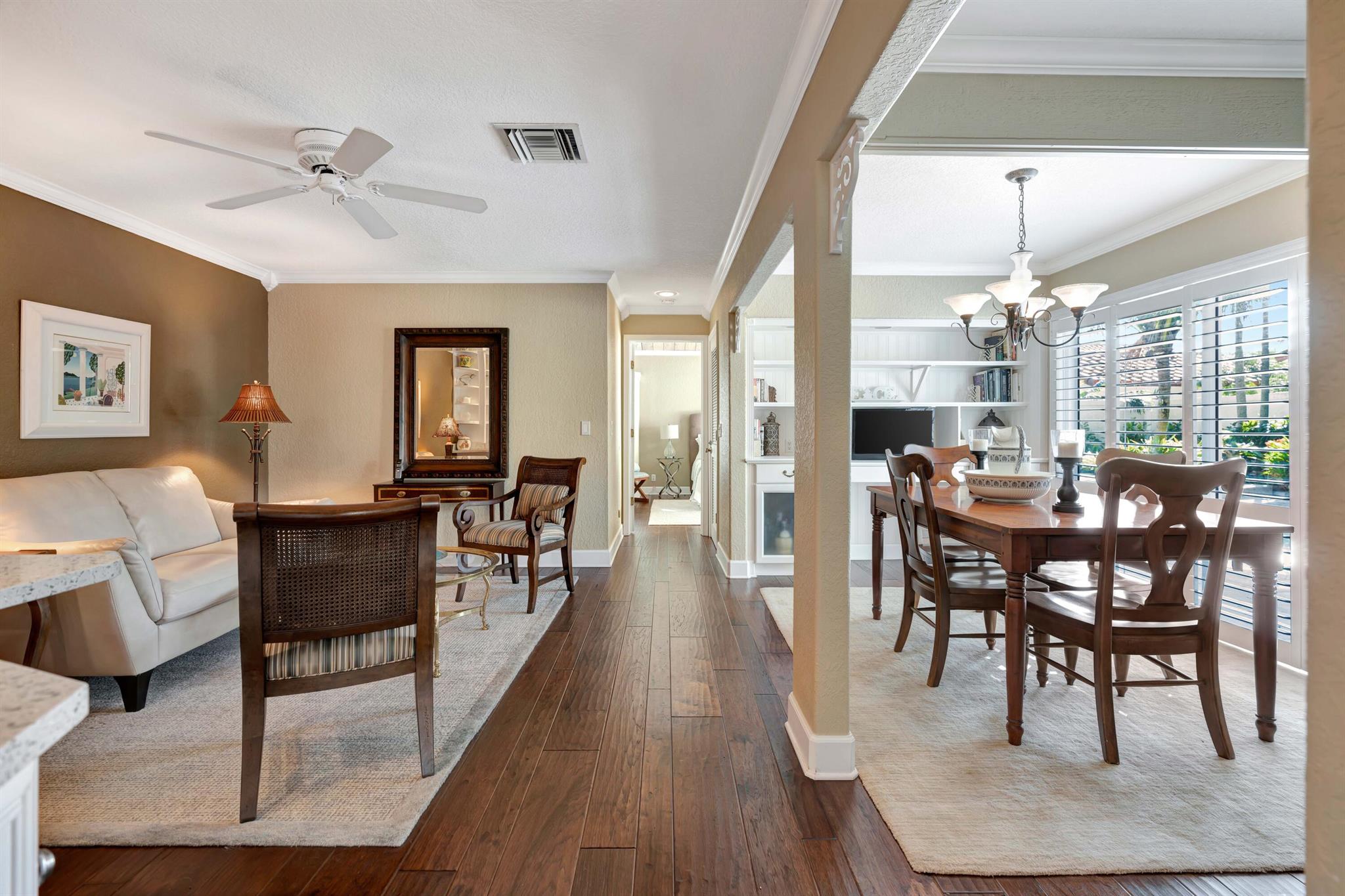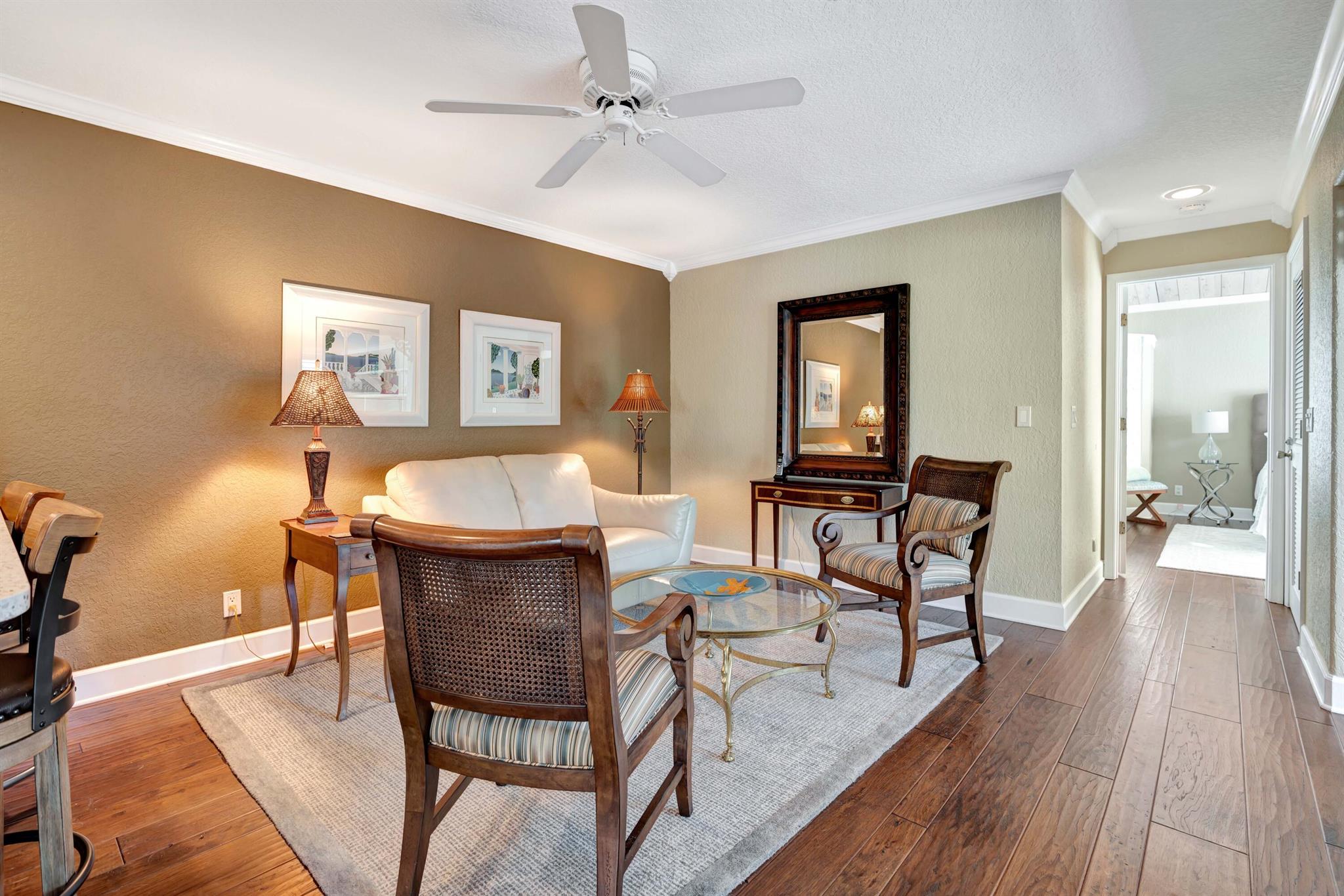 Beautiful, gated community across from the Beach. Private oasis with your own electric gate to your private compound. Beautiful wood floors, and updated Baths and Kitchen. Impact windows, sliders and doors with the exception of 3 windows. 2 Main bedrooms with attached baths. A powder room and spacious office or den. Walk to restaurants, River Walk, the Beach and shopping. Let this beautiful Jupiter home become your dream Beach retreat.