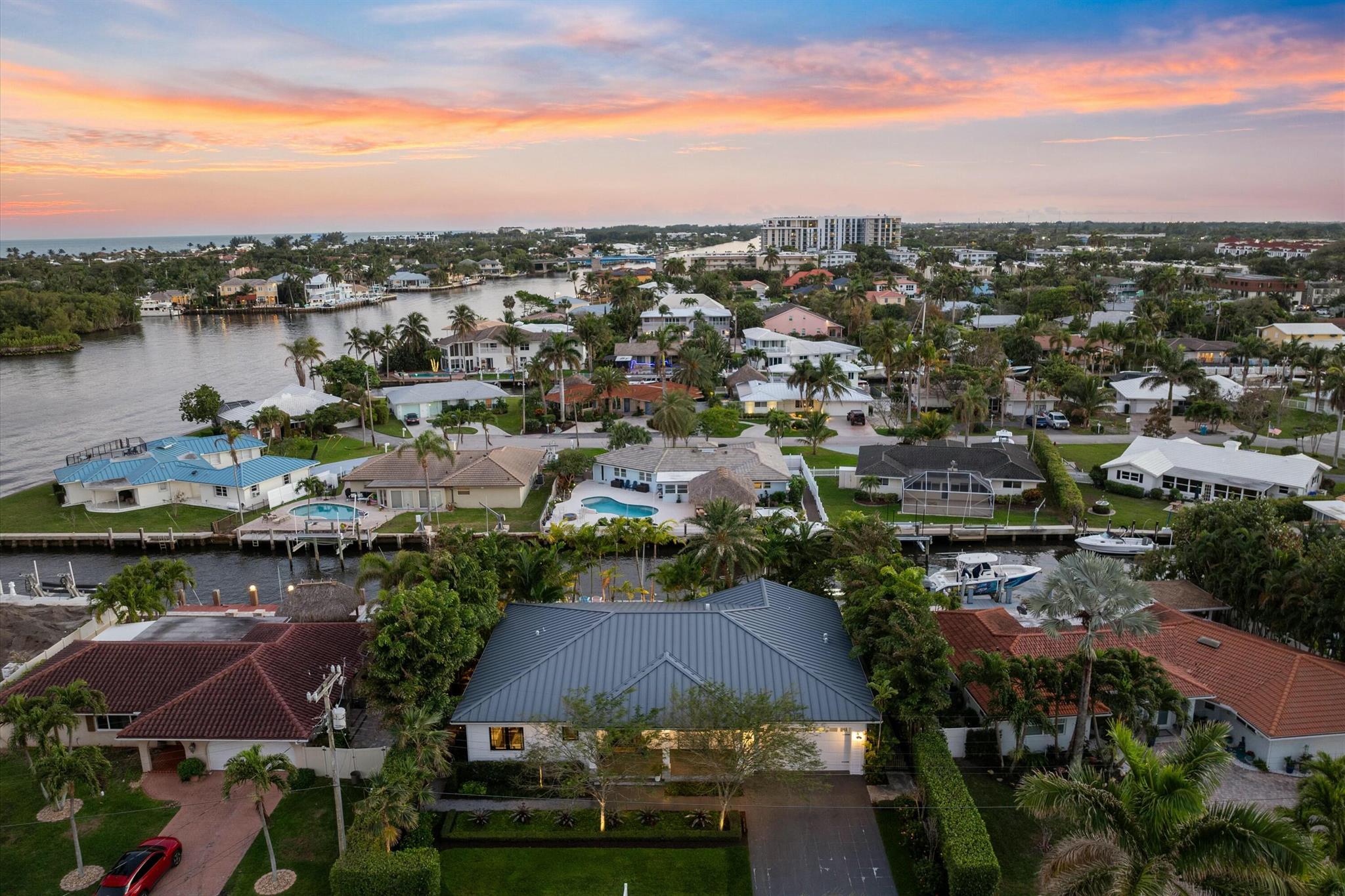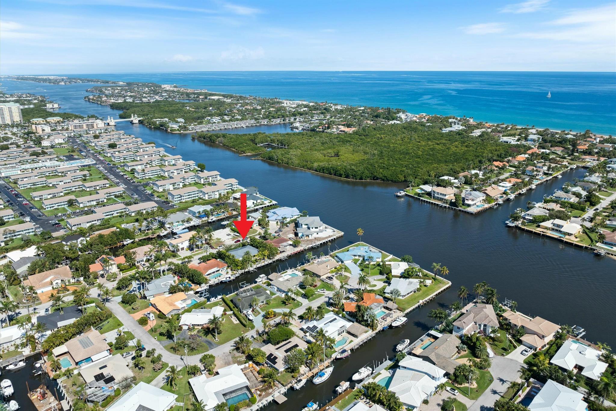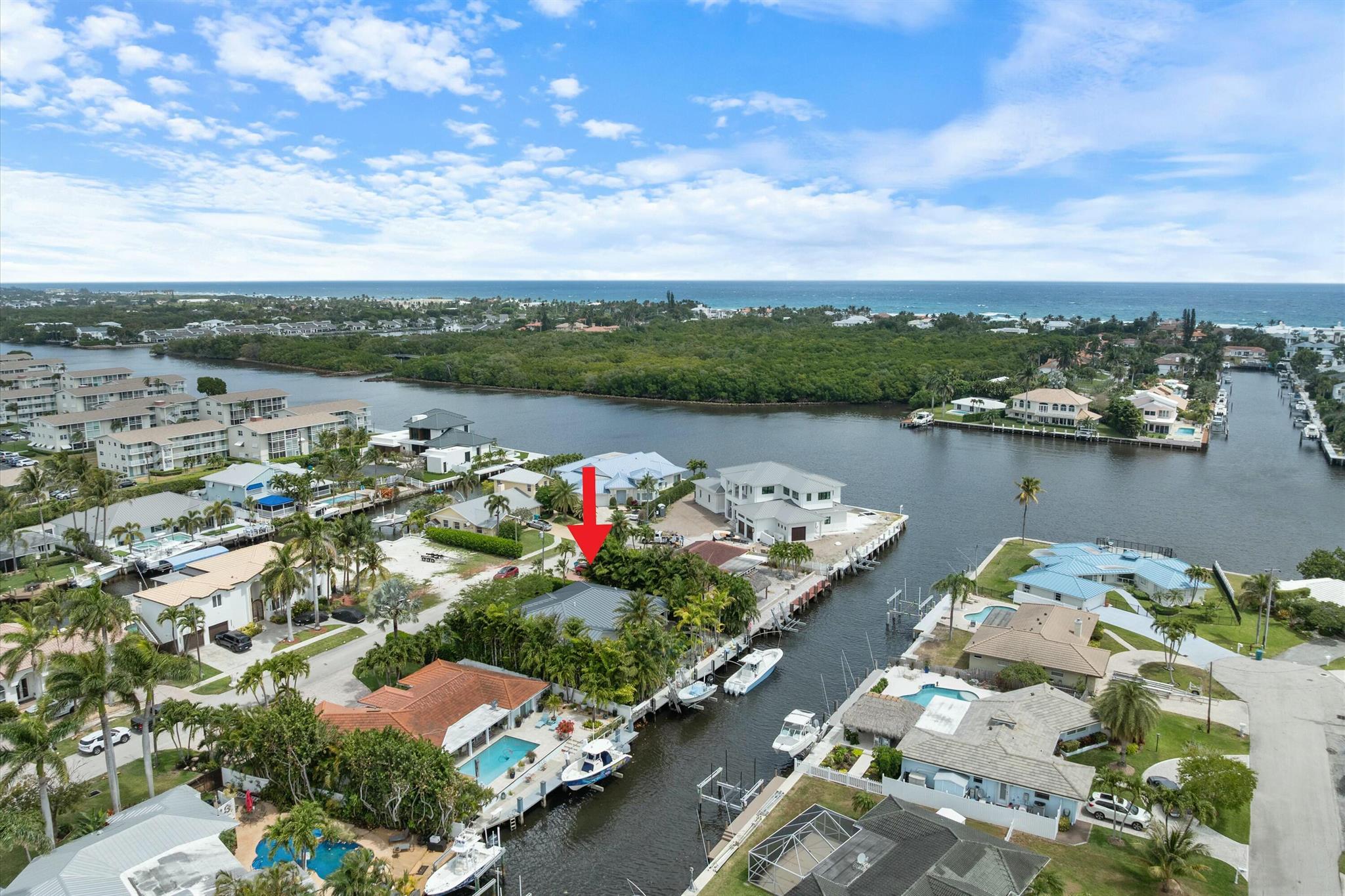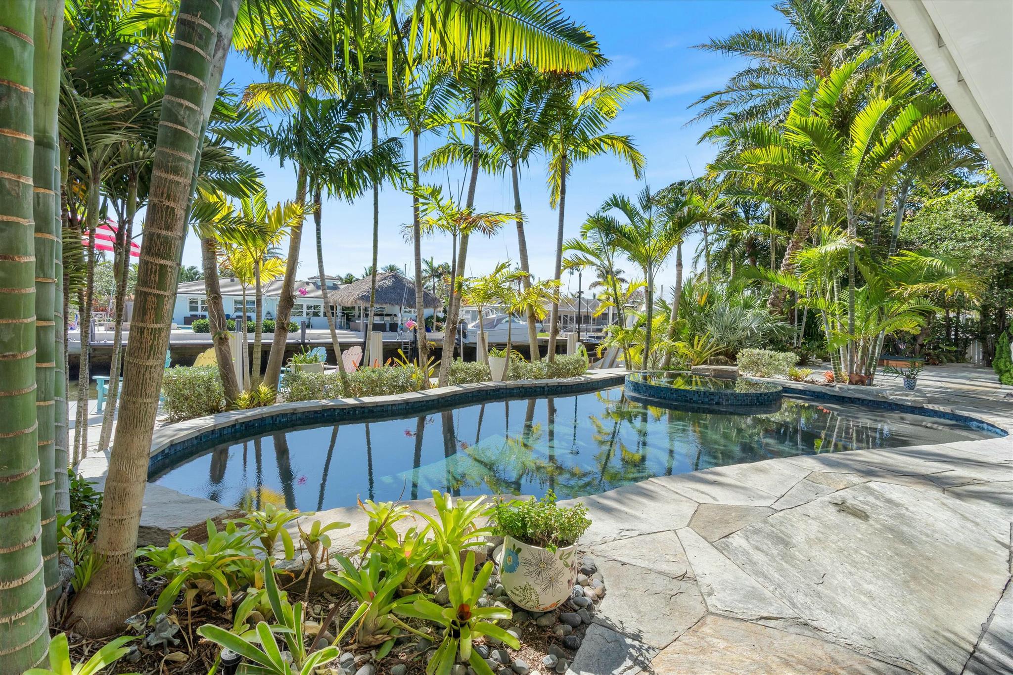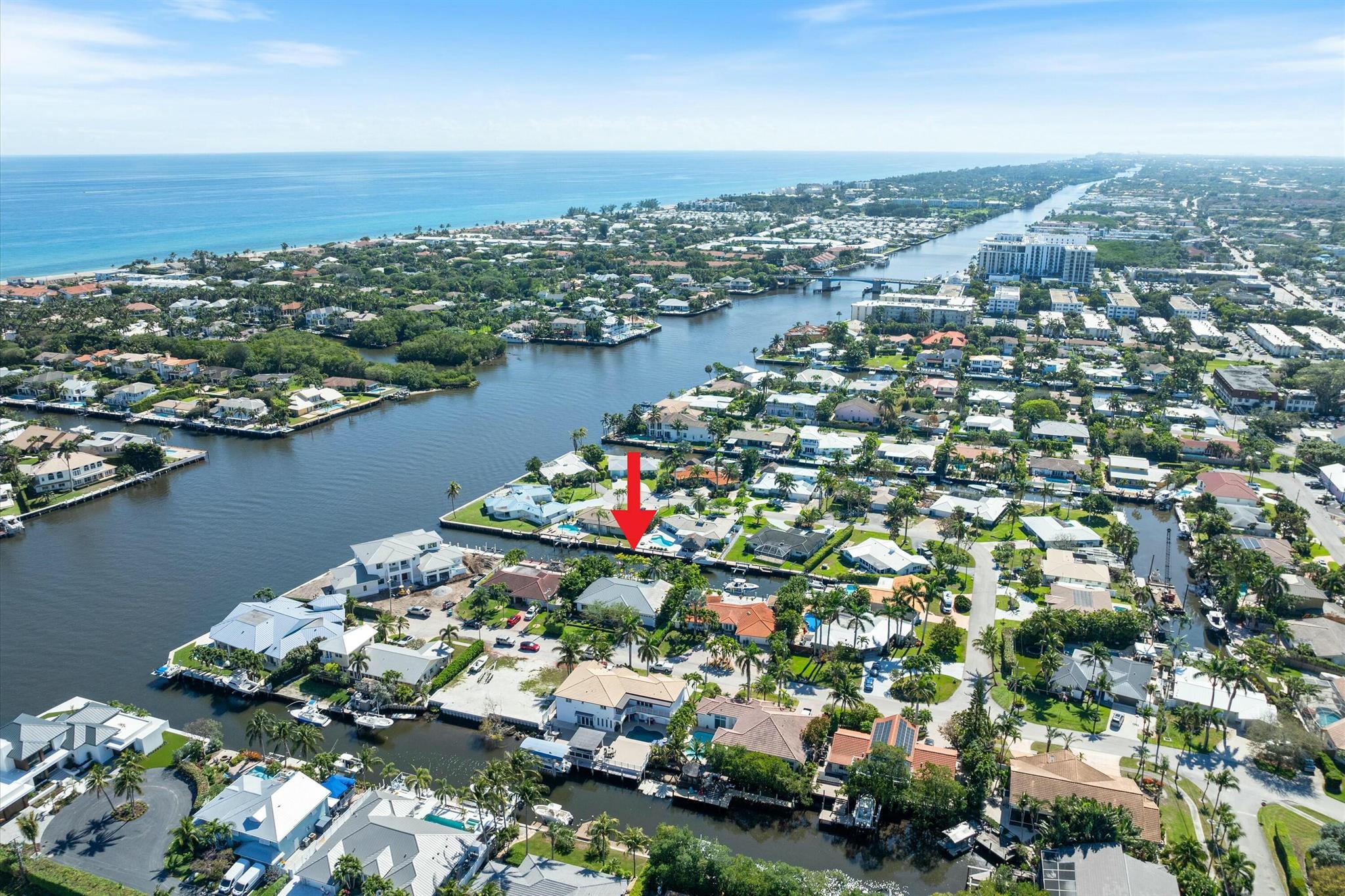 This exceptional waterfront residence has been completely rebuilt from the ground up, with only one original garage wall retained to meet city remodel regulations. Elevated to enhance views and offer added storm protection, the home, back patio, and dock sit on a raised lot that maximizes both lifestyle and longevity. Boating enthusiasts will appreciate the 90 feet of prime waterfrontage, complete with a private dock, 20,000-pound boat lift, wet slip for vessels up to 50 feet, water and electric hookups, and a built-in filet station. With direct ocean access and no fixed bridges, the inlet is just two miles away–making this a rare opportunity to own a true boater’s paradise.The home is available fully turnkey, complete with fine furnishings and all the daily essentials. It is truly