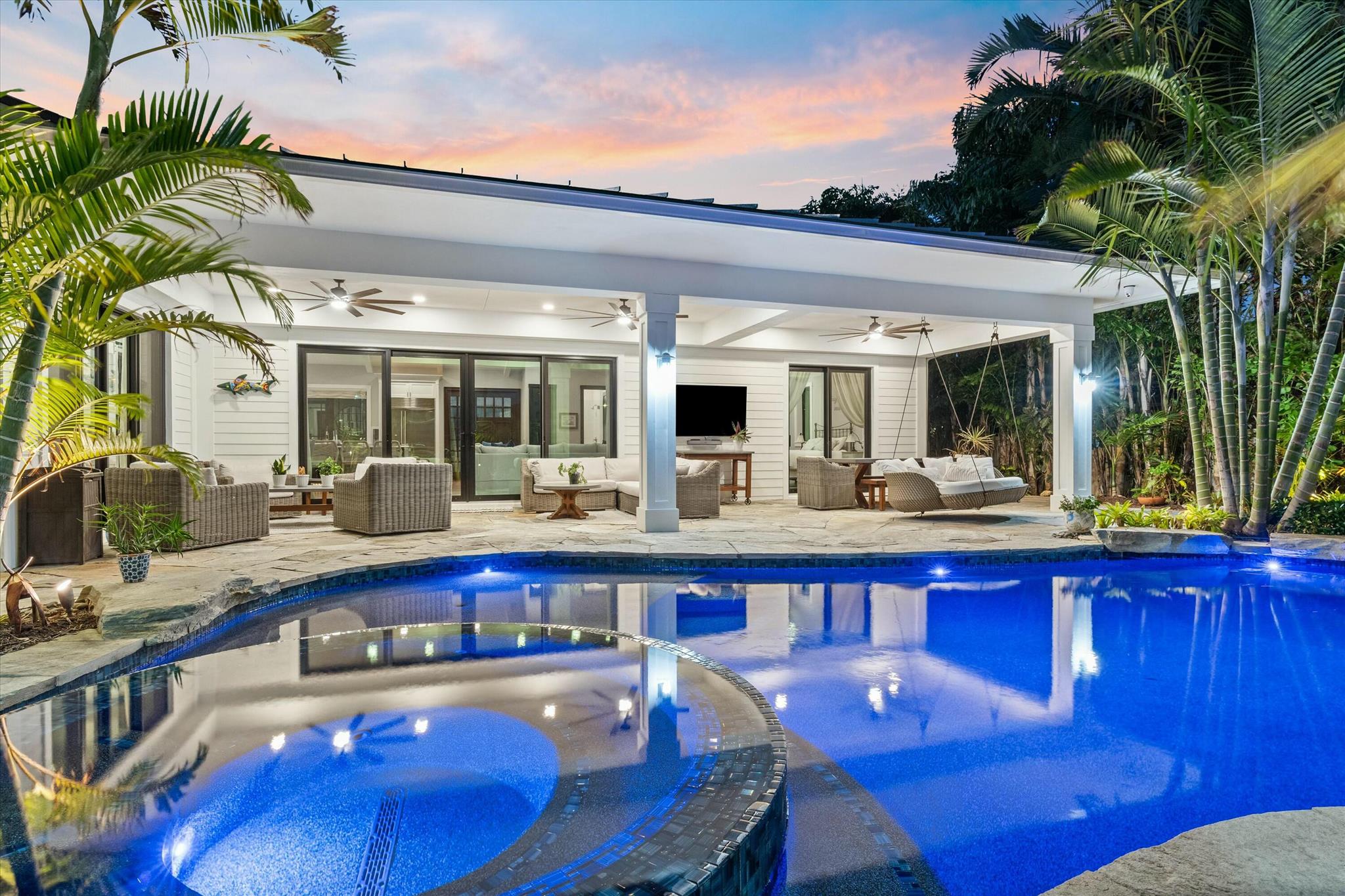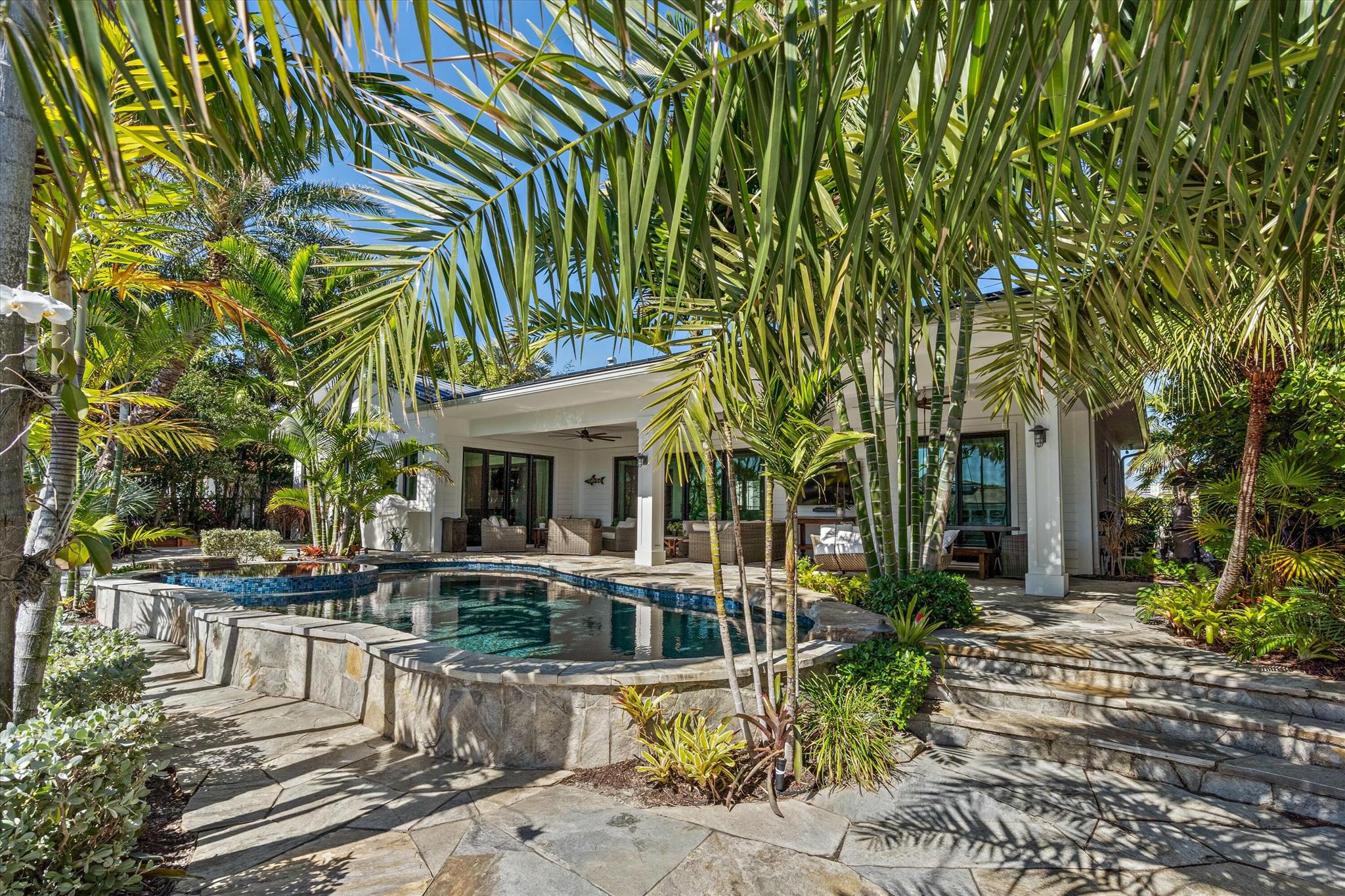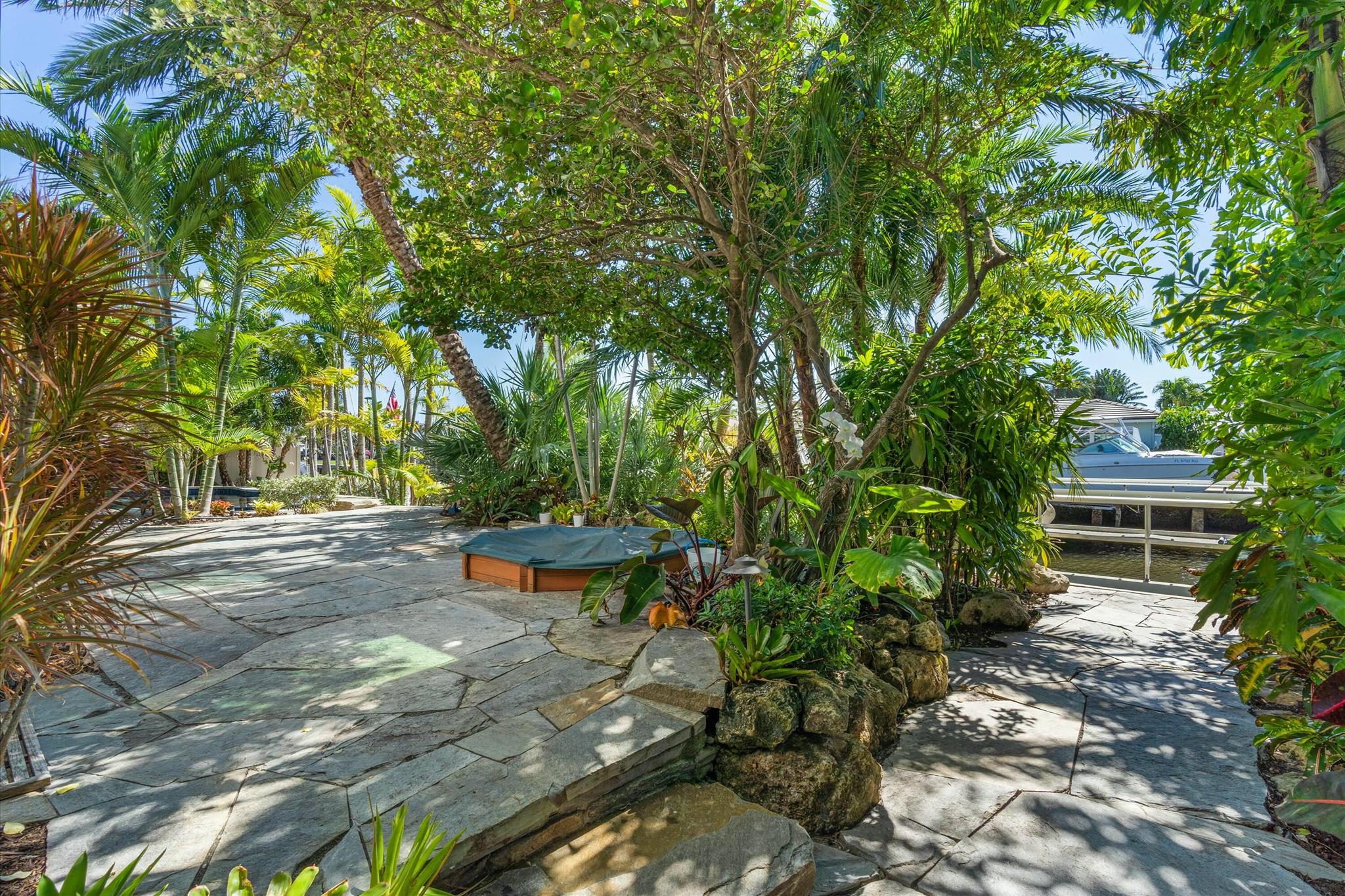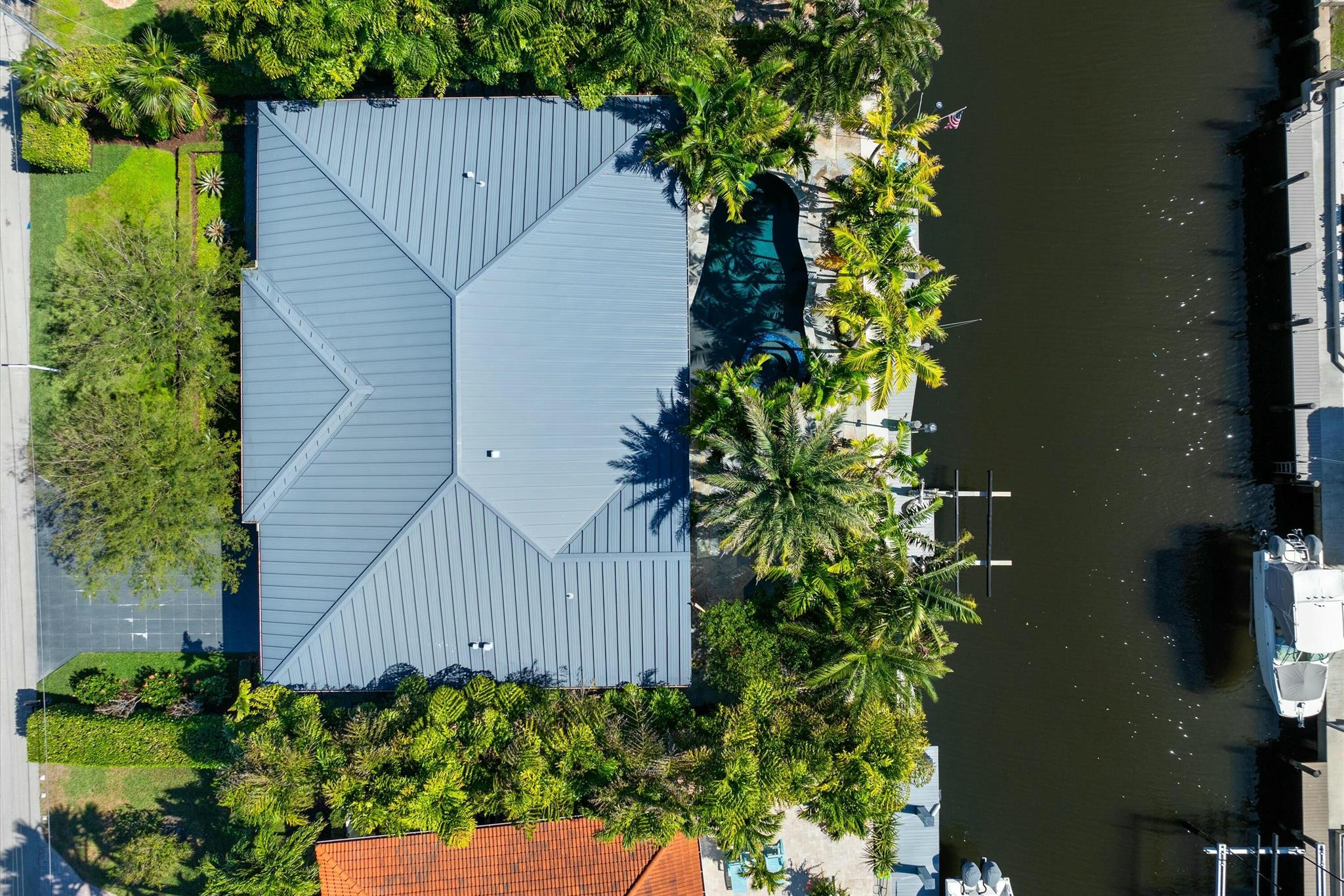 This exceptional waterfront residence has been completely rebuilt from the ground up, with only one original garage wall retained to meet city remodel regulations. Elevated to enhance views and offer added storm protection, the home, back patio, and dock sit on a raised lot that maximizes both lifestyle and longevity. Boating enthusiasts will appreciate the 90 feet of prime waterfrontage, complete with a private dock, 20,000-pound boat lift, wet slip for vessels up to 50 feet, water and electric hookups, and a built-in filet station. With direct ocean access and no fixed bridges, the inlet is just two miles away–making this a rare opportunity to own a true boater’s paradise.The home is available fully turnkey, complete with fine furnishings and all the daily essentials. It is truly