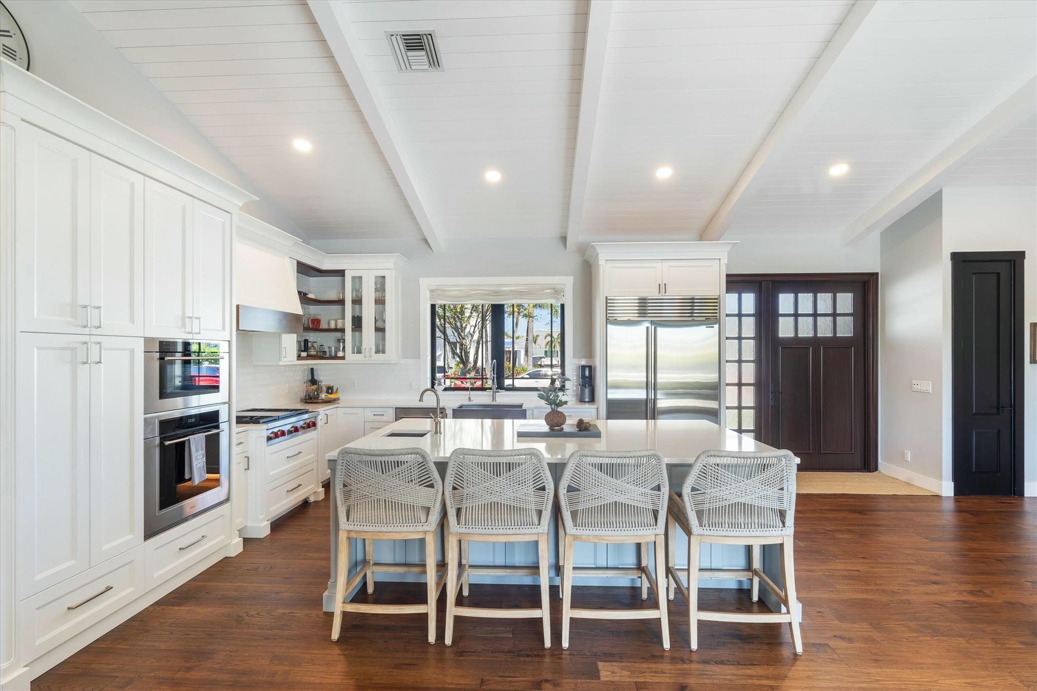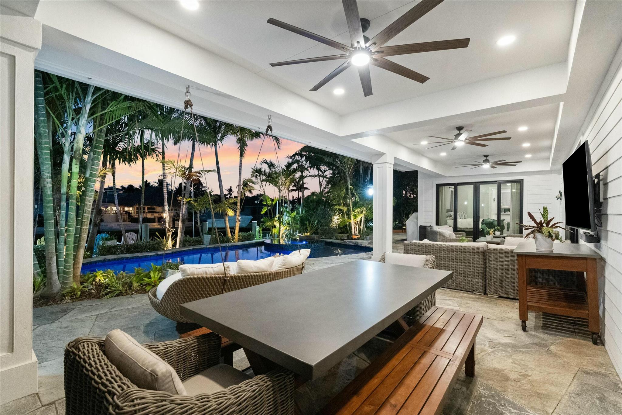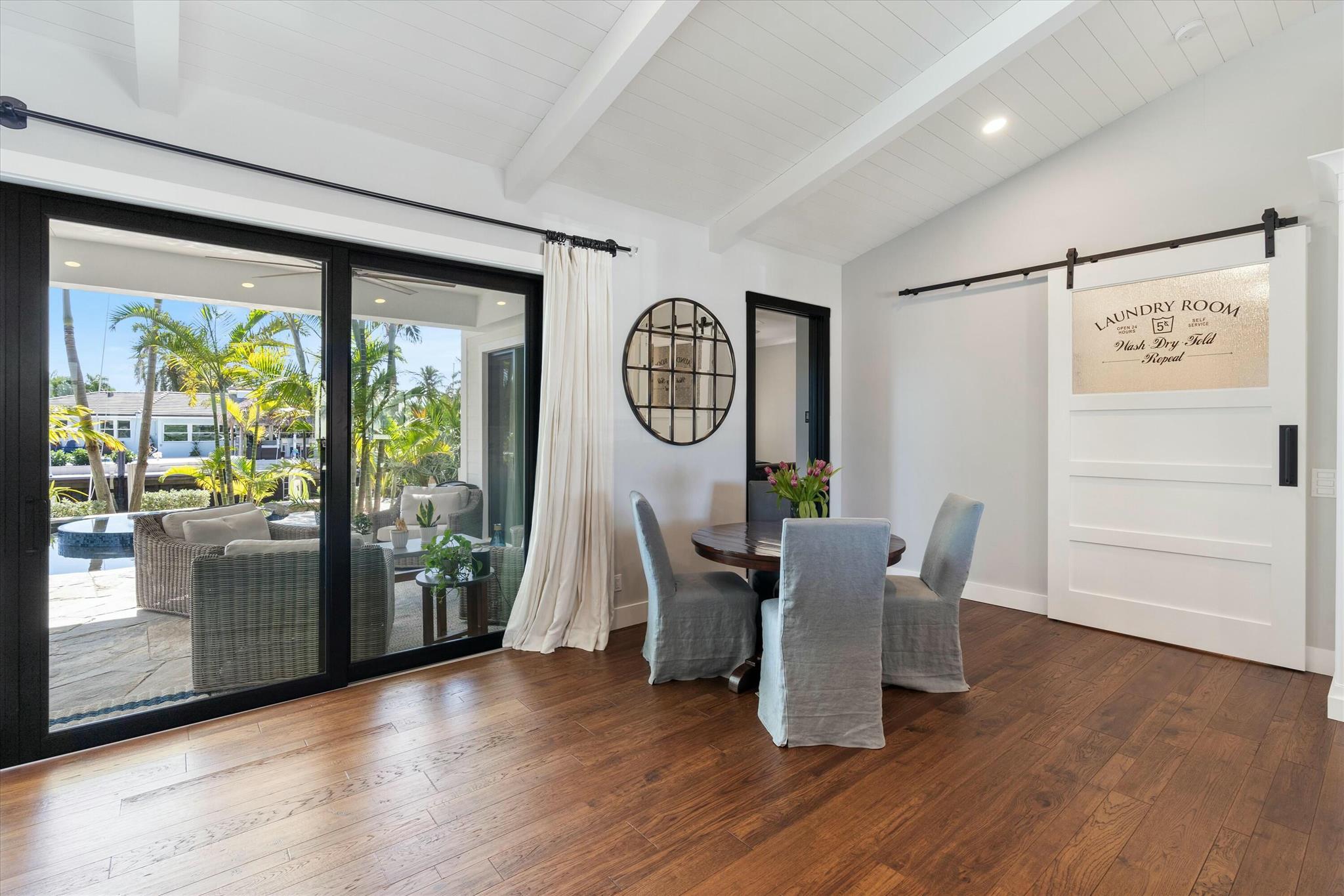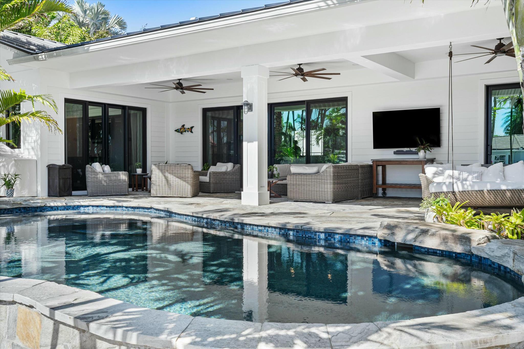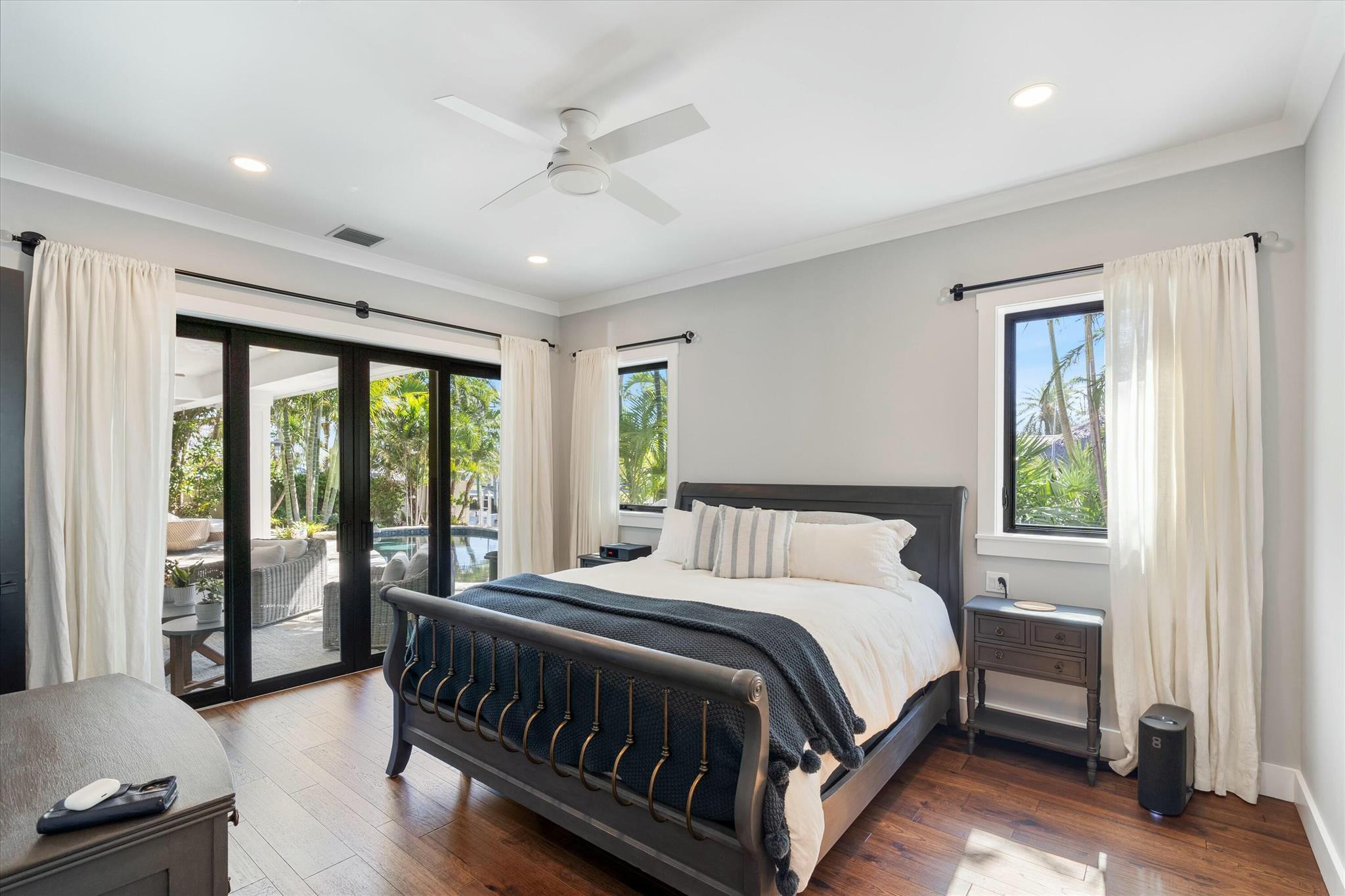 This exceptional waterfront residence has been completely rebuilt from the ground up, with only one original garage wall retained to meet city remodel regulations. Elevated to enhance views and offer added storm protection, the home, back patio, and dock sit on a raised lot that maximizes both lifestyle and longevity. Boating enthusiasts will appreciate the 90 feet of prime waterfrontage, complete with a private dock, 20,000-pound boat lift, wet slip for vessels up to 50 feet, water and electric hookups, and a built-in filet station. With direct ocean access and no fixed bridges, the inlet is just two miles away–making this a rare opportunity to own a true boater’s paradise.The home is available fully turnkey, complete with fine furnishings and all the daily essentials. It is truly
