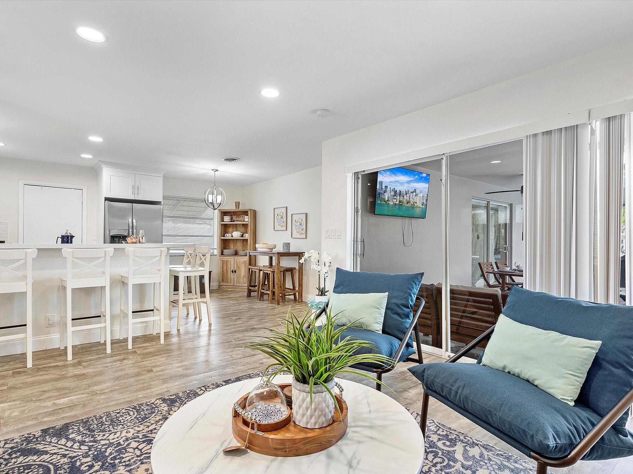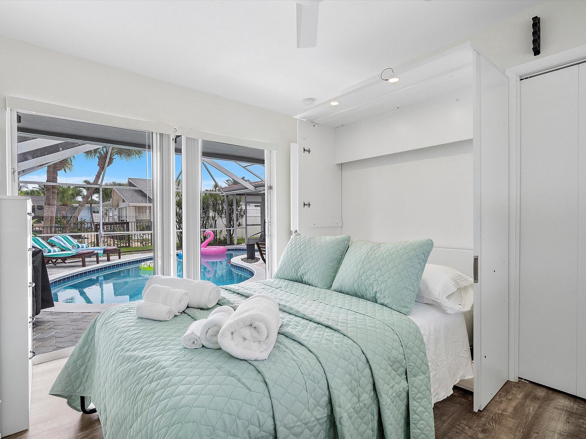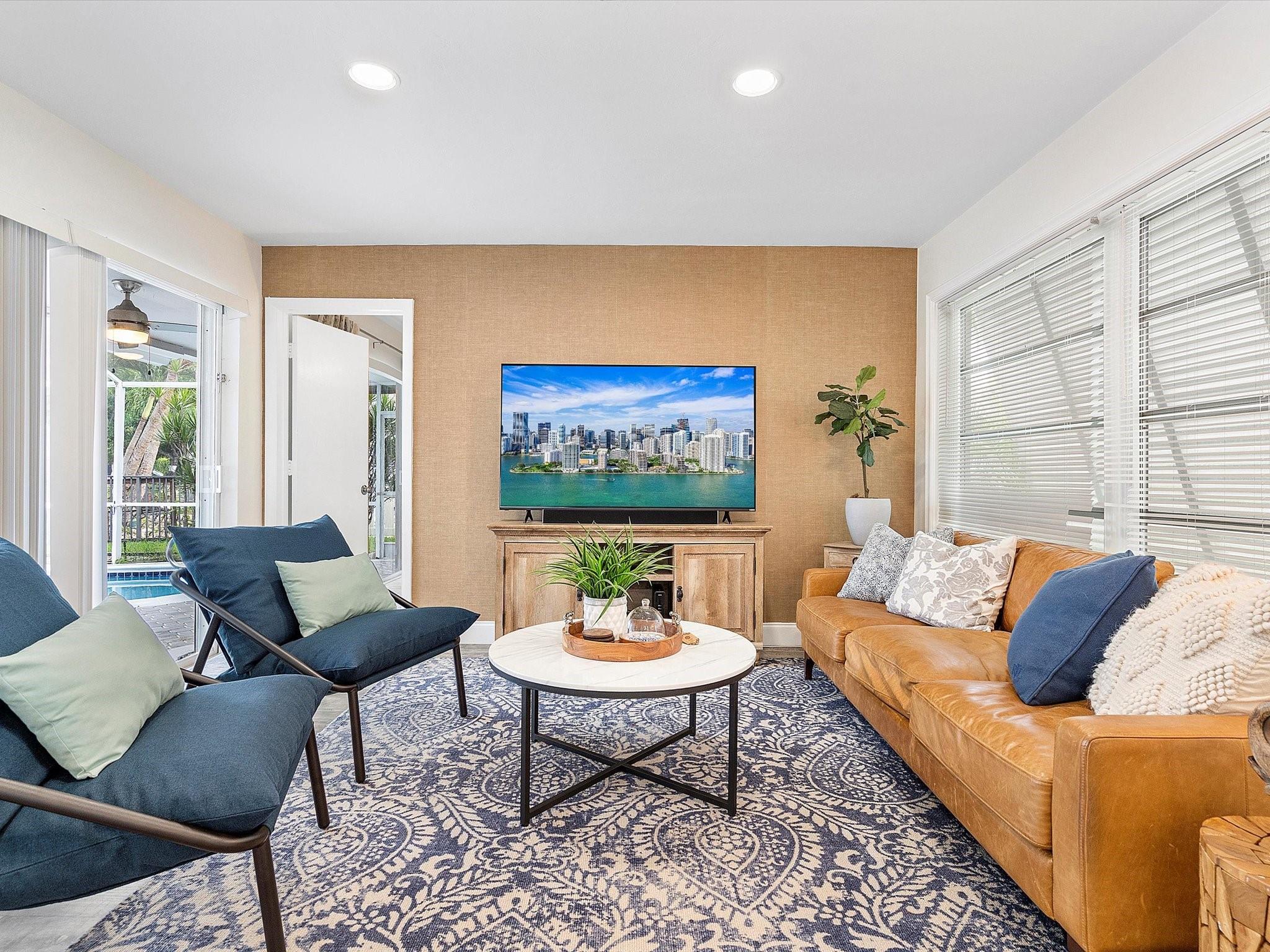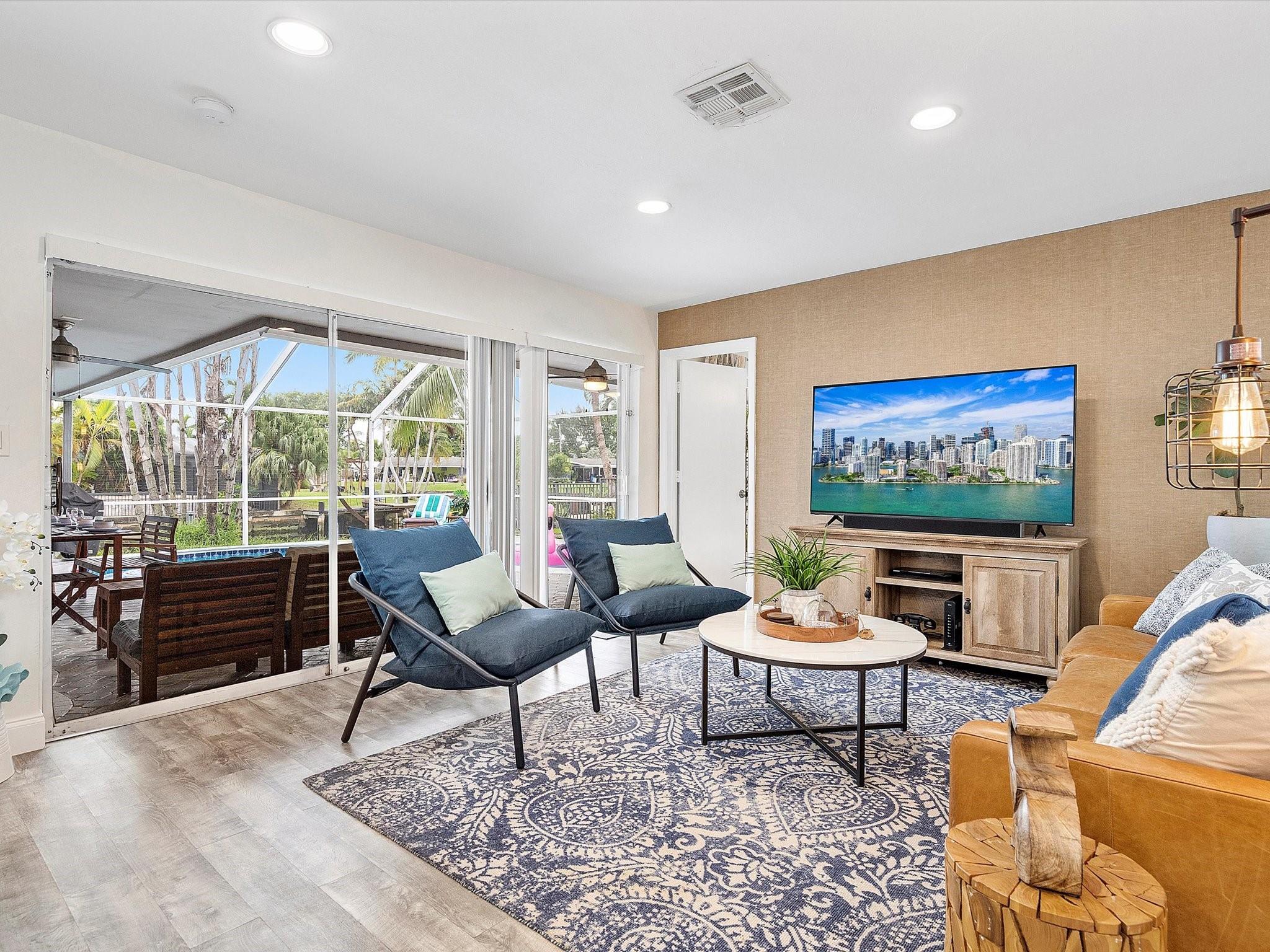 Waterfront home with screened in porch and heated pool for enjoying the outdoors bug free. The screen also makes sure to always having a clean pool. 3-bed, 2-bath home boasts ocean access and a private dock. 67 ft of deep water with fixed bridges but also has ocean access for fishing and a beautiful ride to the inlet. Split floorplan make it attractive for families or guests getting their own space. Plenty of storage with 3 sheds that stay. Furniture open to negotiation as well. Quick access to I95 if you need to commute or get anywhere fast! Buildfax in attachments.