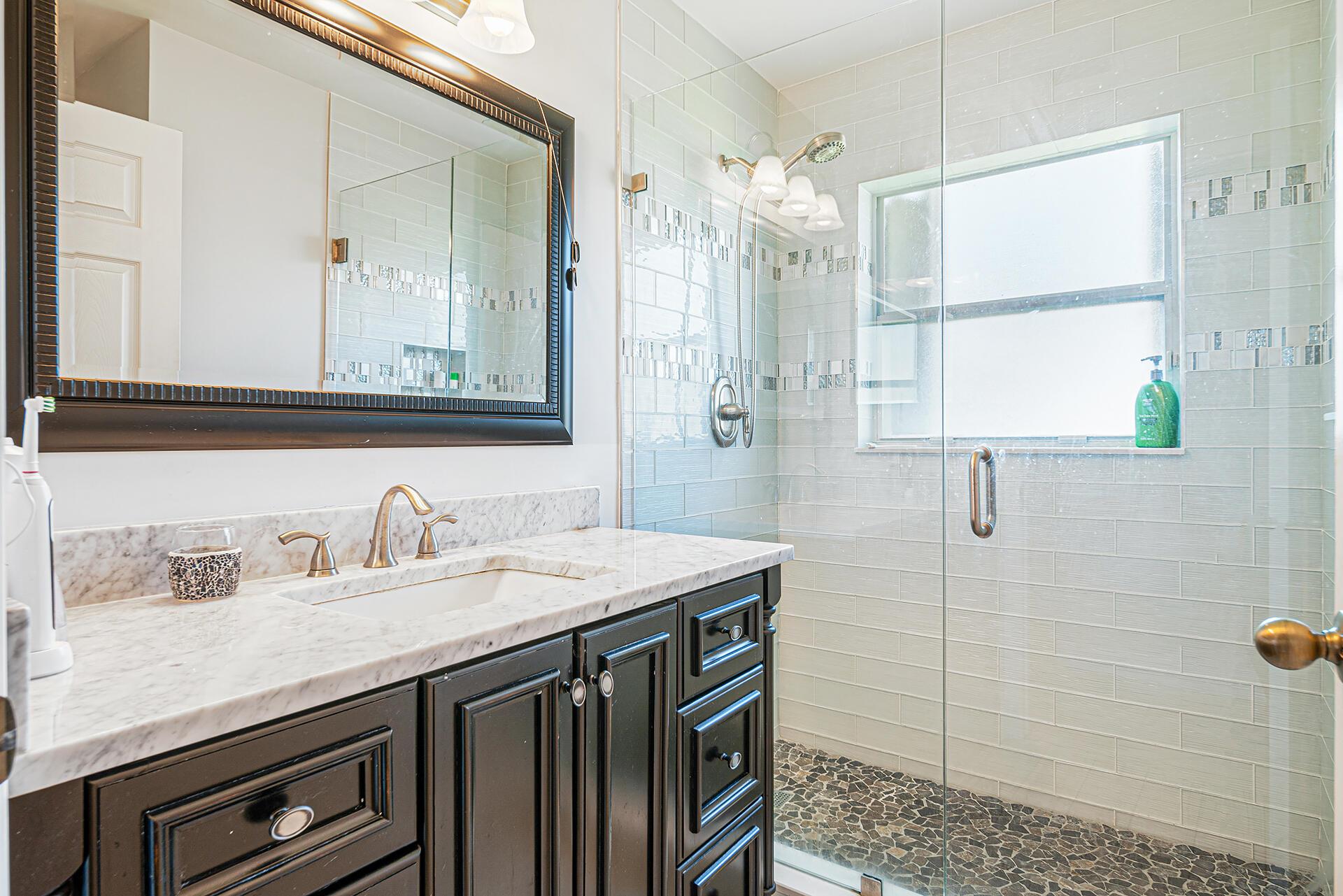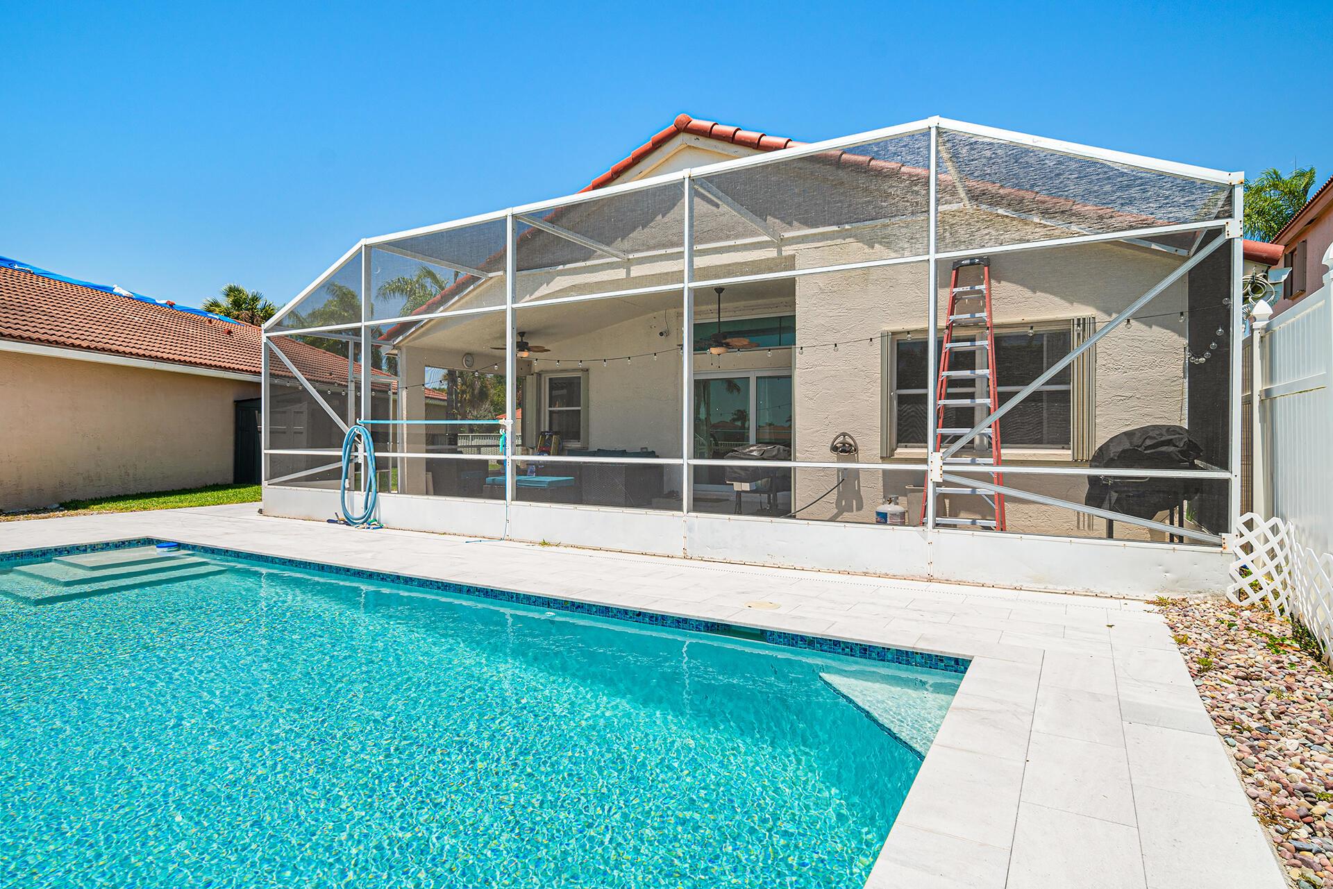 Magnificent Oversized Lakefront Estate boasting an impressive array of luxurious upgrades, including a brand new roof installed in ’25. Delight in year-round relaxation w/a resort-style, saltwater heated pool powered by a heat pump installed in ’24, elegantly encircled by travertine in ’24. Comfort meets efficiency w/ a central air system 7 yrs new. Indulge in spa-inspired serenity in the newly renovated primary bathroom ’22 & an equally refined hallway bath ’21. The gourmet eat-in kitchen has been tastefully remodeled to include sleek stainless steel appliances & upscale finishes, perfect for culinary enthusiasts. Screened & covered front porch for welcoming guests. Glass slider in Master Bedroom leads to the