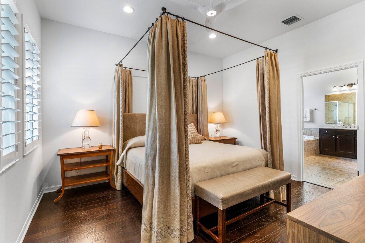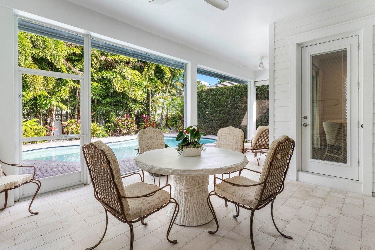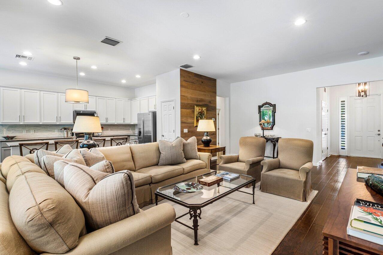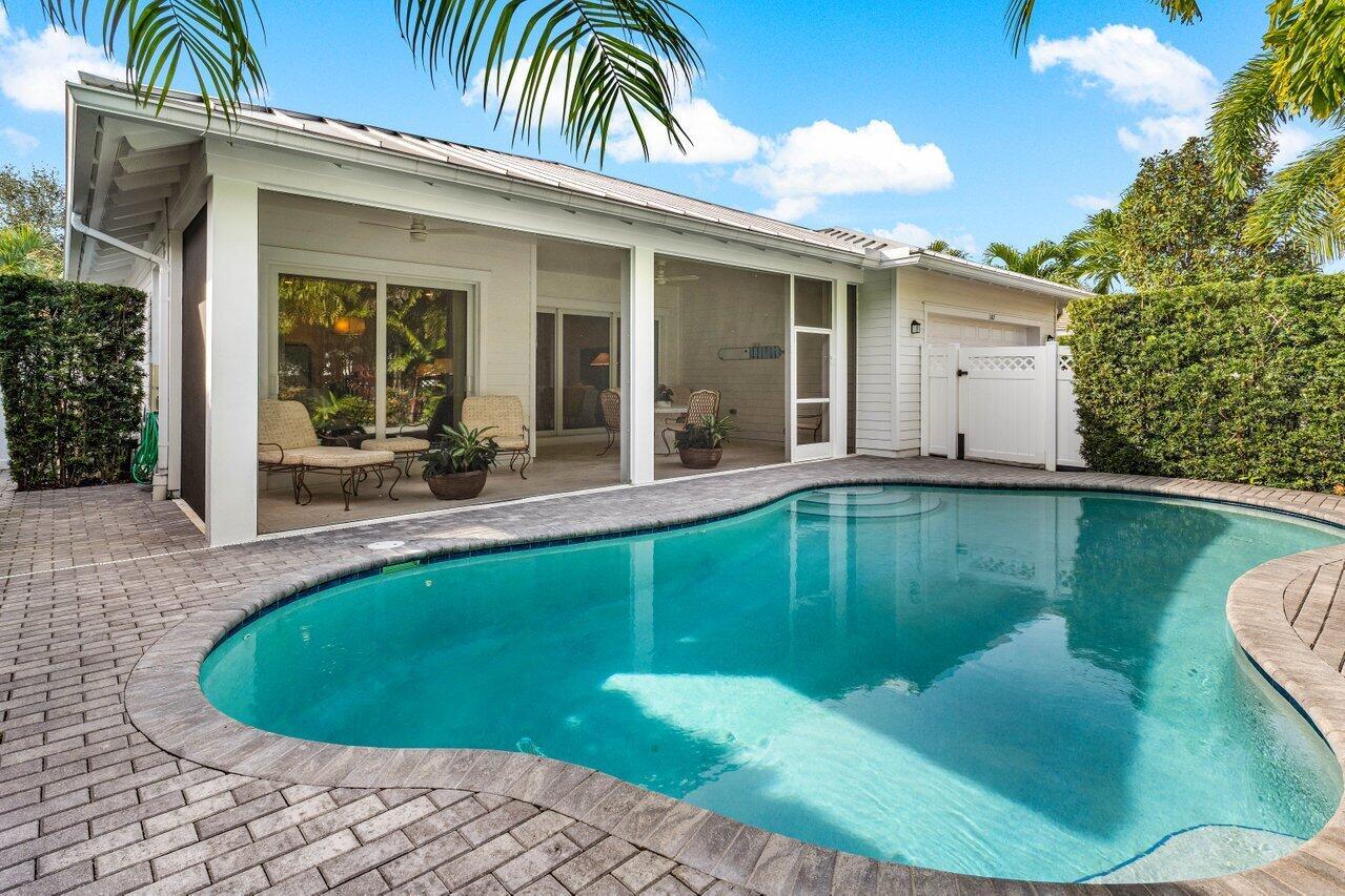 Beautiful Key West Style Home welcomes you with an expansive front porch & lush Tropical Landscape. Featuring gorgeous hardwood floors & plantation shutters, the open flowing floorplan offers an elegant foyer, formal living room (or optional 3rd bedroom/study), gourmet island kitchen and spacious great room defined by custom accents and design features. The tastefully appointed Master Suite includes a large walk-in closet plus a beautiful Master Bath inclusive of an oversized shower, soaking tub, double sinks & vanity. The pleasing guest suite features an adjacent bath with a shower/tub combo. The Exquisite Outside Entertainment area features a large covered & screened patio overlooking an open freeform, heated, salt chlorination pool creates a private tropical oasis!
