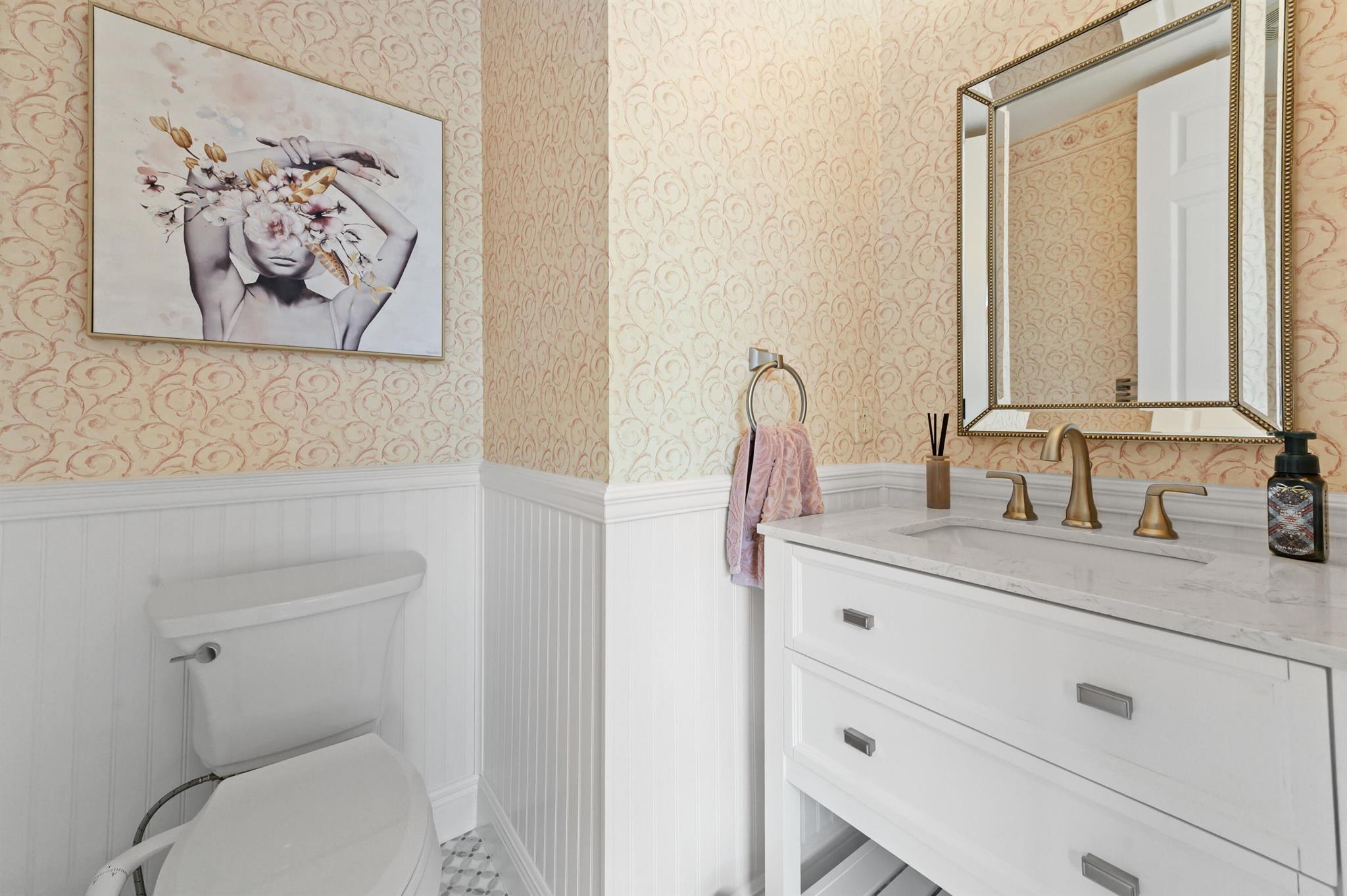Welcome to this stunning, executive pool & waterfront home, perfectly situated in the highly sought-after, Journey’s End community in Lake Worth. NEW ROOF & AC UNIT!!! The luxury begins the moment you pull up the paver driveway, framed by lush tropical landscaping and a beautiful 3-car garage with arched doors. Step inside to a grand, two-story foyer where you are greeted by rich, dark wood-look flooring and elegant wainscoting that lines the beautiful staircase. The main level is designed for sophisticated entertaining, featuring a formal dining room defined by a sparkling crystal chandelier and tasteful trim work.