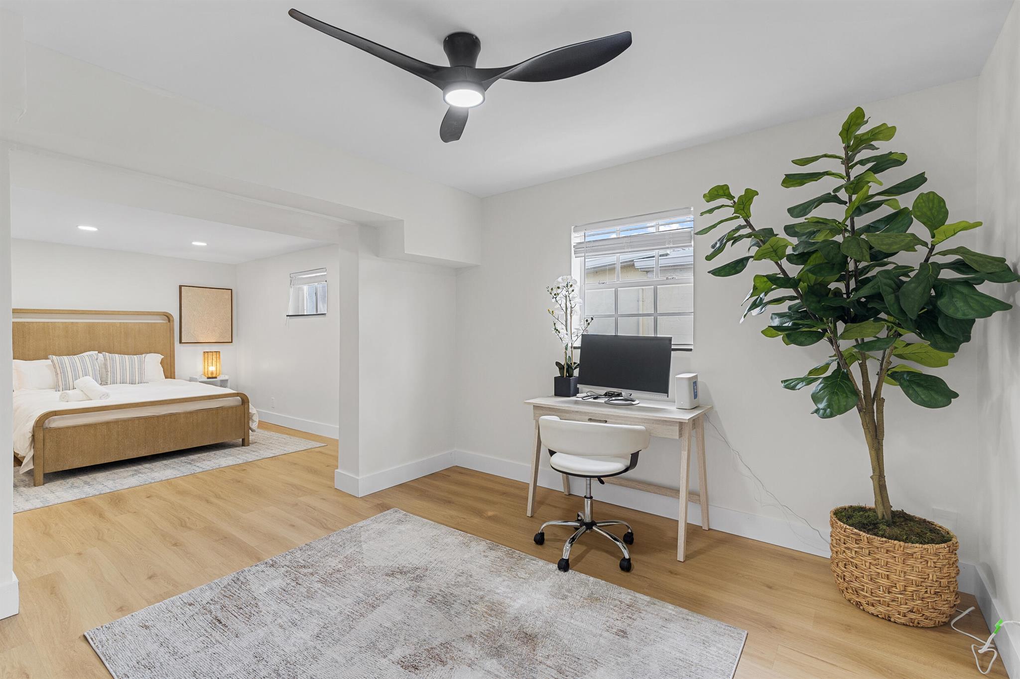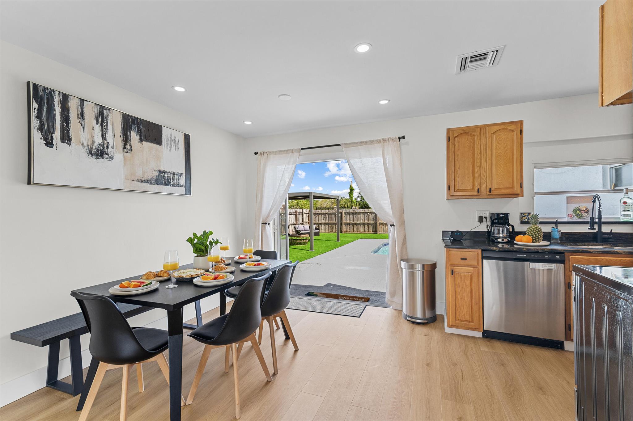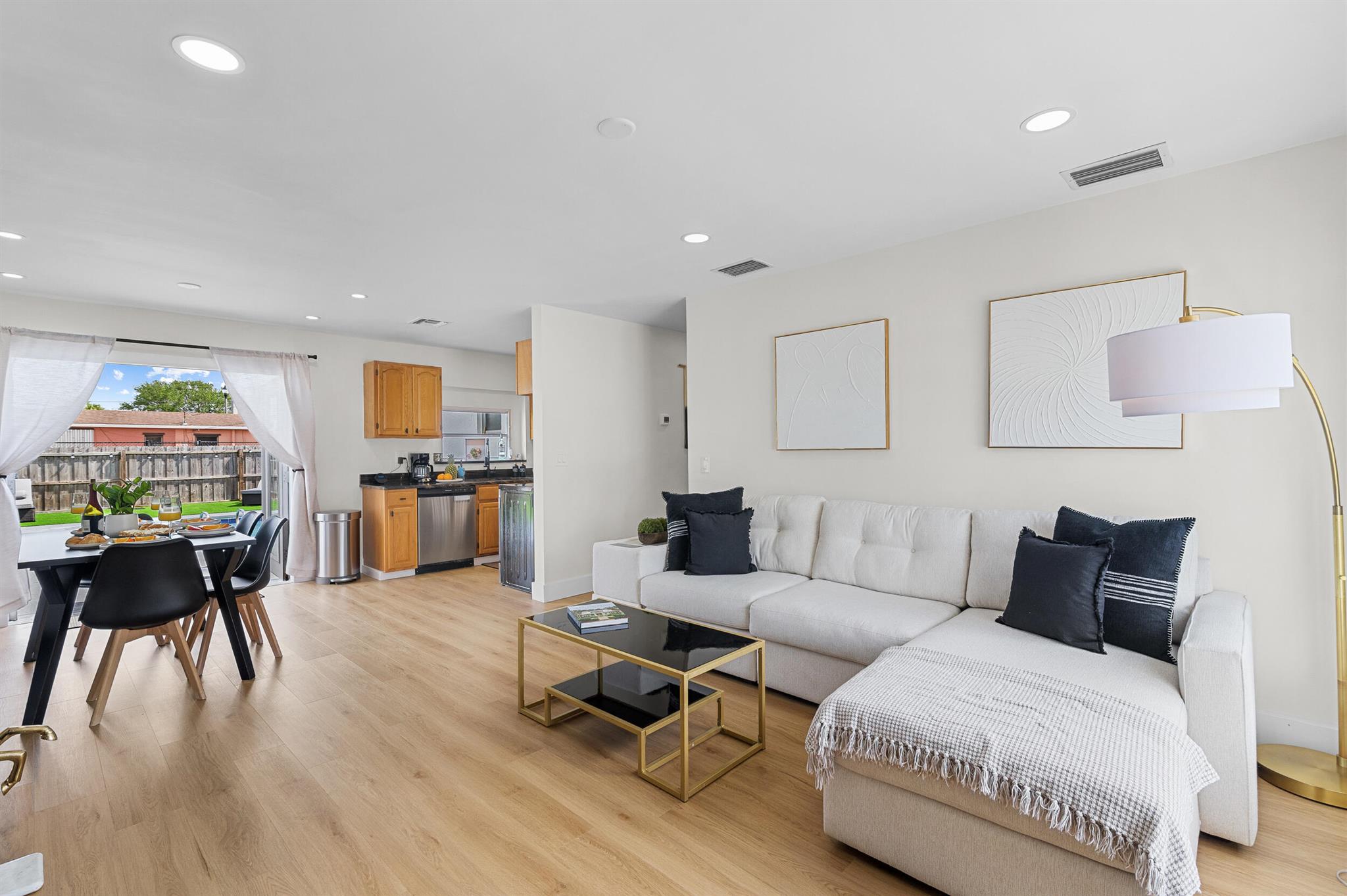 Incredible POOL home nestled on large CORNER lot in NON-HOA Community!! Endless possibilities await from this beautifully renovated 3 bedroom, 2 bath pool home, NEW ROOF (2024) in the heart of West Palm Beach! Owner has updated this single story residence with new designer paint, luxury vinyl flooring throughout (no carpet!), LED lighting and completely furnished like a model! Updated kitchen with granite counter tops and stainless steel appliances. HUGE primary suite with connected sitting area/office or den/media room. BOTH bathrooms updated with custom vanities – master boasts mosaic tile floor and large shower; guest bath offers LED mirror and combo tub/shower. RELAX in your private backyard oasis! Take advantage of the Florida Sunshine as you lounge around your large open pool,