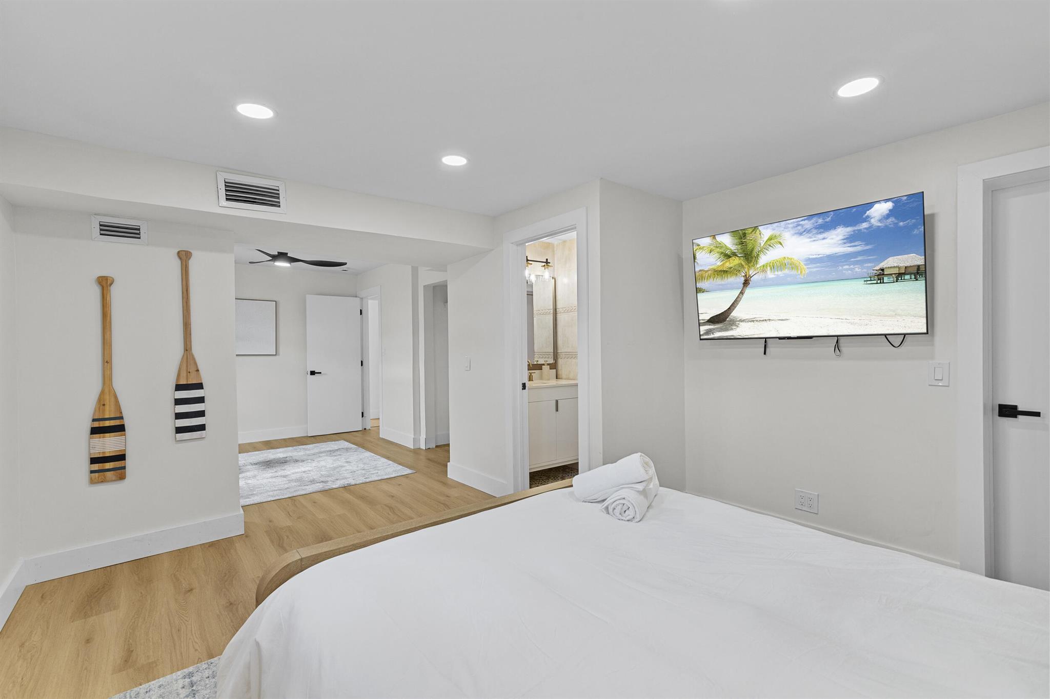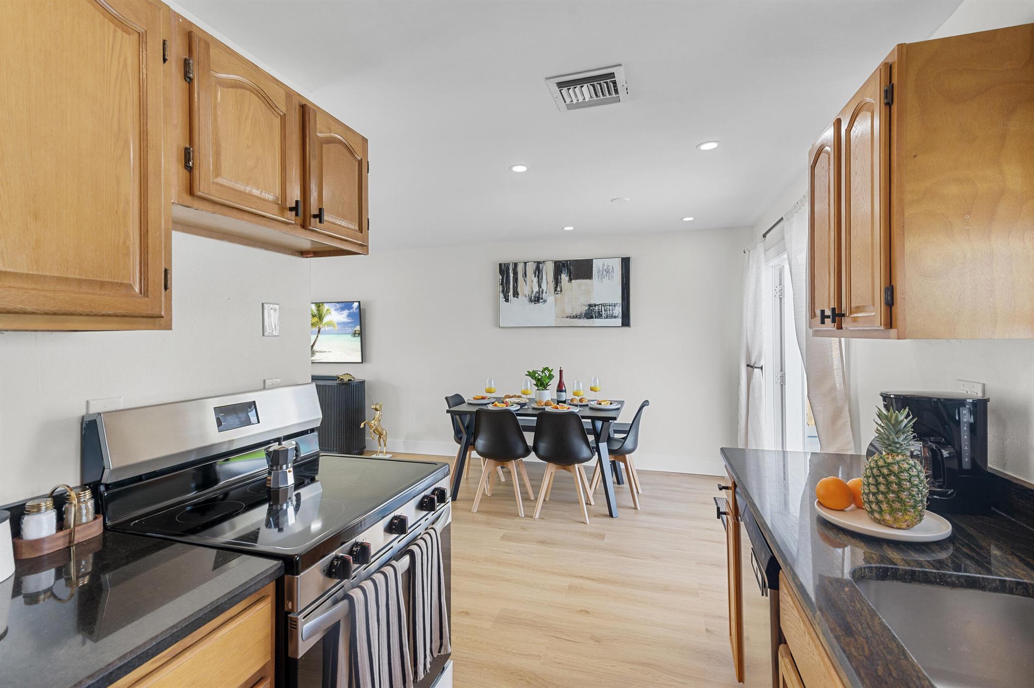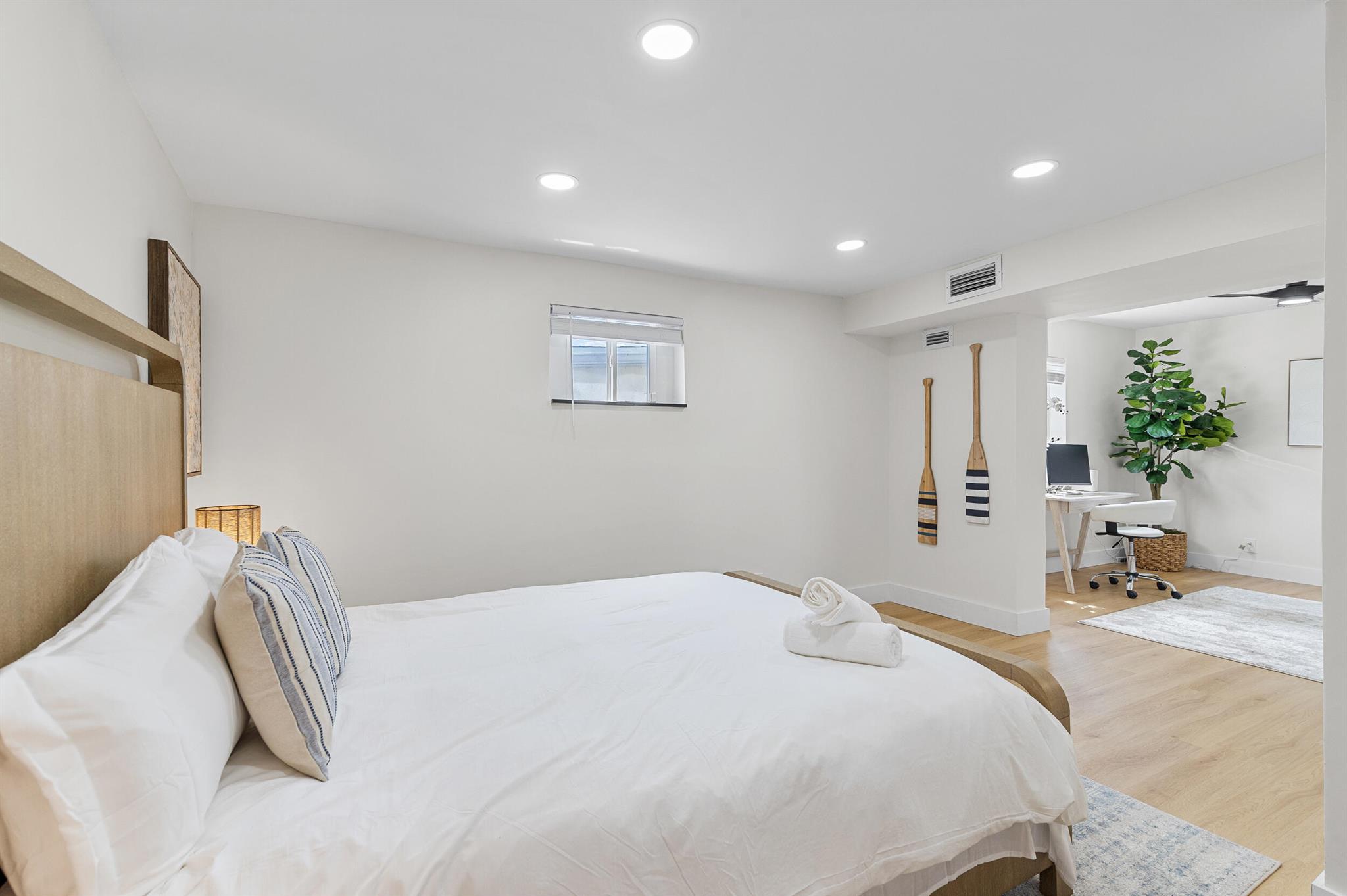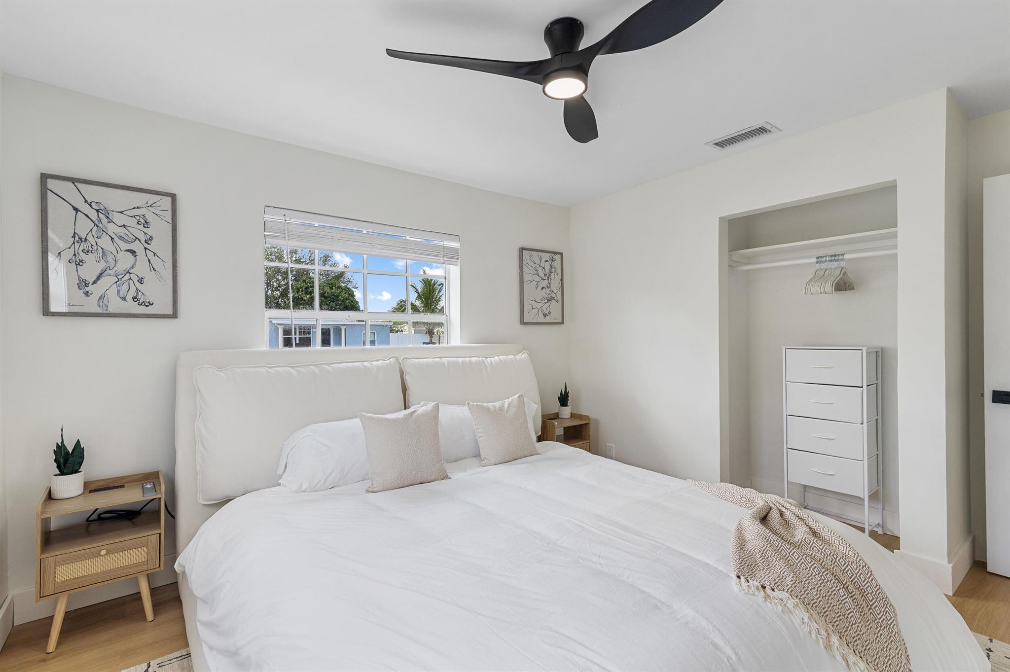 Incredible POOL home nestled on large CORNER lot in NON-HOA Community!! Endless possibilities await from this beautifully renovated 3 bedroom, 2 bath pool home, NEW ROOF (2024) in the heart of West Palm Beach! Owner has updated this single story residence with new designer paint, luxury vinyl flooring throughout (no carpet!), LED lighting and completely furnished like a model! Updated kitchen with granite counter tops and stainless steel appliances. HUGE primary suite with connected sitting area/office or den/media room. BOTH bathrooms updated with custom vanities – master boasts mosaic tile floor and large shower; guest bath offers LED mirror and combo tub/shower. RELAX in your private backyard oasis! Take advantage of the Florida Sunshine as you lounge around your large open pool,