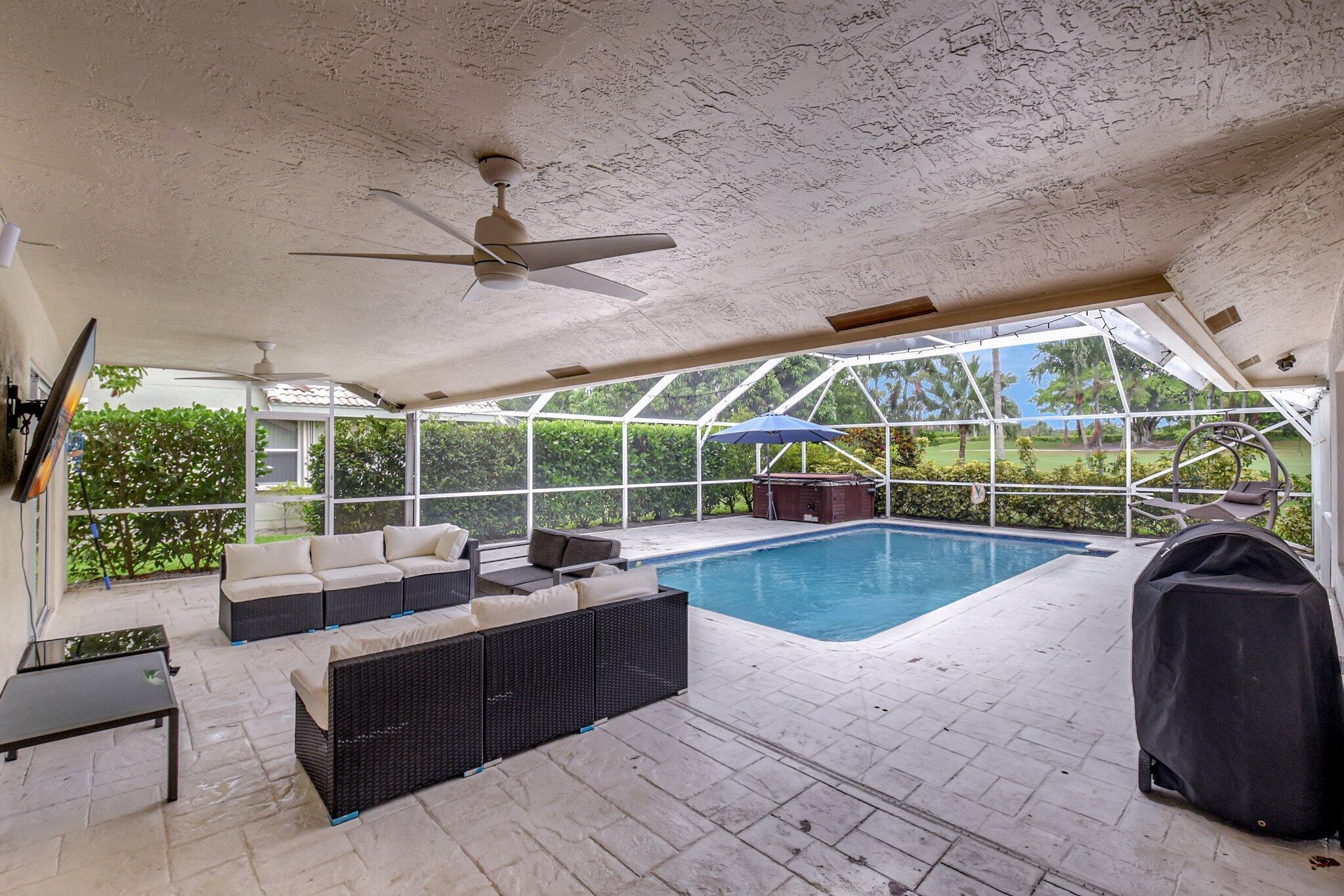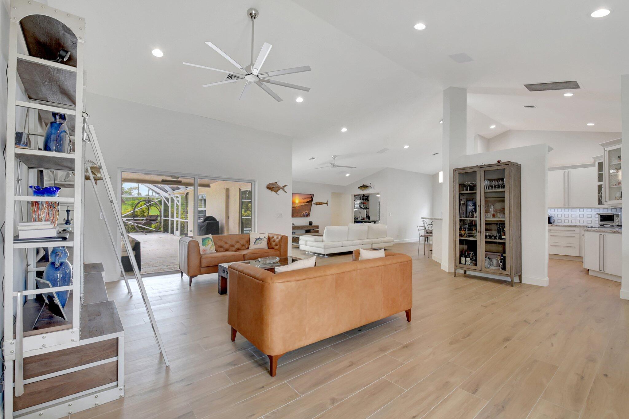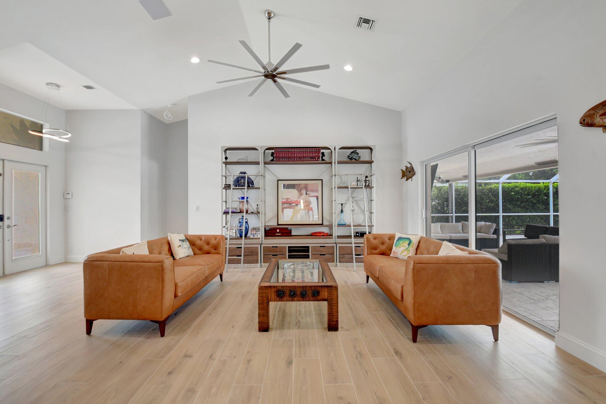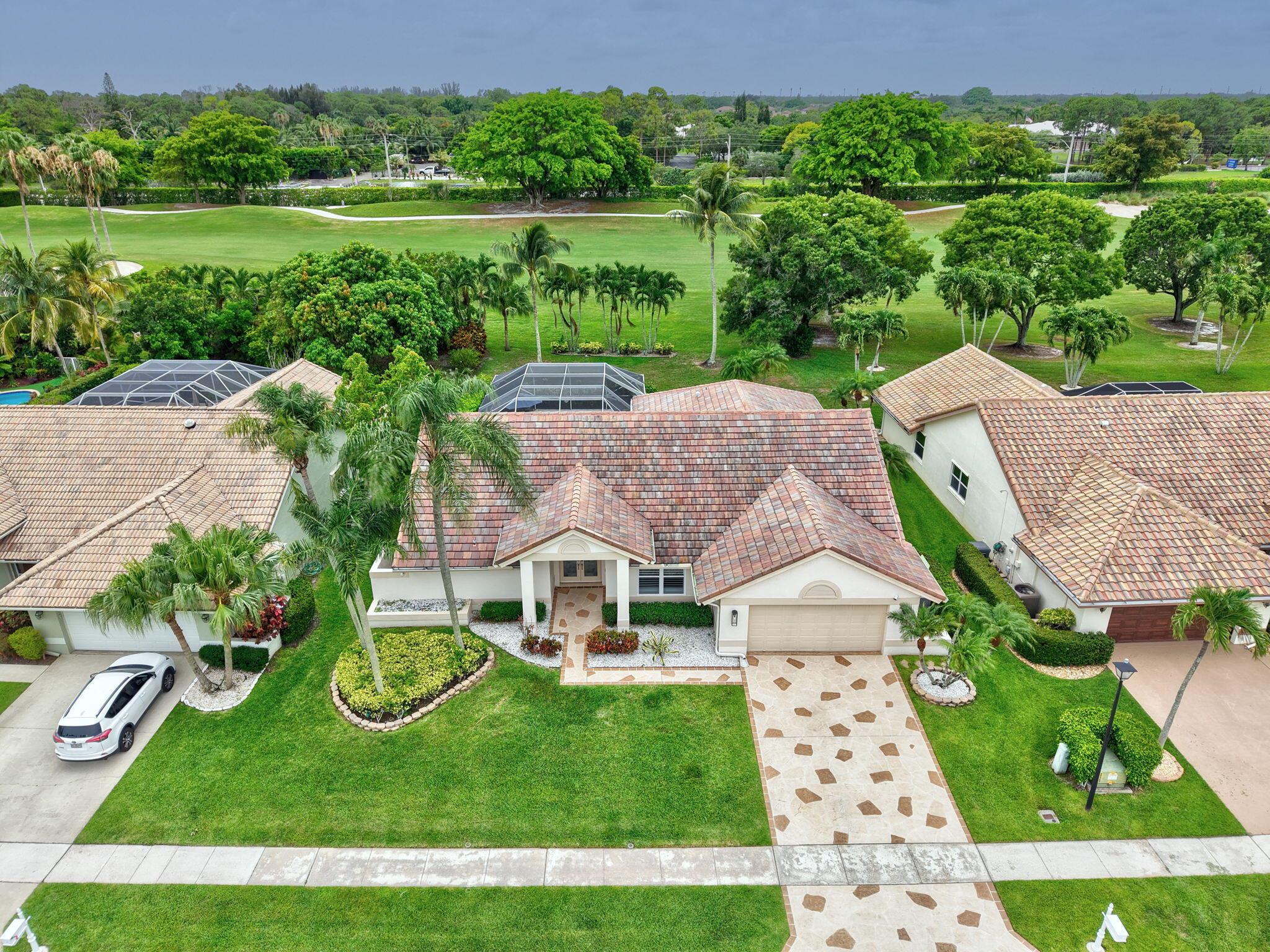 Golf Course Views Impact Windows Southern Exposure No Mandatory Golf MembershipRarely available in the gated community of Winston Trails, this 0.23-acre home offers sweeping golf course views, a heated saltwater pool & spa, and southern exposure. Inside, enjoy an open-concept layout with soaring ceilings, a modern kitchen with granite counters & custom pantry, plus a split-bedroom floor plan for privacy. The primary suite features a spa-style bath and custom walk-in closet. Upgrades include a newer roof, A/C, water heater, built-in stereo, porcelain tile floors, and full impact windows. Winston Trails offers resort-style amenities–championship golf, tennis, pickleball, fitness center, clubhouse with restaurant, pools, playgrounds, and 24/7 security–all with low HOA fees and